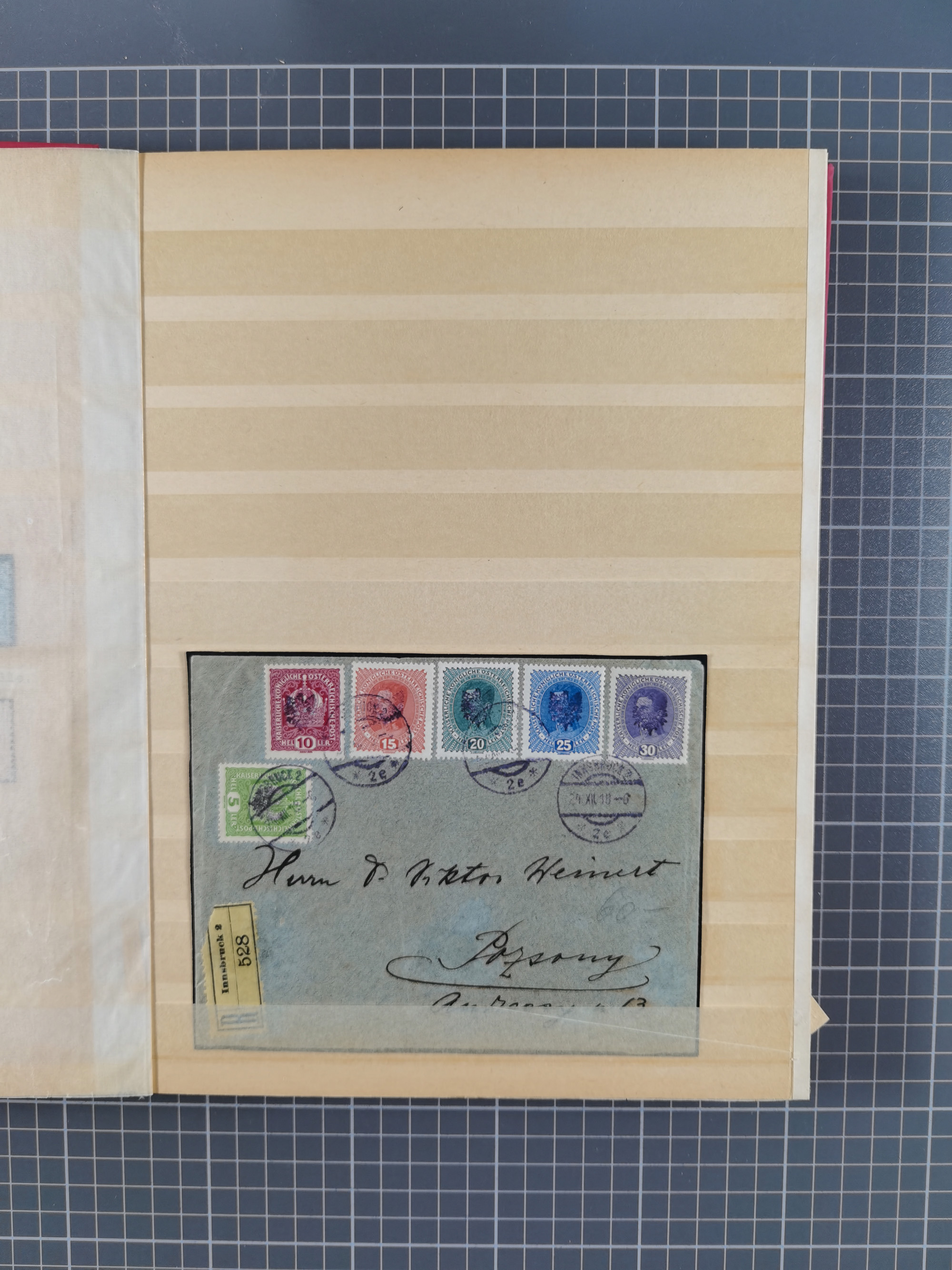1867, Ganzsachenumschlag Franz Joseph 10 Kreuzer blau mit 6 Einzelwerten 10 Kreuzer blau als Zufrankatur ab “SMICHOV 24 7 81” über Prag nach Helgoland, formatbedingt einige Risse, besonders oben rechts, insgesamt aber eine eindrucksvolle 70-Kreuzer Großfrankatur, wir haben in dieser Form kein weiteres Stück registriert