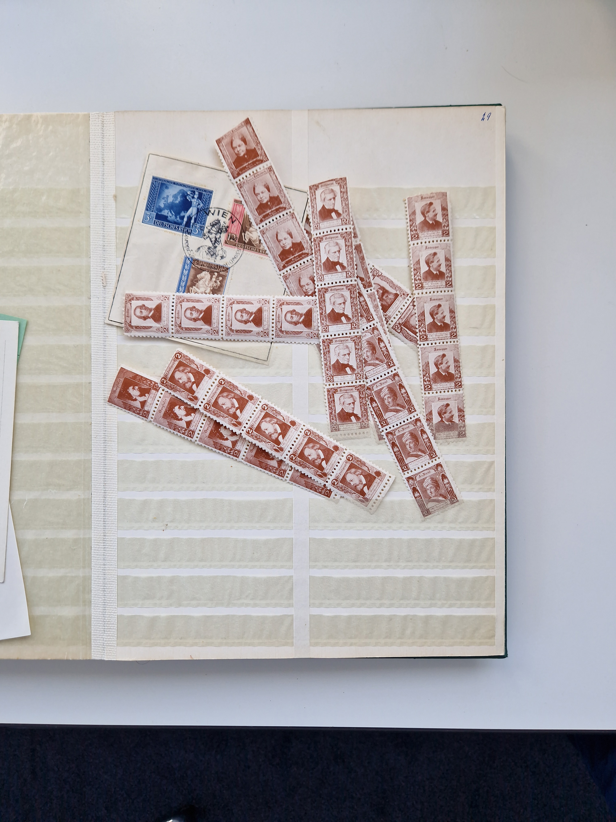 1945, Grazer Aufdruck, kleine postfrische Partie mit diversen Bogenteilen und gefalteten Bogen sowie 25 Ganzsachenkarten und Karte 6 Pfg. mit Einzelaufdruck auf aufgeklebter Marke