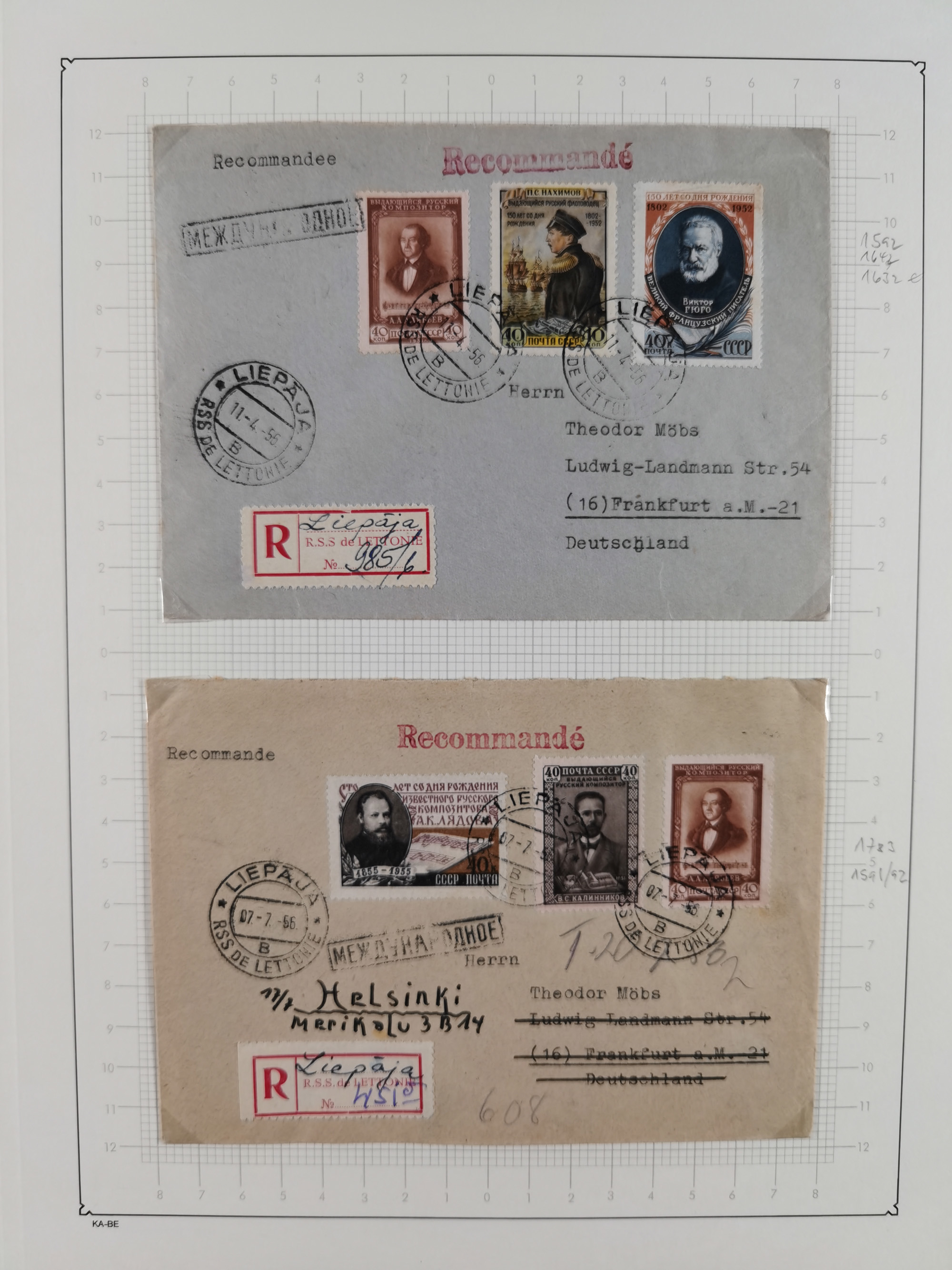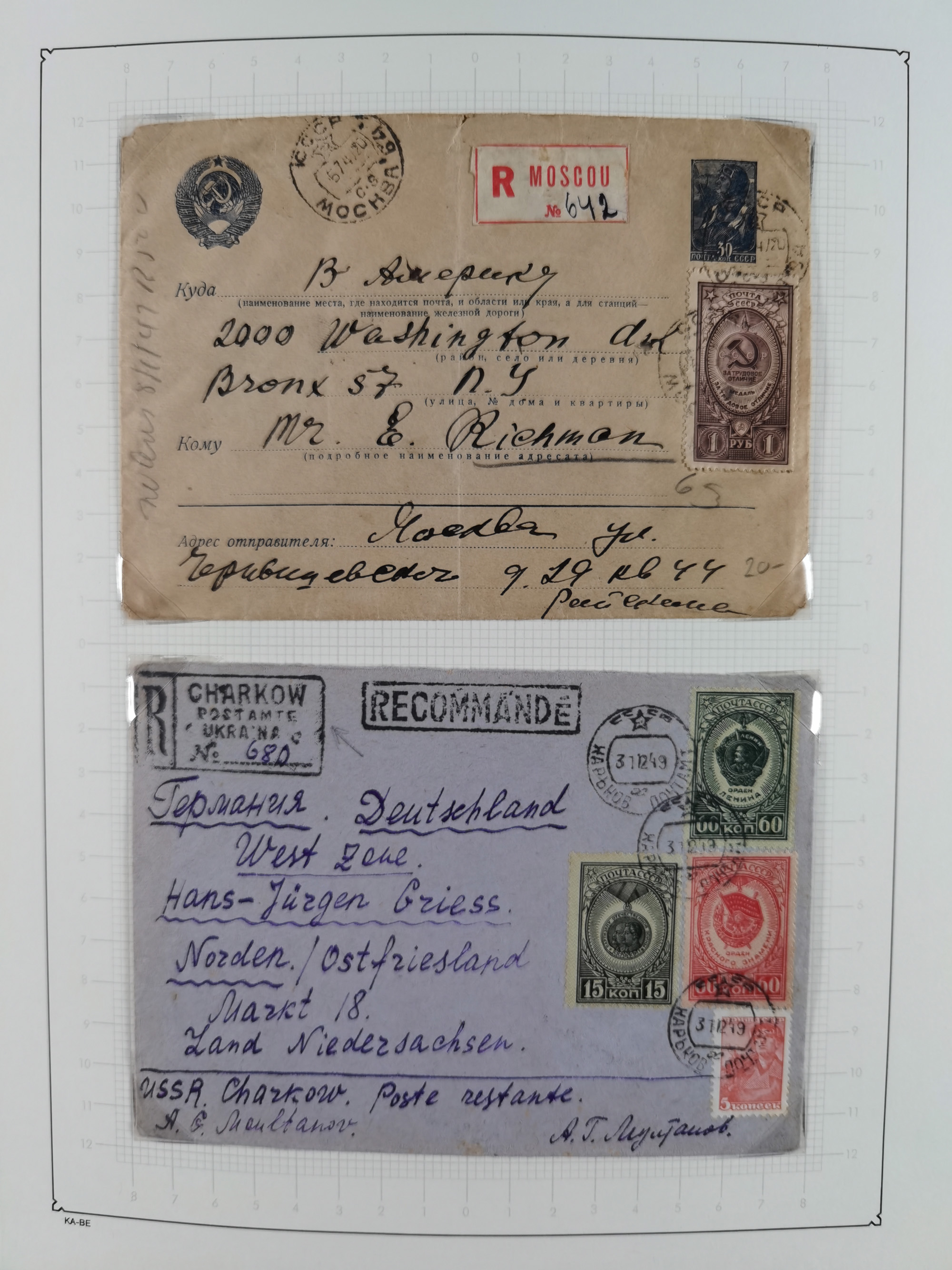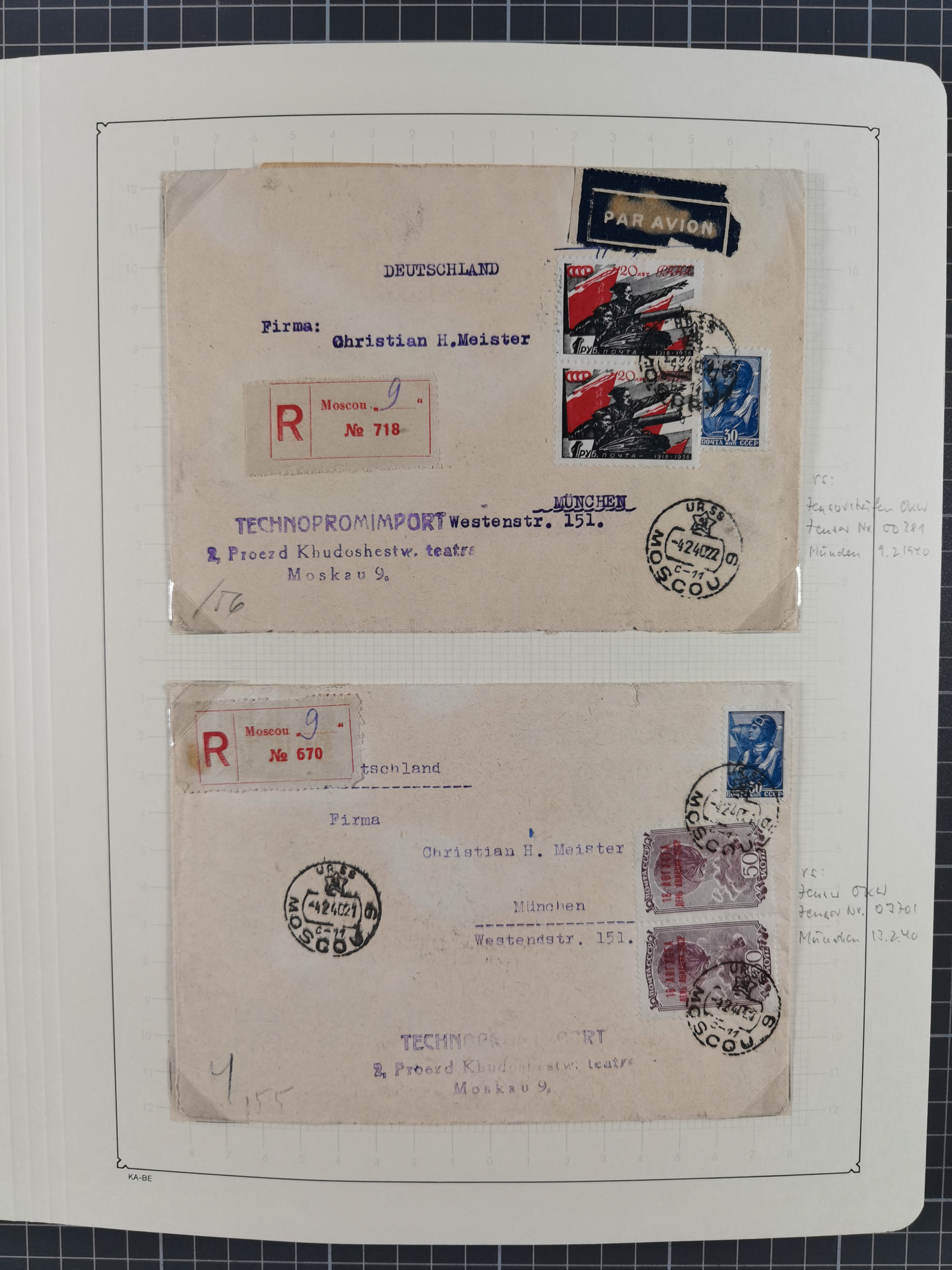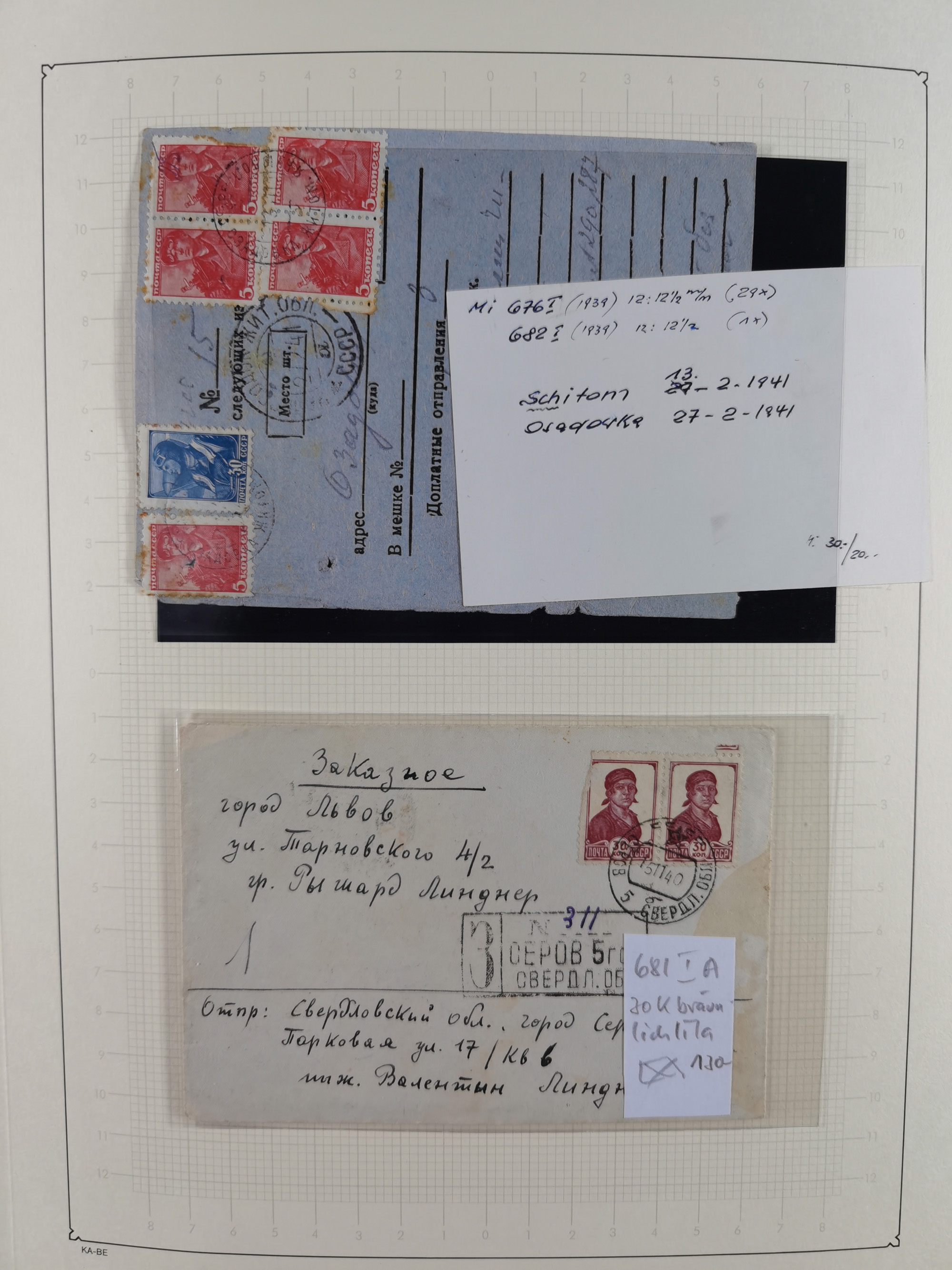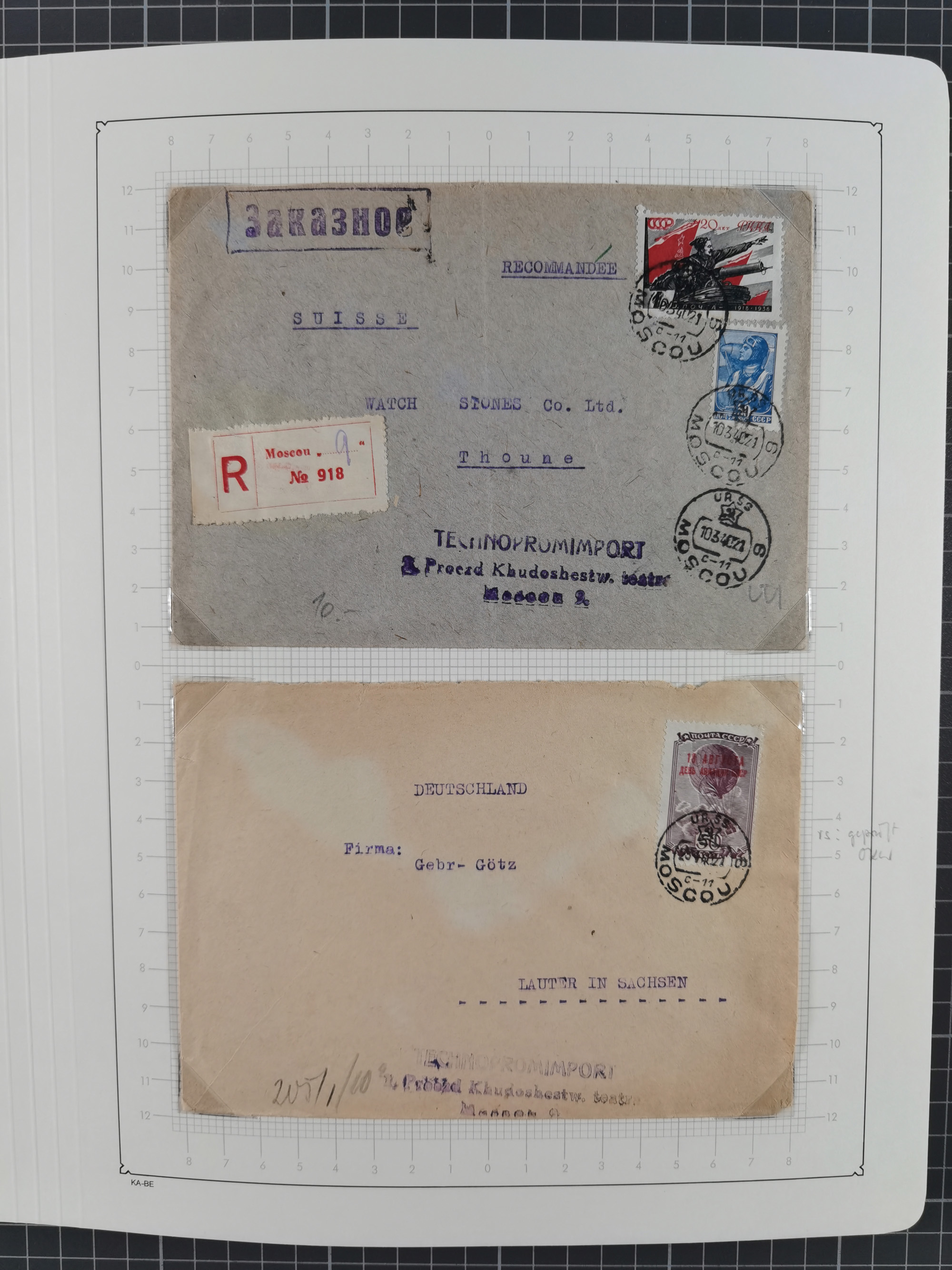 1917/25, Russian Inflation Postal History, extensive specialized collection with over 320 covers and postcards, filled with an abundance of interesting items and unusual usages chronologically arranged within the postal tariff periods, many better items with plenty of material sent during the free post period with covers paid fully or partly in cash (3), 1920 mail from Vladivostok, some scarce 1923 RSFSR and Soviet Union mixed frankings (2) incl. the first Soviet Industry and Agriculture set complete with additional RSFSR definitives, some early international airmail from the Moscow-Berlin line (2) dated respectively July and August 1922, together with some massive frankings with parts sheets, parcel cards, etc., nice section of the 1918 Chain Breakers with complete sheets mint never hinged and several covers, Mi.-Nr. 151-152 with additional franking on later usages in 1922, 165-168 complete set with additional franking on registered envelope to Lithuania, 200x with additional franking, together with a few single stamps like Mi.-Nr. 214c used on piece (signed Mikulski). A most useful assembly neatly mounted and expertly described on exhibition leaves, in 10 albums