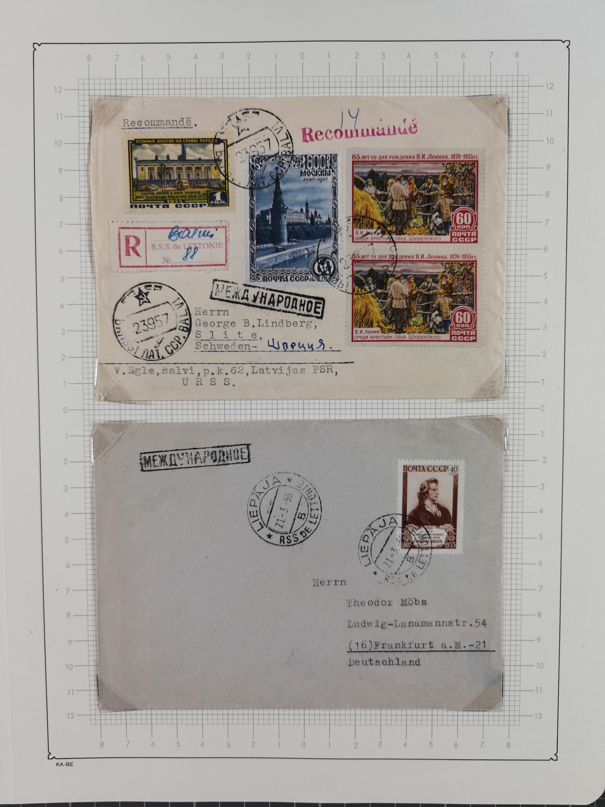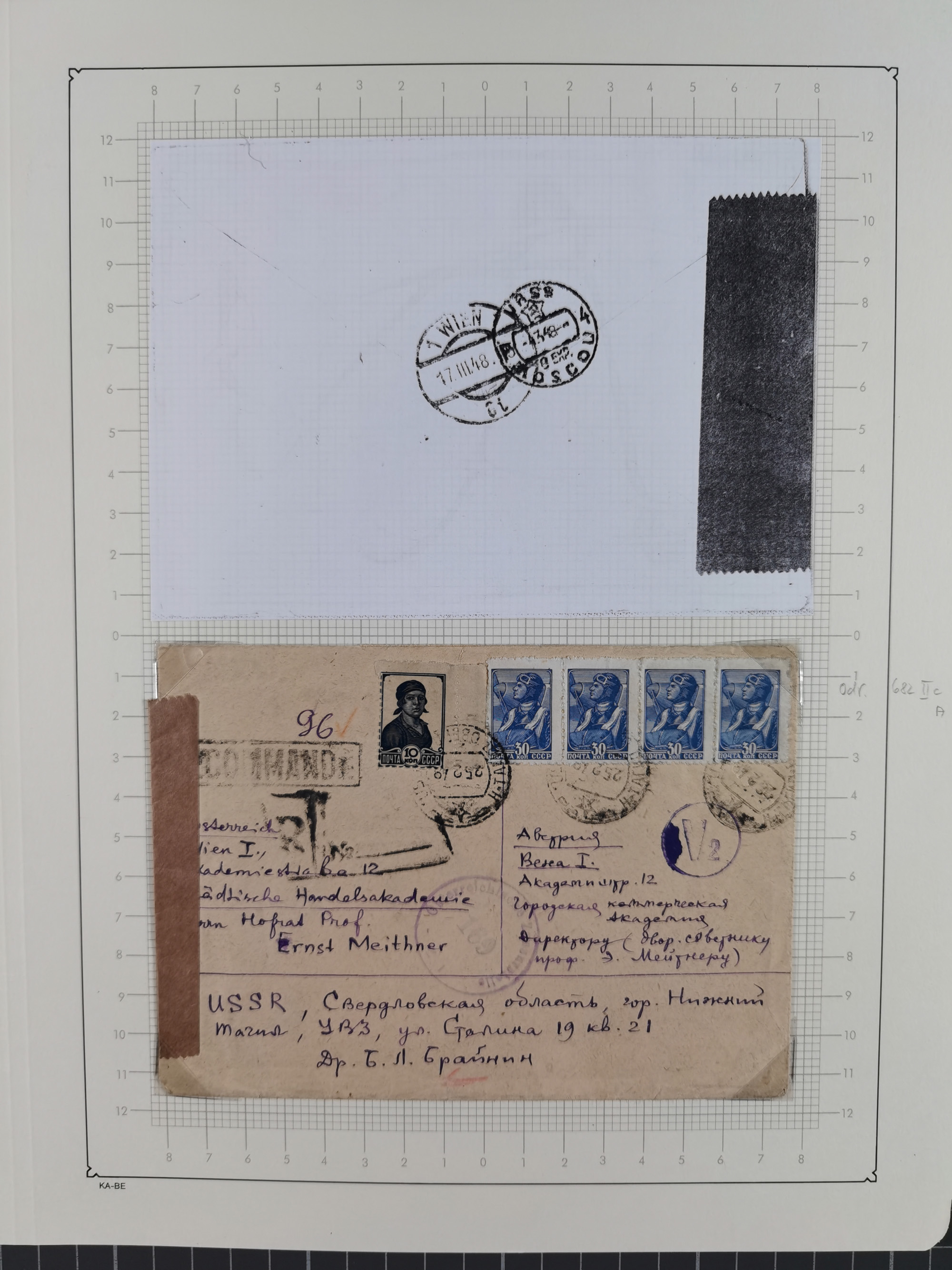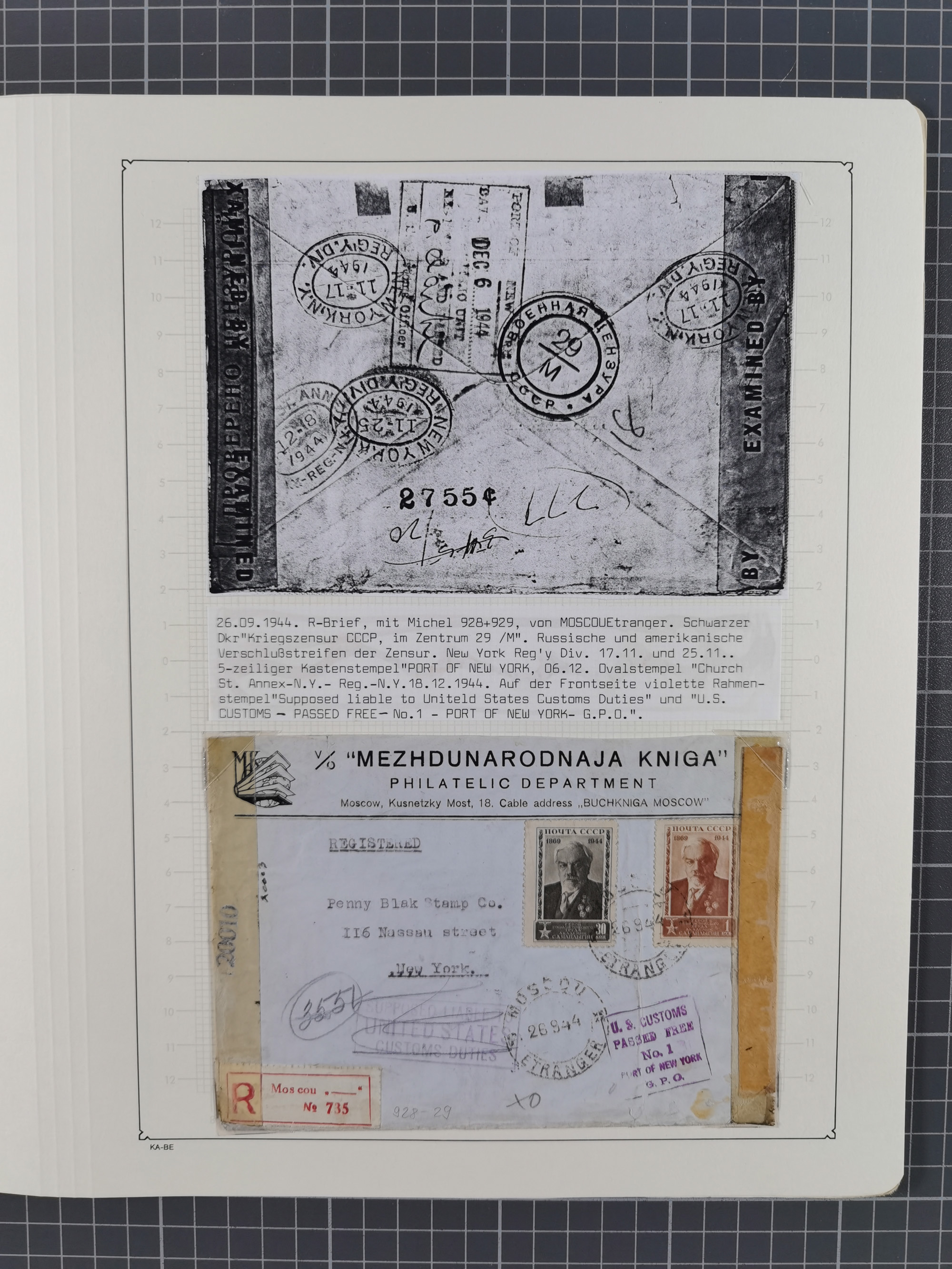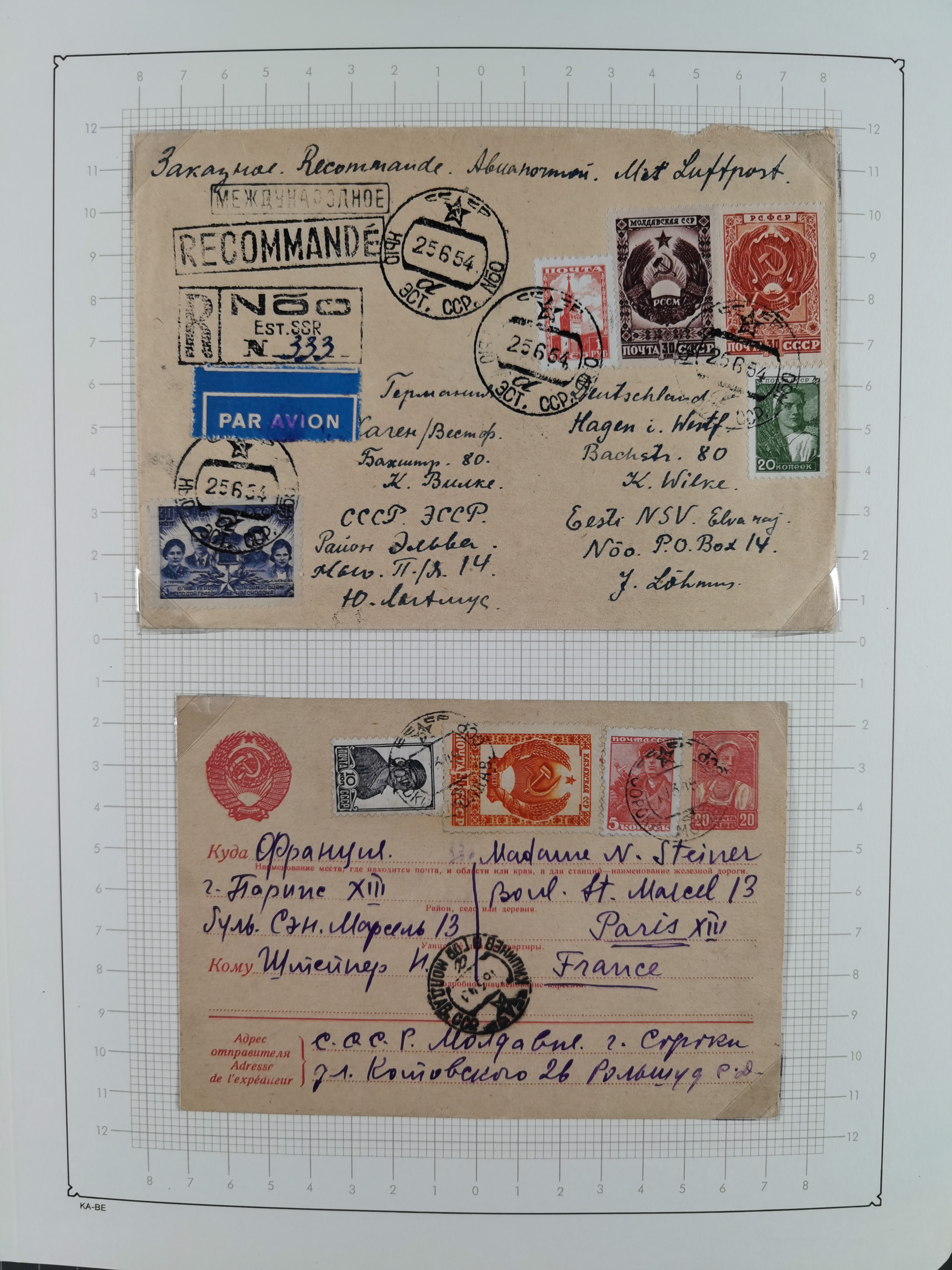 1917/25, Russian Inflation Postal History, extensive specialized collection with over 320 covers and postcards, filled with an abundance of interesting items and unusual usages chronologically arranged within the postal tariff periods, many better items with plenty of material sent during the free post period with covers paid fully or partly in cash (3), 1920 mail from Vladivostok, some scarce 1923 RSFSR and Soviet Union mixed frankings (2) incl. the first Soviet Industry and Agriculture set complete with additional RSFSR definitives, some early international airmail from the Moscow-Berlin line (2) dated respectively July and August 1922, together with some massive frankings with parts sheets, parcel cards, etc., nice section of the 1918 Chain Breakers with complete sheets mint never hinged and several covers, Mi.-Nr. 151-152 with additional franking on later usages in 1922, 165-168 complete set with additional franking on registered envelope to Lithuania, 200x with additional franking, together with a few single stamps like Mi.-Nr. 214c used on piece (signed Mikulski). A most useful assembly neatly mounted and expertly described on exhibition leaves, in 10 albums