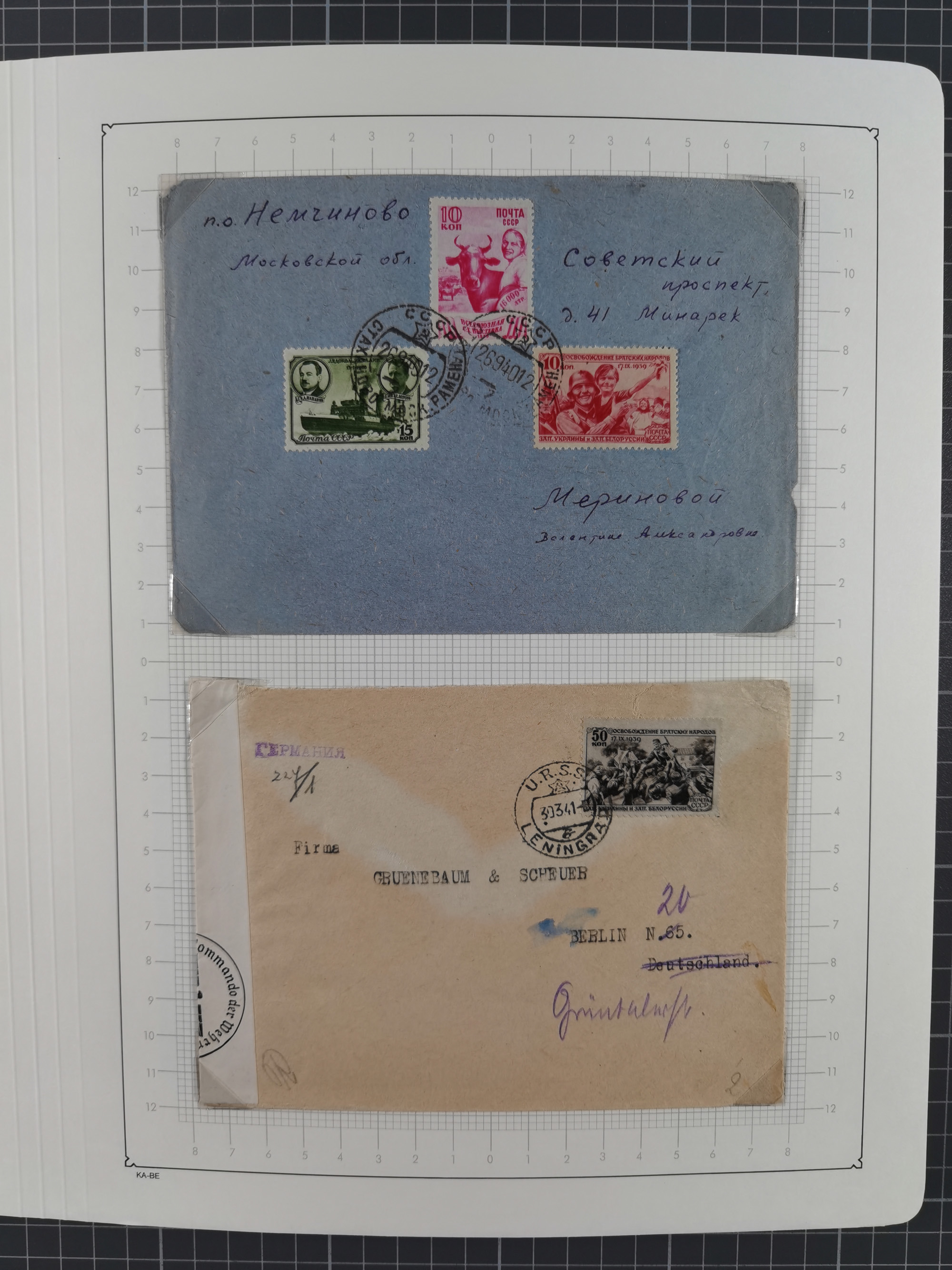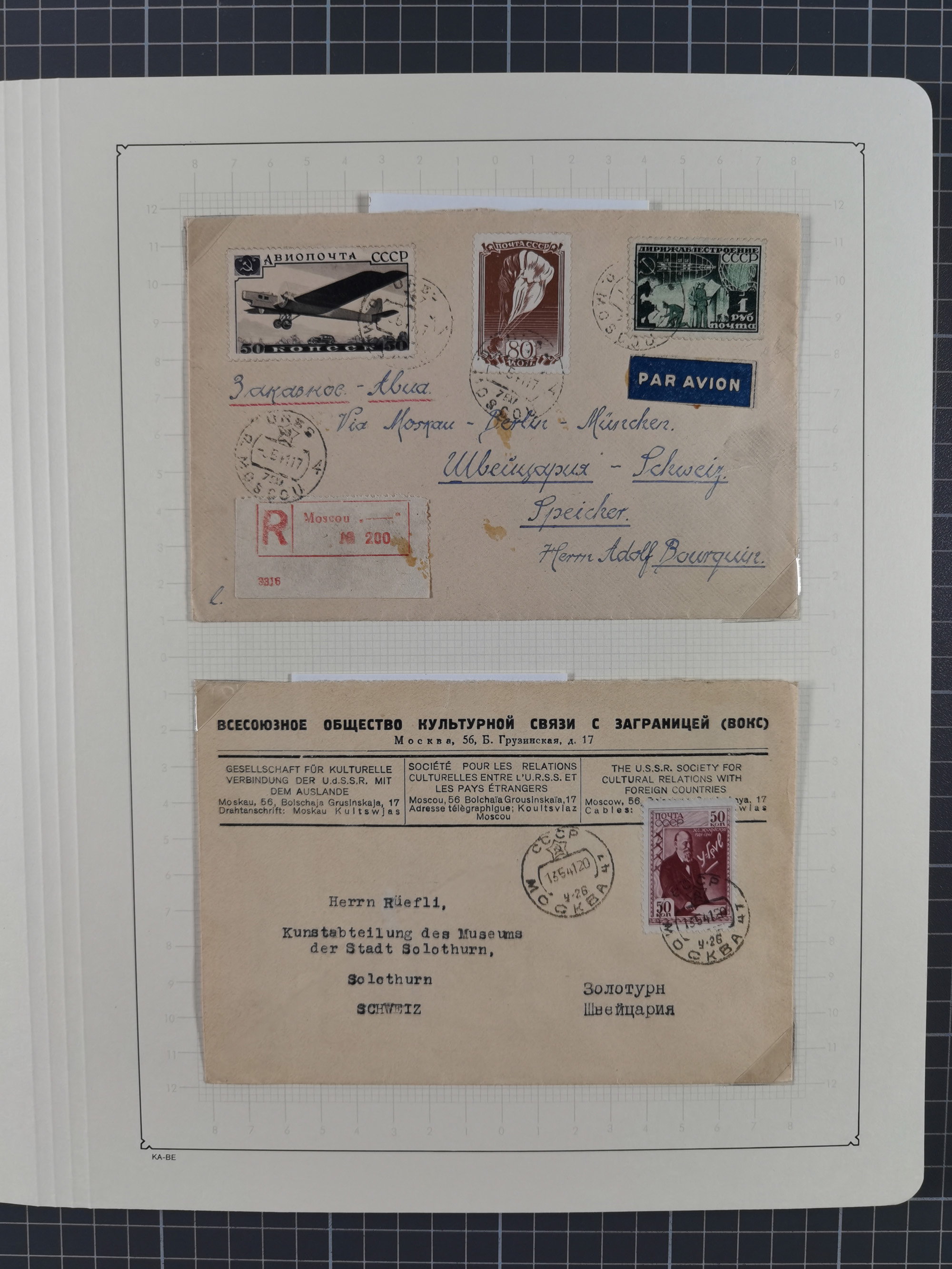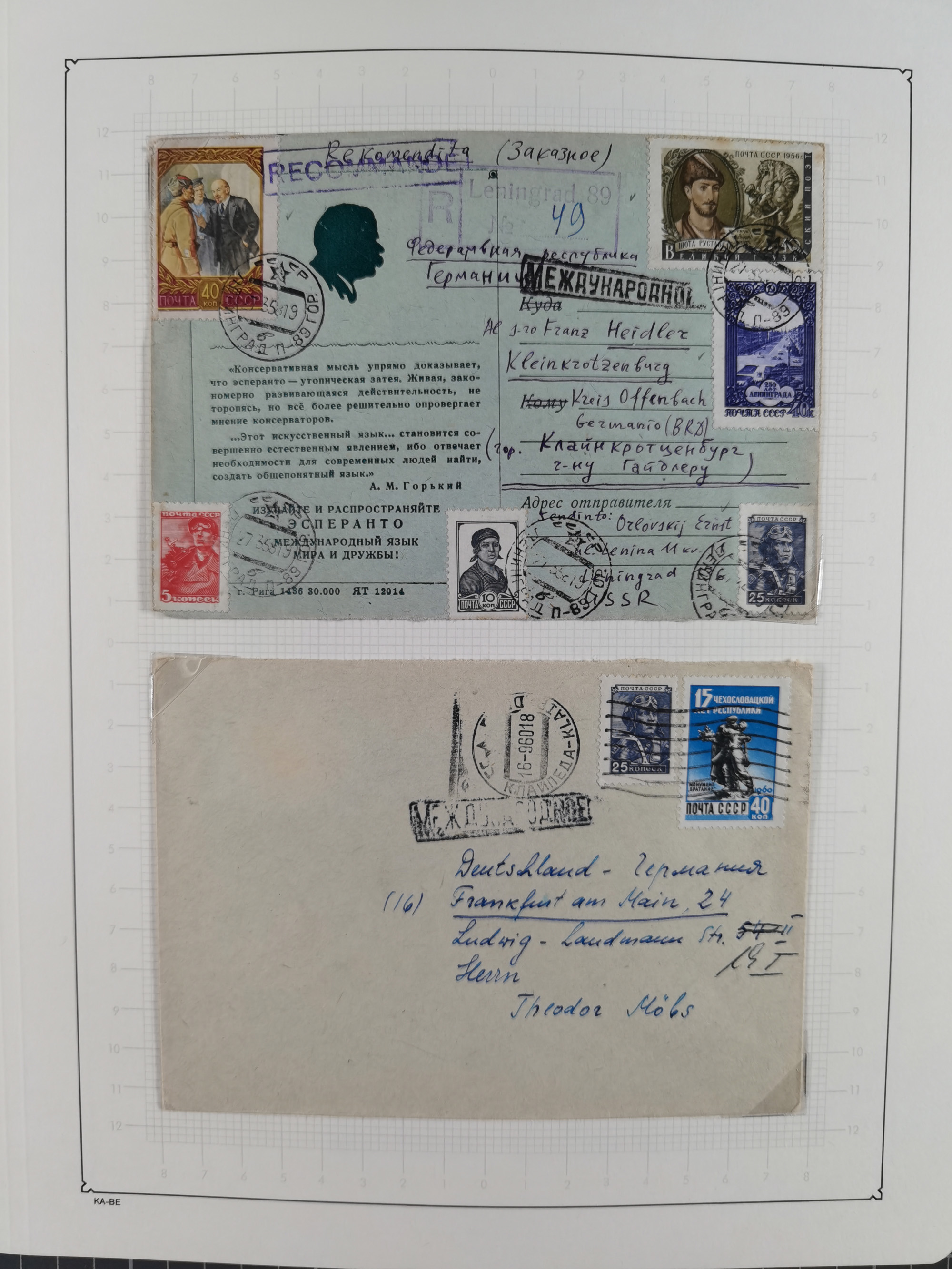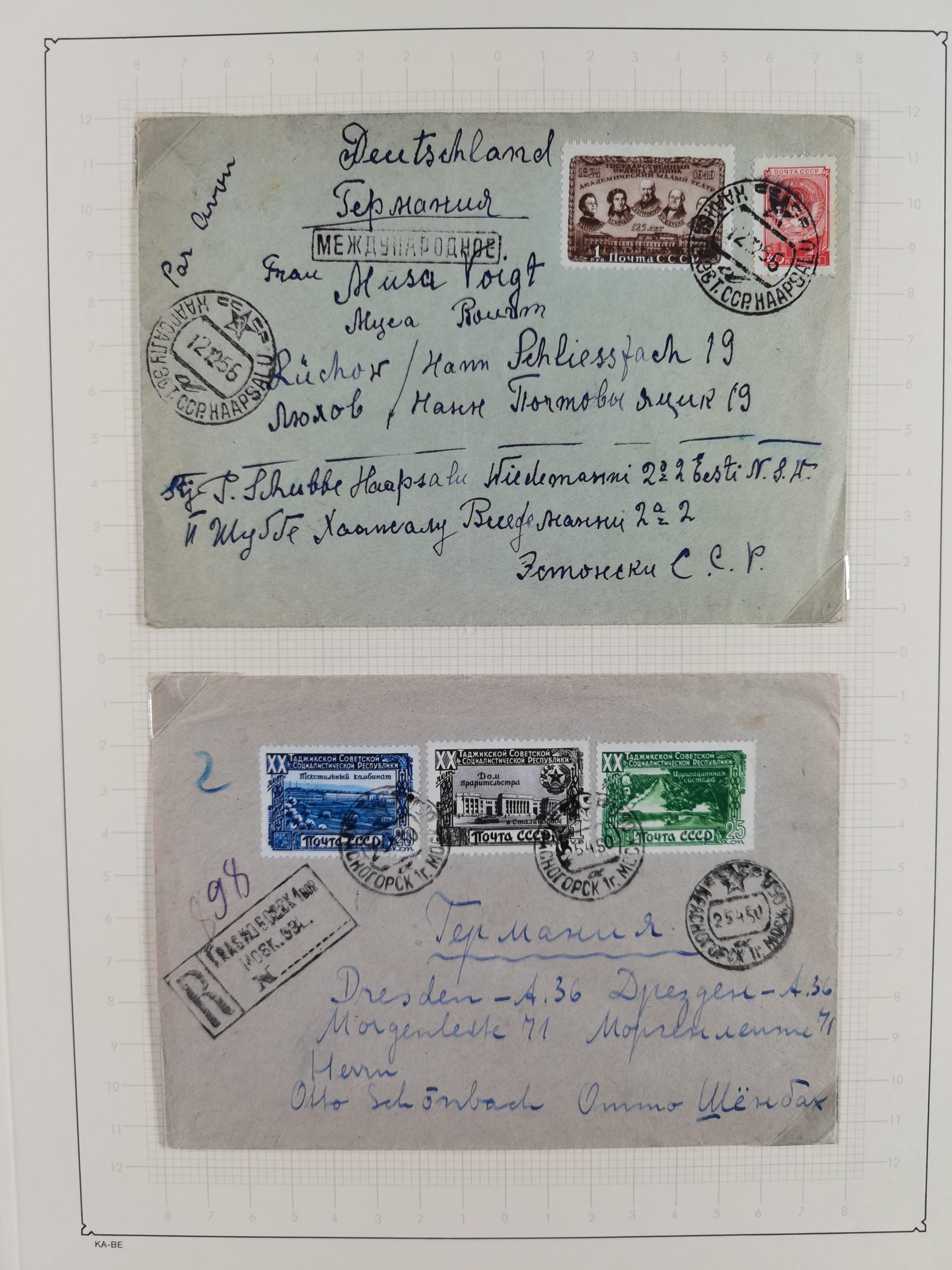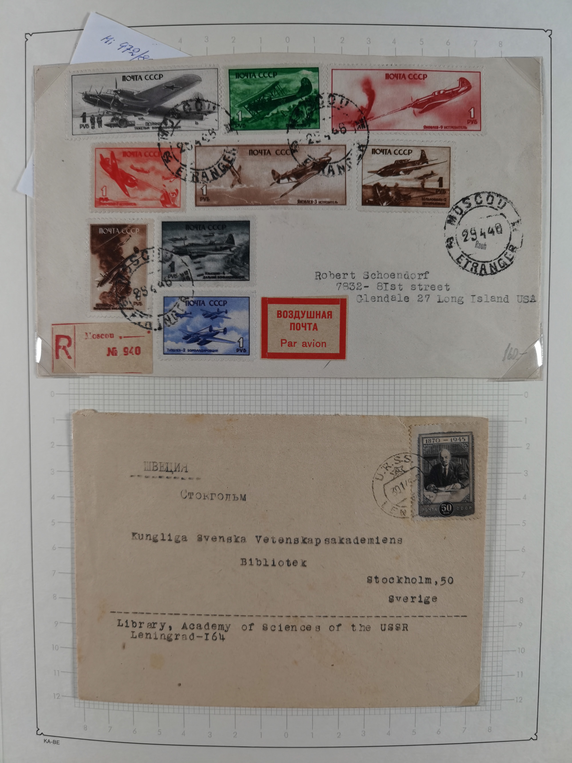1917/25, Russian Inflation Postal History, extensive specialized collection with over 320 covers and postcards, filled with an abundance of interesting items and unusual usages chronologically arranged within the postal tariff periods, many better items with plenty of material sent during the free post period with covers paid fully or partly in cash (3), 1920 mail from Vladivostok, some scarce 1923 RSFSR and Soviet Union mixed frankings (2) incl. the first Soviet Industry and Agriculture set complete with additional RSFSR definitives, some early international airmail from the Moscow-Berlin line (2) dated respectively July and August 1922, together with some massive frankings with parts sheets, parcel cards, etc., nice section of the 1918 Chain Breakers with complete sheets mint never hinged and several covers, Mi.-Nr. 151-152 with additional franking on later usages in 1922, 165-168 complete set with additional franking on registered envelope to Lithuania, 200x with additional franking, together with a few single stamps like Mi.-Nr. 214c used on piece (signed Mikulski). A most useful assembly neatly mounted and expertly described on exhibition leaves, in 10 albums