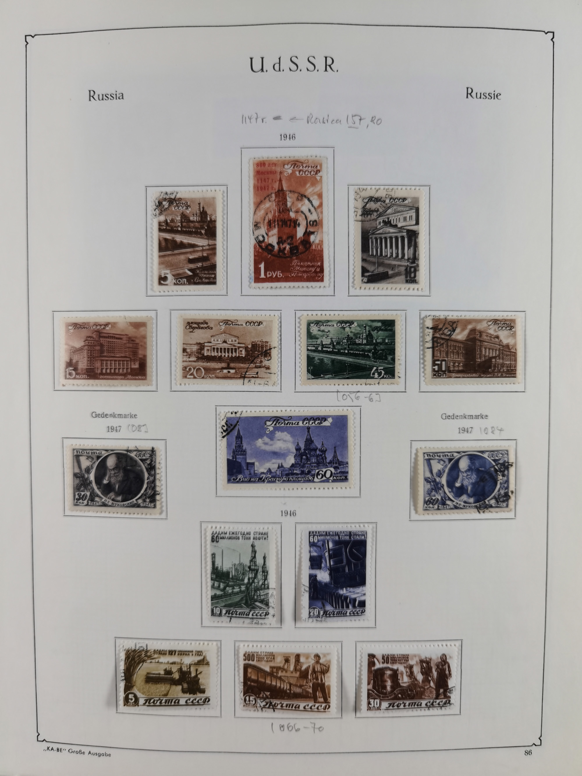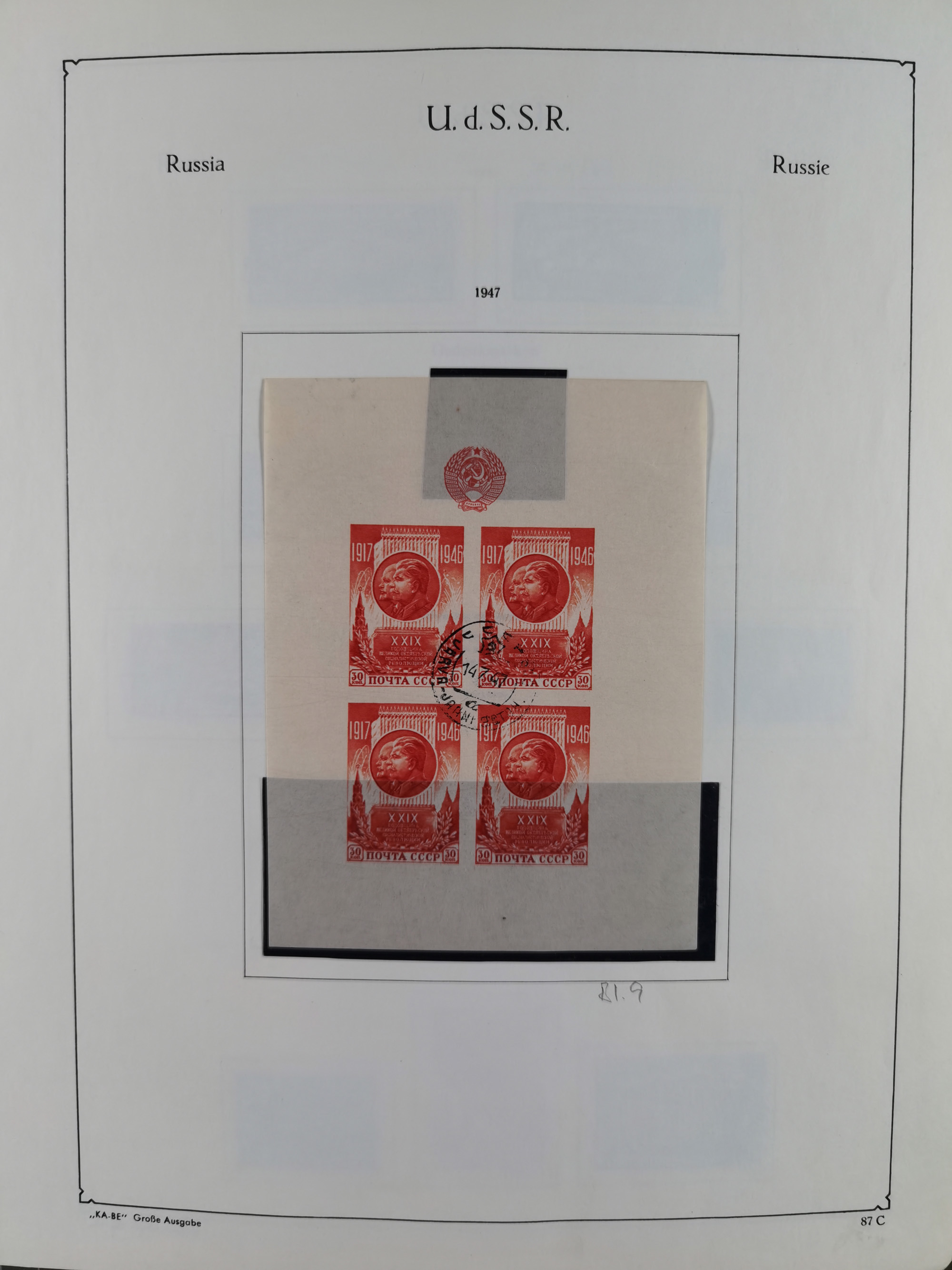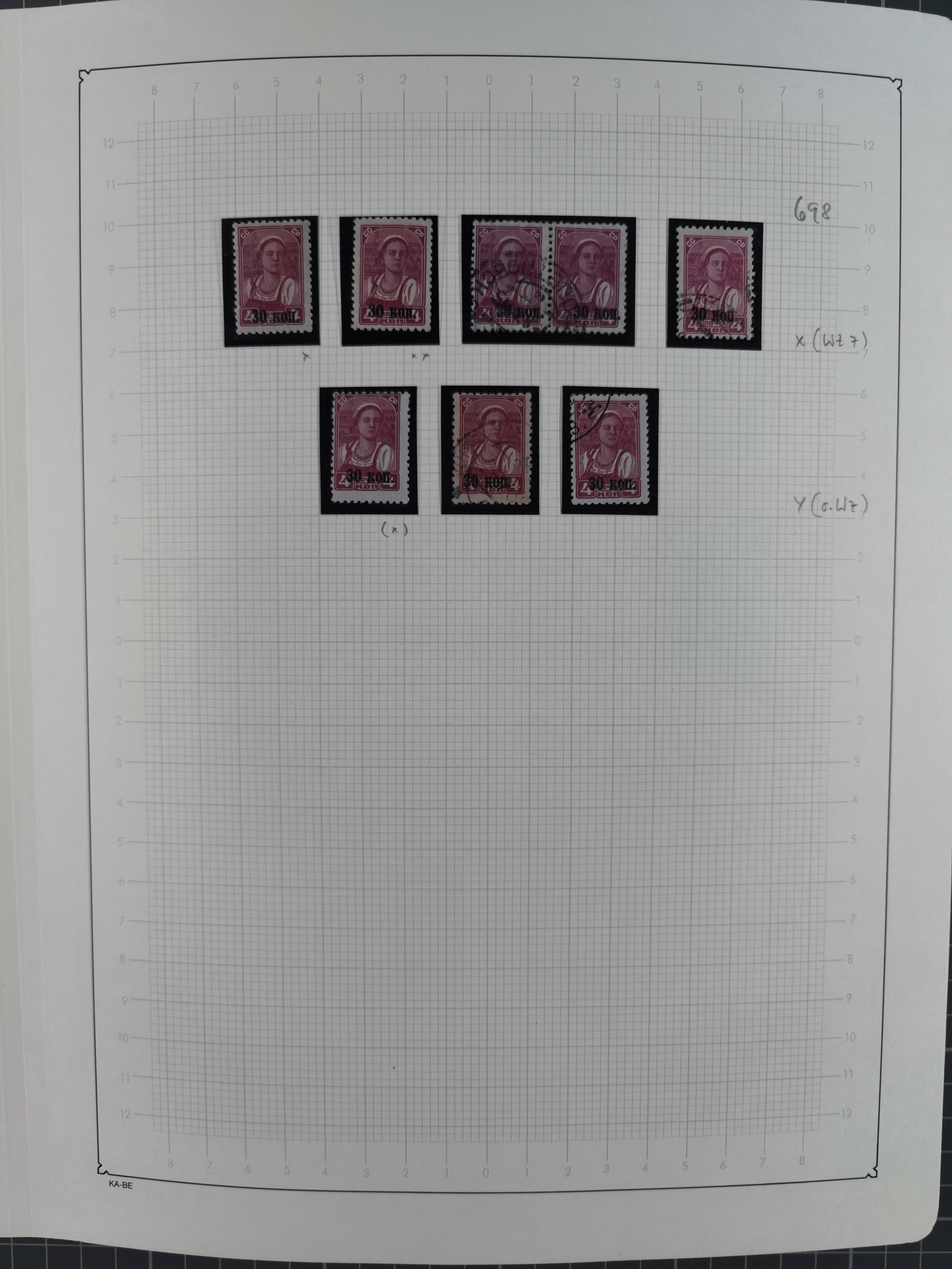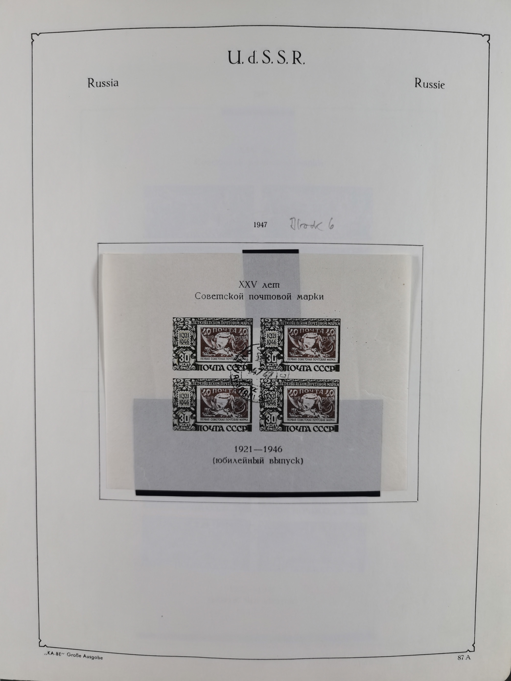 1917/25, mint never hinged/unused and used collection with a few covers, including Control Exchange and Postage Dues, specialized with shades, plate flaws, overprint varieties, many multiples including large part sheets and panes, some with printer´s plate numbers, some better items with Mi.-Nr. 185A-B used, 214c unused, 165-168 unused in large multiples, etc., together with a fine group of covers, including a fine local postcard with mixed franking RSFSR and Soviet Union tied by cds “MOSCOW 12 10 23”, a few forgeries noted, some occasional faults to be expected, overall in very good and fresh condition, a few values signed Mikulski or Ebnet. A pleasant assembly, neatly mounted in one album