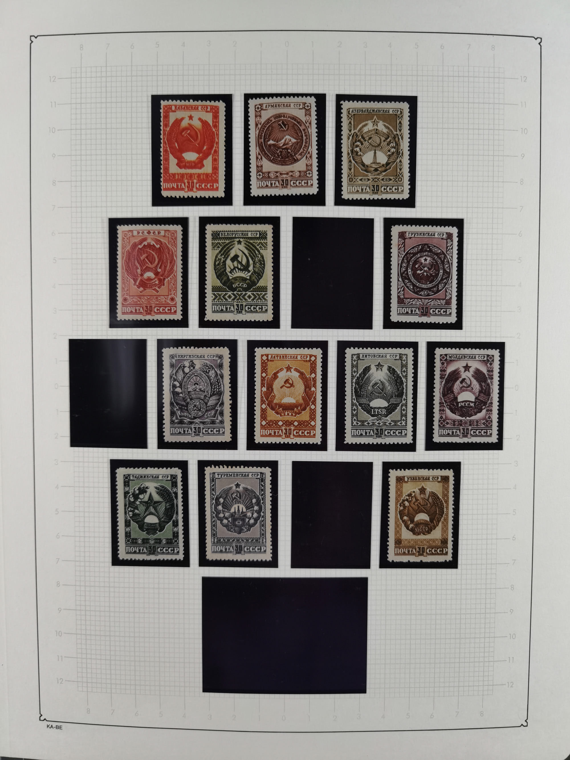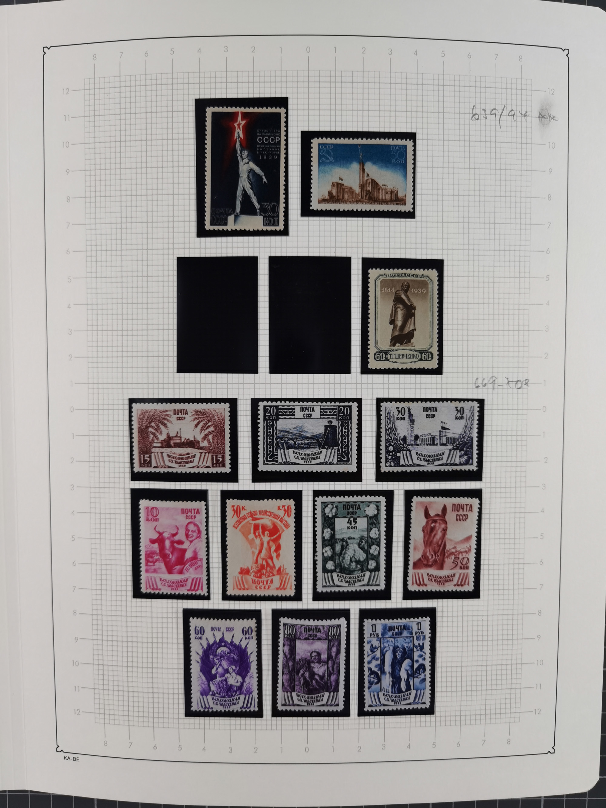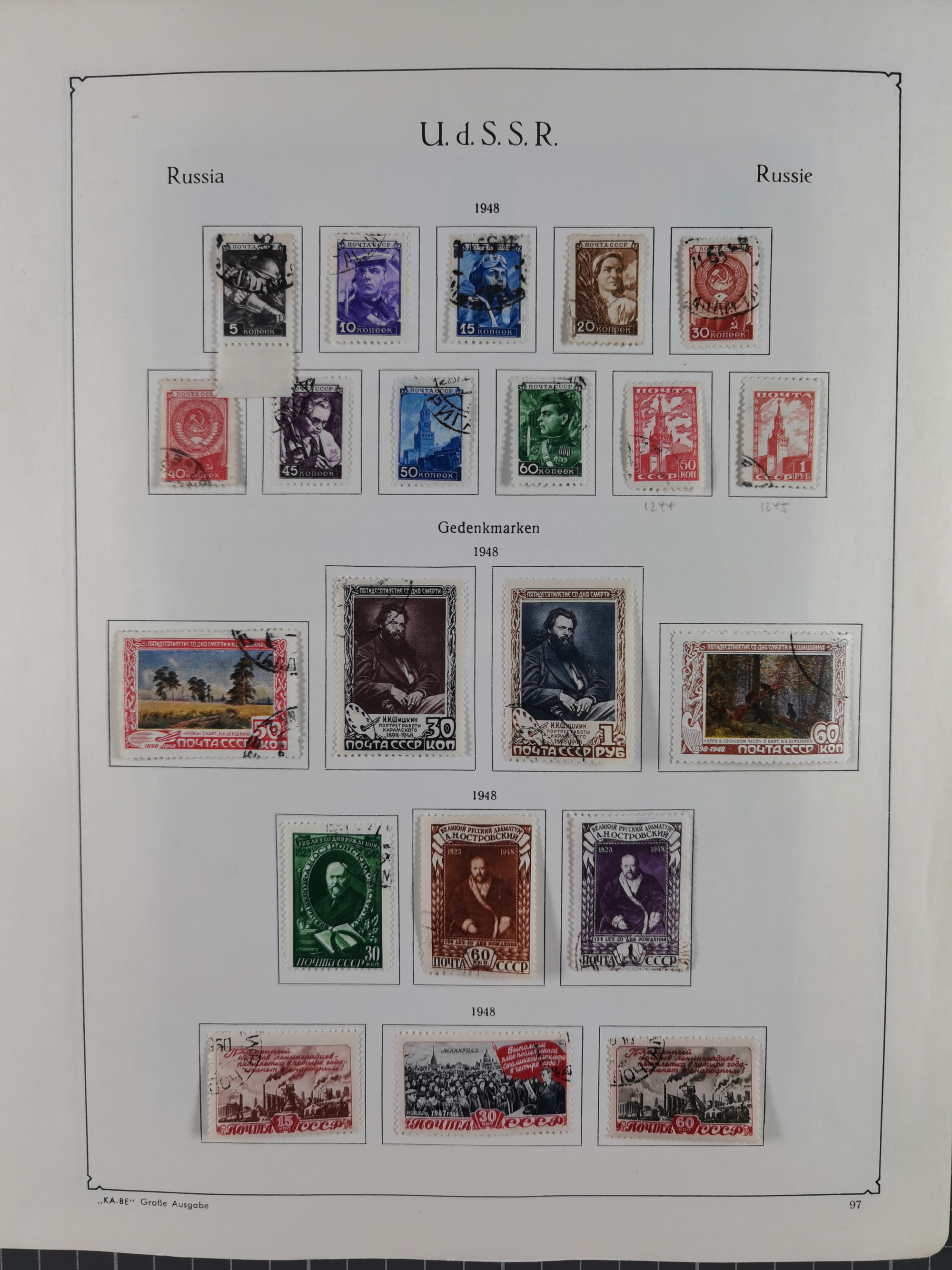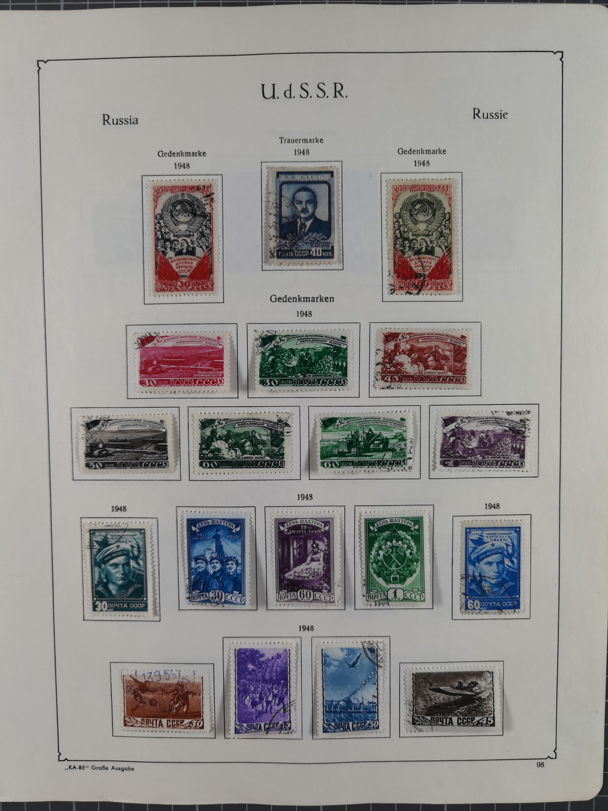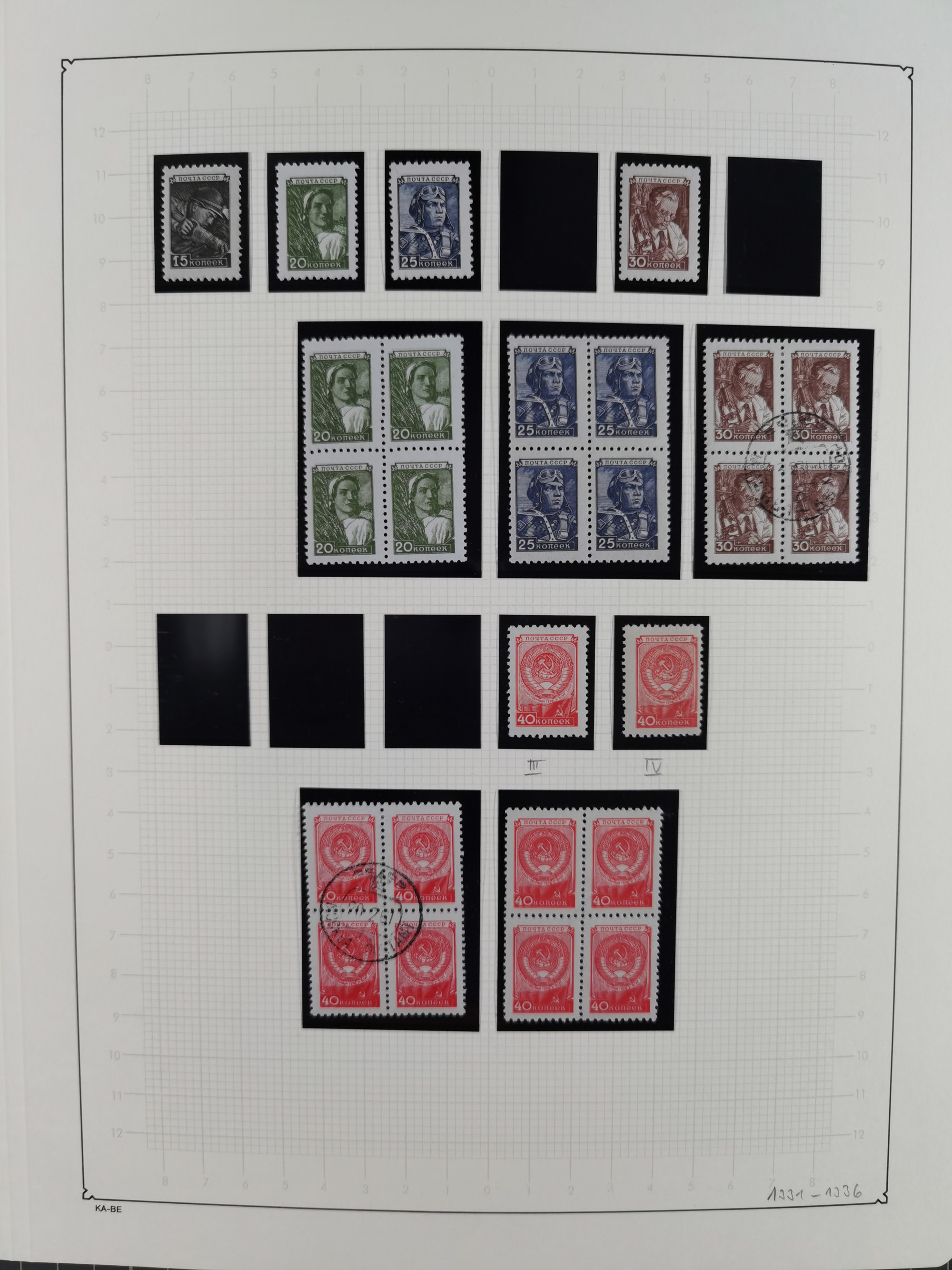 1929/48 (ca.), Soviet Union Definitives, mint never hinged/unused and used collection, highly specialized with types and printing methods up to the 50 kopek value, hundreds of adhesives with some large multiples included, an unusual assembly of that field, the occasional fault, overall in good condition, many neatly mounted on album pages (ex Mi.-Nr. 365-1336)