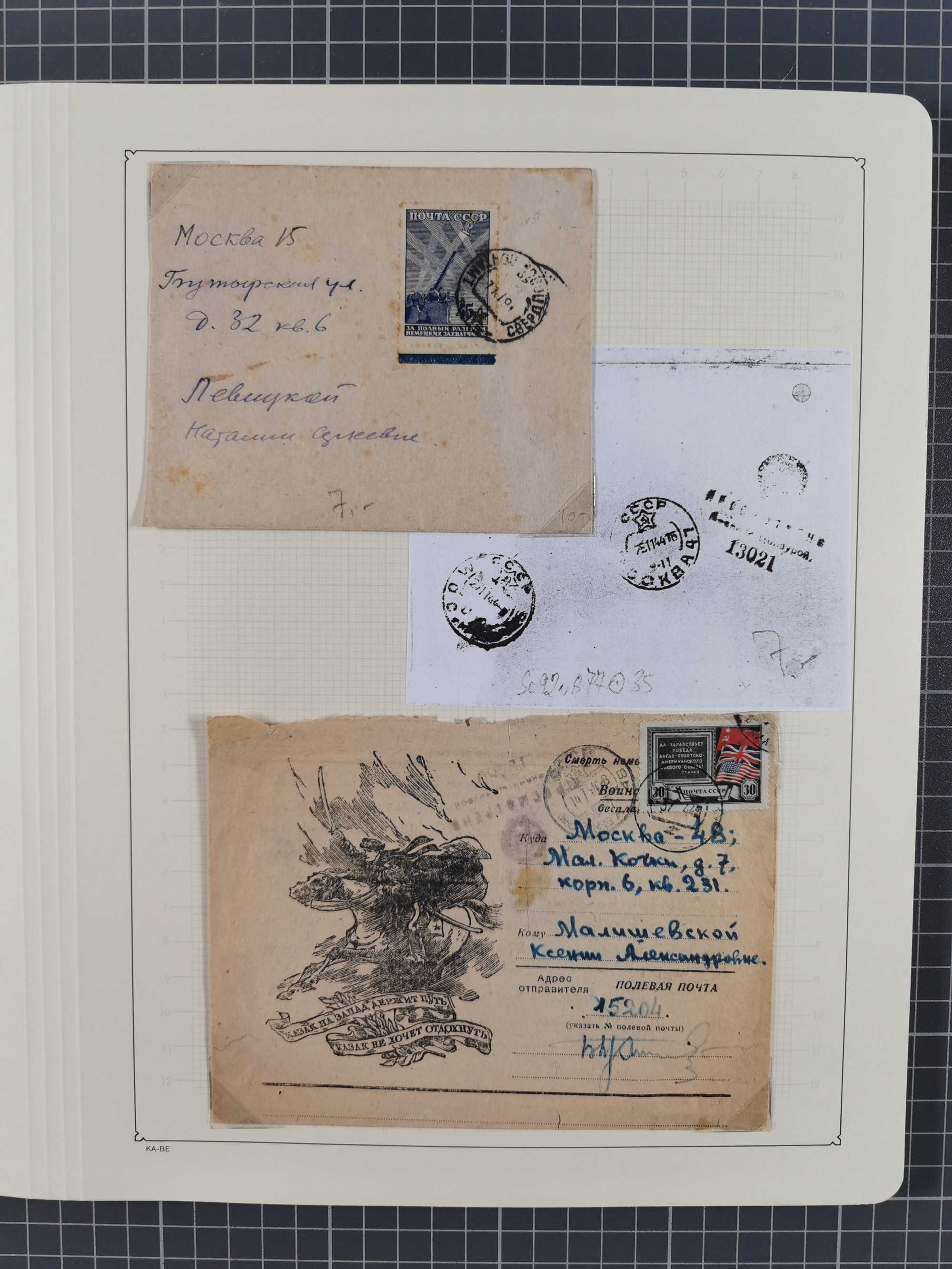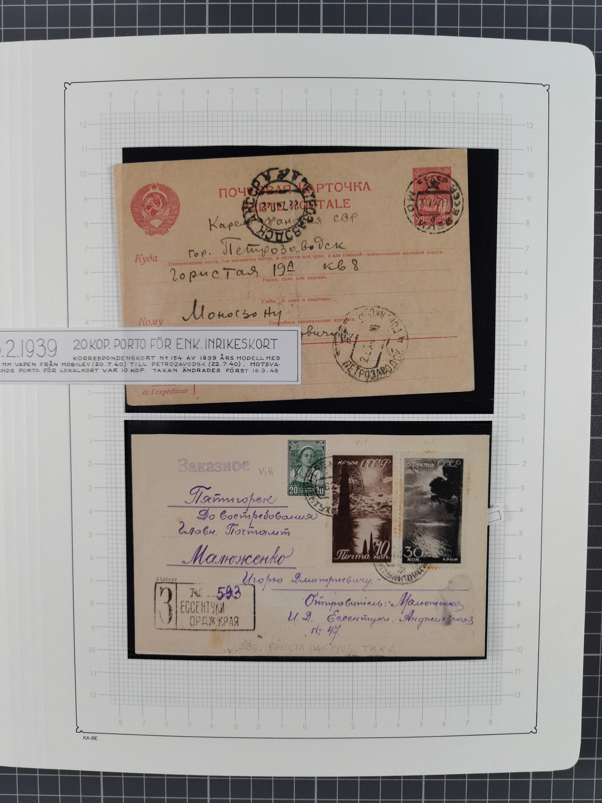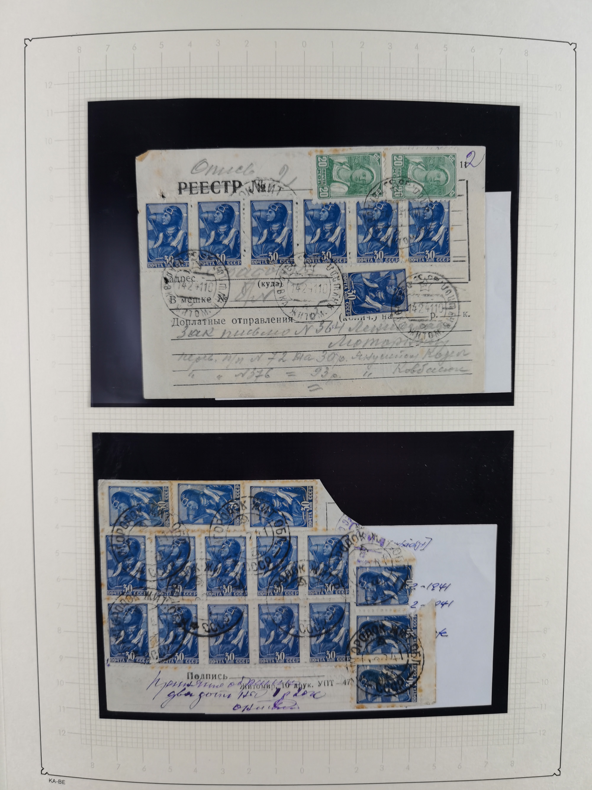 1918/27 (ca.), RSFSR and Soviet Travelling Post Offices and Railway Stations, collection of over 50 covers and cards, some better items with “1” PETROGRAD-MOSCOW 1921, “ROSTOV - 14 - MOSCOW” 1927, “ROSTOV - 20 - KHARKOV” 1923, “VYATKA - 34 - MOSCOW” 1925, “POLTAVA -KIYVSKAYA UKRAINA” 1928, “MOURMANSK - 36 - LENINMGRAD” 1930, “KRASNOYARKS - 188 - NIKOLAYEVSK” 1925, “KHABAROVSK - 285 - VLADIVOSTOK” 1925, “BAKHMACH - 309 - BIRZULA” 1927, etc., together with a group of used off and on pieces, many fine strikes. Mixed condition as to be expected, a most unusal assembly, neatly mounted on album pages in one binder