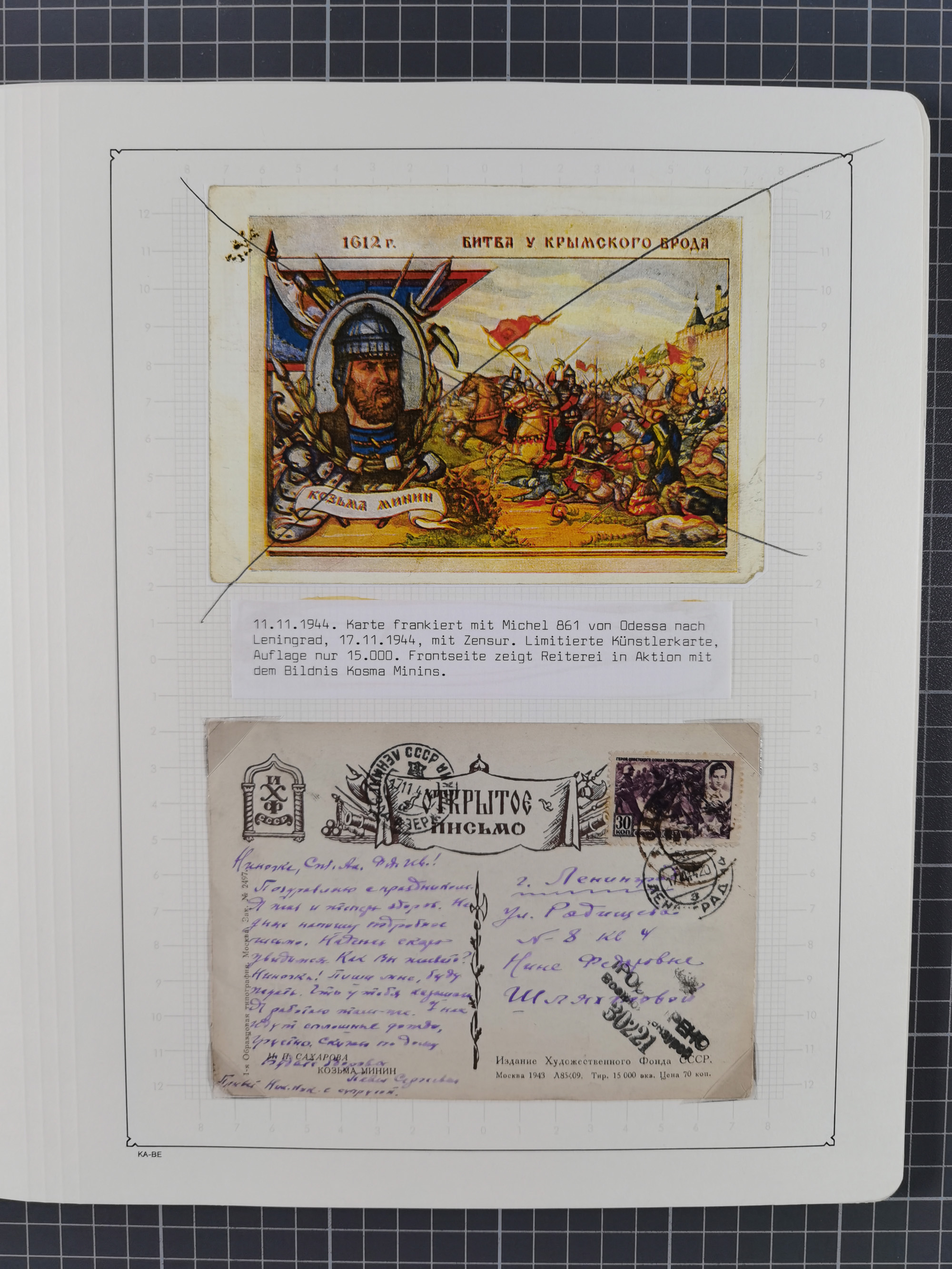 1941/45, Great Patriotic War, collection of circa 60 covers and cards, including Russian Field Post Offices mail, censor marks, Navy Fleet mail, etc., together with two scarce caricature postcards depicting Hitler and Himmler, some occasional faults as to be expected for this material, overall in good condition, a scarce and interesting group