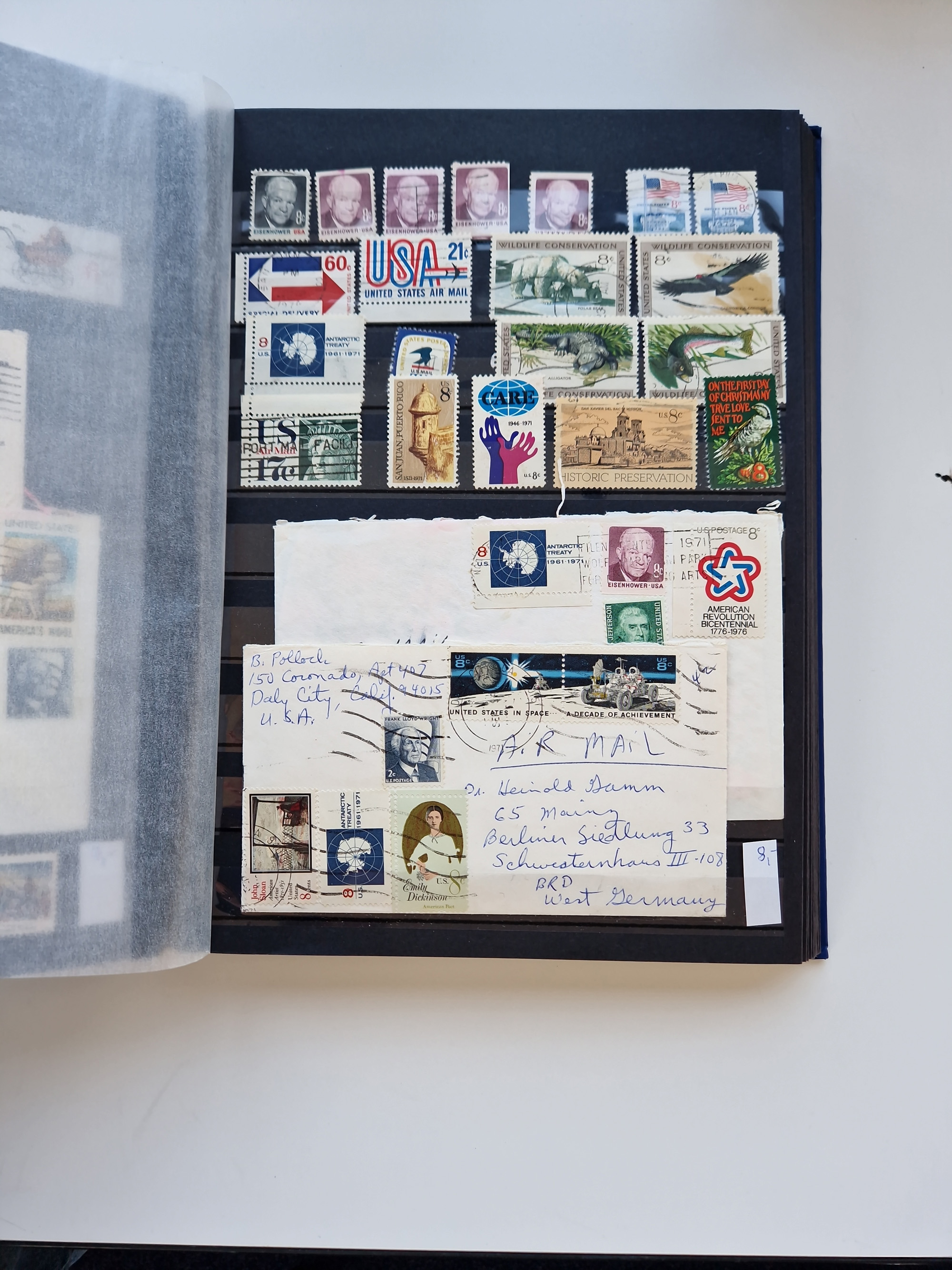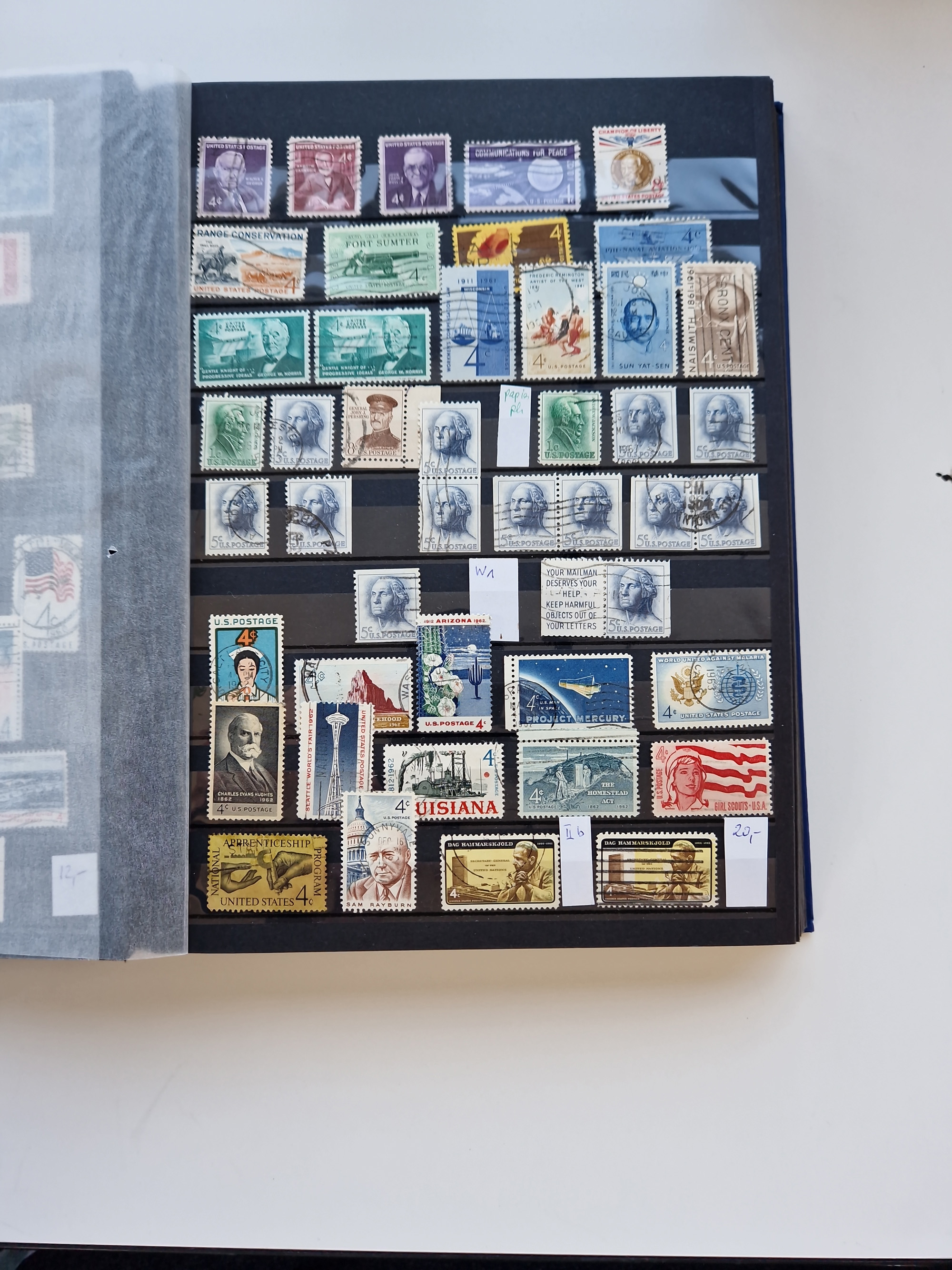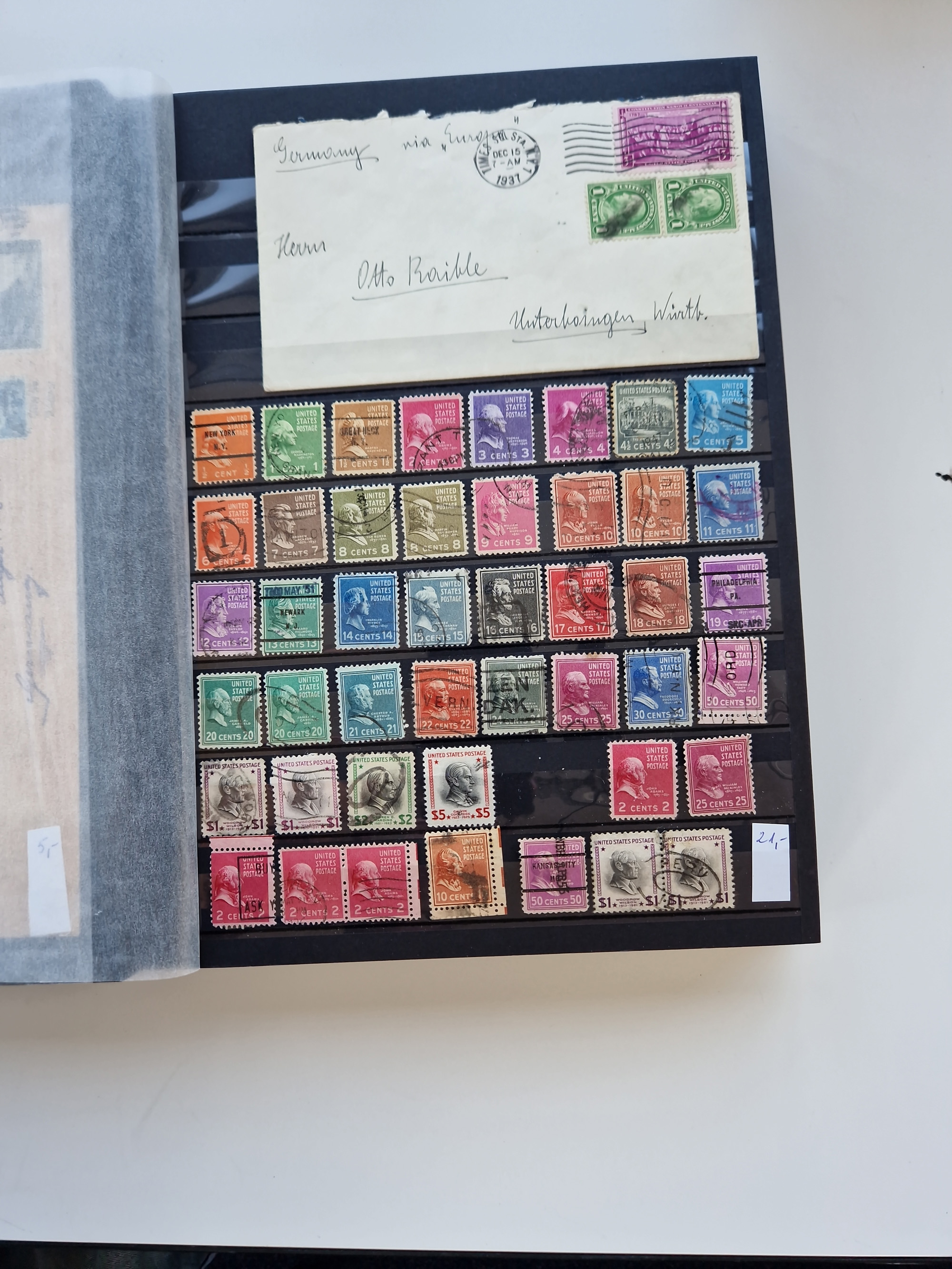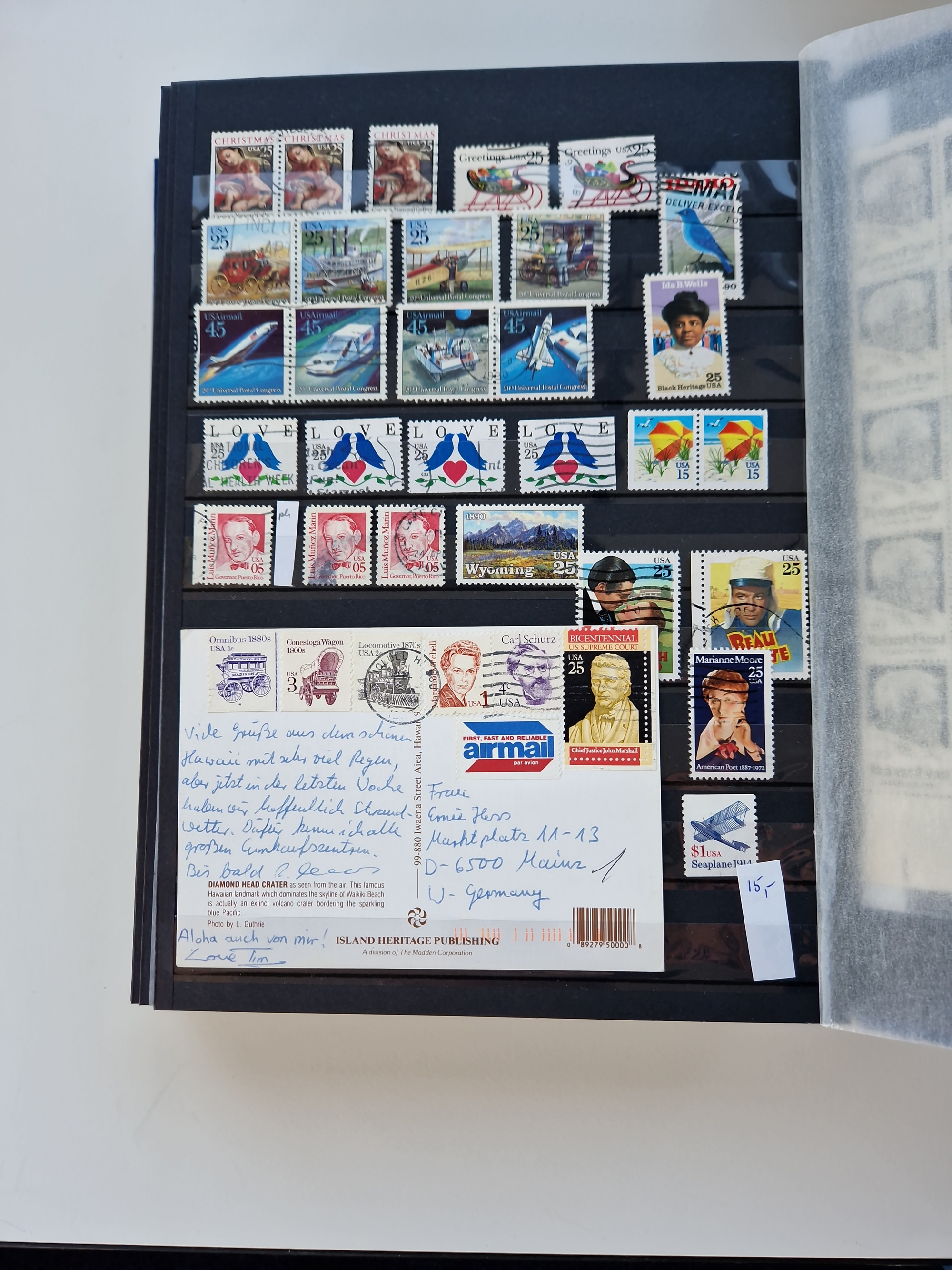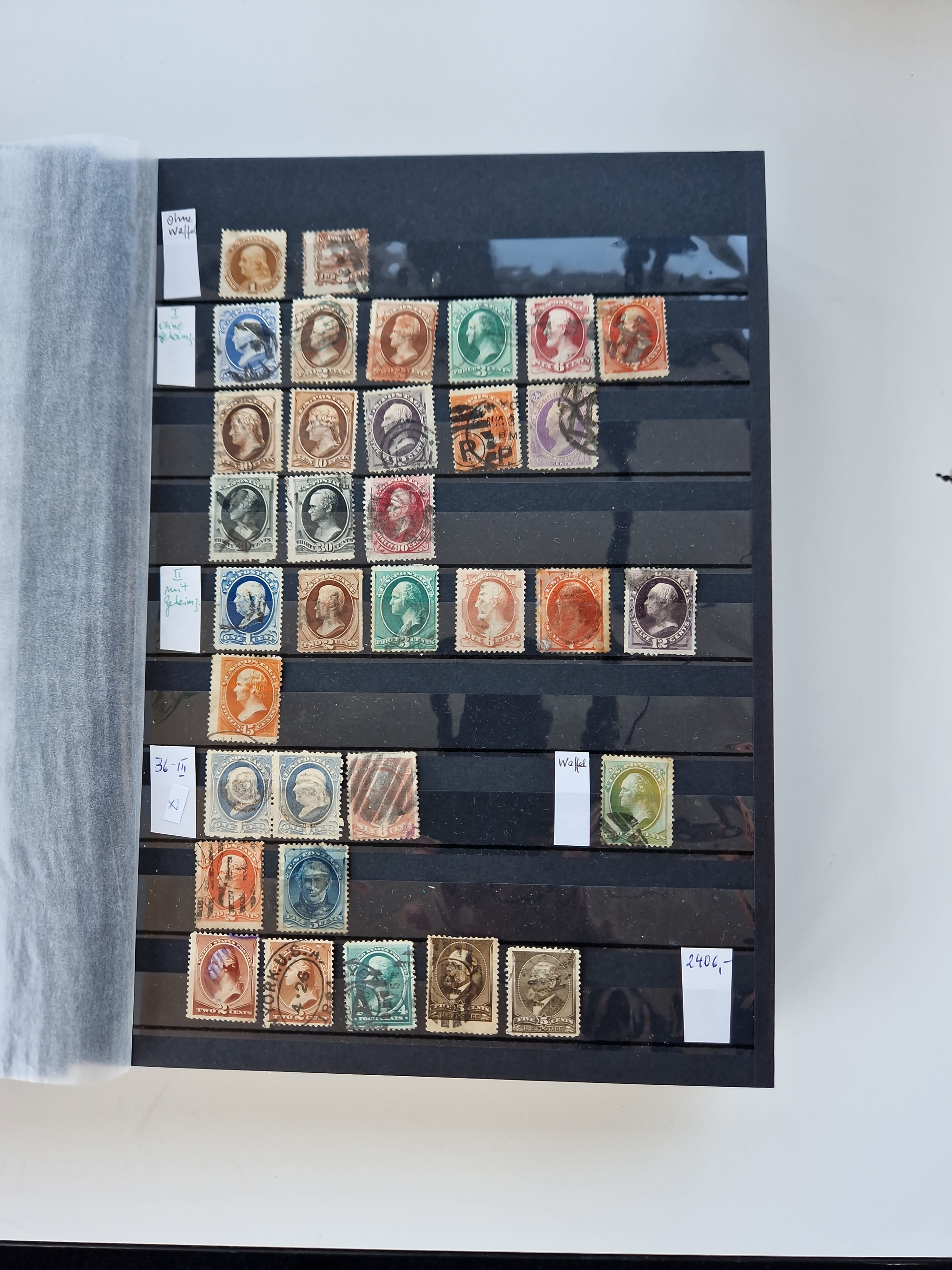 1847/2000, mint never hinged/unused and used collection with some covers, incl. Officials, Revenues, American areas with Hawai, Porto Rico and Canal Zone, some better items with Scott-Nr. 1(2), 17, 77/91/98(8), 119(3) all used, 241 unused with sheet margin, 630 cpl. pane unused(2) incl. the plate flaw “dot over S”, 2870 Bill Picket Recalled pane of 20, etc., a large selection of pre-cancels, some booklets, a selection of Revenues with some high values, some specialities with a 1870 split grill, Blood´s dispatch 1 c. bronze/black on 1853 lettersheet, 1864 15 cents franking tied by Cork cancel on envelope from New York to Braunschweig, etc., together wih a few duplicates, mixed condition, in eight albums and some stockcards