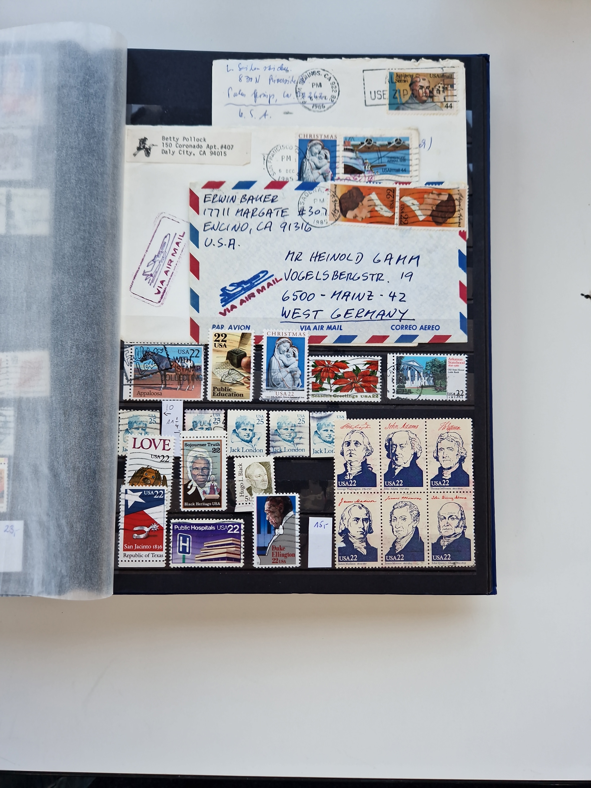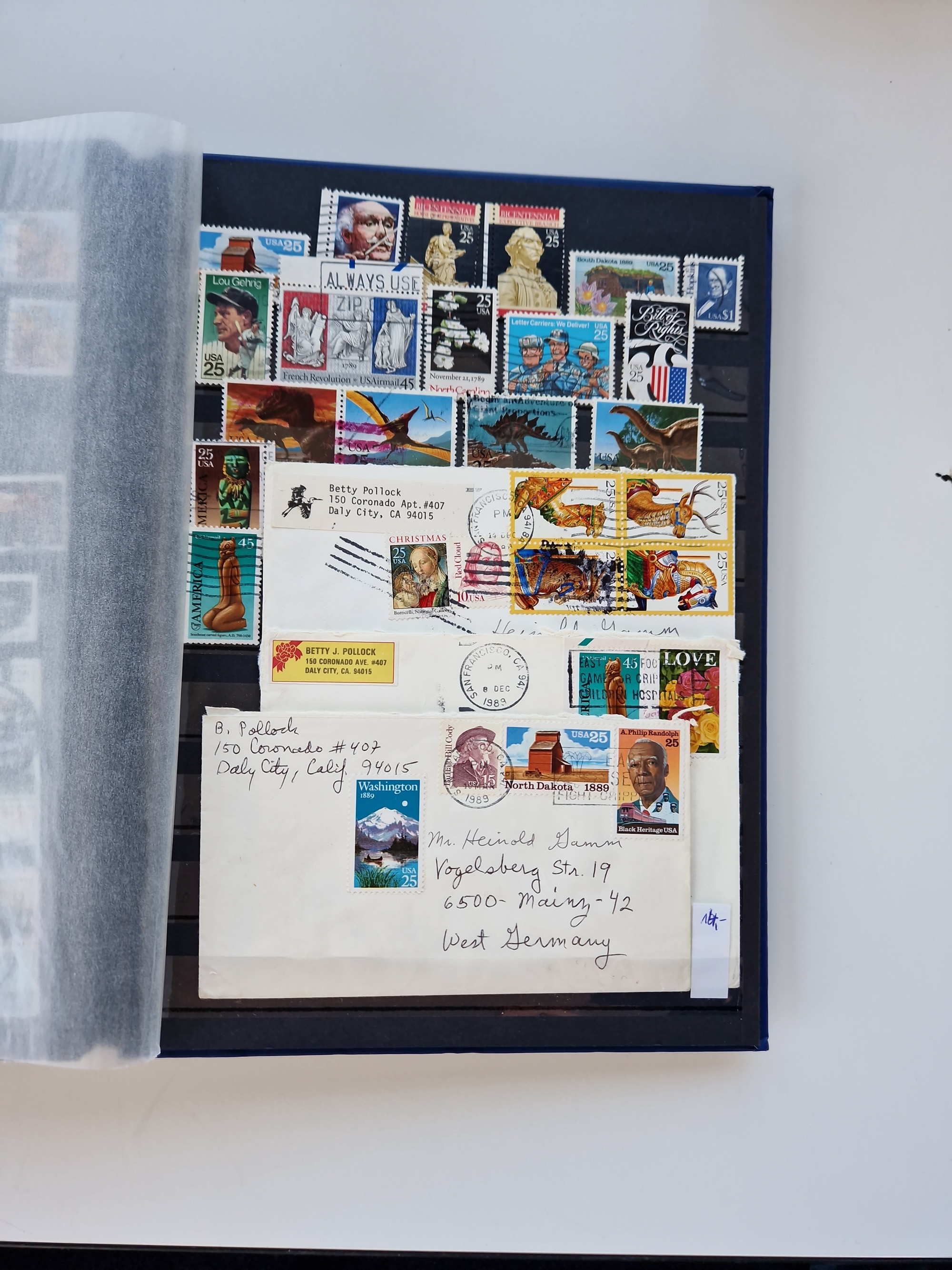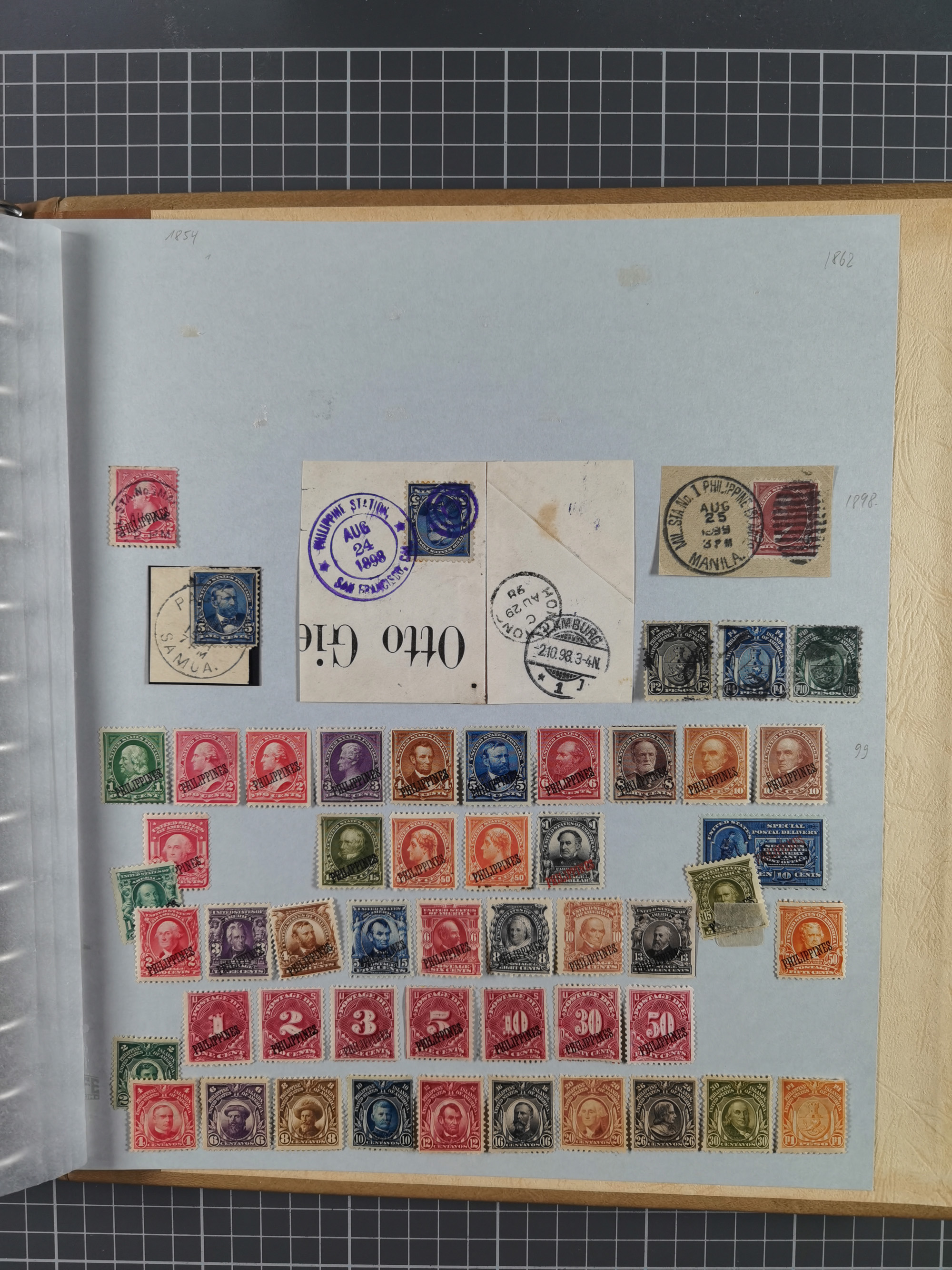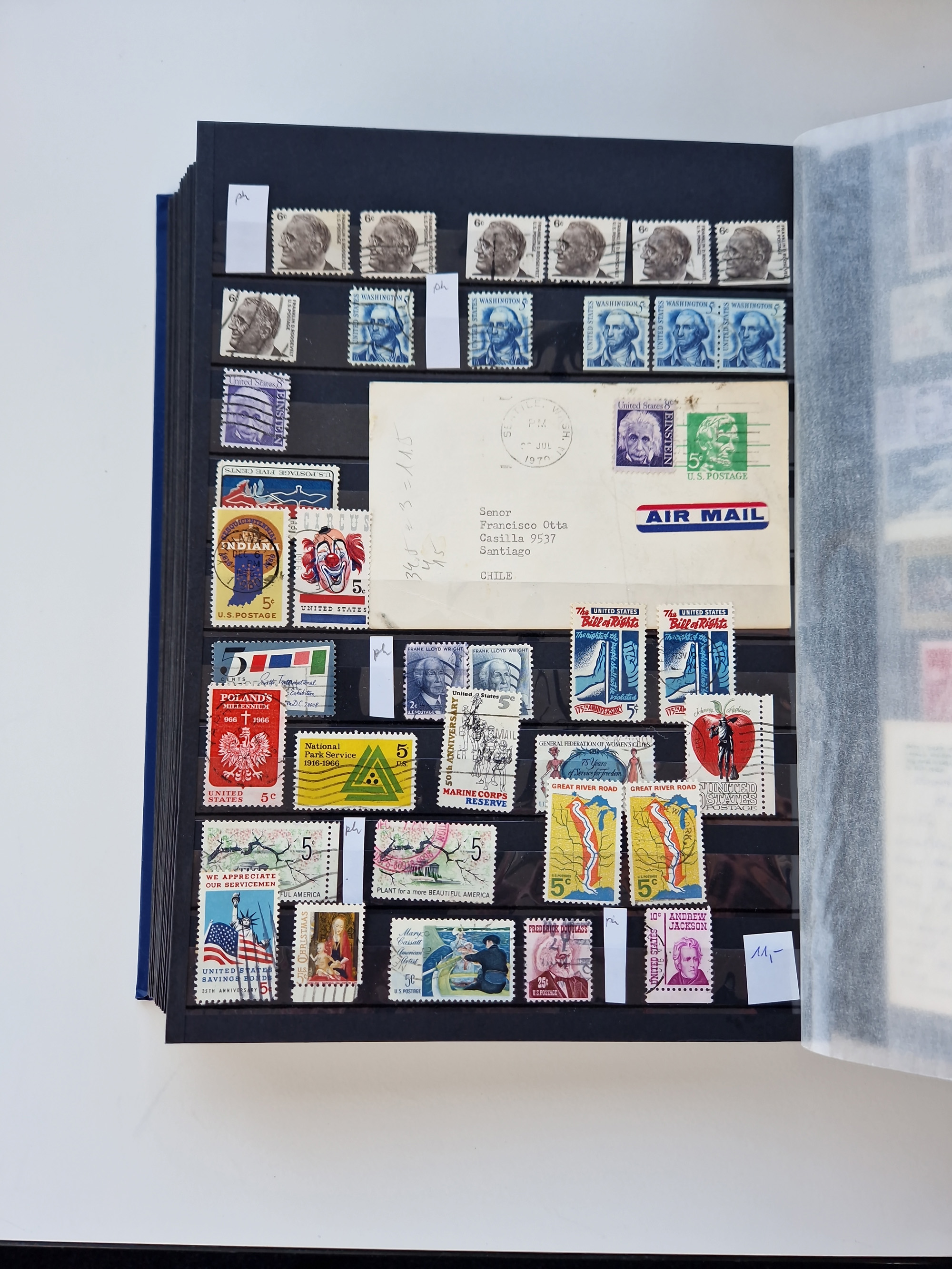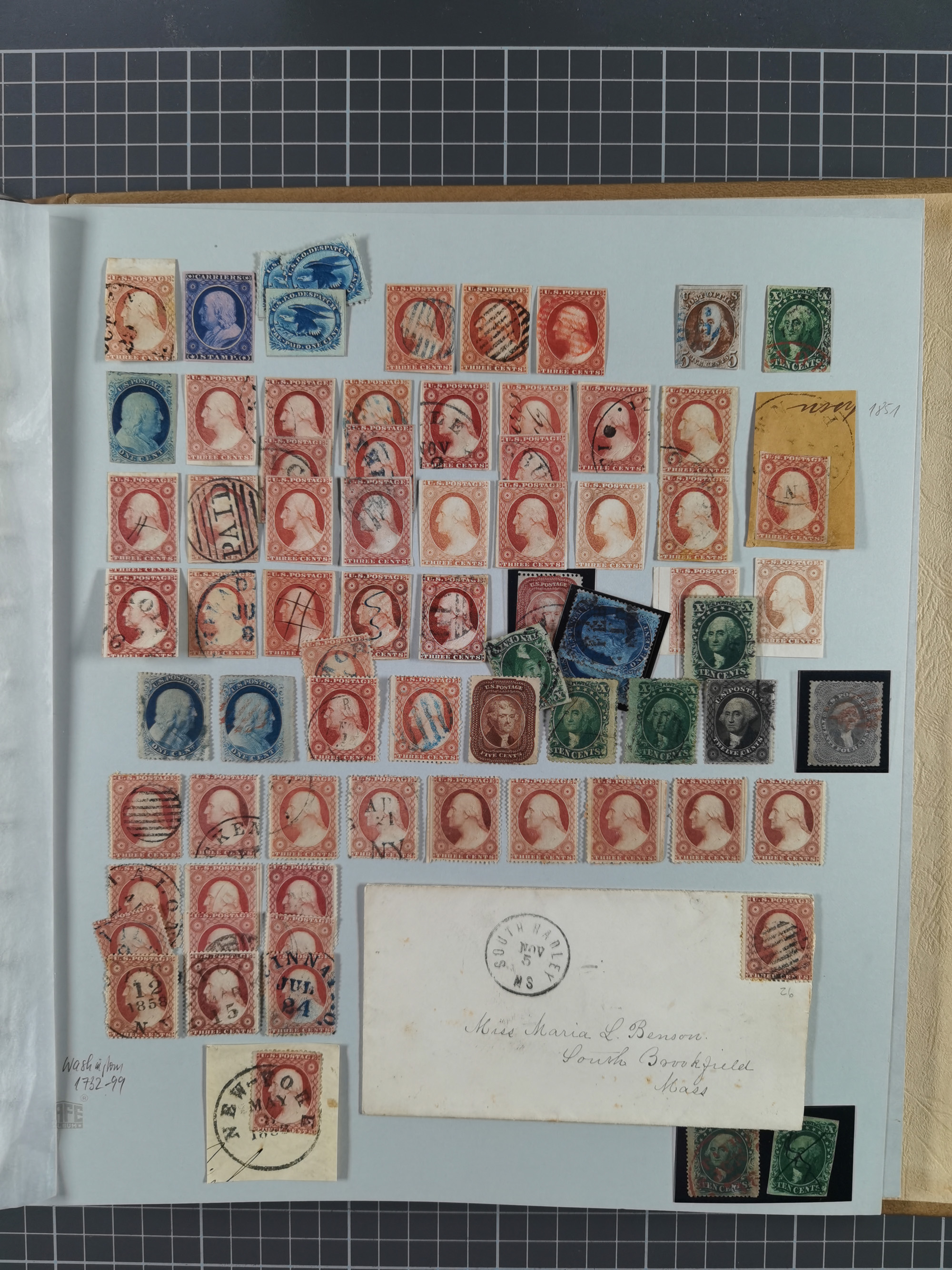 1847/2000, mint never hinged/unused and used collection with some covers, incl. Officials, Revenues, American areas with Hawai, Porto Rico and Canal Zone, some better items with Scott-Nr. 1(2), 17, 77/91/98(8), 119(3) all used, 241 unused with sheet margin, 630 cpl. pane unused(2) incl. the plate flaw “dot over S”, 2870 Bill Picket Recalled pane of 20, etc., a large selection of pre-cancels, some booklets, a selection of Revenues with some high values, some specialities with a 1870 split grill, Blood´s dispatch 1 c. bronze/black on 1853 lettersheet, 1864 15 cents franking tied by Cork cancel on envelope from New York to Braunschweig, etc., together wih a few duplicates, mixed condition, in eight albums and some stockcards