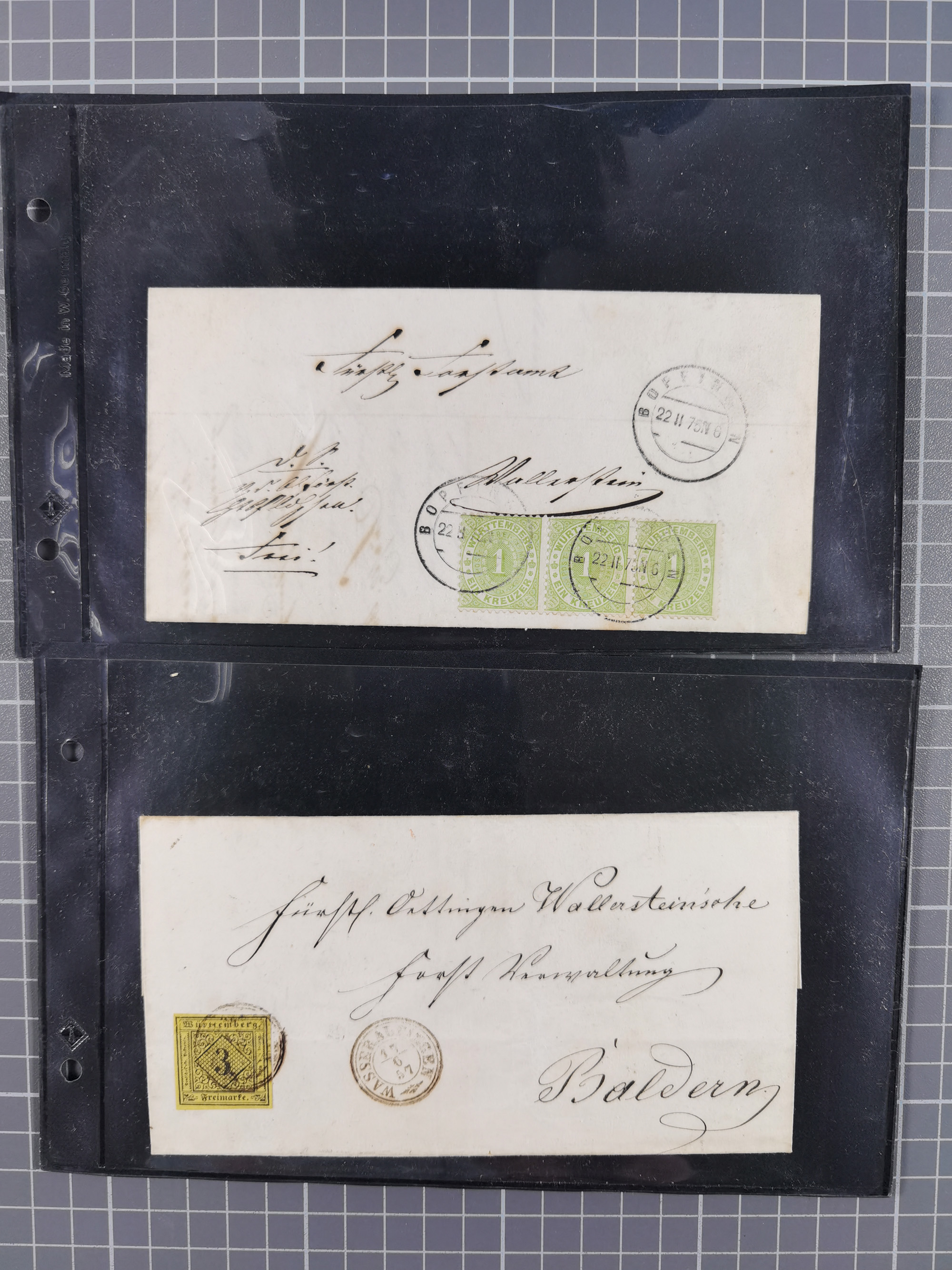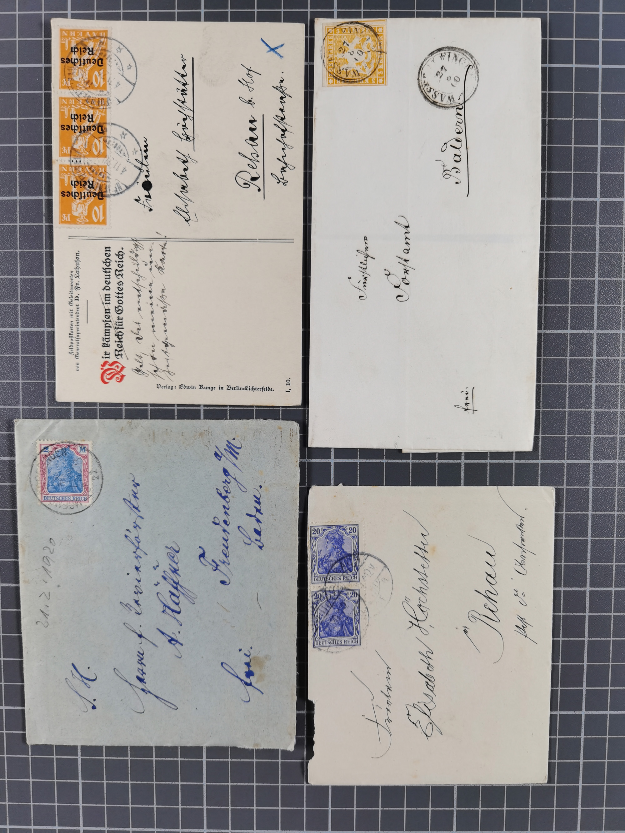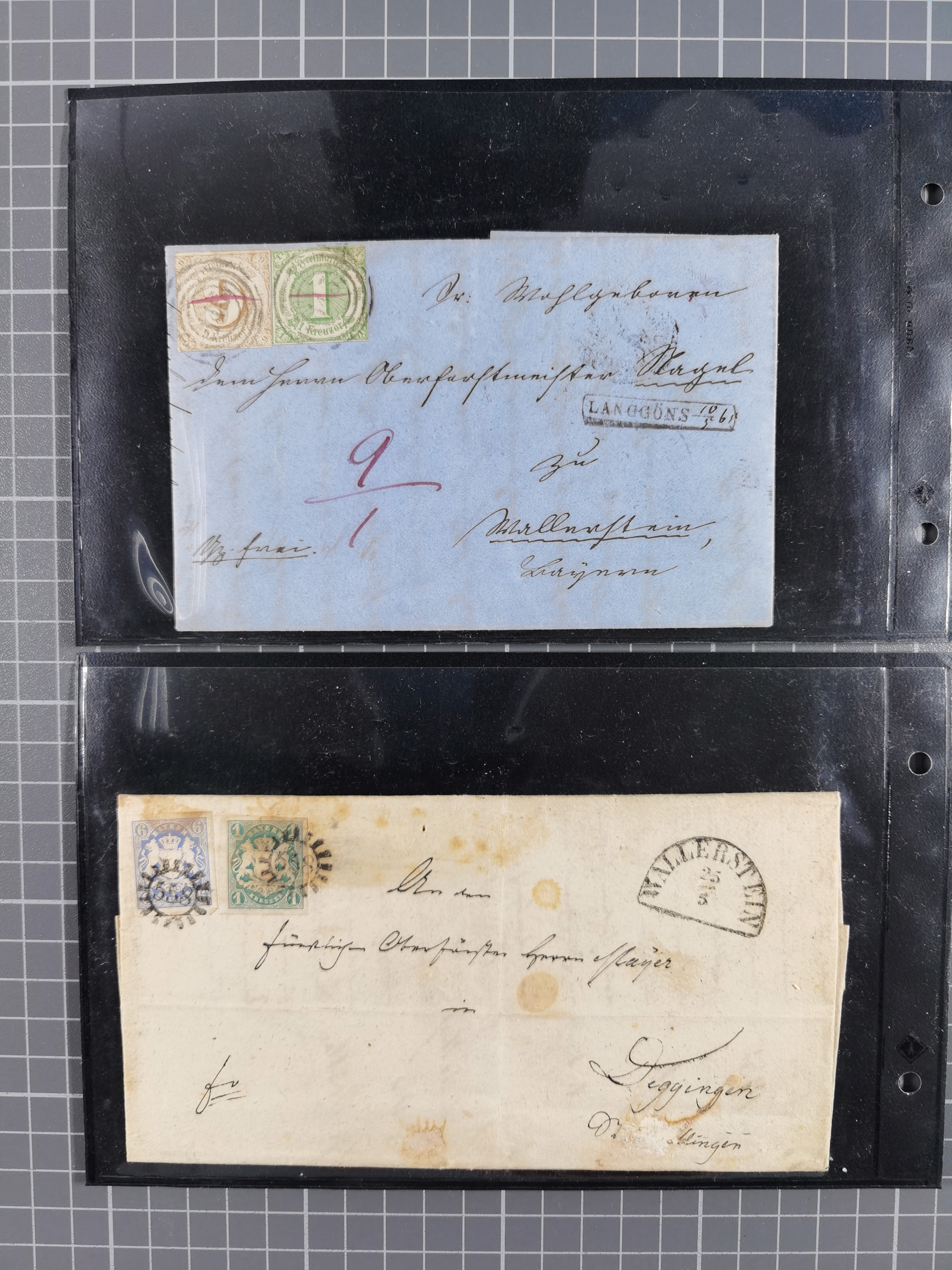 1865/1945, lot with approx. 40 covers, cards and postal stationery, including old Germany with Württemberg frankings and Thurn & Taxis cover with Mi.-Nr. 20+34 and cds. ‘LANGGÖNS’ as well as some Europe , with value cover Italy 1936, plus small preprinted booklet ‘Documents from Germany's most beautiful and most difficult days’