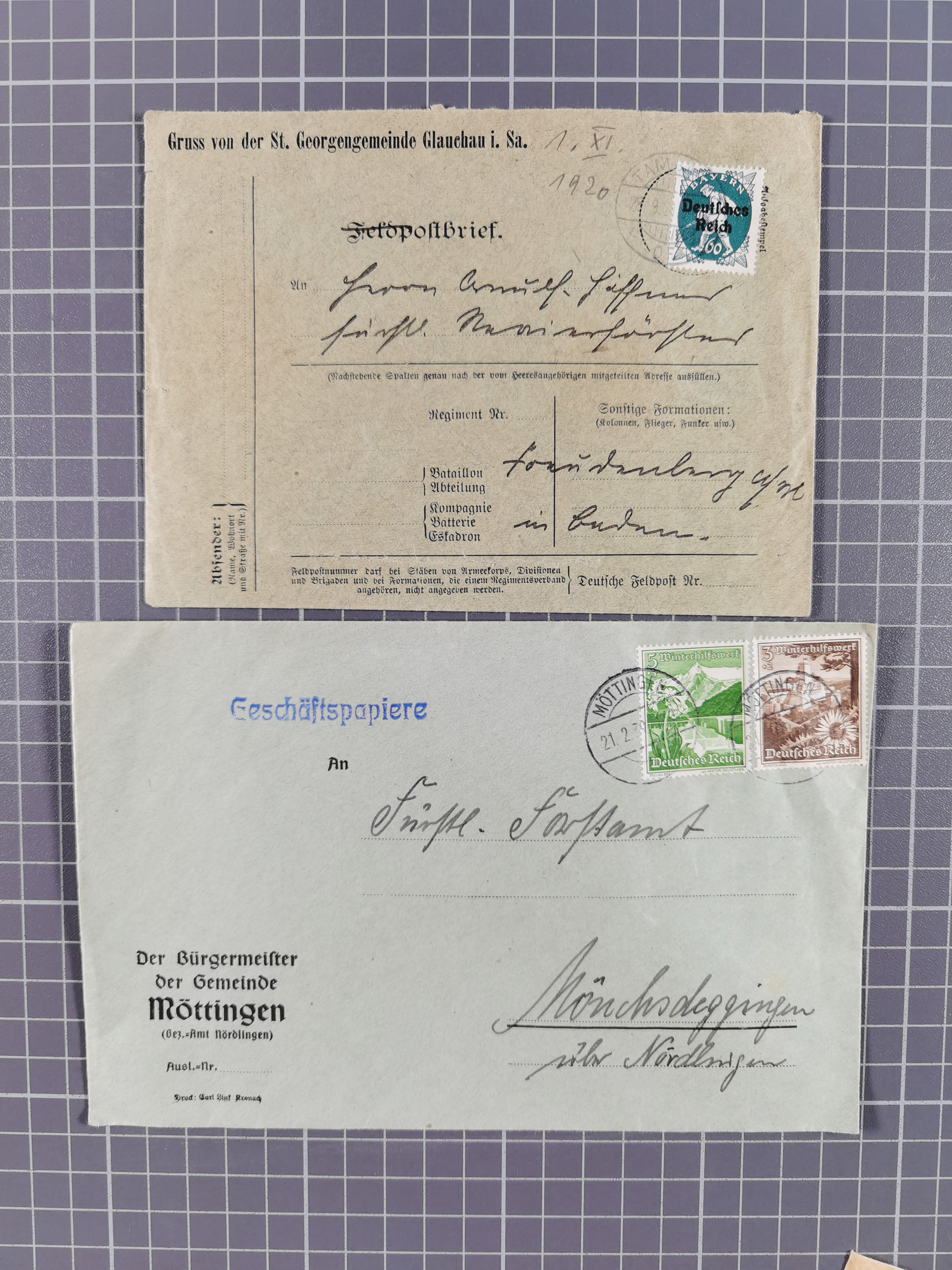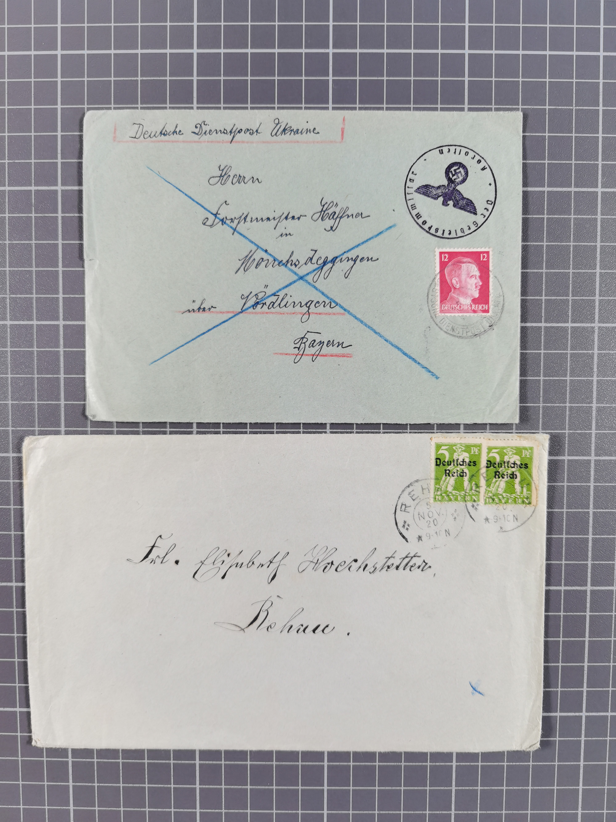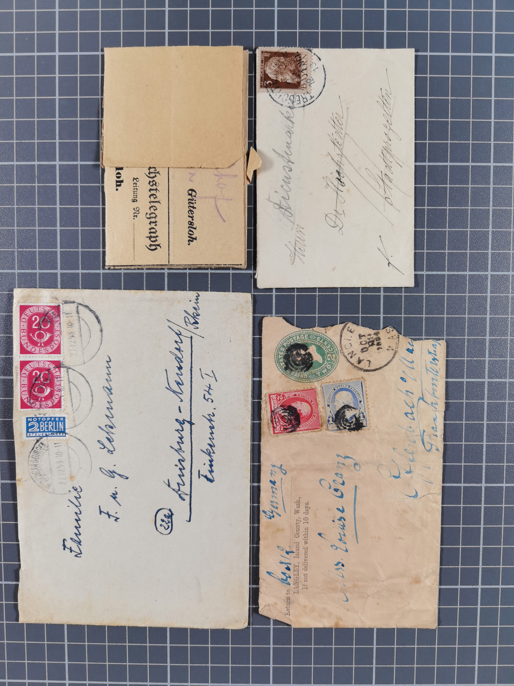 1865/1945, lot with approx. 40 covers, cards and postal stationery, including old Germany with Württemberg frankings and Thurn & Taxis cover with Mi.-Nr. 20+34 and cds. ‘LANGGÖNS’ as well as some Europe , with value cover Italy 1936, plus small preprinted booklet ‘Documents from Germany's most beautiful and most difficult days’