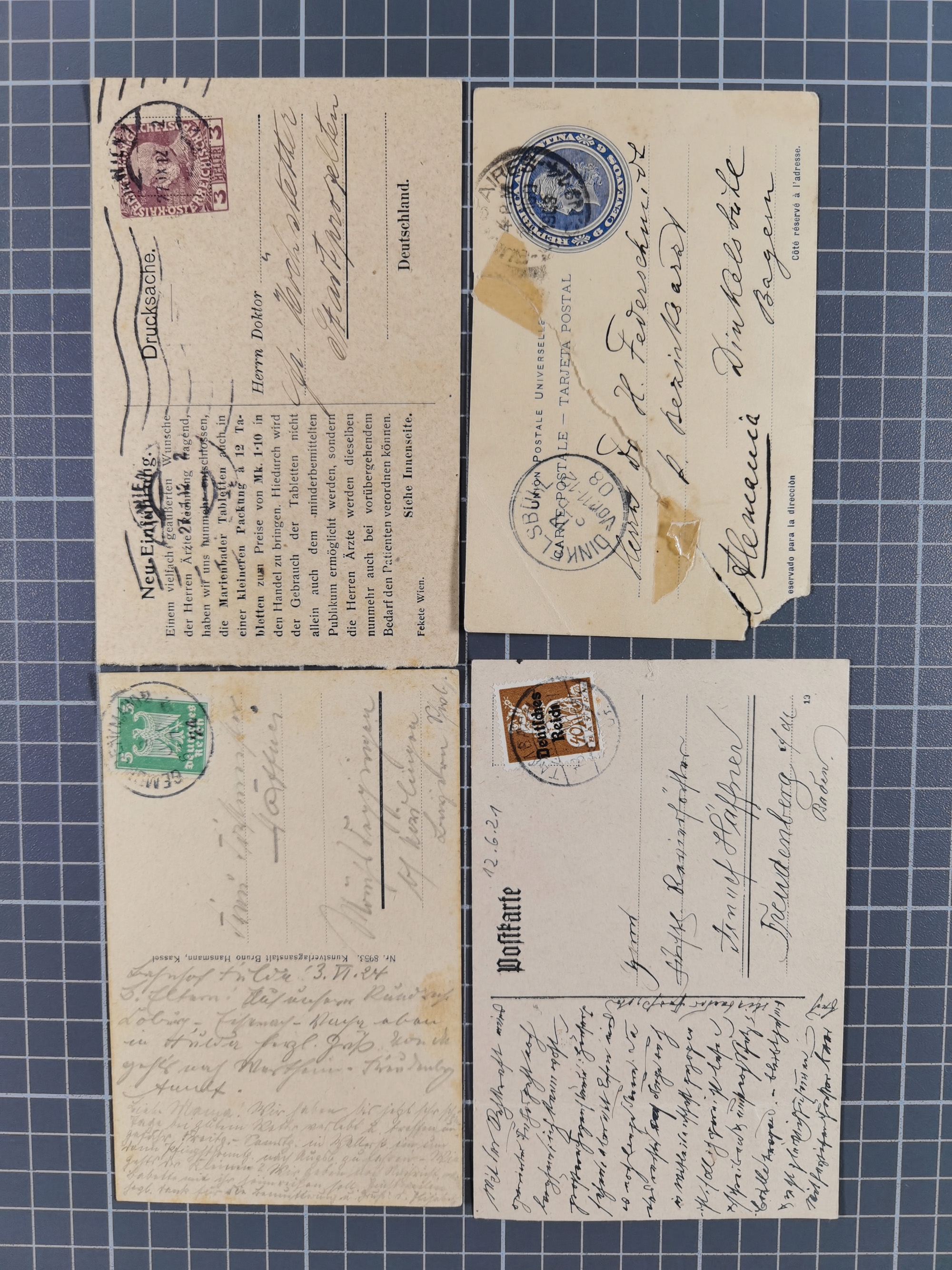 1900/90, einige hundert Briefe, Karten und GSK, dabei Ungarn mit Ansichtskarten in zwei Bänden, Ansichtskarten von Lüneburg und ein Band Briefe Deutschland mit u.a. sieben Karten Dt. Kolonien und 12 Satzbriefen von Memel