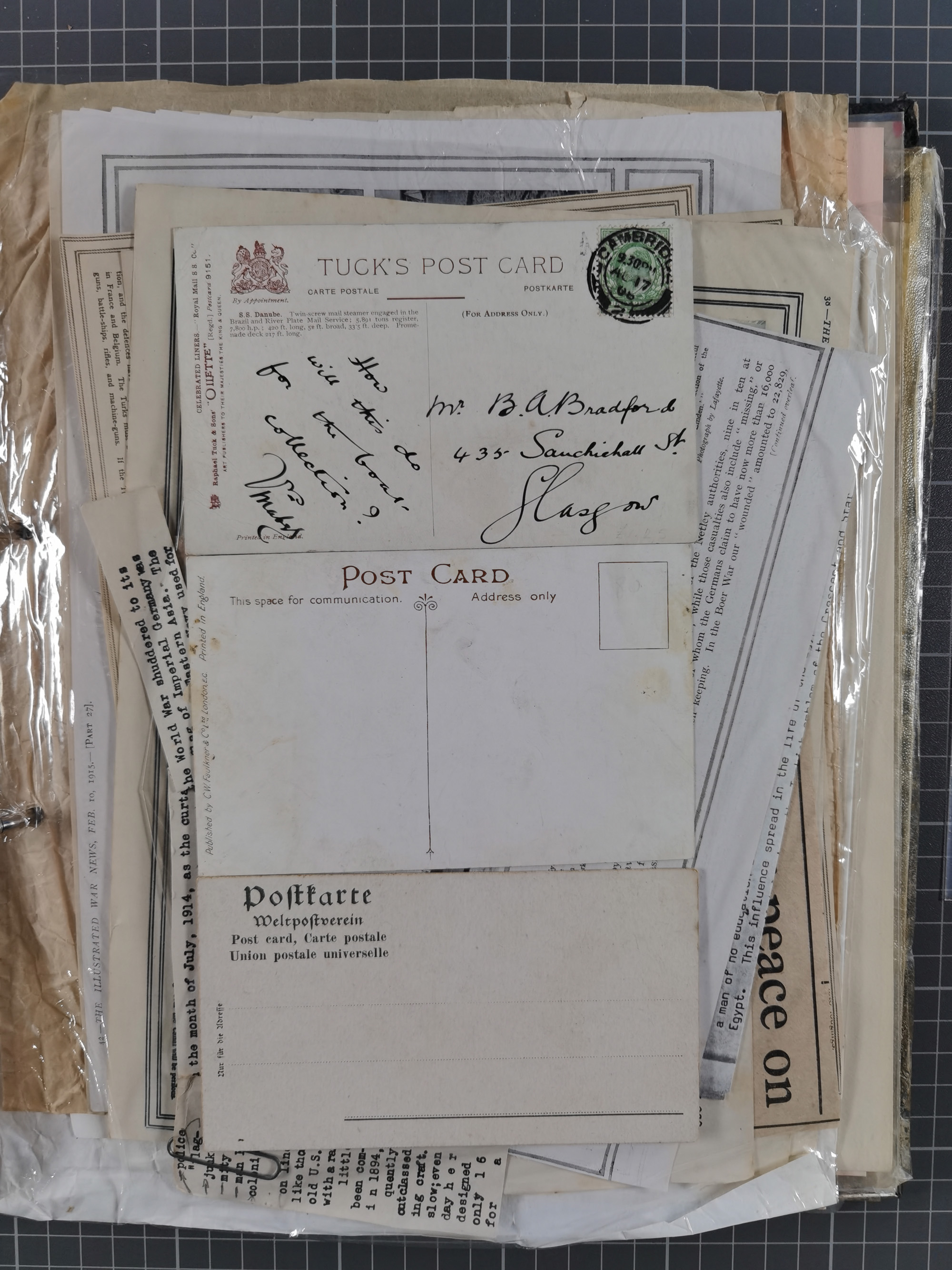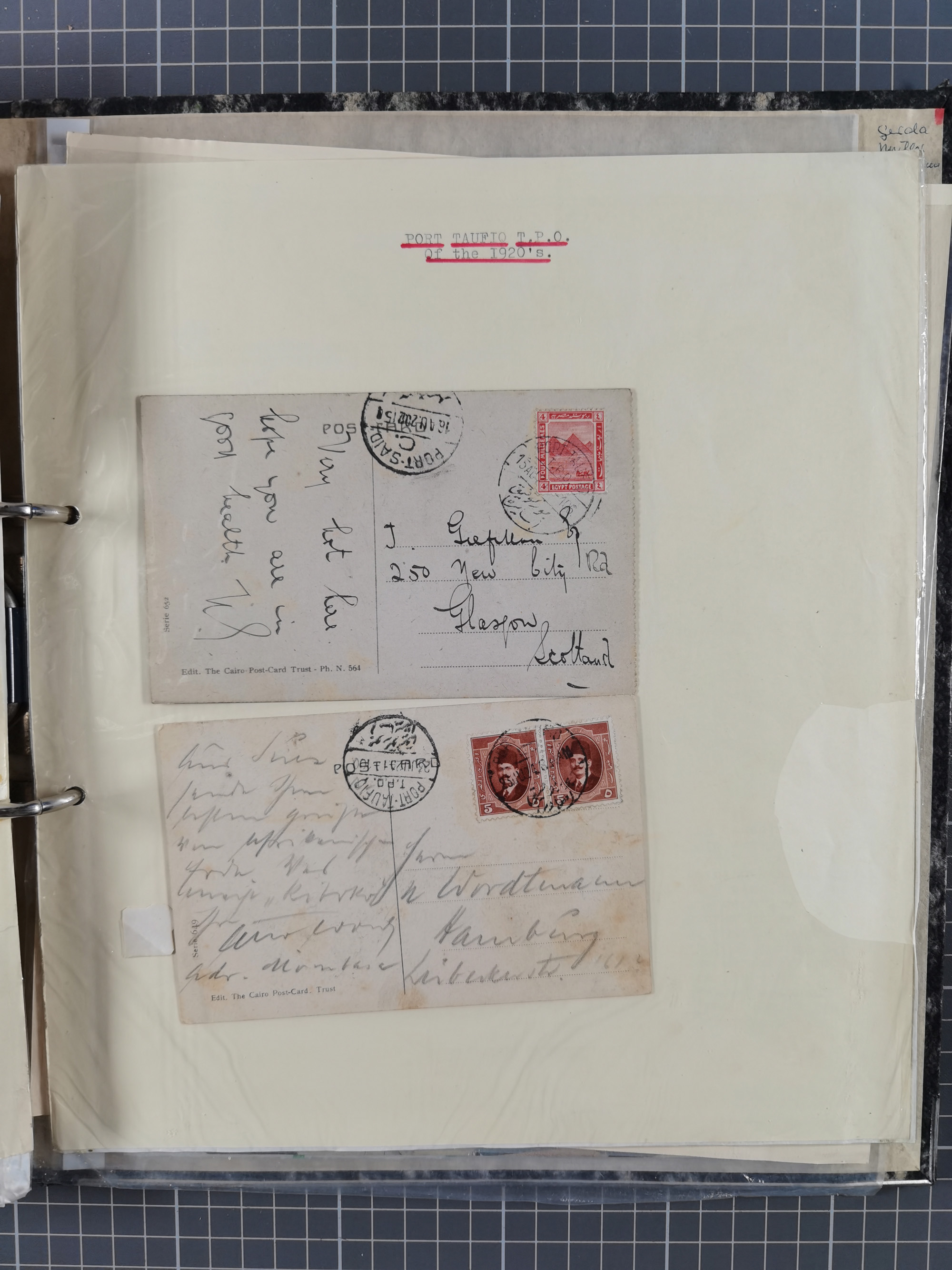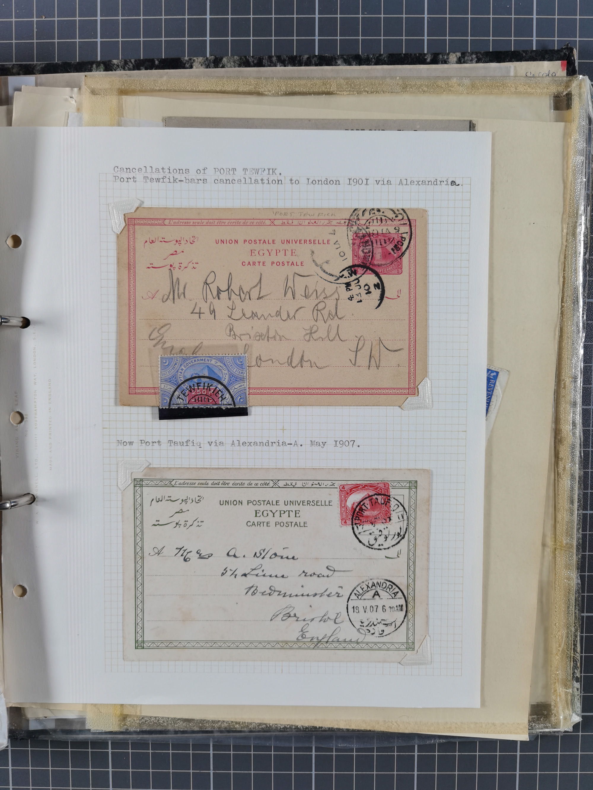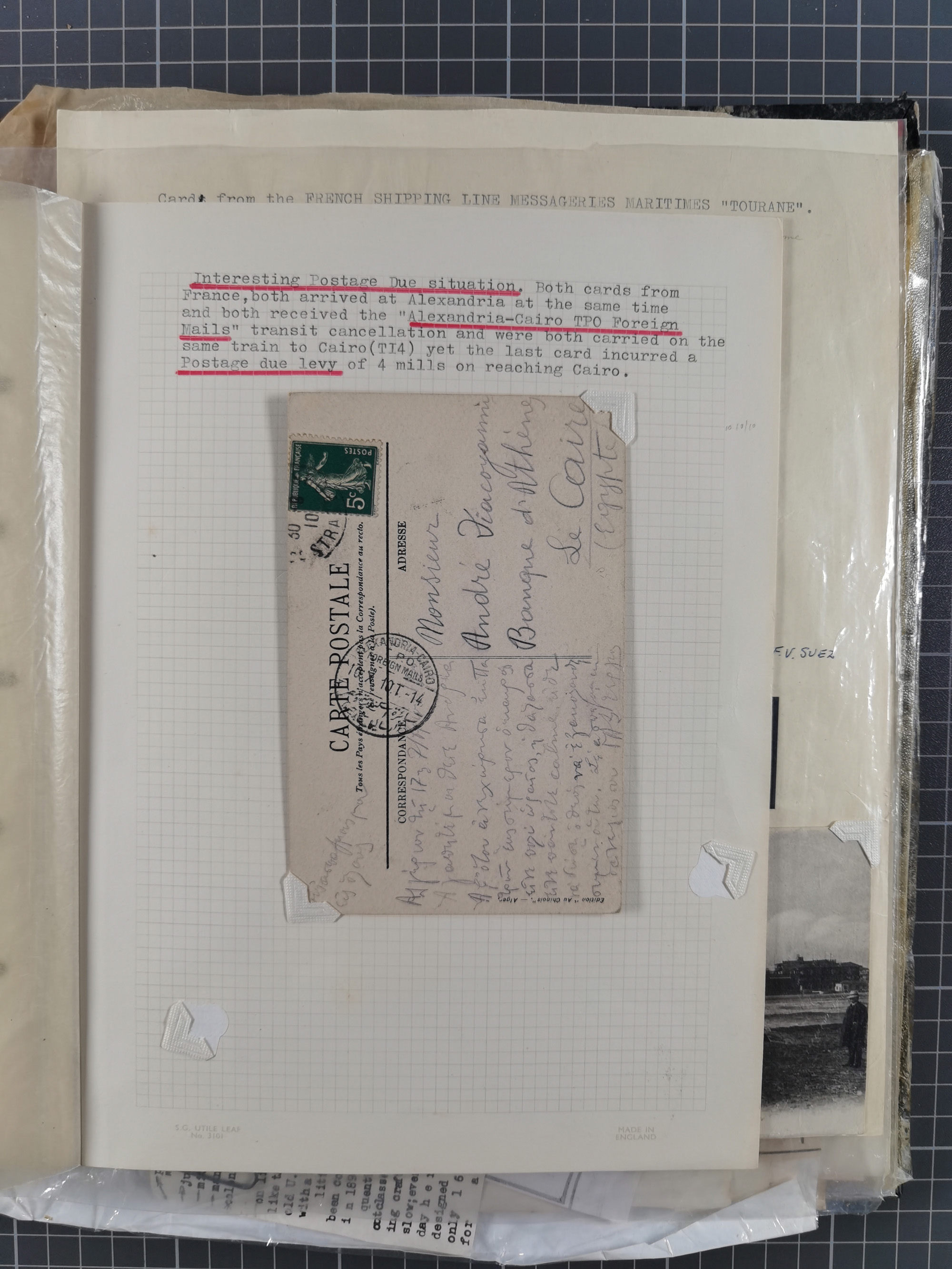 1910/49 (ca.), interessante kleine Sammlung Schiffspost mit Hauptaugenmerk auf den Suez Kanal, dabei etwas über 30 Briefe und Karten mit interessanten Stempeln sowie ferner Landkarten, Zeitungsausschnitte, etc., im Ordner