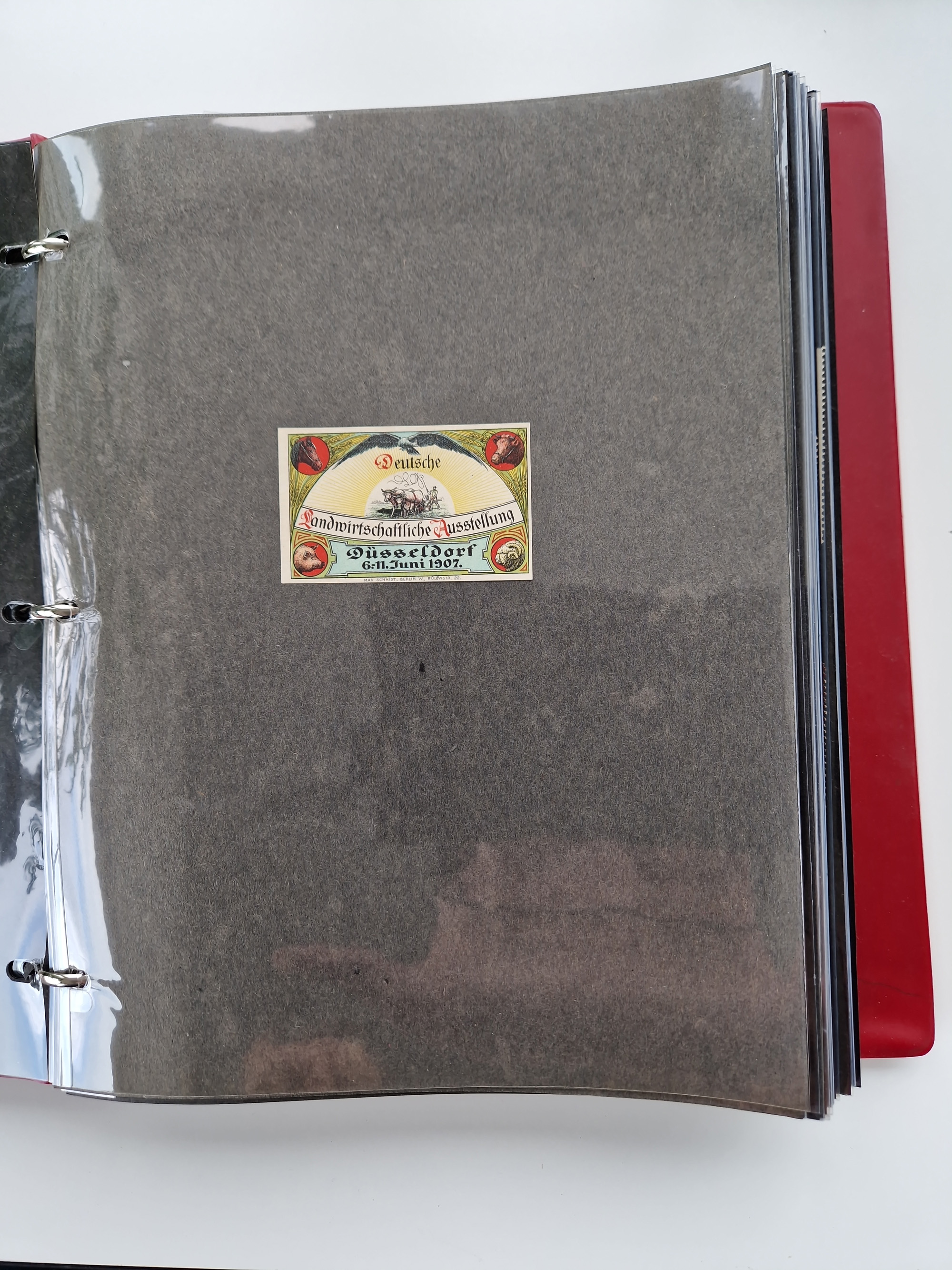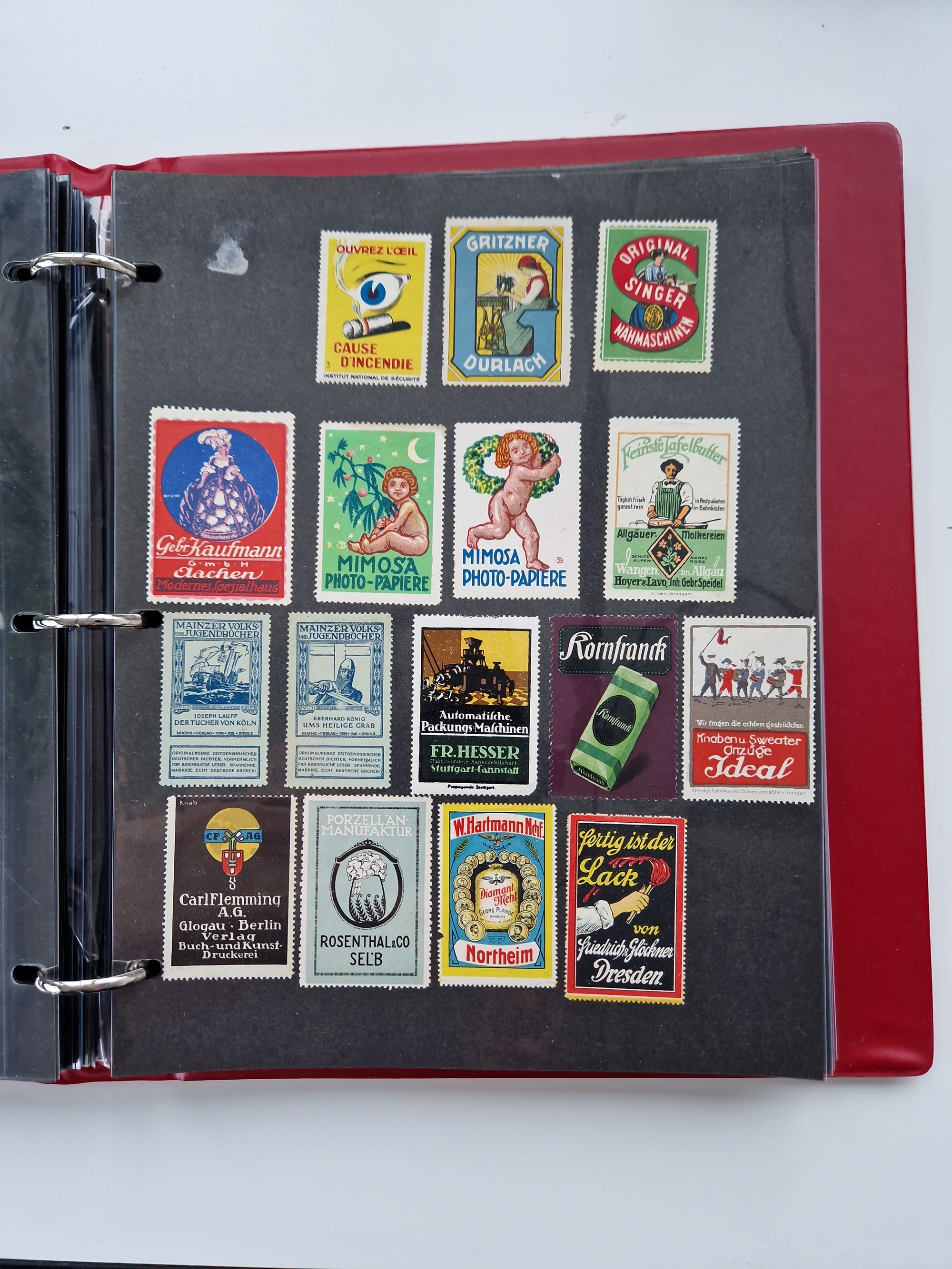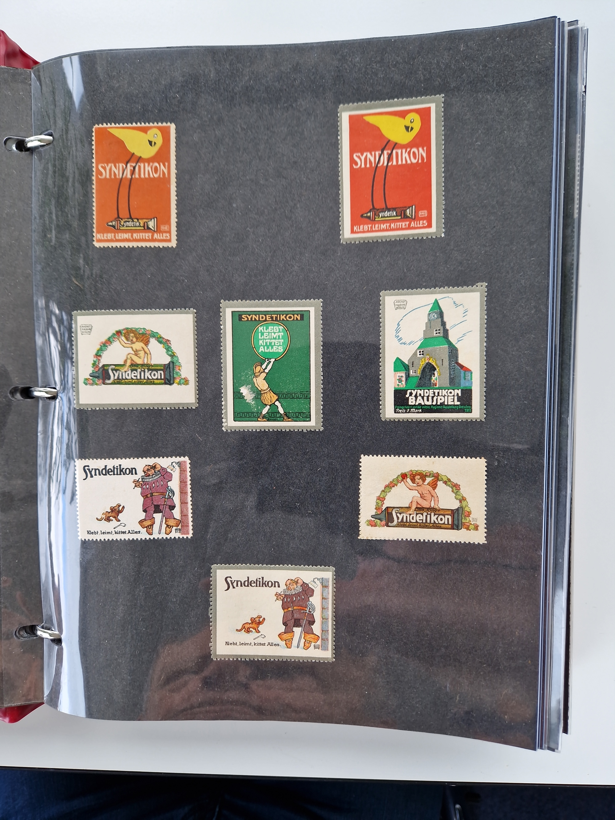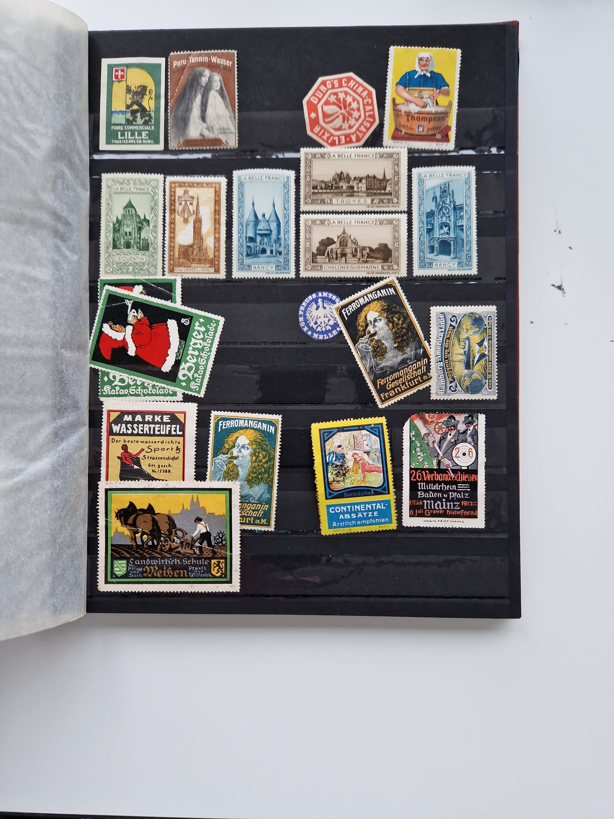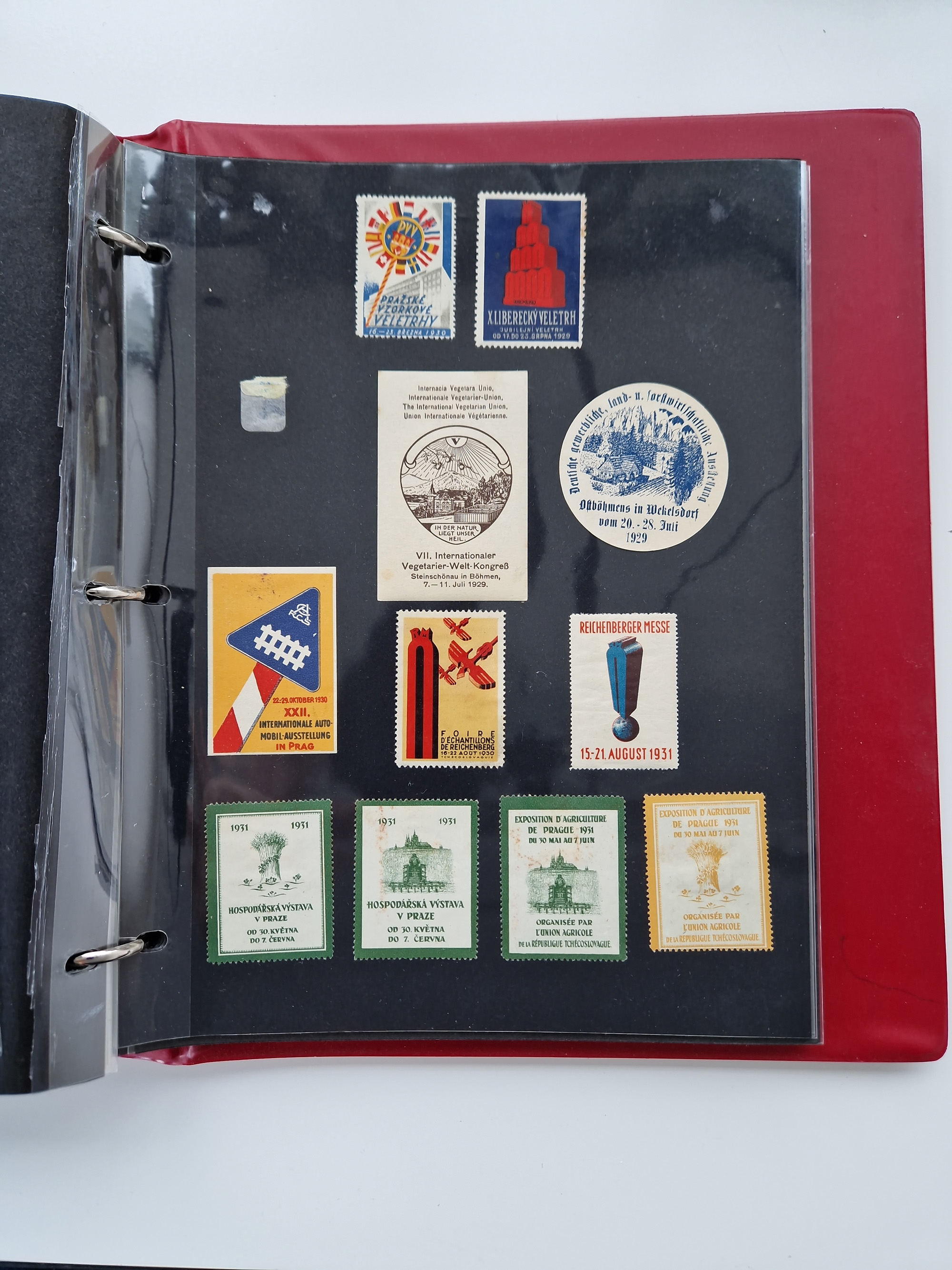 VIGNETTEN: 1896/1960 (ca.), hochinteressanter Bestand mit einigen Tausend Vignetten, Verschluss- und Siegelmarken, später Spendenvignetten und -Blocks, dabei viele zu unterschiedlichen Ausstellungen, meist aus Berlin, München, Nürnberg, Leipzig mit Export-Messe, ferner aber auch Luftpost-Ausstellung, Gewerbe- und Industrieschau, Landwirtschaft, Kunst, Firmenvignetten, etc., etwas zu Briefmarken-Ausstellungen, dabei auch drei Hessheimer Entwürfe, vieles auf amerikanischen Händlerkarten und Loskarten, in drei Kartons