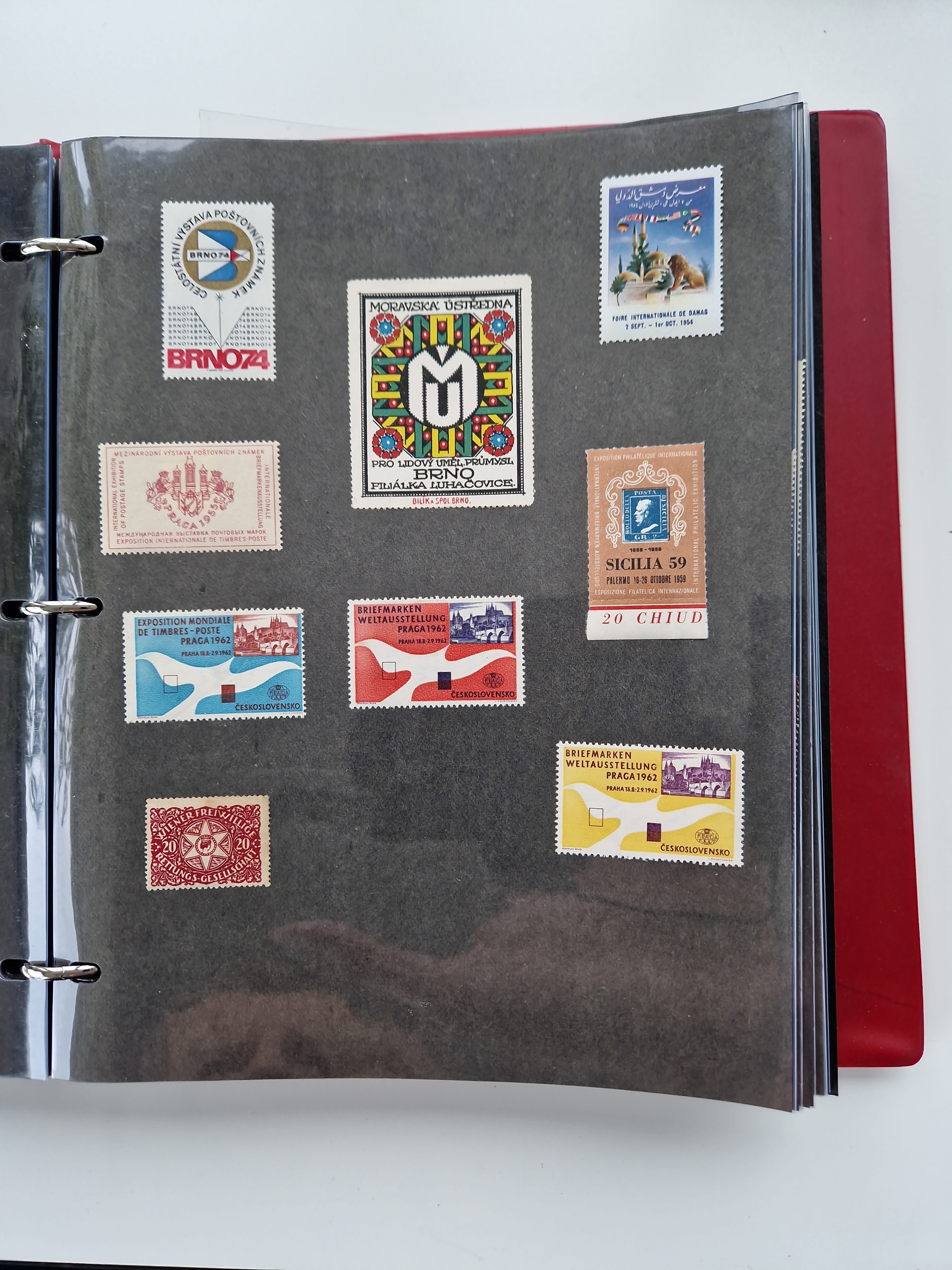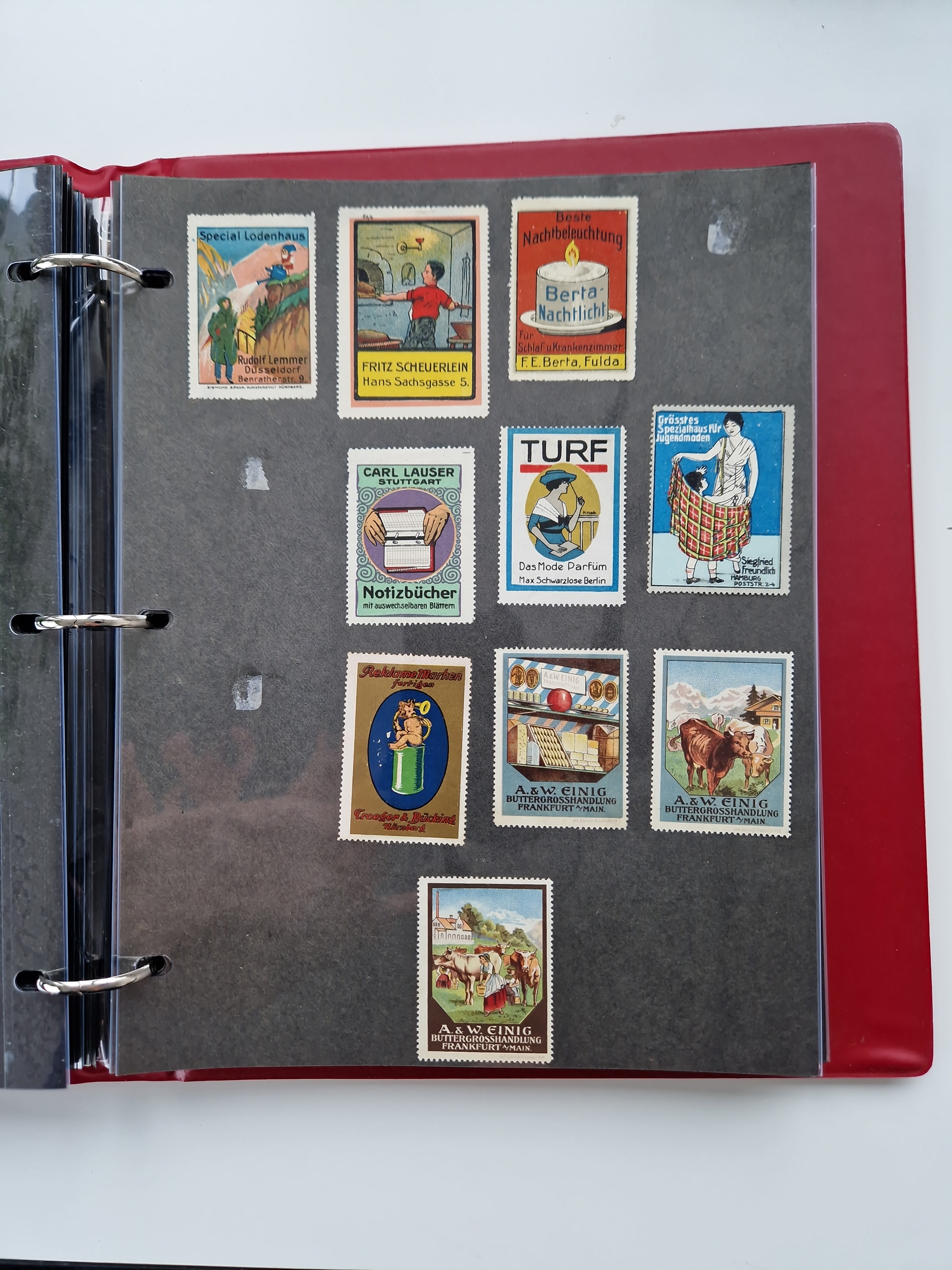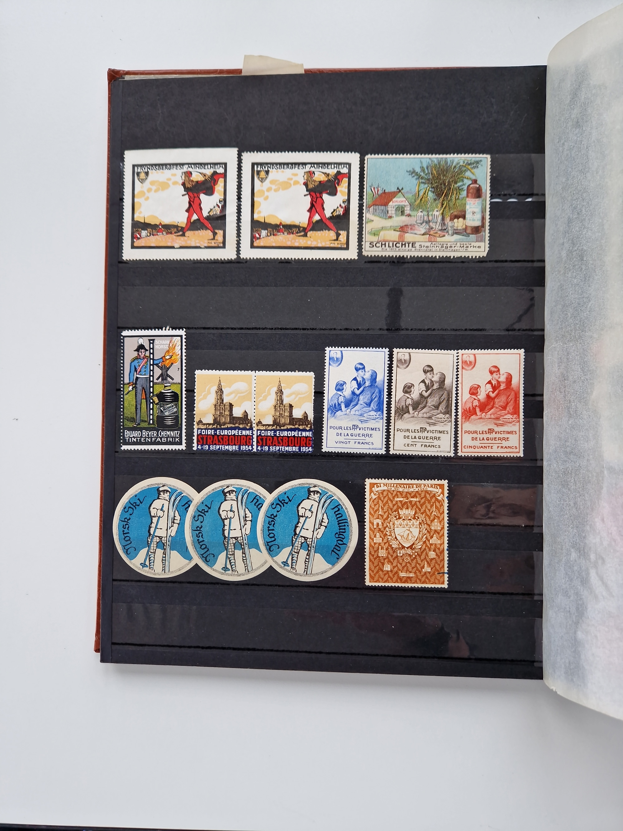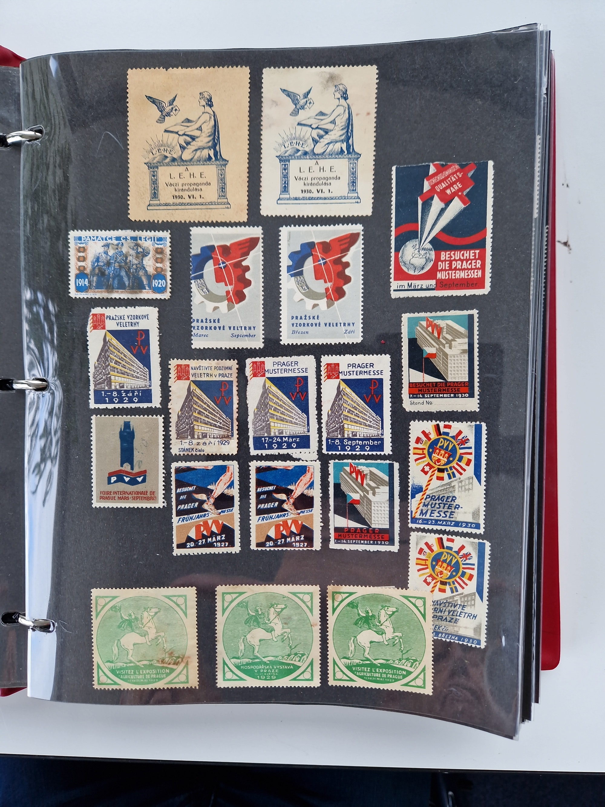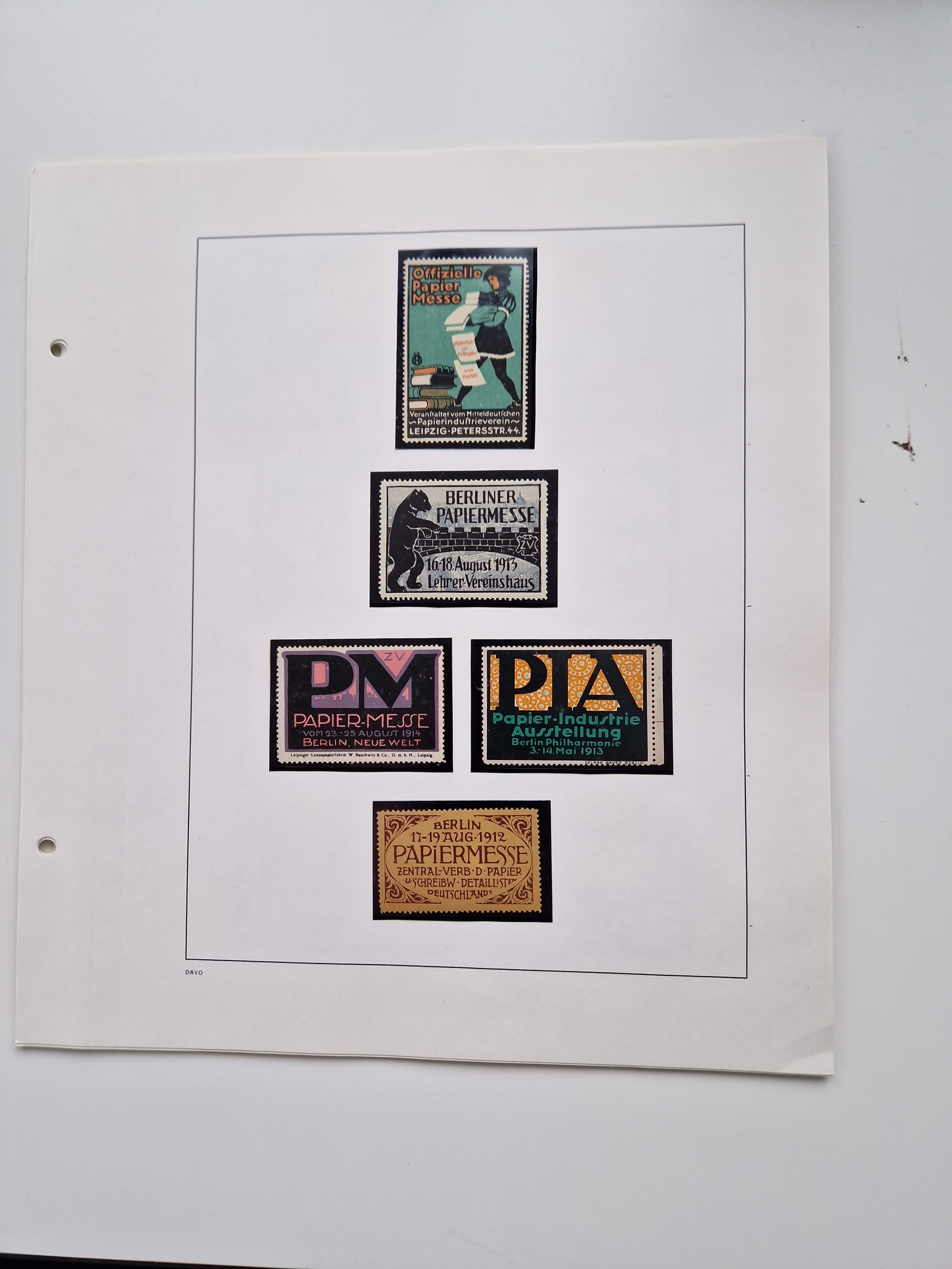 VIGNETTEN: 1896/1960 (ca.), hochinteressanter Bestand mit einigen Tausend Vignetten, Verschluss- und Siegelmarken, später Spendenvignetten und -Blocks, dabei viele zu unterschiedlichen Ausstellungen, meist aus Berlin, München, Nürnberg, Leipzig mit Export-Messe, ferner aber auch Luftpost-Ausstellung, Gewerbe- und Industrieschau, Landwirtschaft, Kunst, Firmenvignetten, etc., etwas zu Briefmarken-Ausstellungen, dabei auch drei Hessheimer Entwürfe, vieles auf amerikanischen Händlerkarten und Loskarten, in drei Kartons