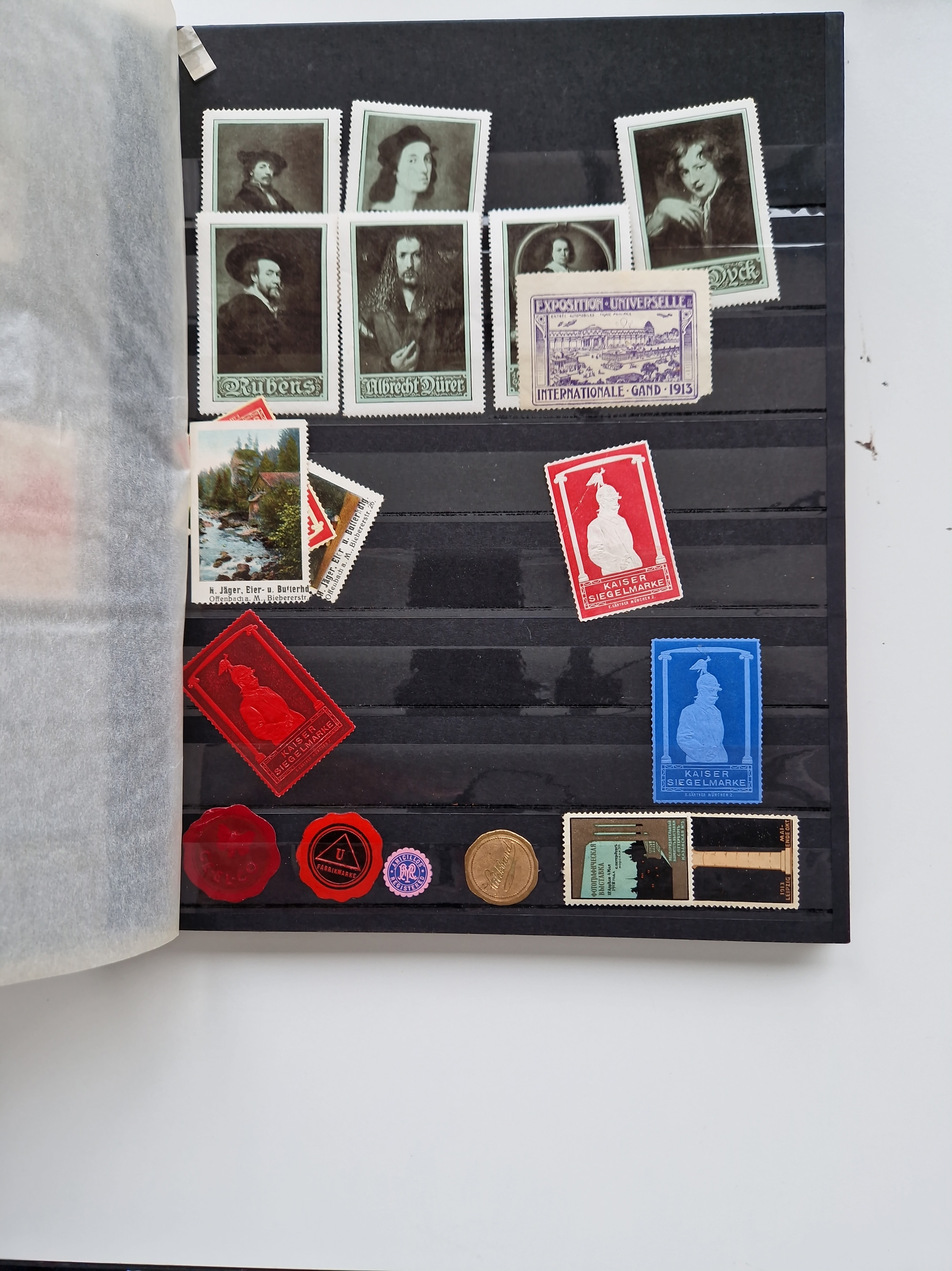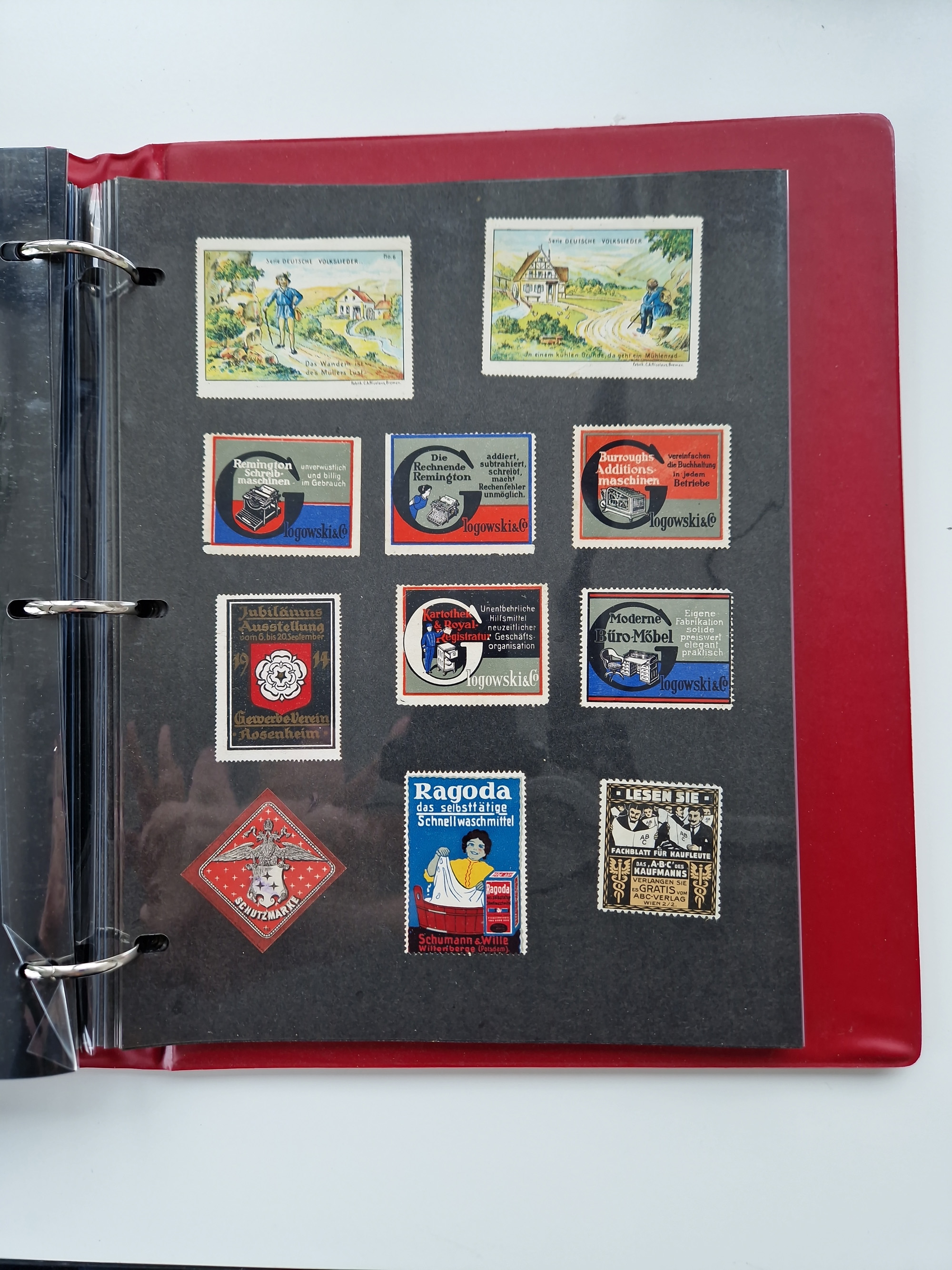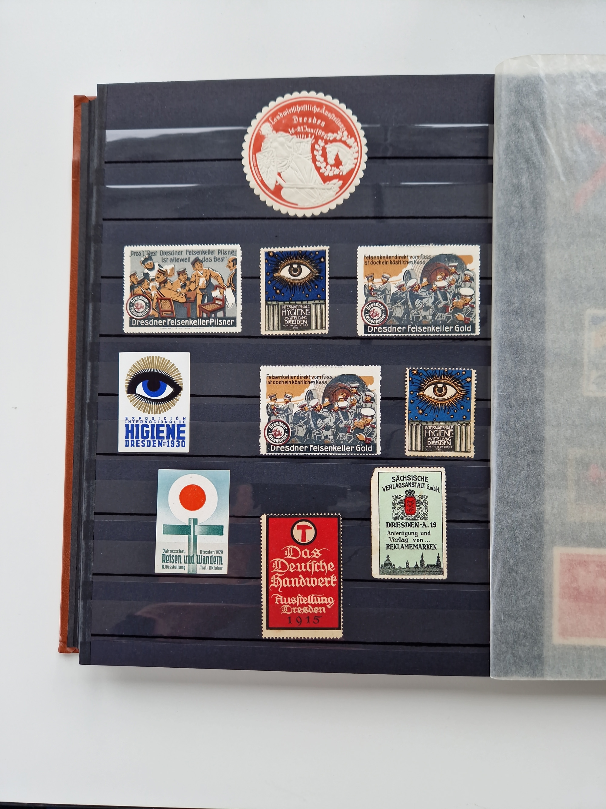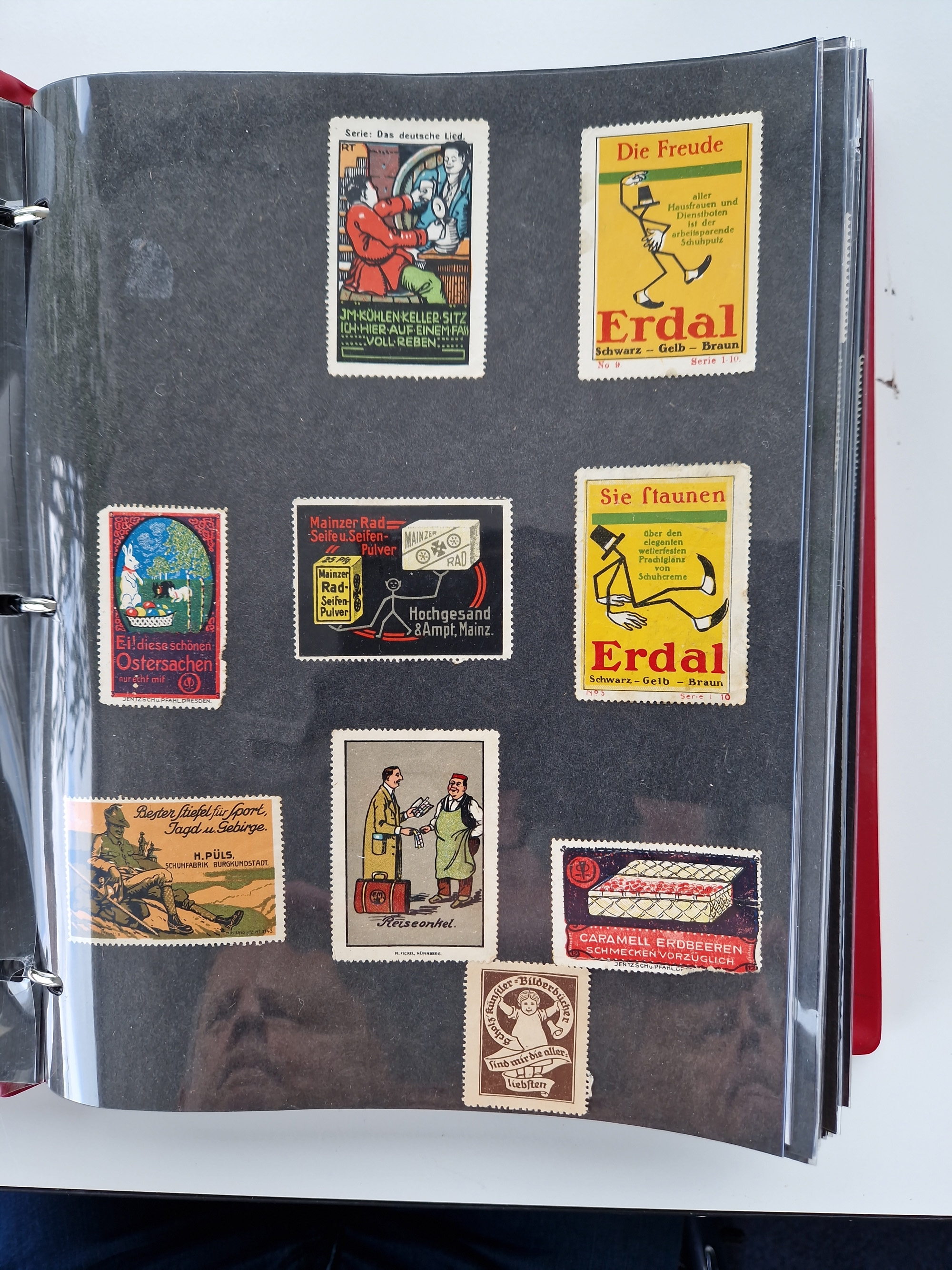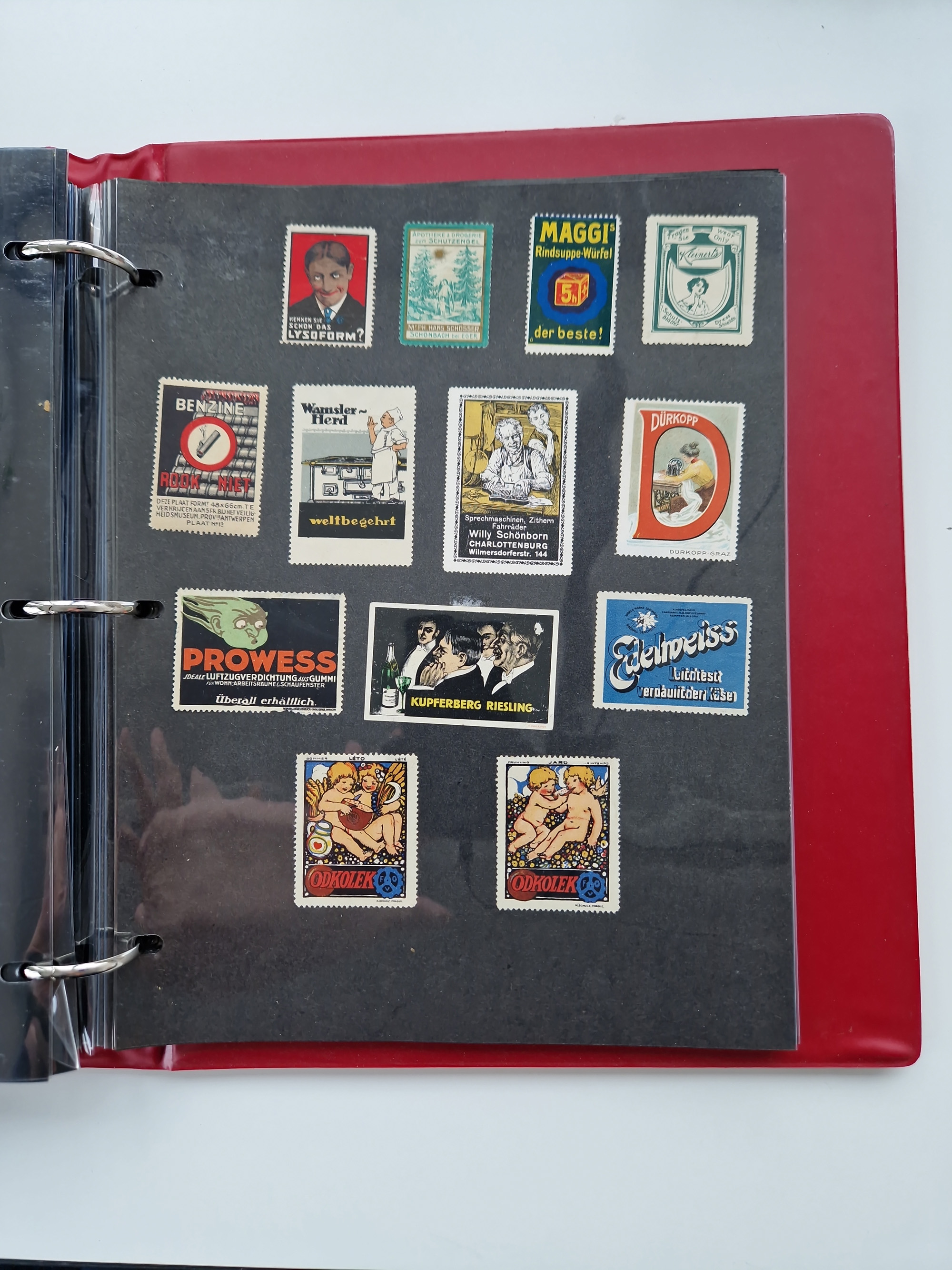 VIGNETTEN: 1896/1960 (ca.), hochinteressanter Bestand mit einigen Tausend Vignetten, Verschluss- und Siegelmarken, später Spendenvignetten und -Blocks, dabei viele zu unterschiedlichen Ausstellungen, meist aus Berlin, München, Nürnberg, Leipzig mit Export-Messe, ferner aber auch Luftpost-Ausstellung, Gewerbe- und Industrieschau, Landwirtschaft, Kunst, Firmenvignetten, etc., etwas zu Briefmarken-Ausstellungen, dabei auch drei Hessheimer Entwürfe, vieles auf amerikanischen Händlerkarten und Loskarten, in drei Kartons