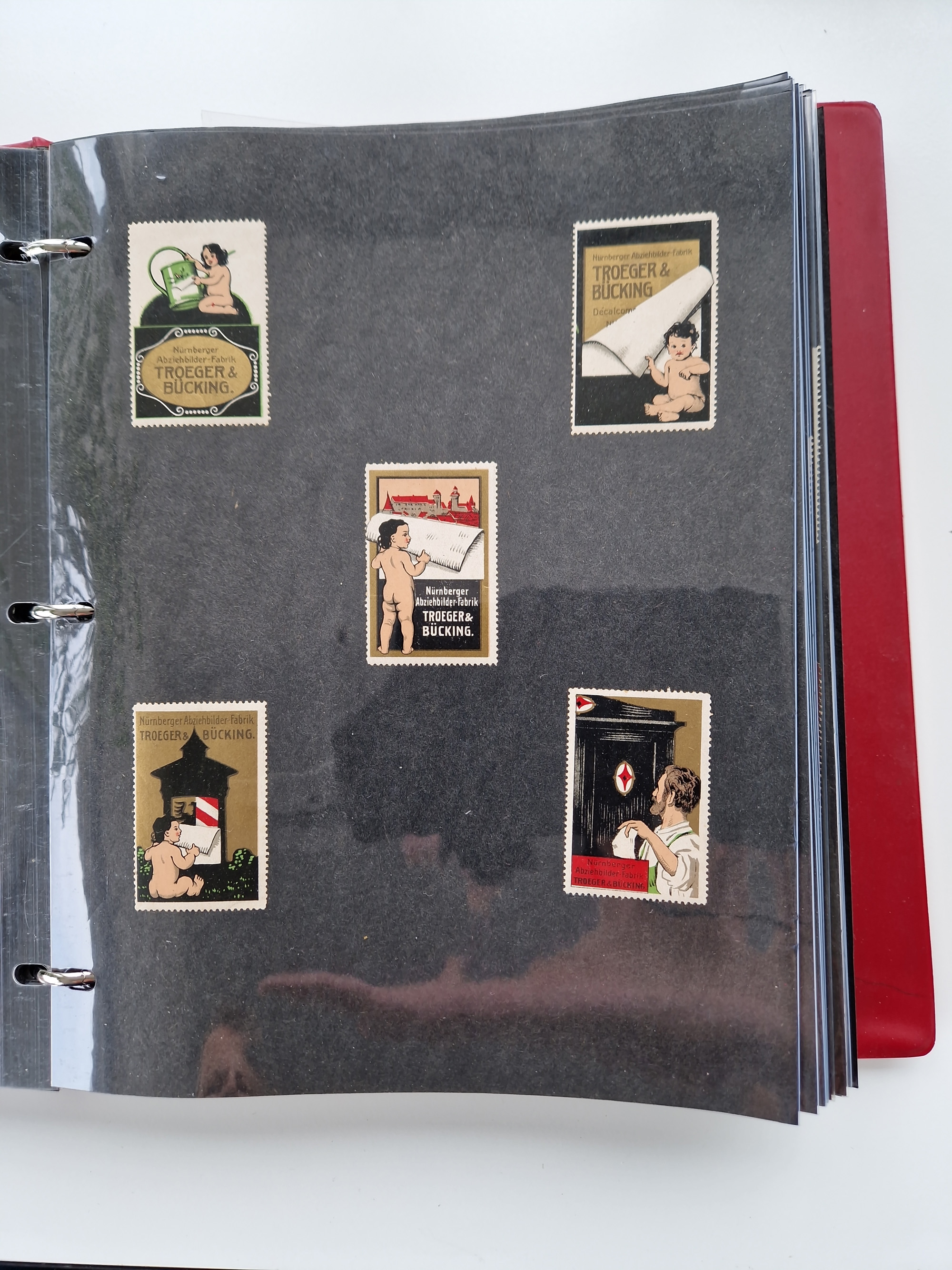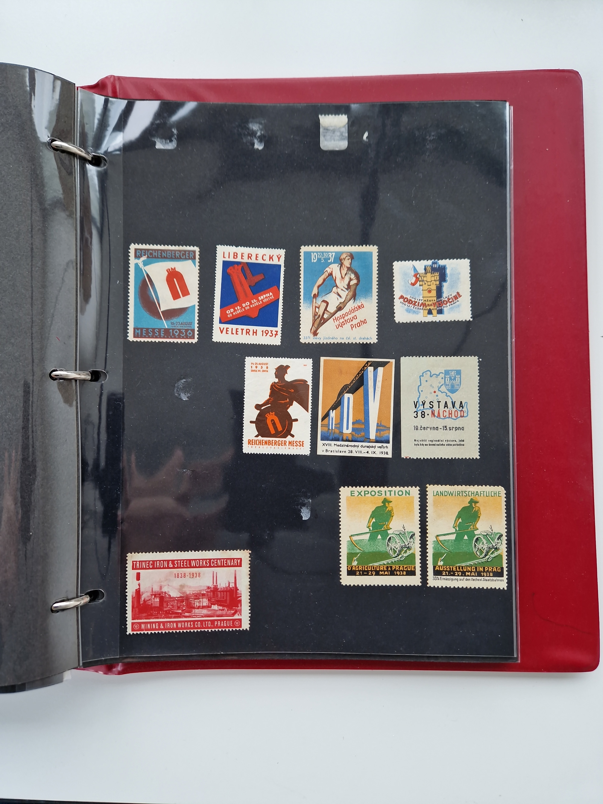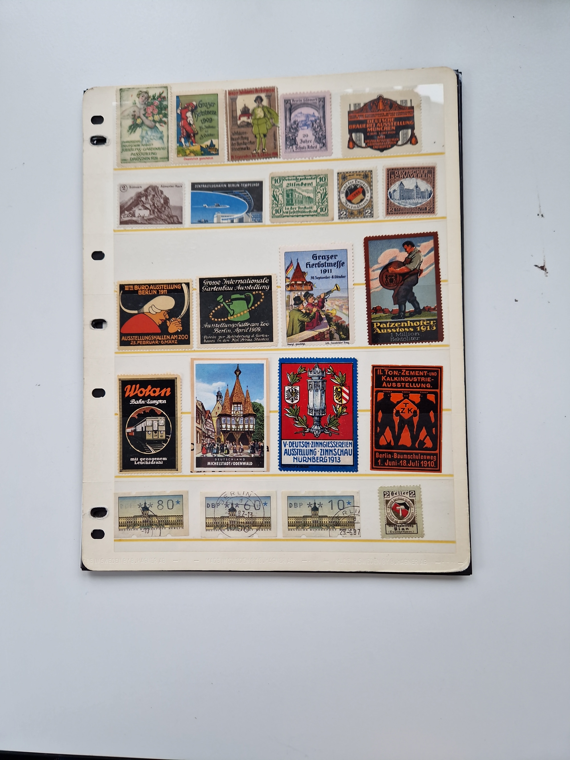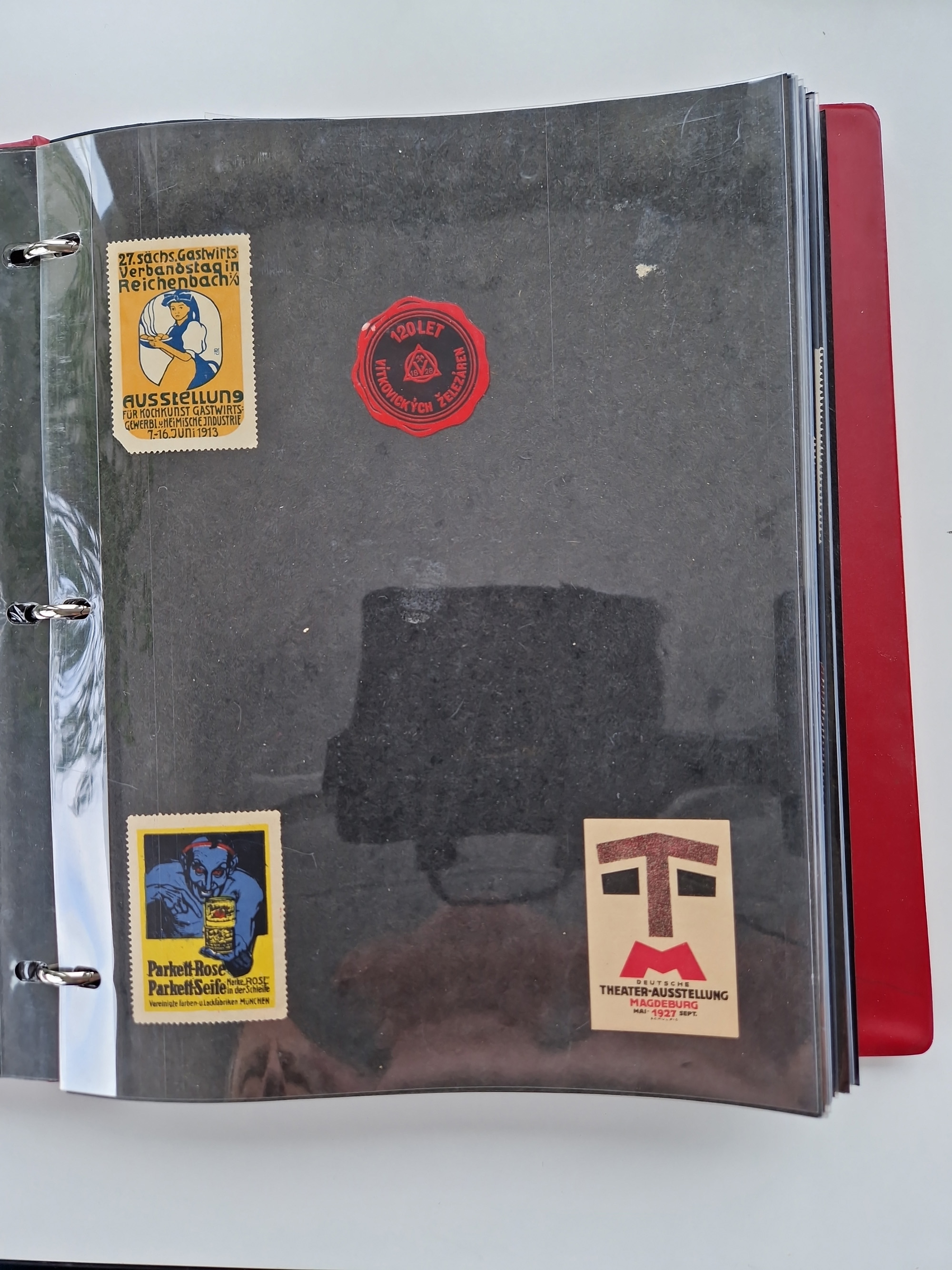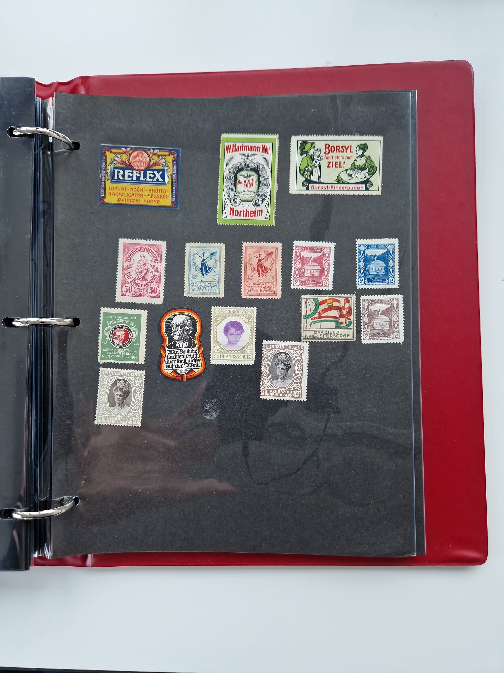 VIGNETTEN: 1896/1960 (ca.), hochinteressanter Bestand mit einigen Tausend Vignetten, Verschluss- und Siegelmarken, später Spendenvignetten und -Blocks, dabei viele zu unterschiedlichen Ausstellungen, meist aus Berlin, München, Nürnberg, Leipzig mit Export-Messe, ferner aber auch Luftpost-Ausstellung, Gewerbe- und Industrieschau, Landwirtschaft, Kunst, Firmenvignetten, etc., etwas zu Briefmarken-Ausstellungen, dabei auch drei Hessheimer Entwürfe, vieles auf amerikanischen Händlerkarten und Loskarten, in drei Kartons