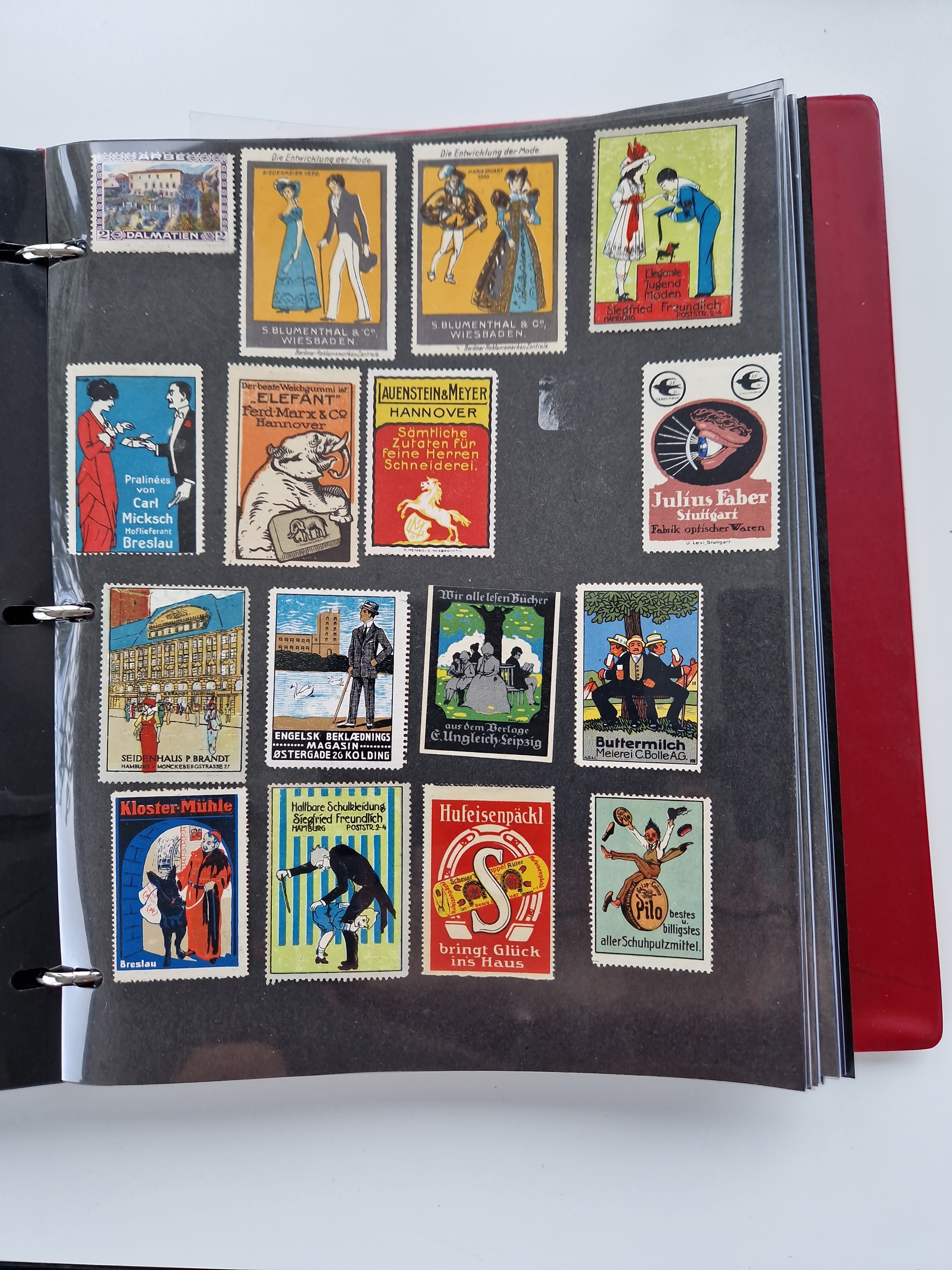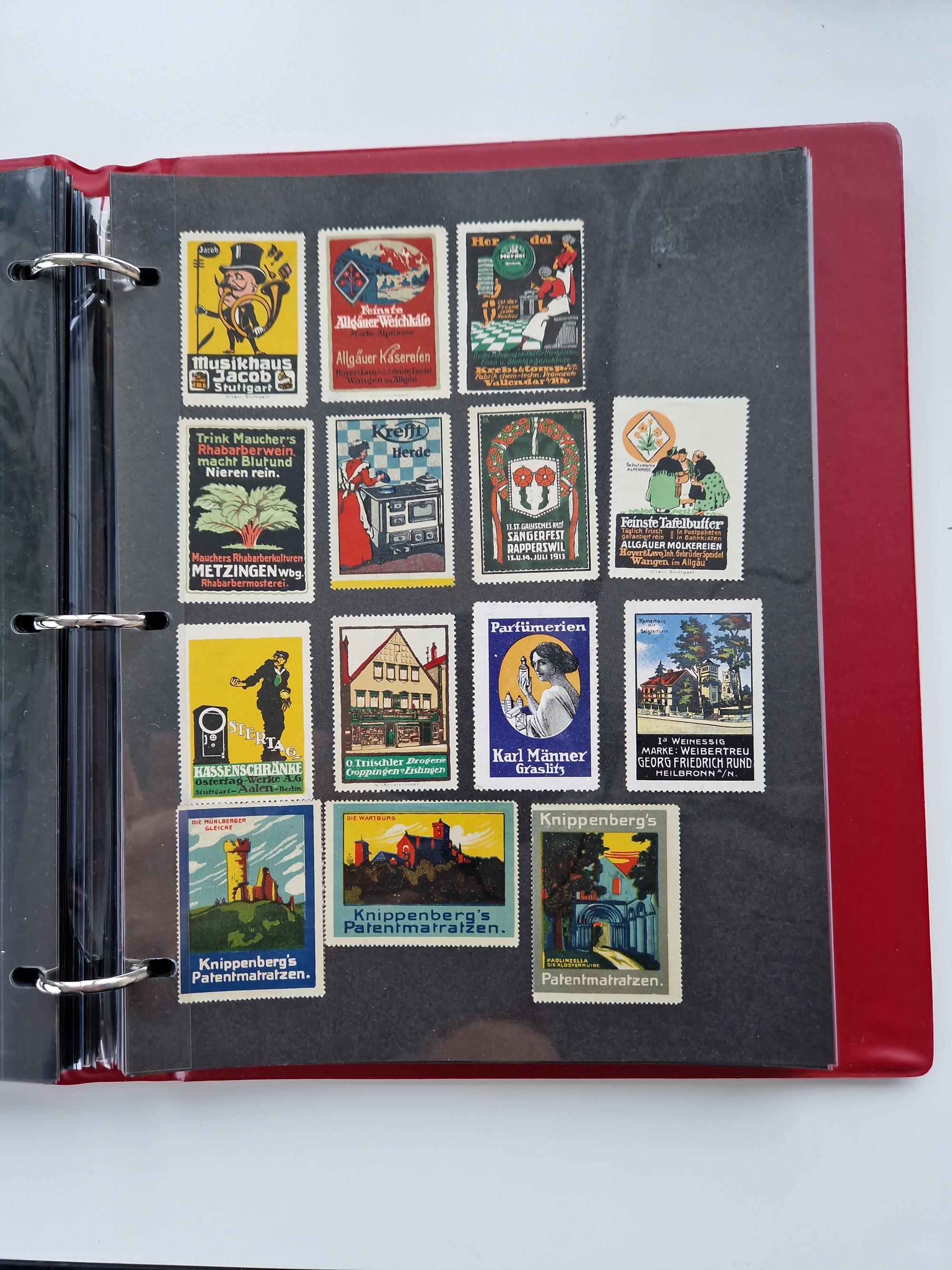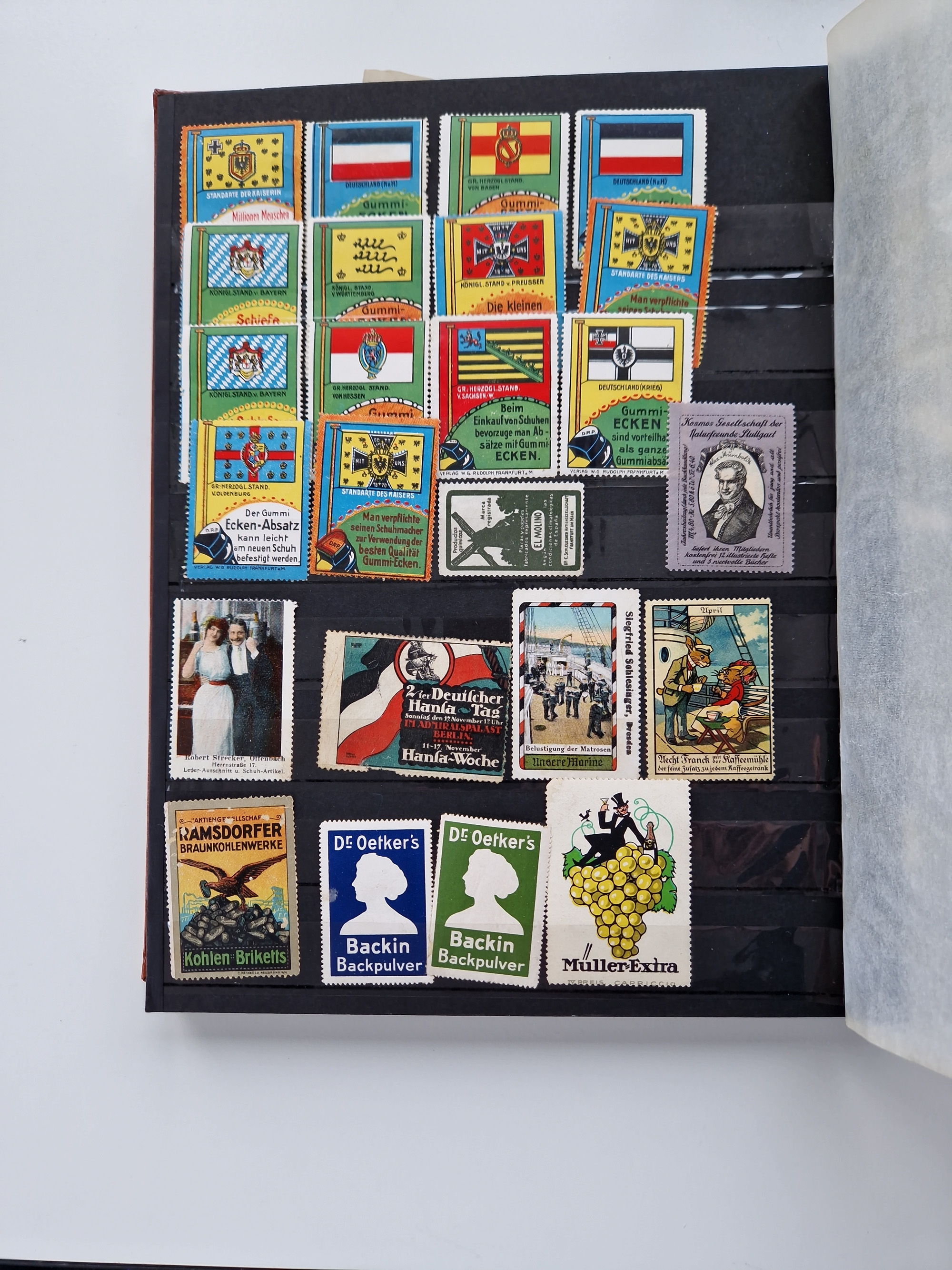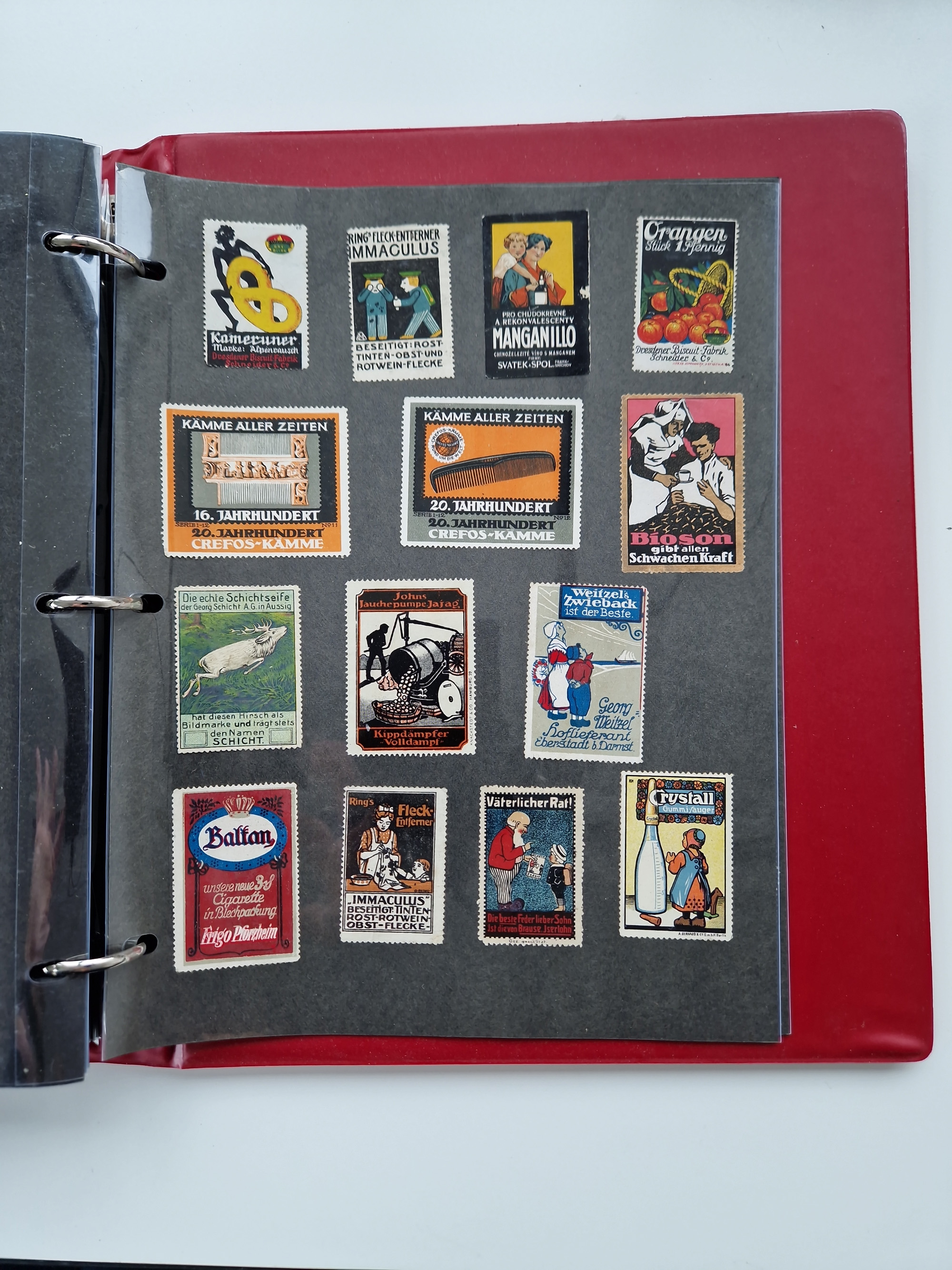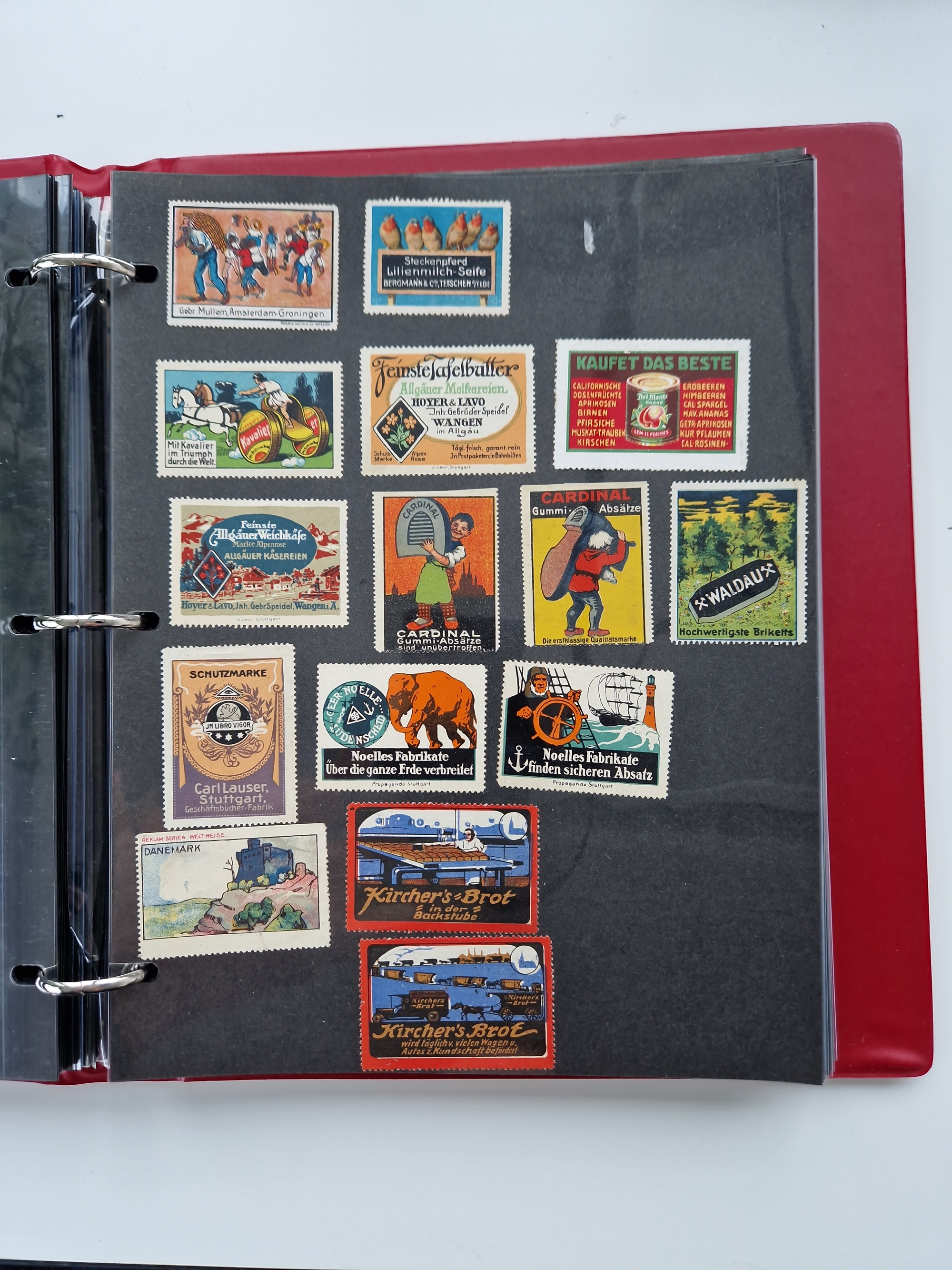 VIGNETTEN: 1896/1960 (ca.), hochinteressanter Bestand mit einigen Tausend Vignetten, Verschluss- und Siegelmarken, später Spendenvignetten und -Blocks, dabei viele zu unterschiedlichen Ausstellungen, meist aus Berlin, München, Nürnberg, Leipzig mit Export-Messe, ferner aber auch Luftpost-Ausstellung, Gewerbe- und Industrieschau, Landwirtschaft, Kunst, Firmenvignetten, etc., etwas zu Briefmarken-Ausstellungen, dabei auch drei Hessheimer Entwürfe, vieles auf amerikanischen Händlerkarten und Loskarten, in drei Kartons