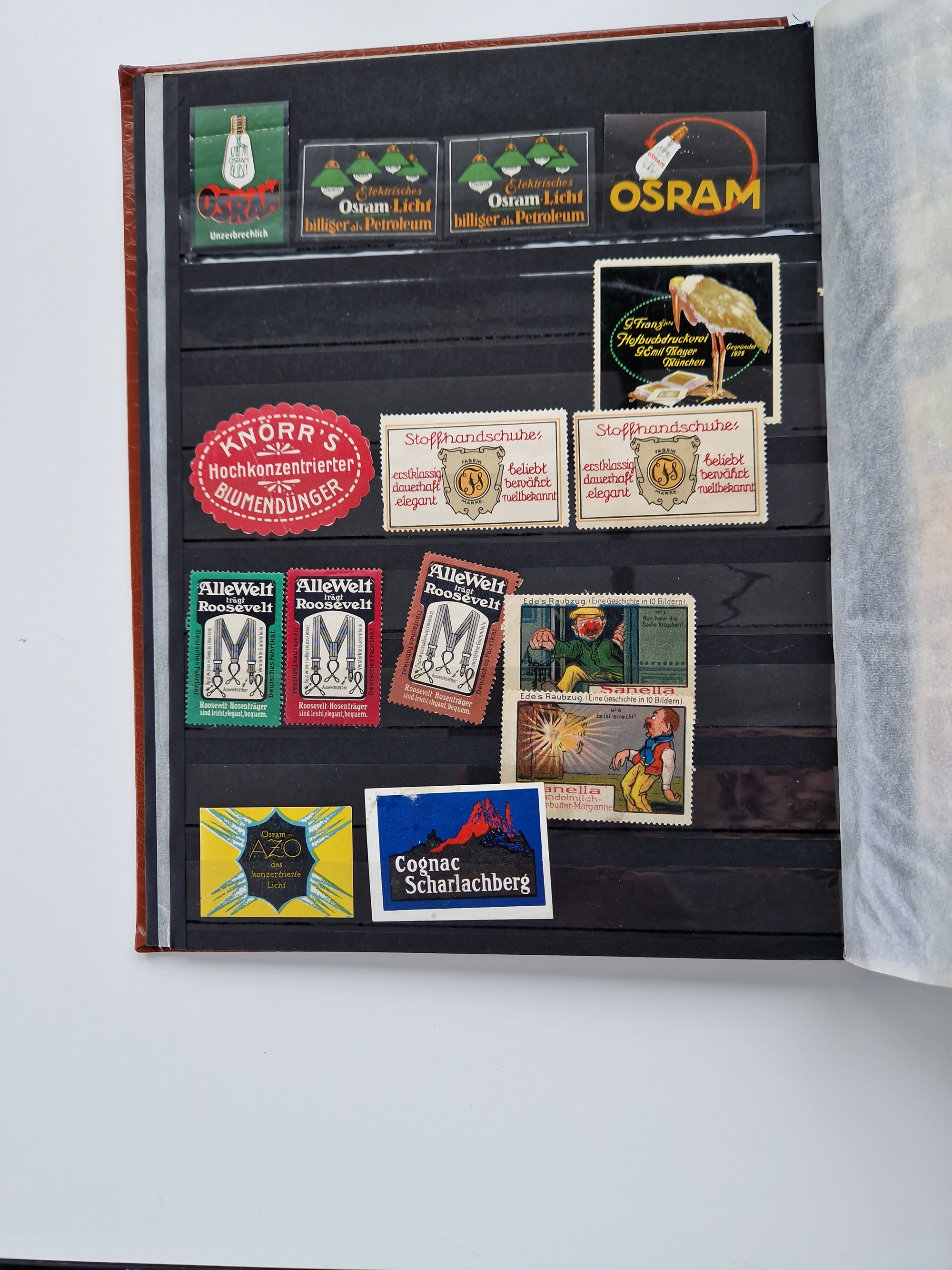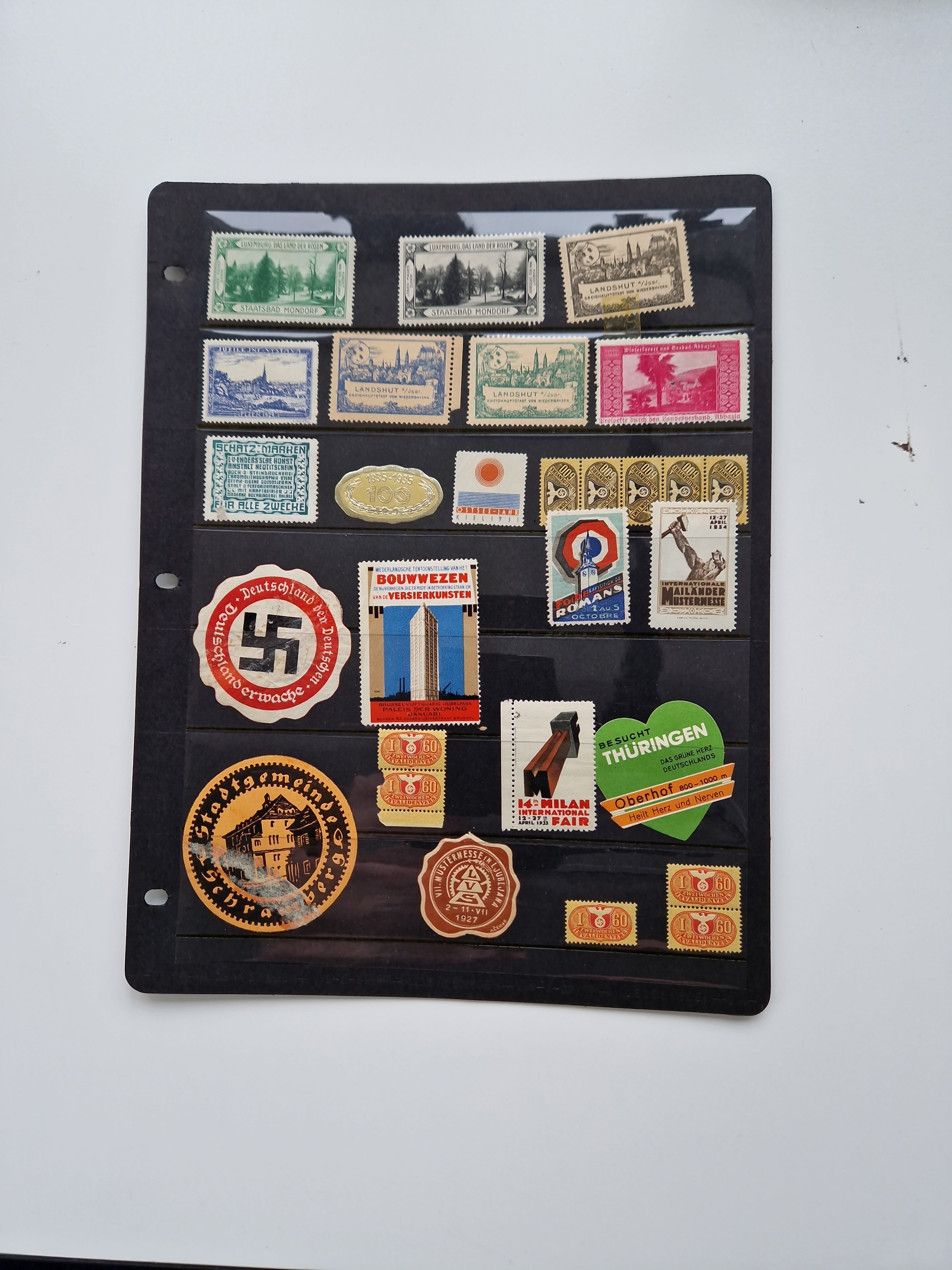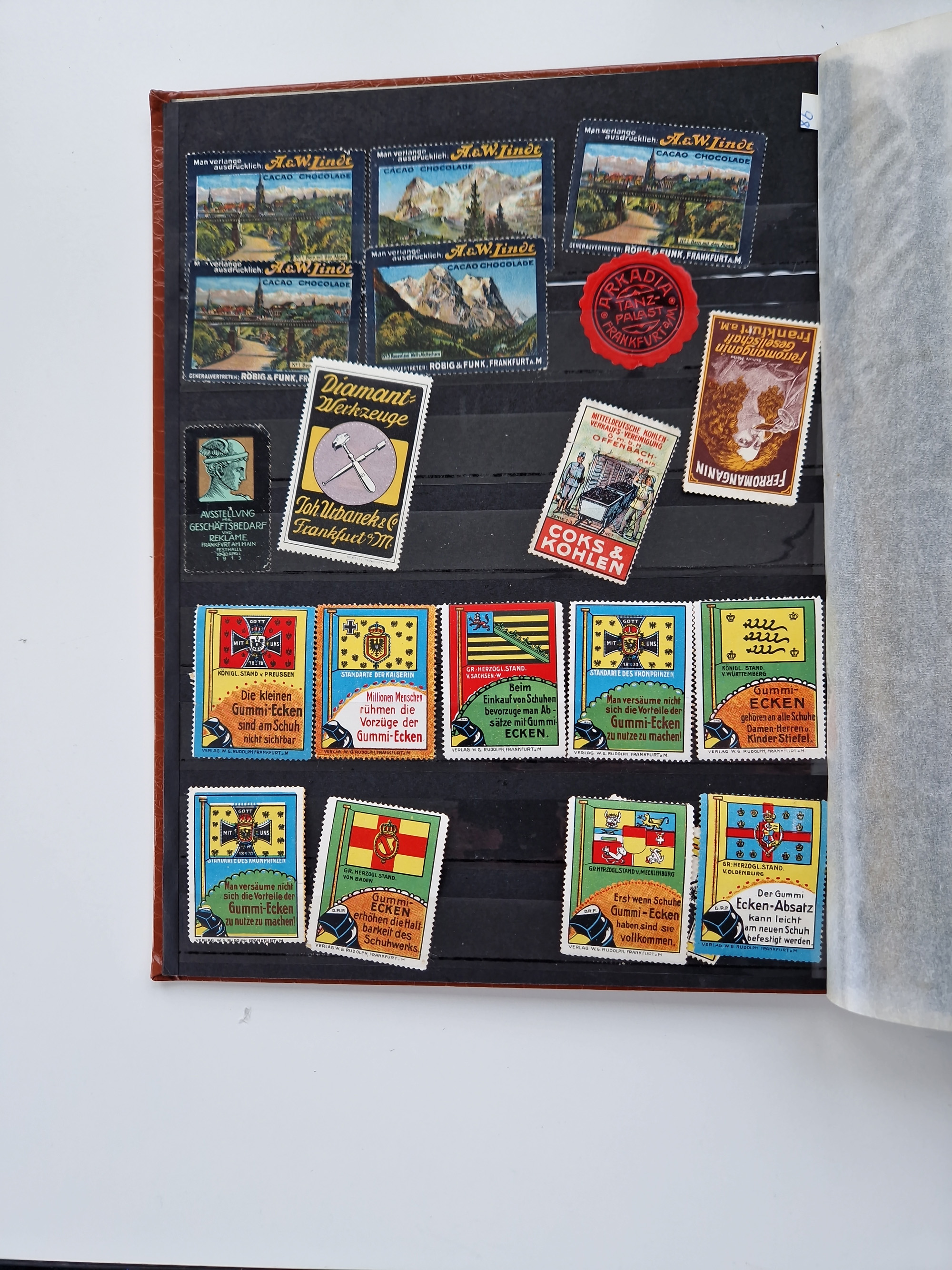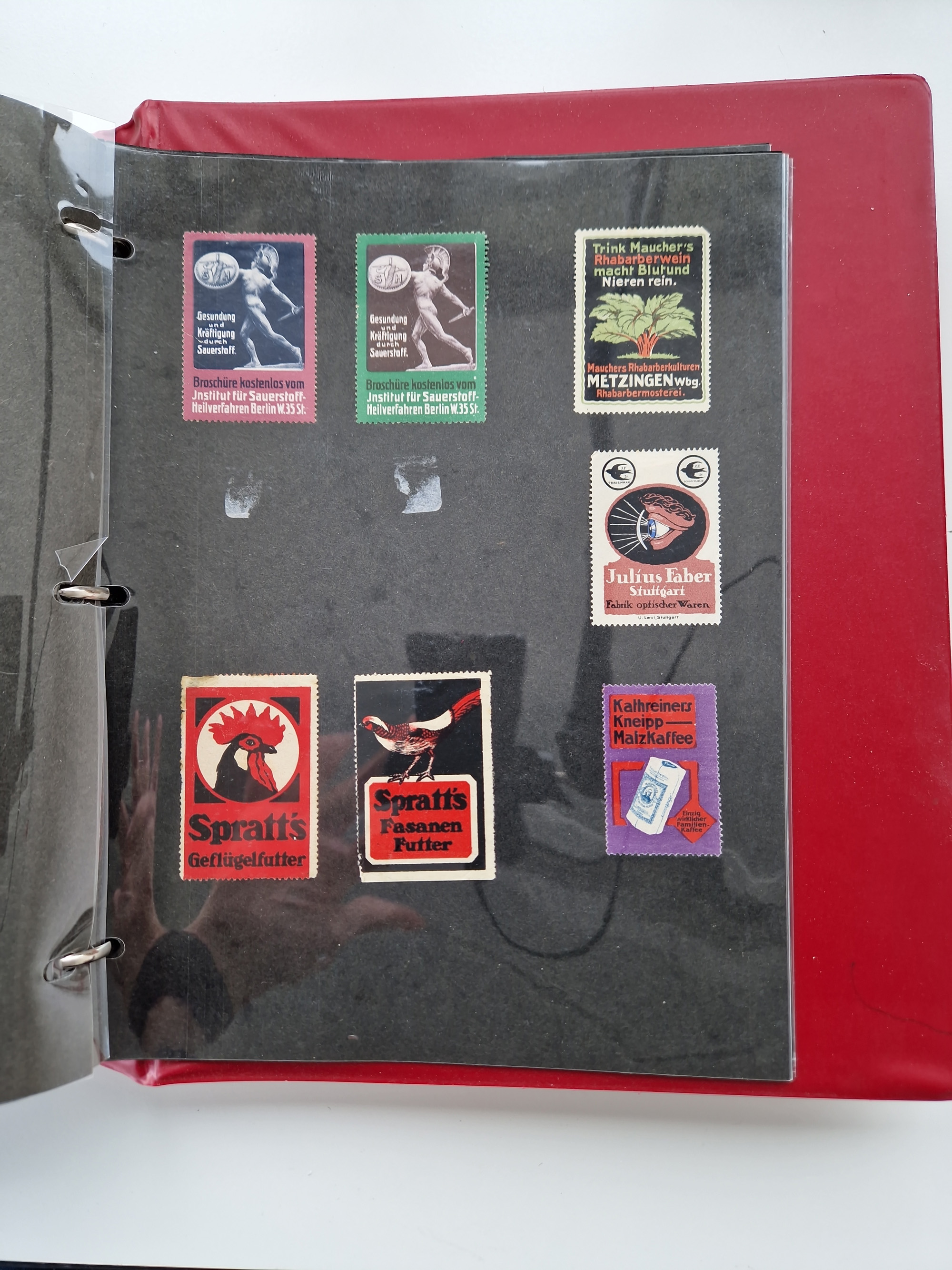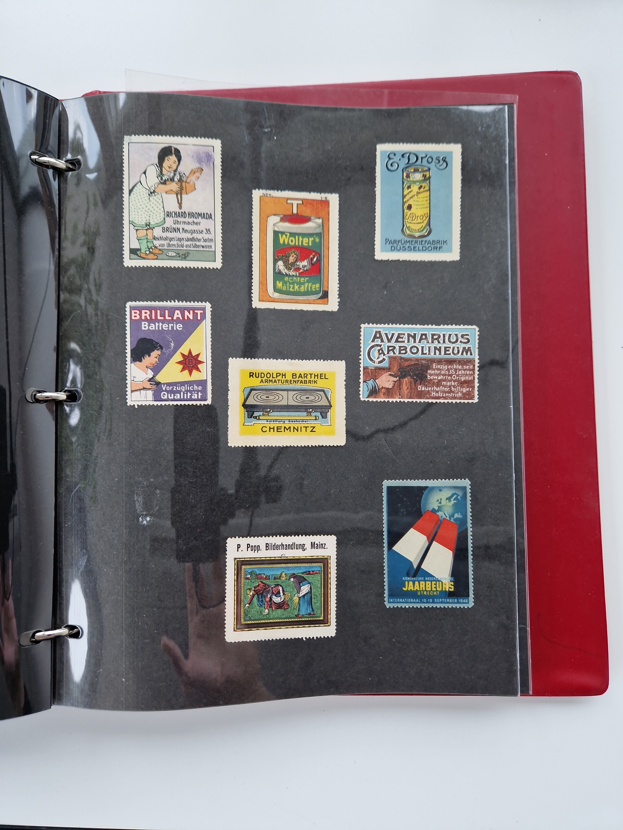 VIGNETTEN: 1896/1960 (ca.), hochinteressanter Bestand mit einigen Tausend Vignetten, Verschluss- und Siegelmarken, später Spendenvignetten und -Blocks, dabei viele zu unterschiedlichen Ausstellungen, meist aus Berlin, München, Nürnberg, Leipzig mit Export-Messe, ferner aber auch Luftpost-Ausstellung, Gewerbe- und Industrieschau, Landwirtschaft, Kunst, Firmenvignetten, etc., etwas zu Briefmarken-Ausstellungen, dabei auch drei Hessheimer Entwürfe, vieles auf amerikanischen Händlerkarten und Loskarten, in drei Kartons