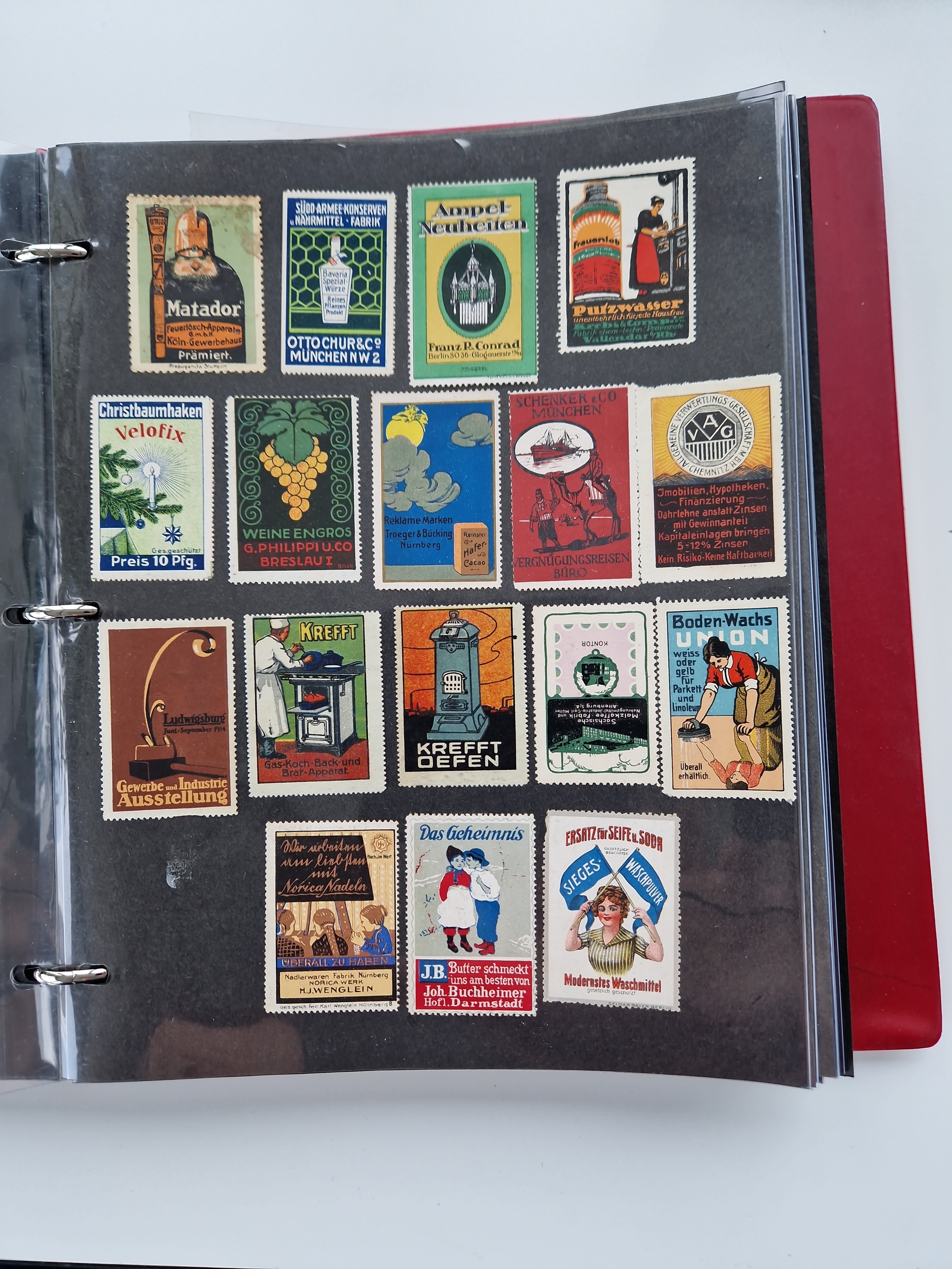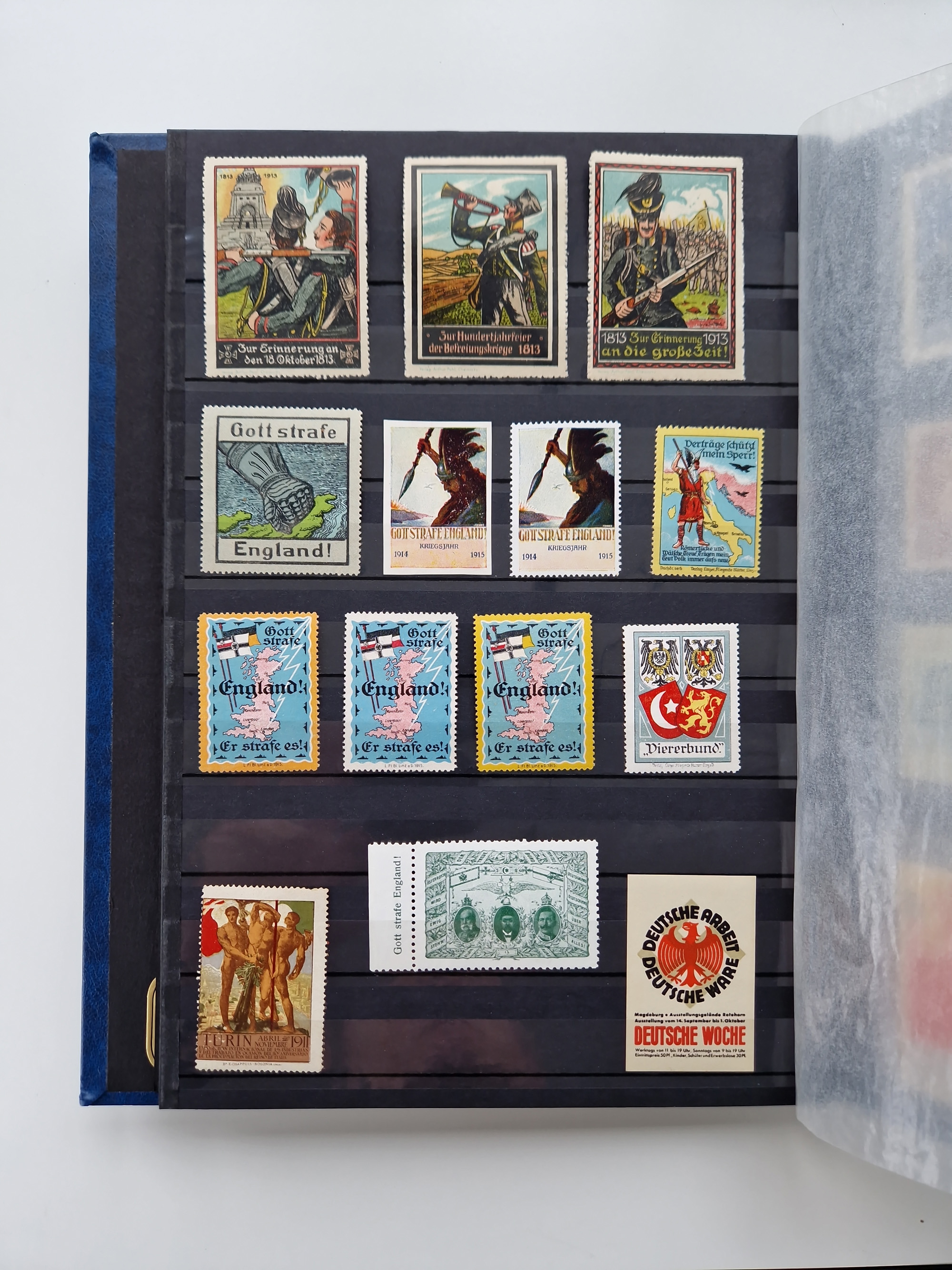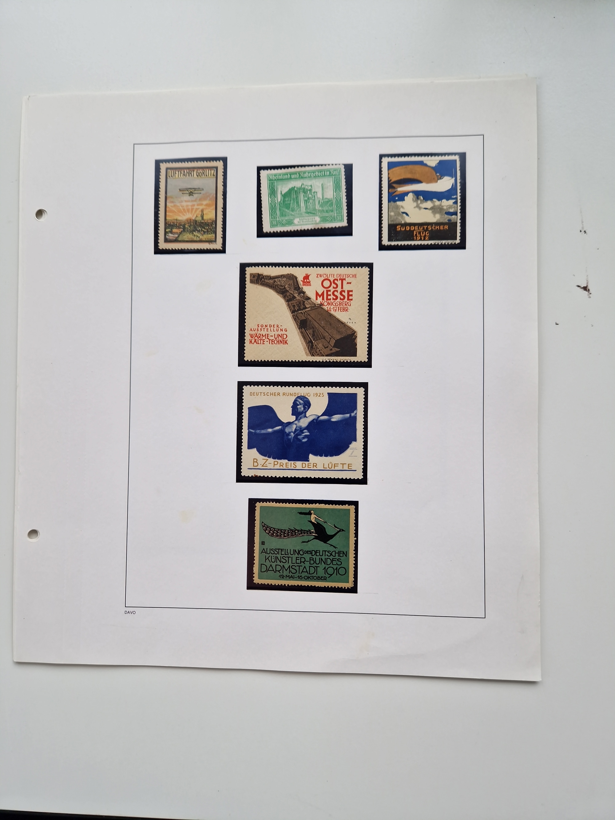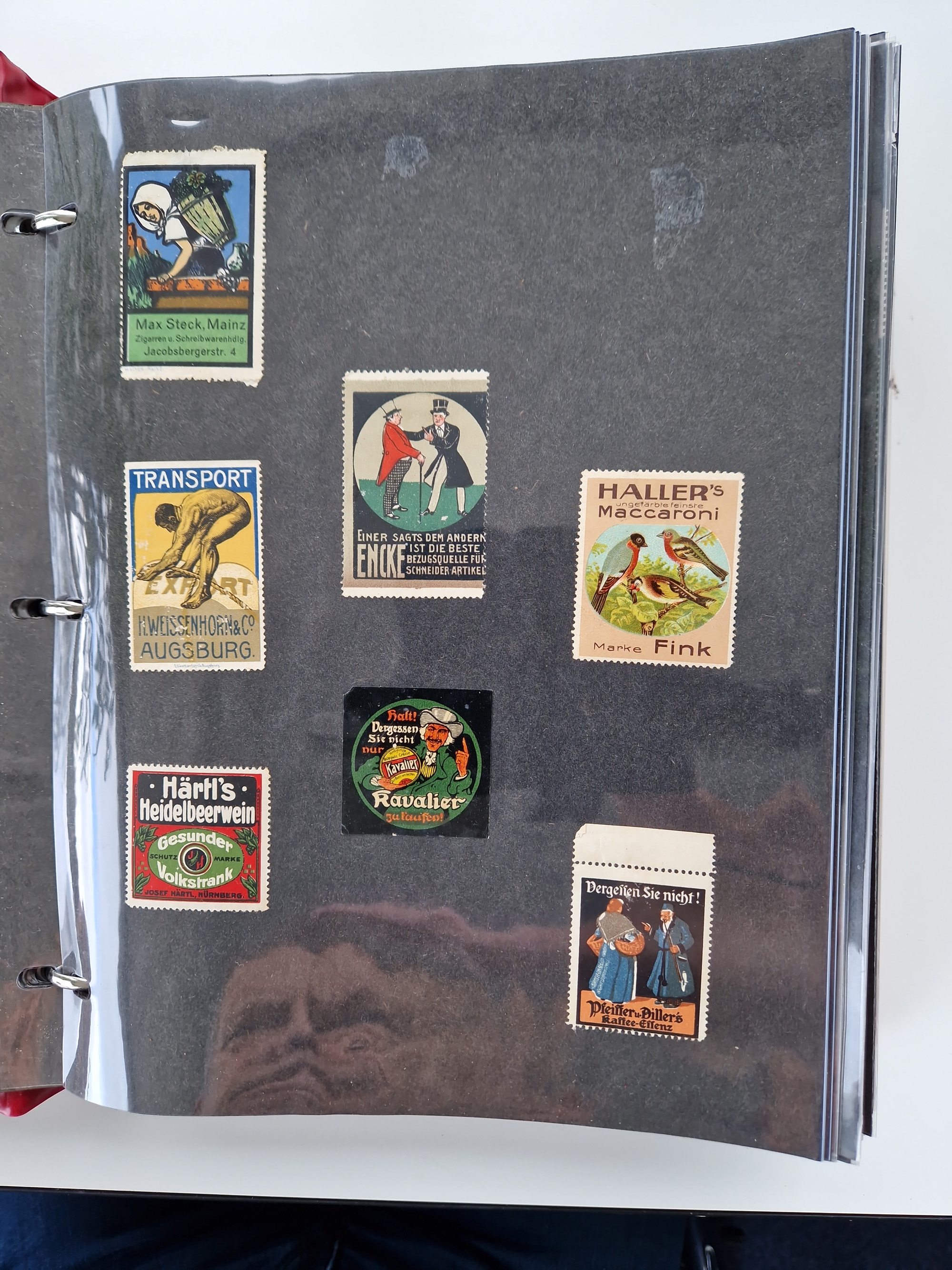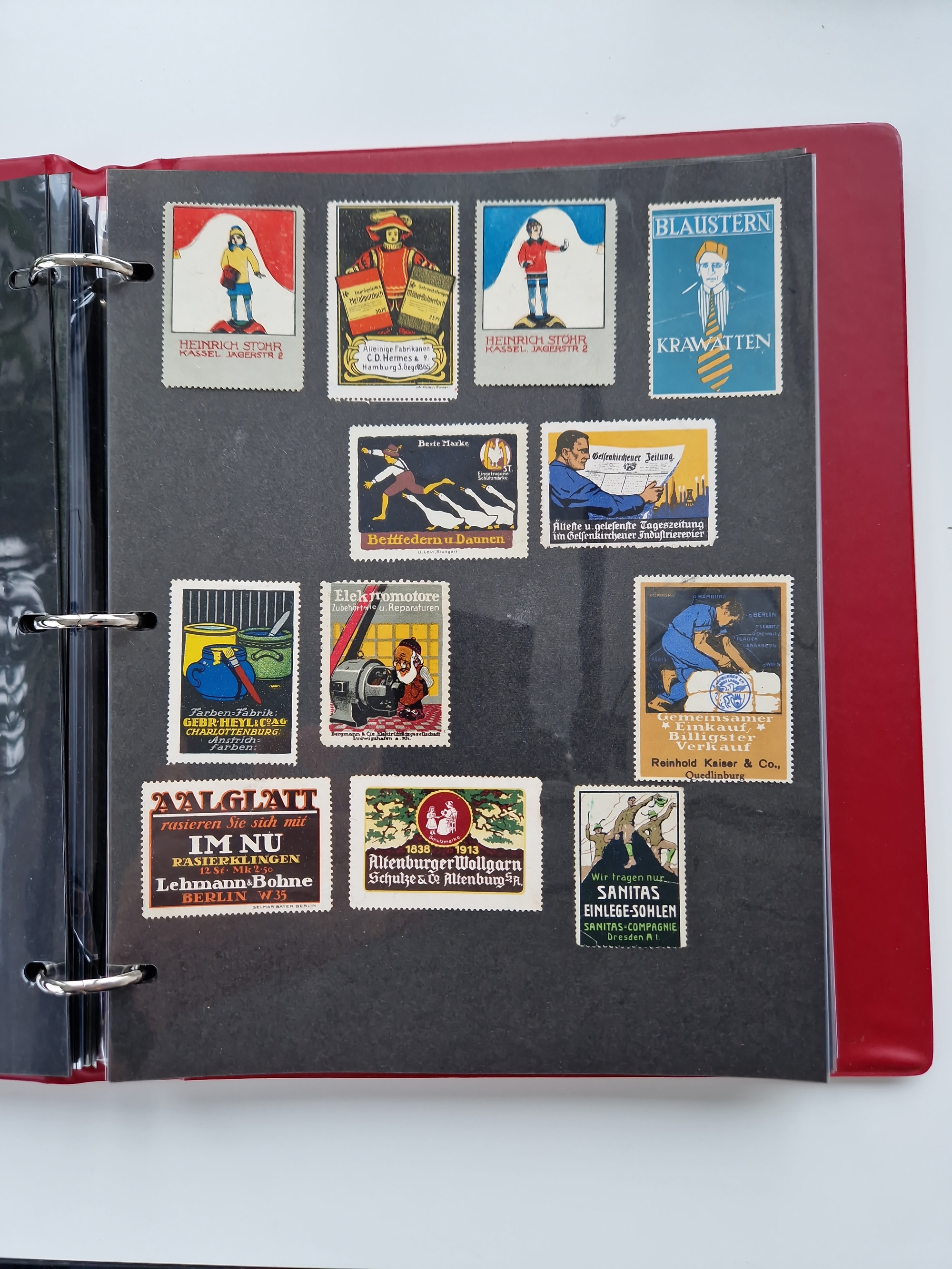 VIGNETTEN: 1896/1960 (ca.), hochinteressanter Bestand mit einigen Tausend Vignetten, Verschluss- und Siegelmarken, später Spendenvignetten und -Blocks, dabei viele zu unterschiedlichen Ausstellungen, meist aus Berlin, München, Nürnberg, Leipzig mit Export-Messe, ferner aber auch Luftpost-Ausstellung, Gewerbe- und Industrieschau, Landwirtschaft, Kunst, Firmenvignetten, etc., etwas zu Briefmarken-Ausstellungen, dabei auch drei Hessheimer Entwürfe, vieles auf amerikanischen Händlerkarten und Loskarten, in drei Kartons