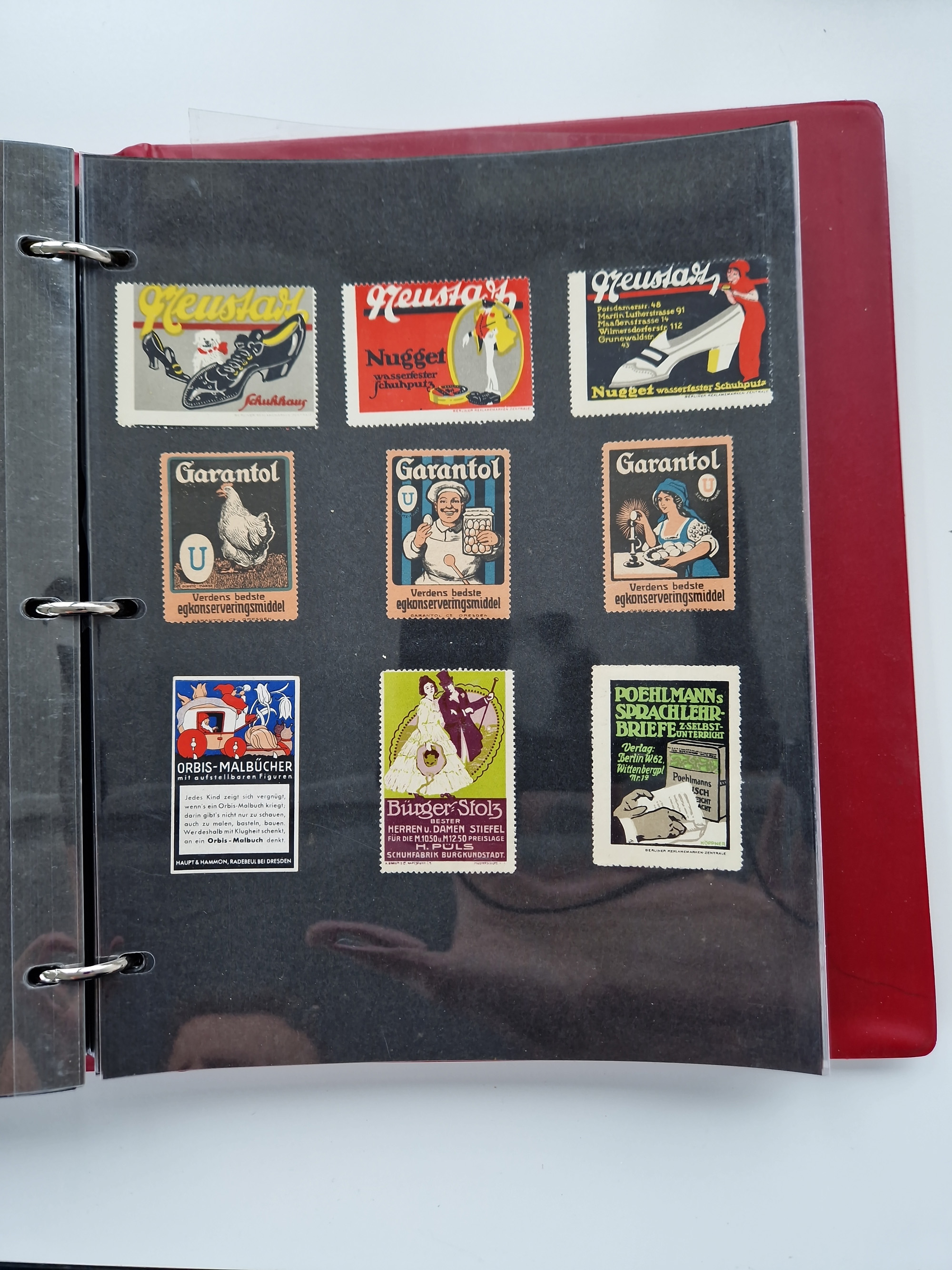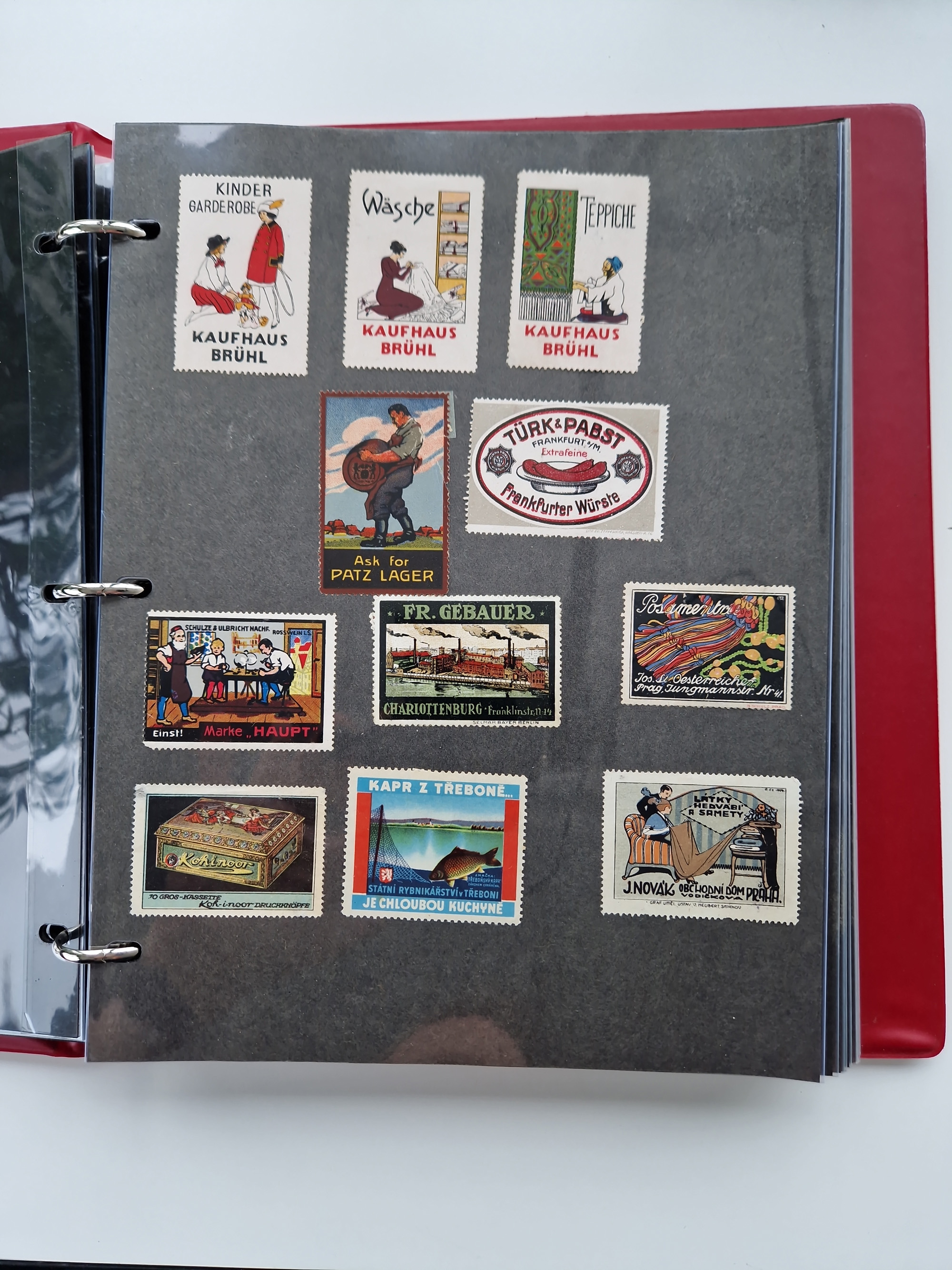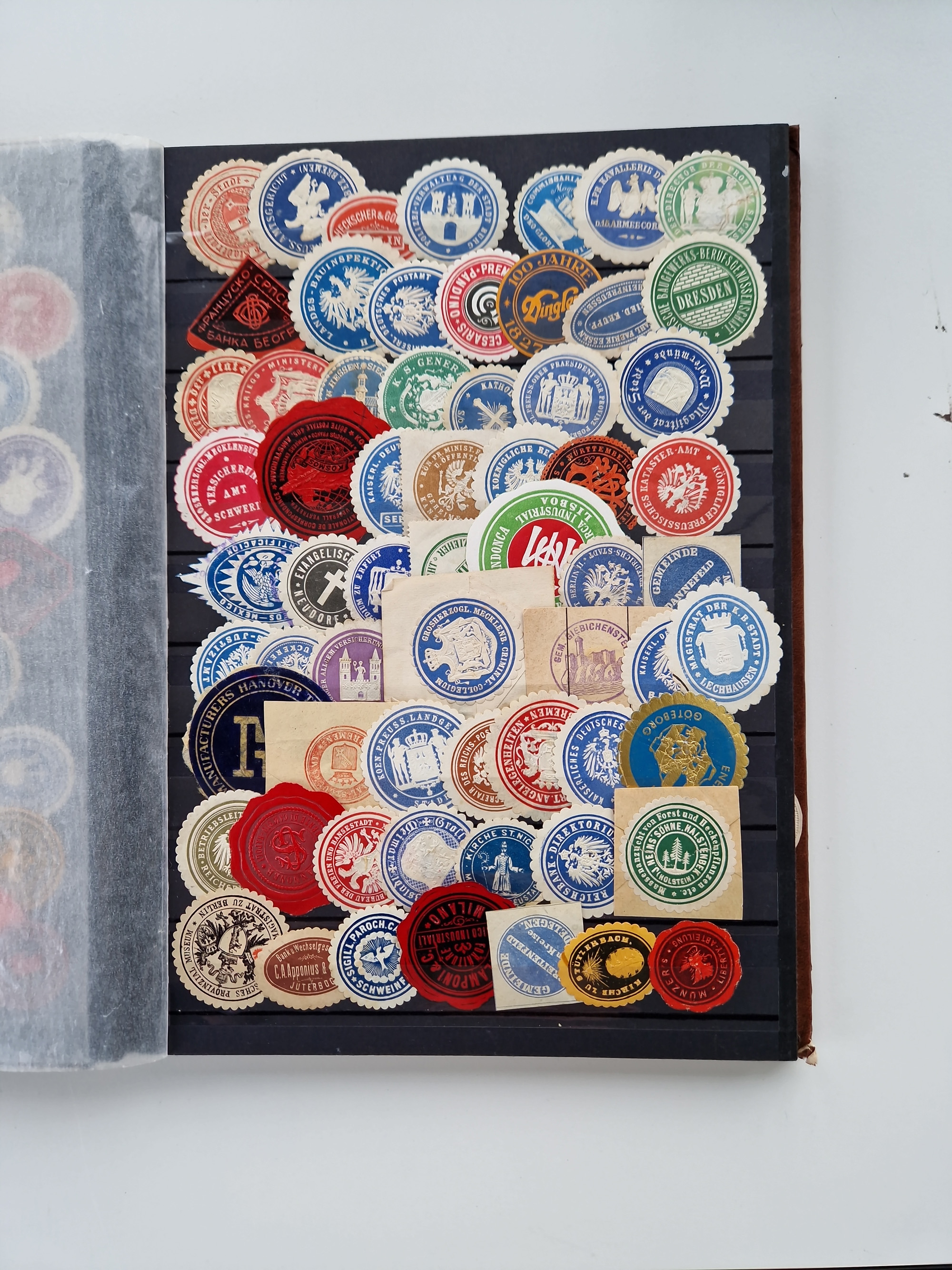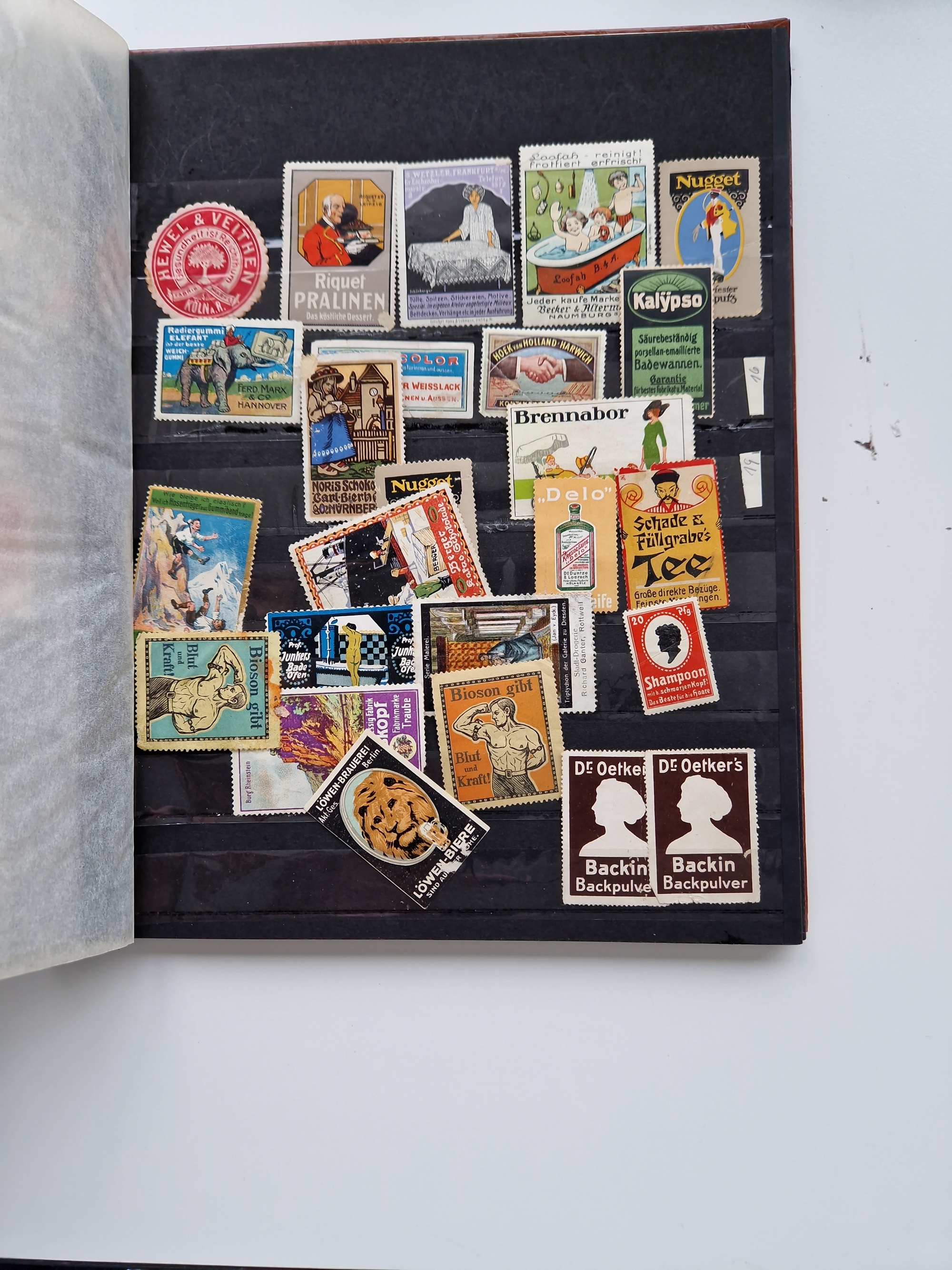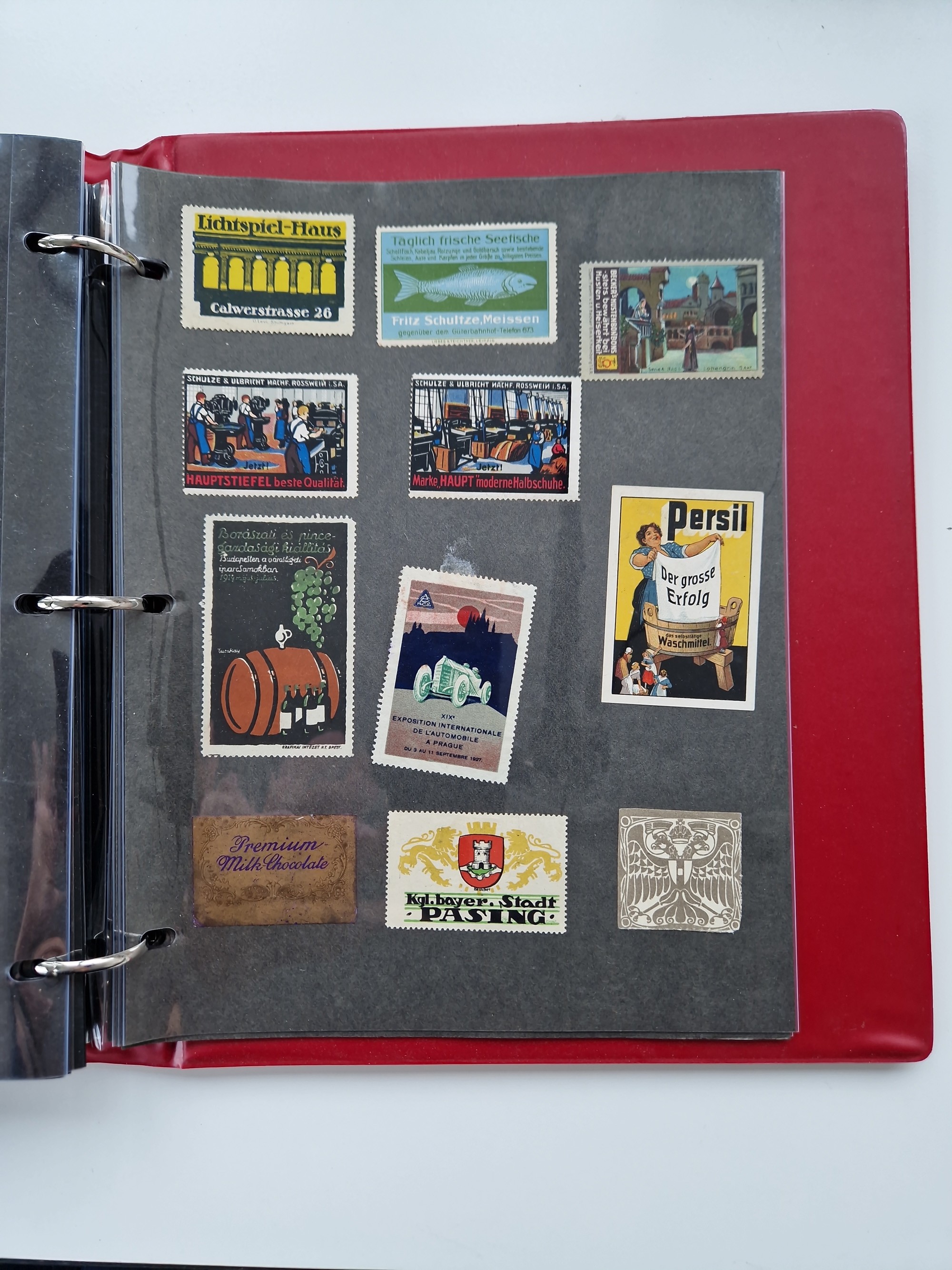 VIGNETTEN: 1896/1960 (ca.), hochinteressanter Bestand mit einigen Tausend Vignetten, Verschluss- und Siegelmarken, später Spendenvignetten und -Blocks, dabei viele zu unterschiedlichen Ausstellungen, meist aus Berlin, München, Nürnberg, Leipzig mit Export-Messe, ferner aber auch Luftpost-Ausstellung, Gewerbe- und Industrieschau, Landwirtschaft, Kunst, Firmenvignetten, etc., etwas zu Briefmarken-Ausstellungen, dabei auch drei Hessheimer Entwürfe, vieles auf amerikanischen Händlerkarten und Loskarten, in drei Kartons
