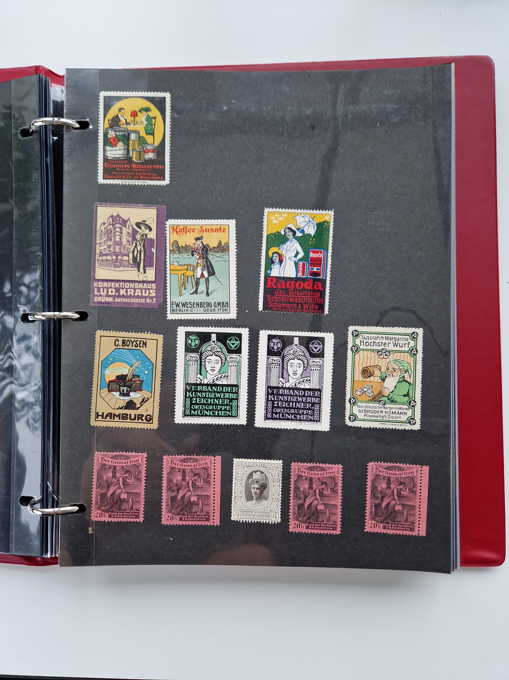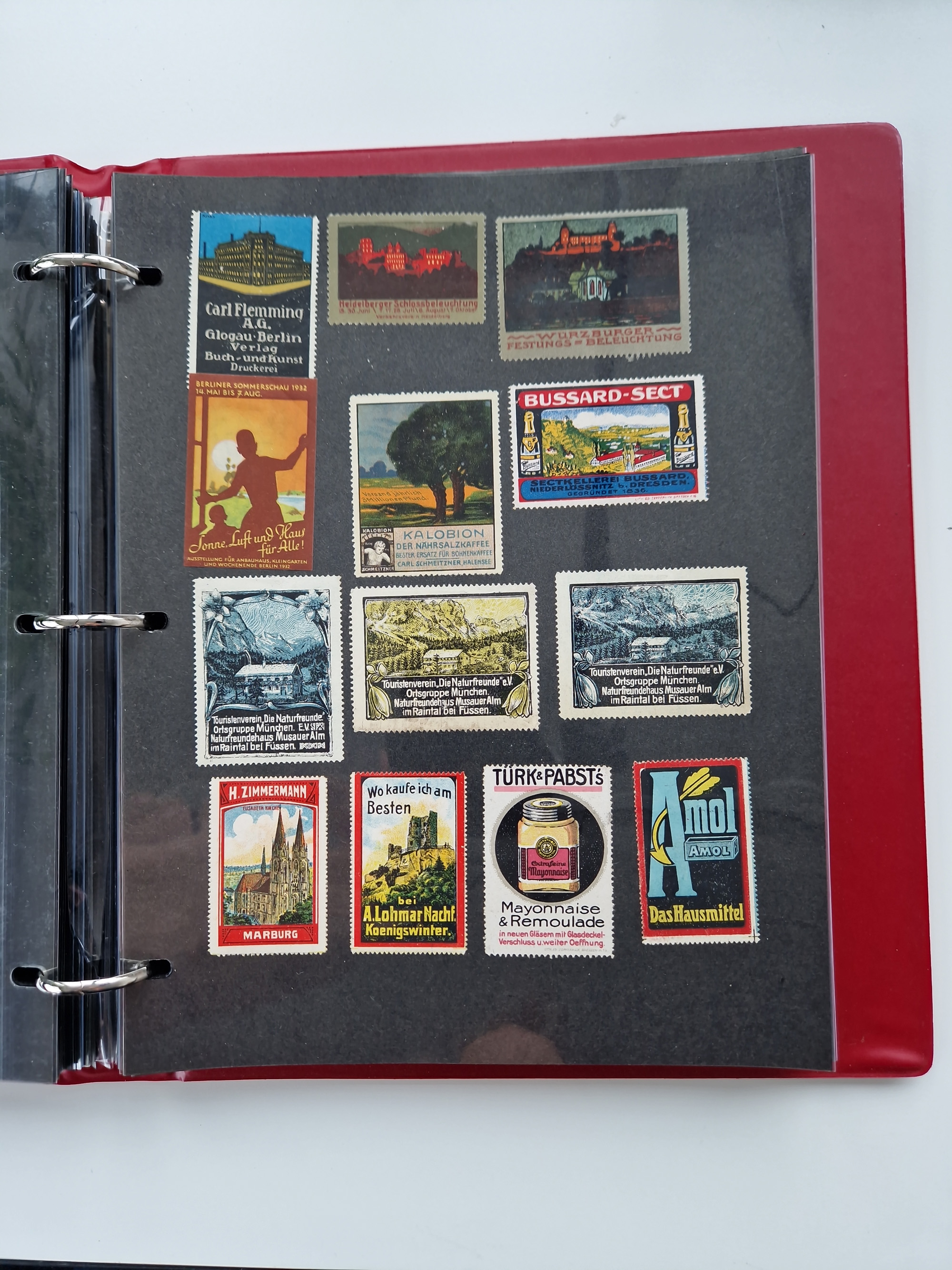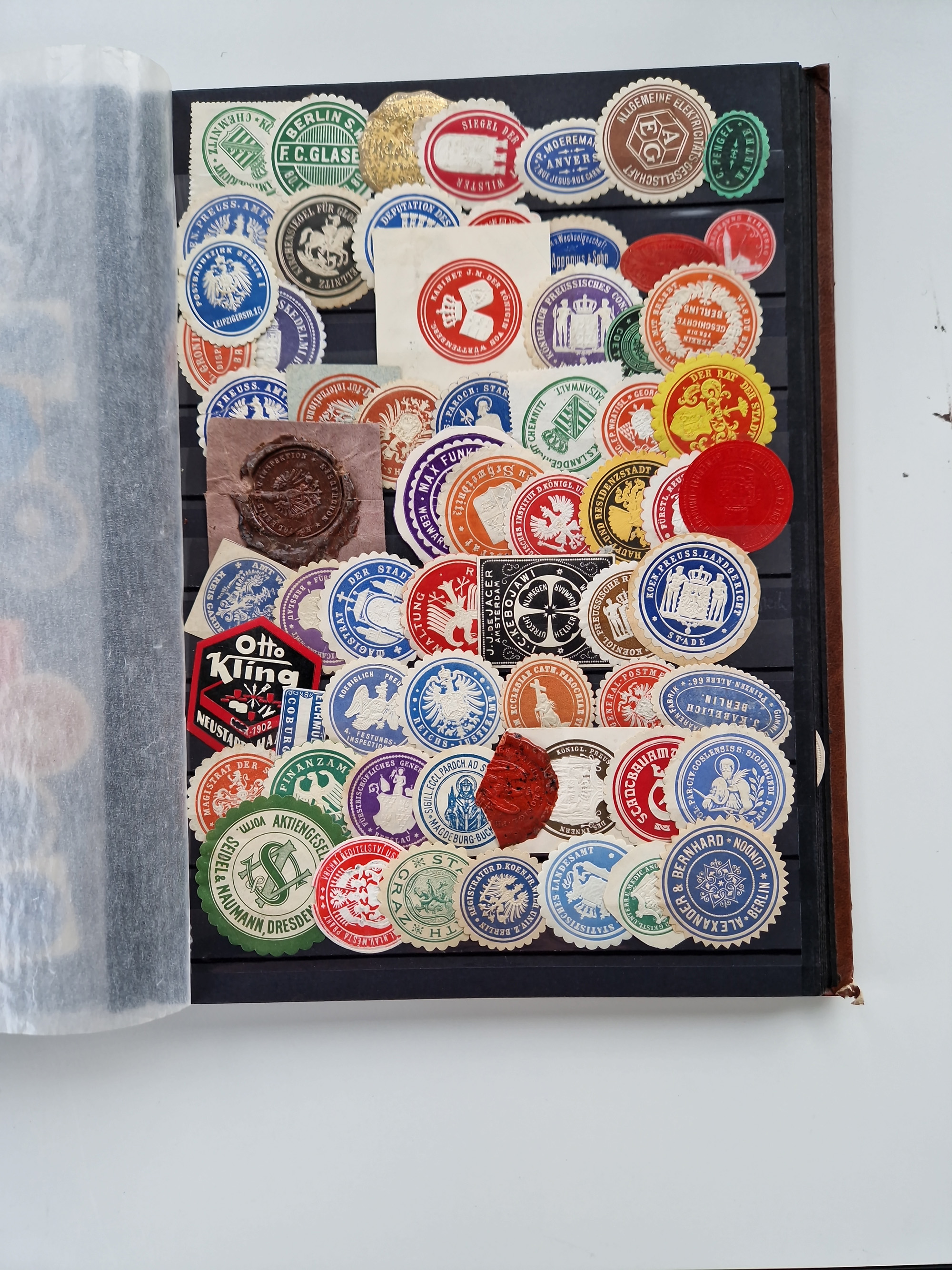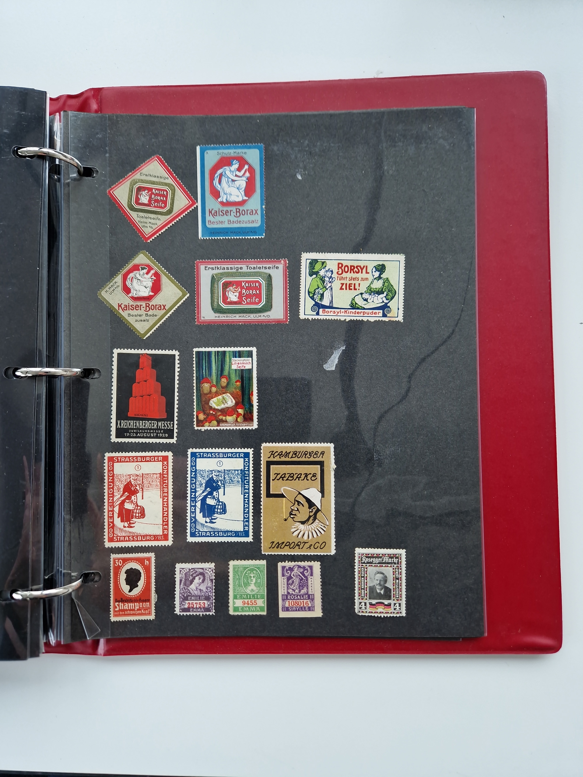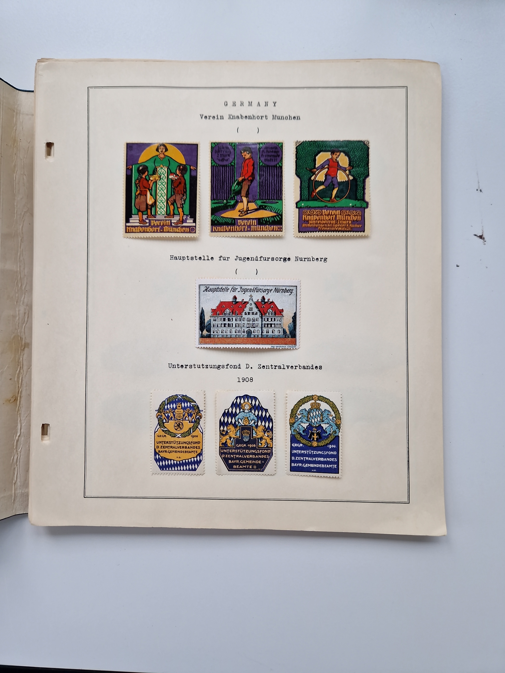 VIGNETTEN: 1896/1960 (ca.), hochinteressanter Bestand mit einigen Tausend Vignetten, Verschluss- und Siegelmarken, später Spendenvignetten und -Blocks, dabei viele zu unterschiedlichen Ausstellungen, meist aus Berlin, München, Nürnberg, Leipzig mit Export-Messe, ferner aber auch Luftpost-Ausstellung, Gewerbe- und Industrieschau, Landwirtschaft, Kunst, Firmenvignetten, etc., etwas zu Briefmarken-Ausstellungen, dabei auch drei Hessheimer Entwürfe, vieles auf amerikanischen Händlerkarten und Loskarten, in drei Kartons