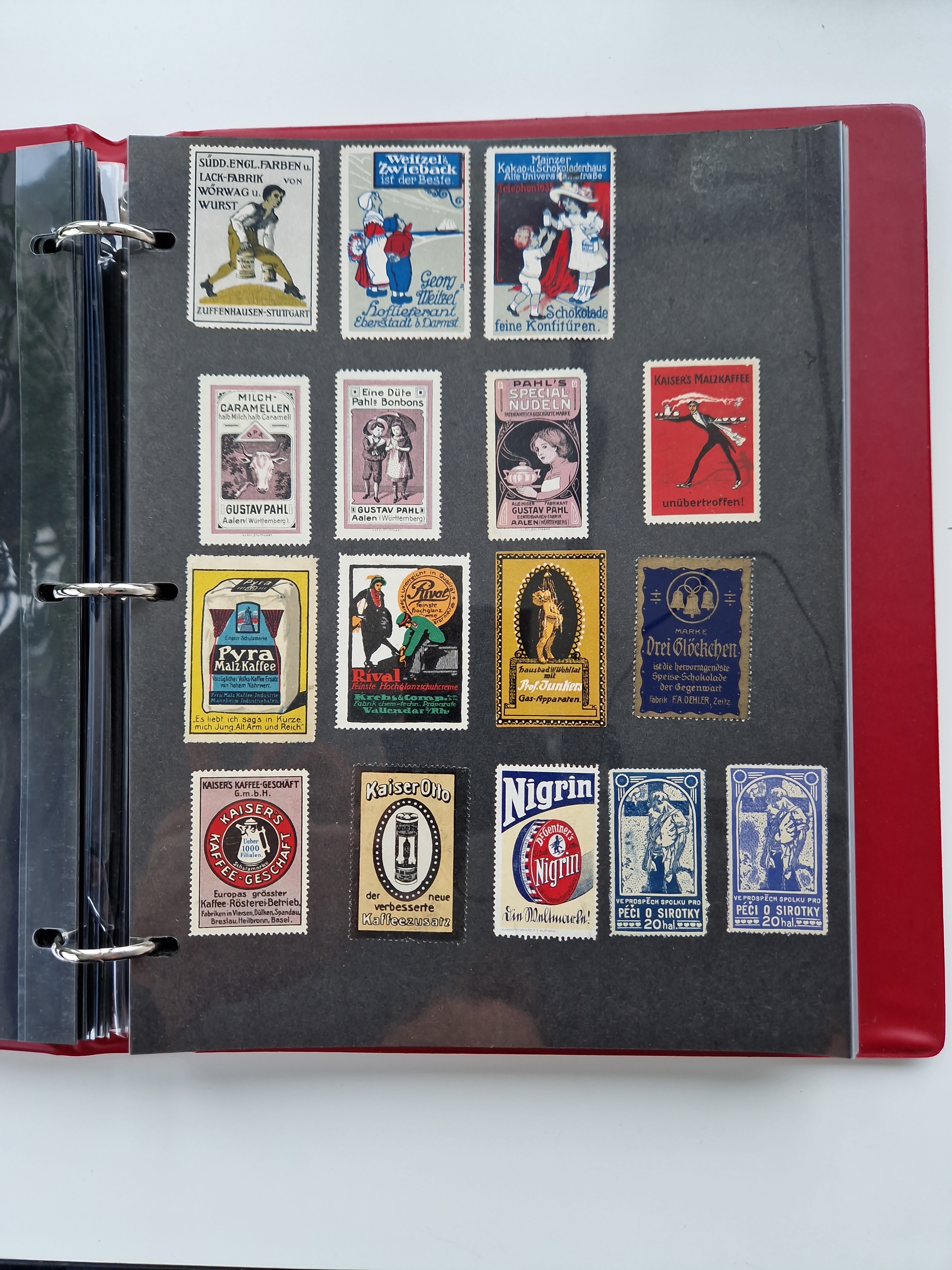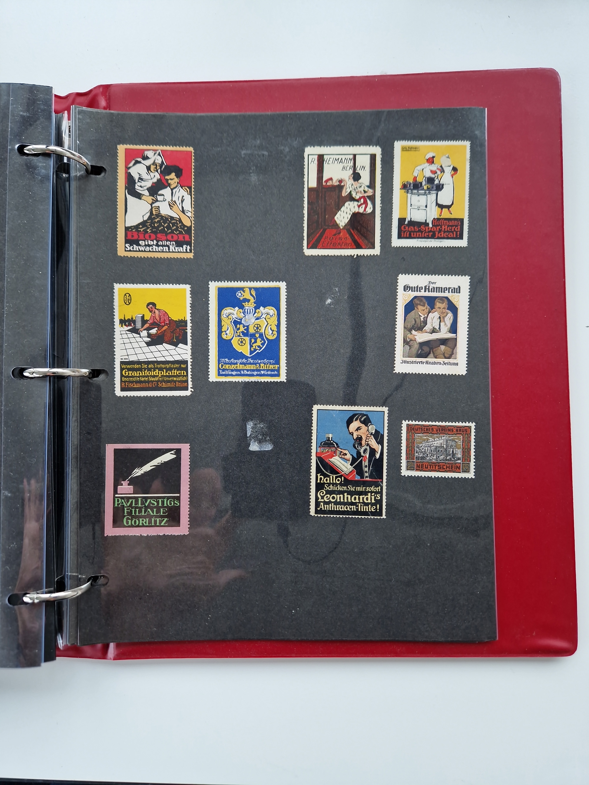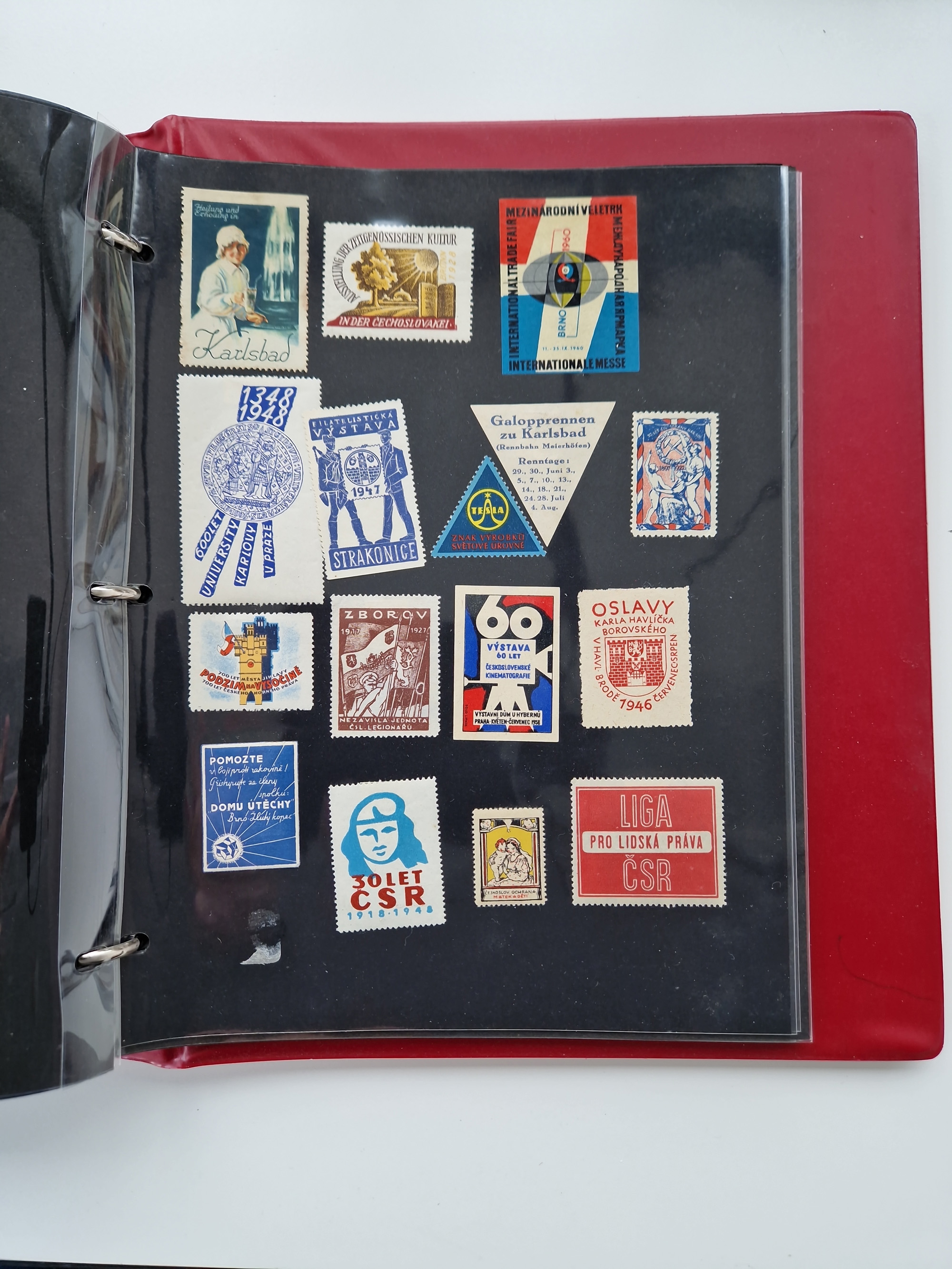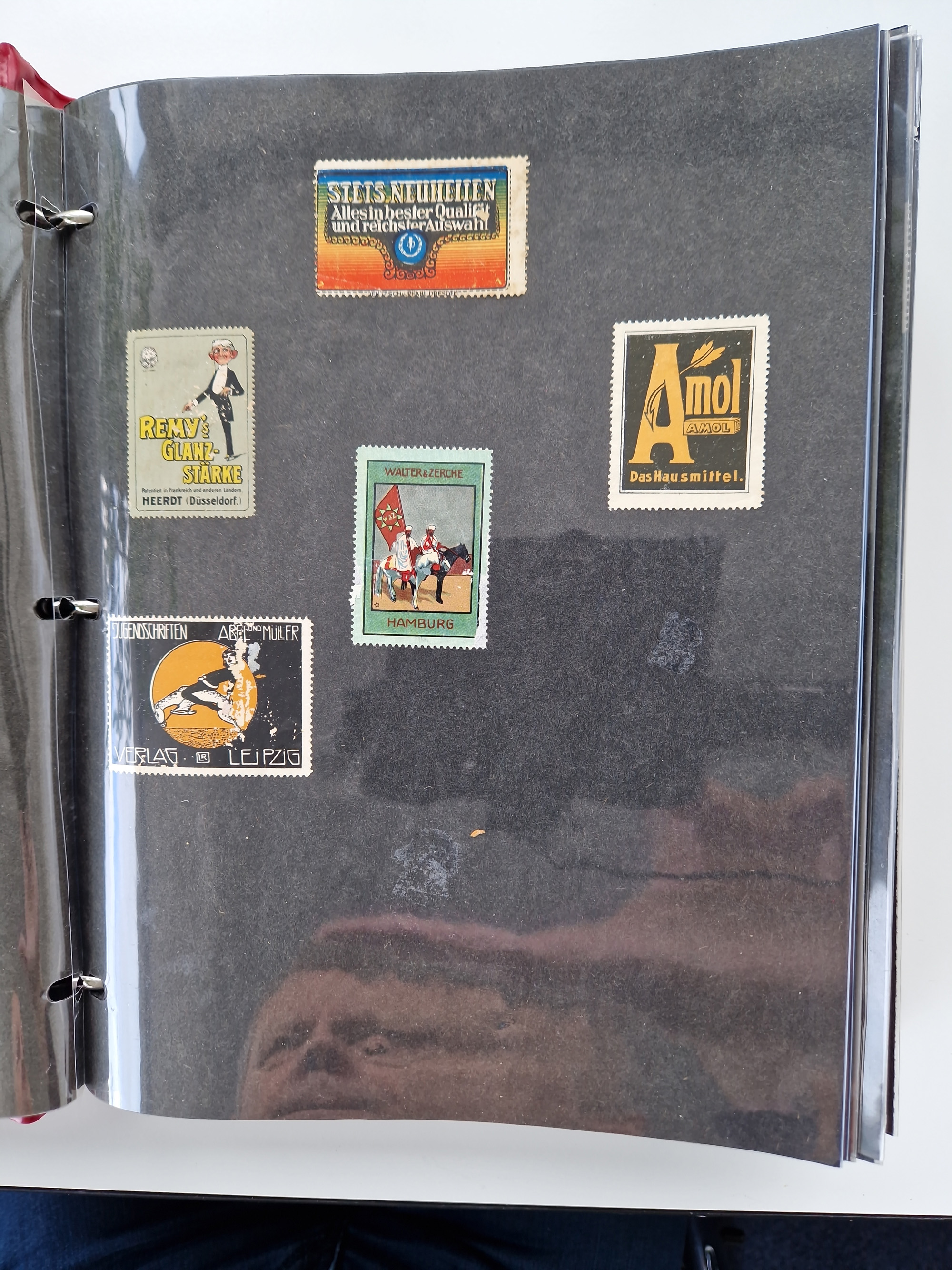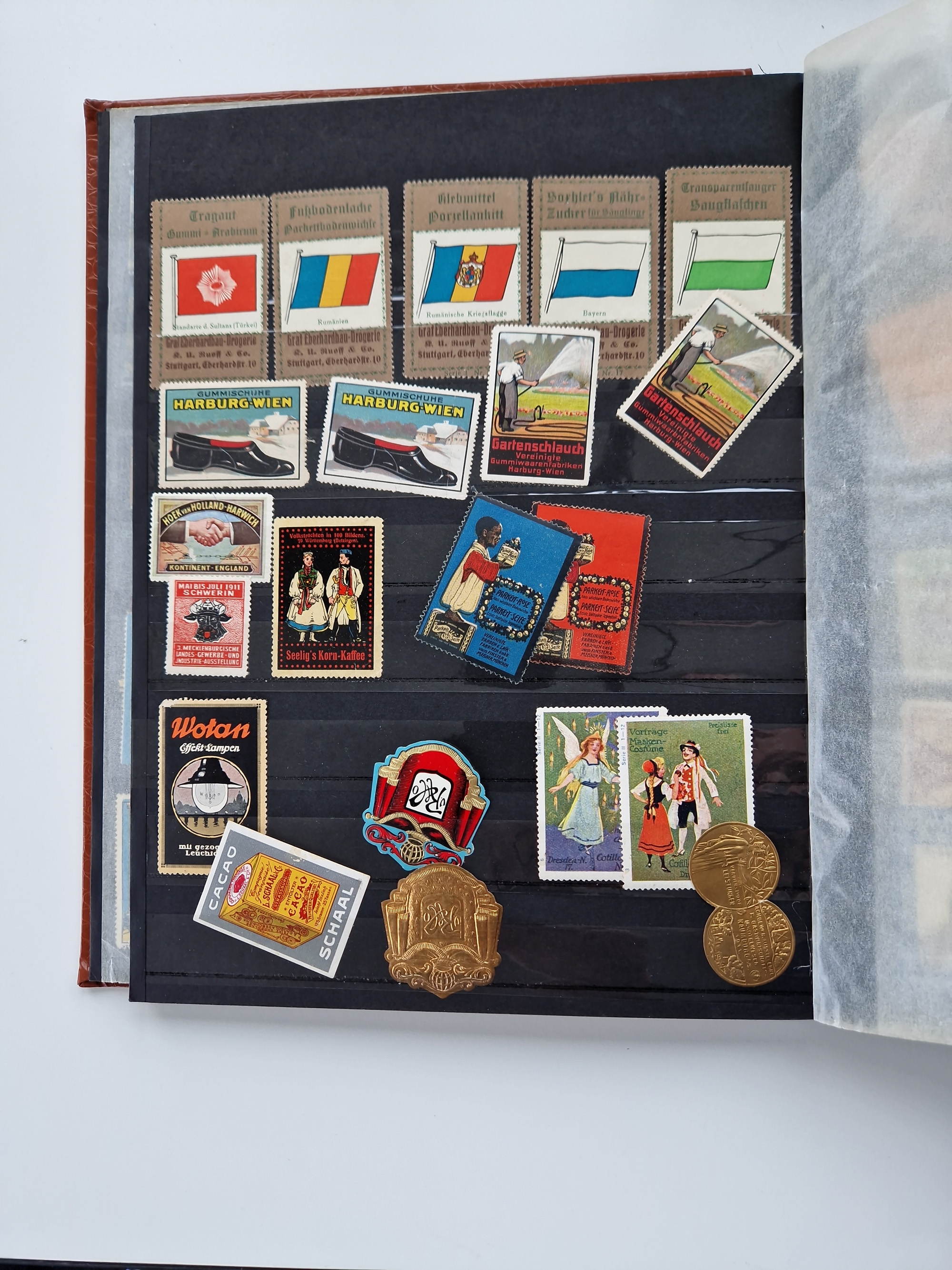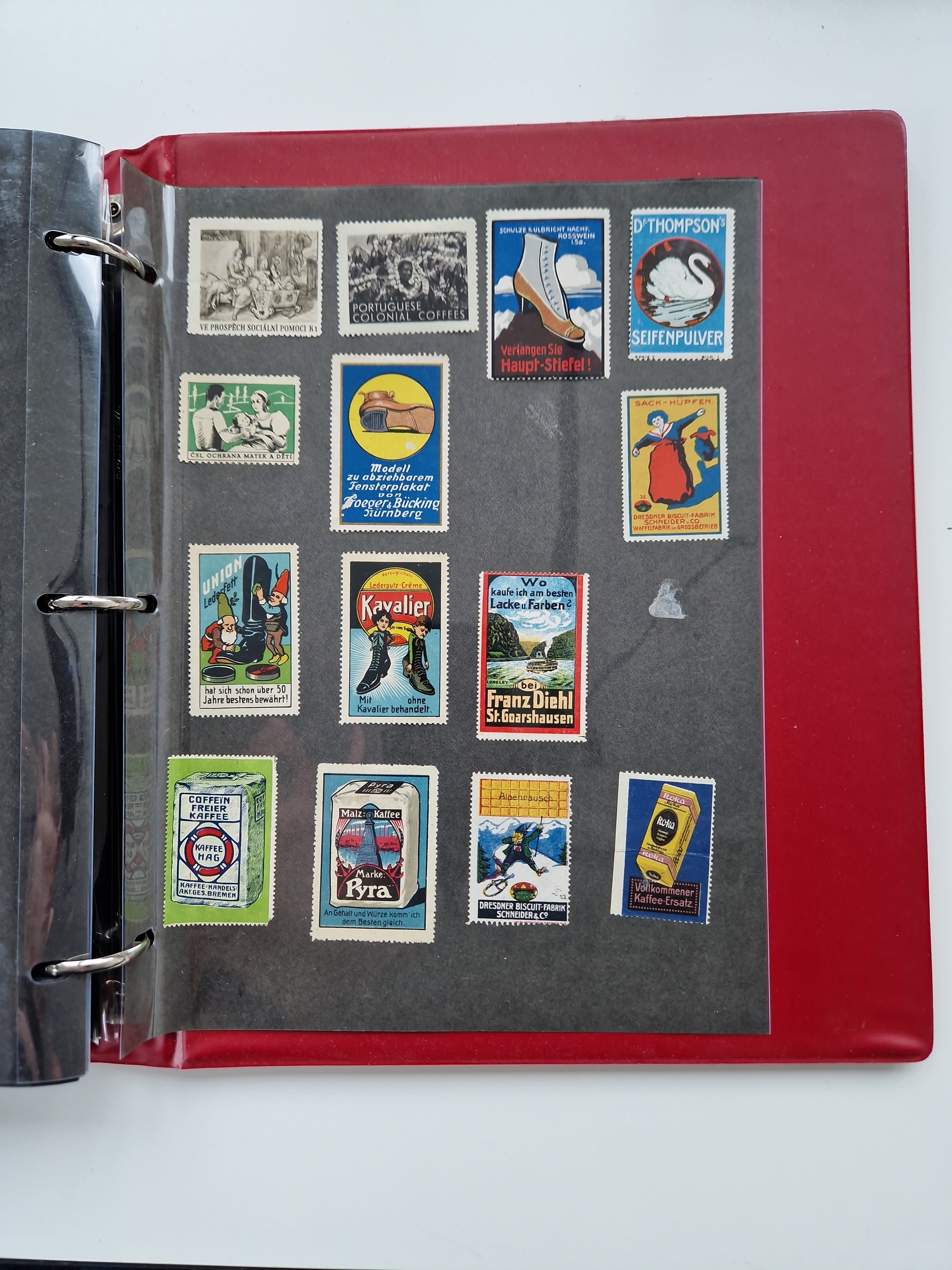 VIGNETTEN: 1896/1960 (ca.), hochinteressanter Bestand mit einigen Tausend Vignetten, Verschluss- und Siegelmarken, später Spendenvignetten und -Blocks, dabei viele zu unterschiedlichen Ausstellungen, meist aus Berlin, München, Nürnberg, Leipzig mit Export-Messe, ferner aber auch Luftpost-Ausstellung, Gewerbe- und Industrieschau, Landwirtschaft, Kunst, Firmenvignetten, etc., etwas zu Briefmarken-Ausstellungen, dabei auch drei Hessheimer Entwürfe, vieles auf amerikanischen Händlerkarten und Loskarten, in drei Kartons