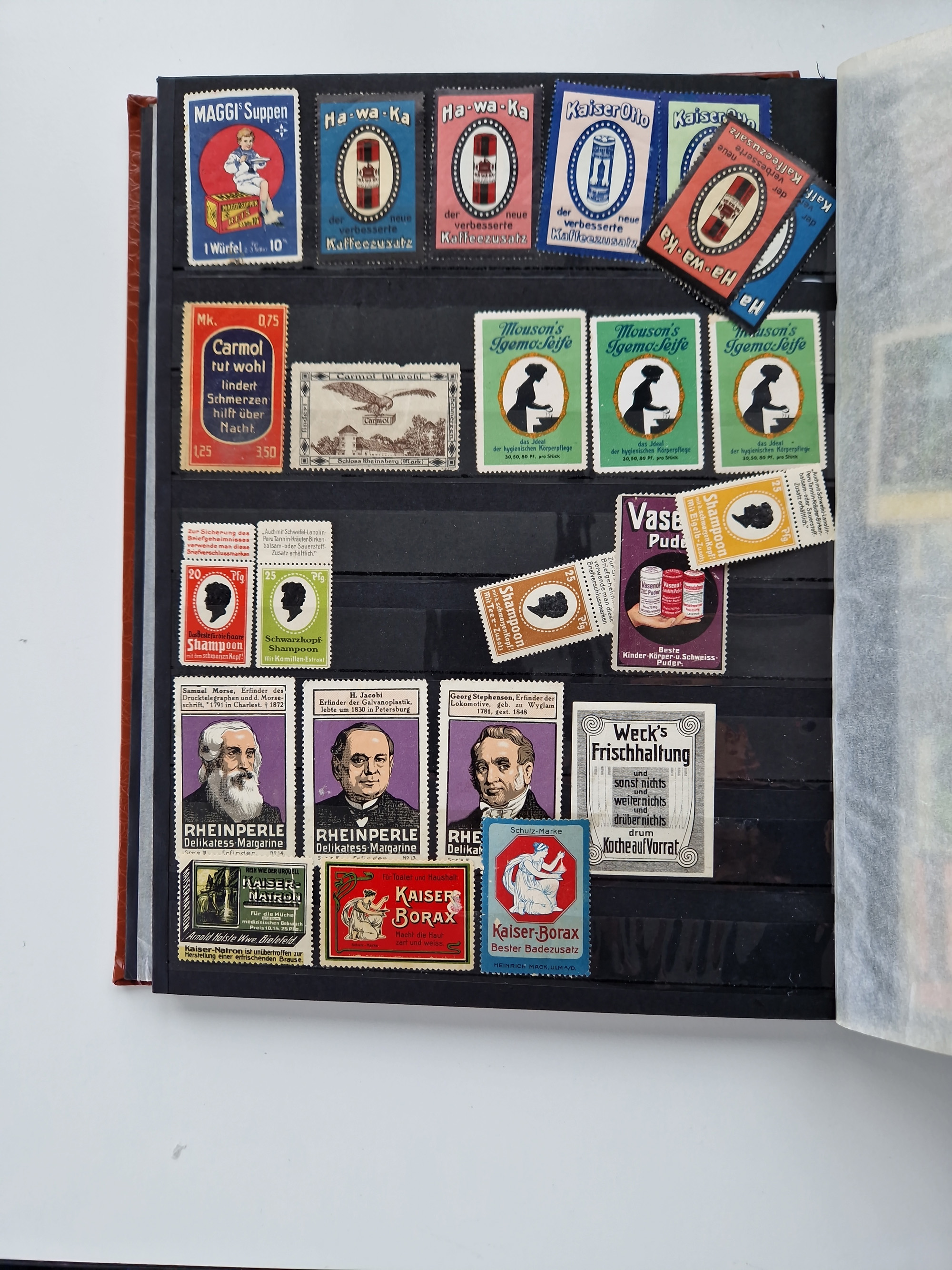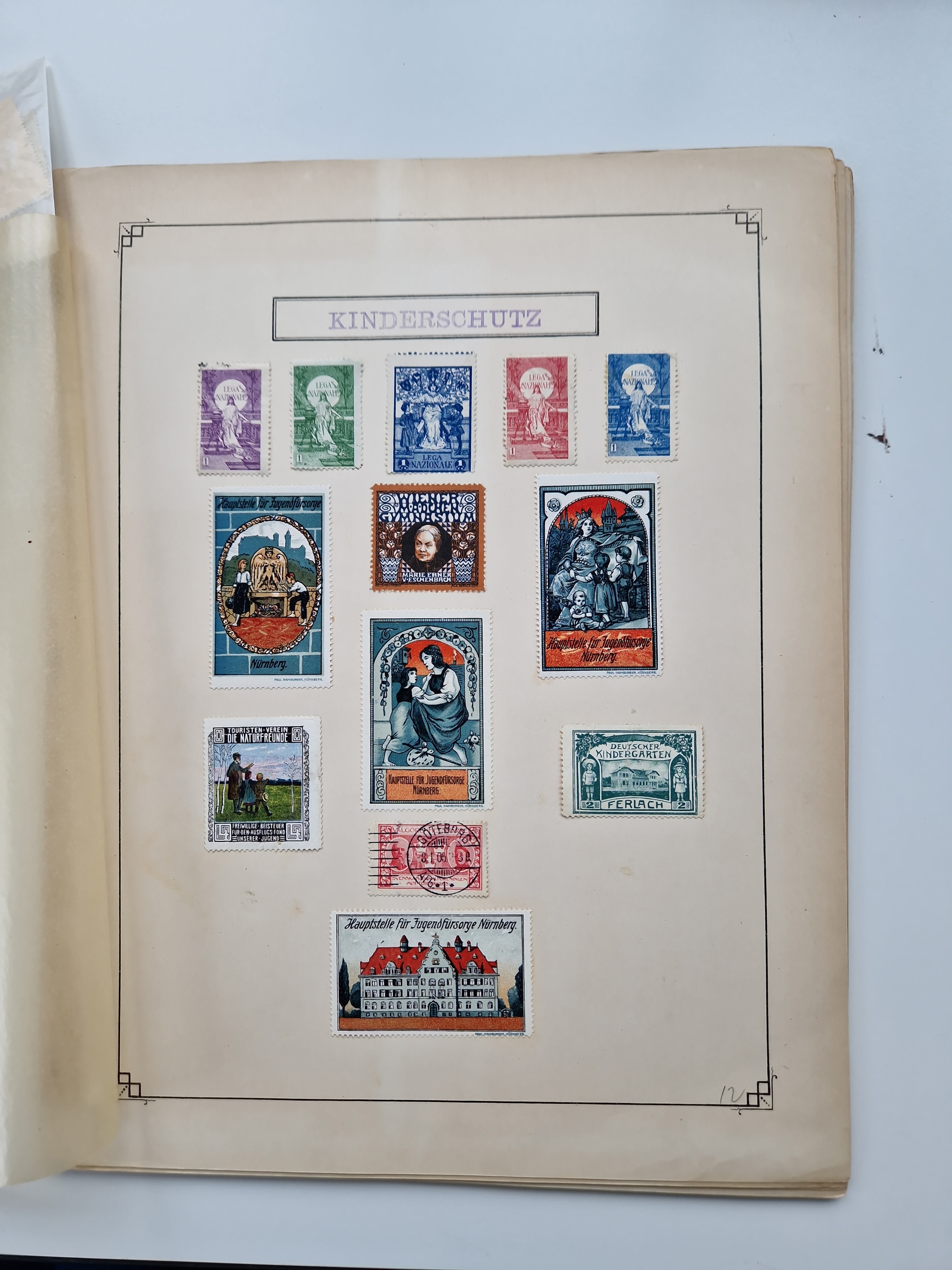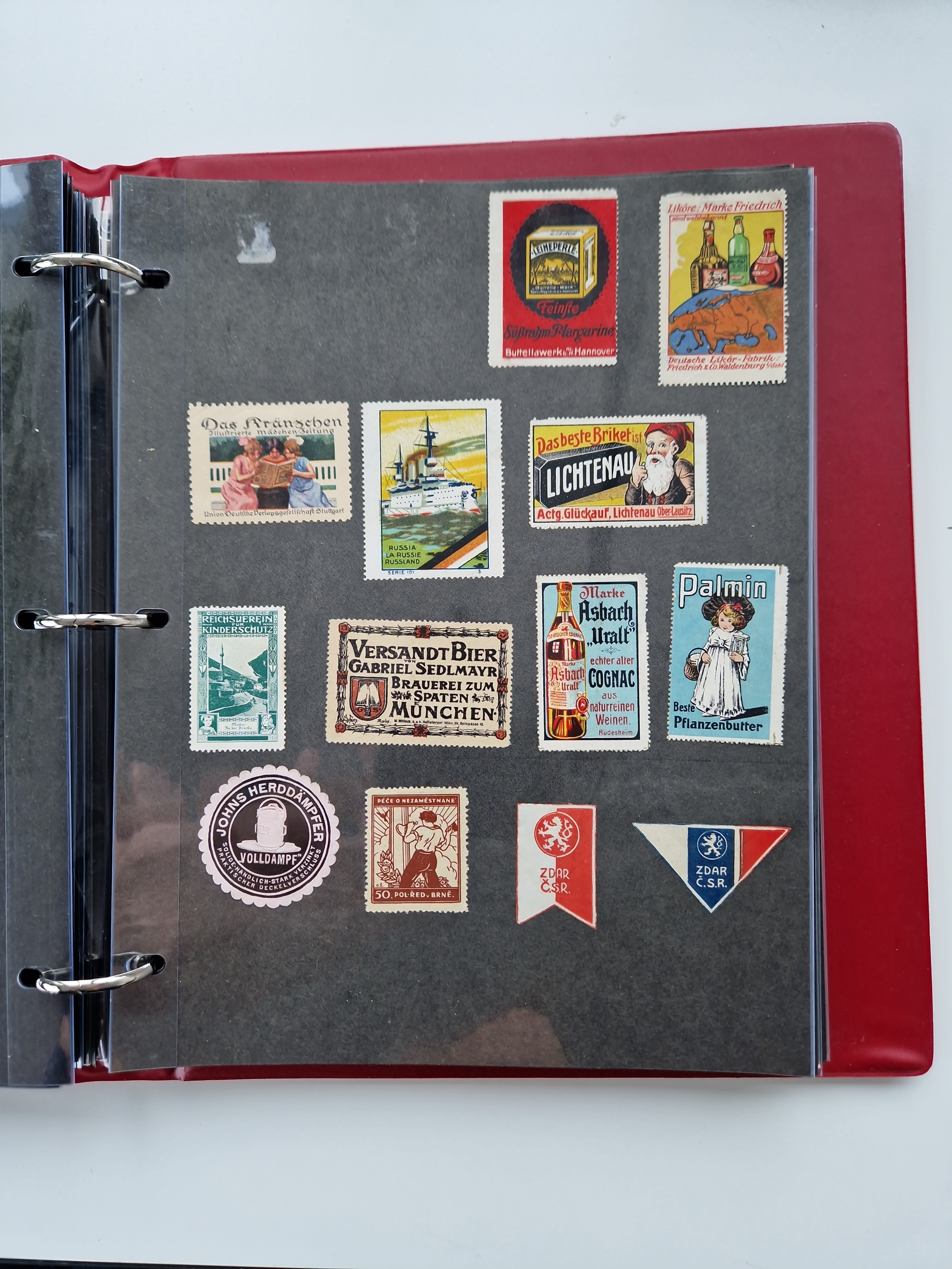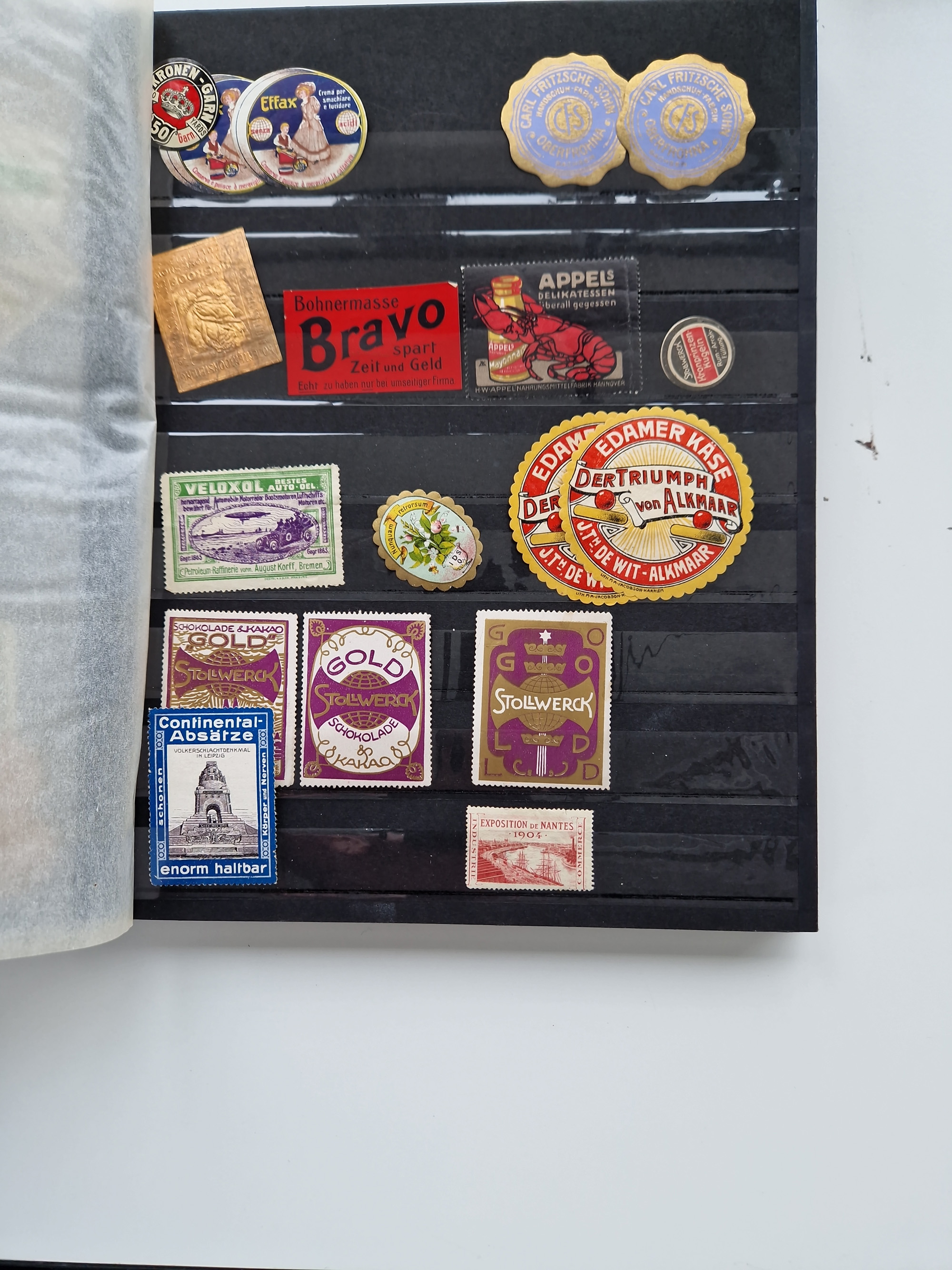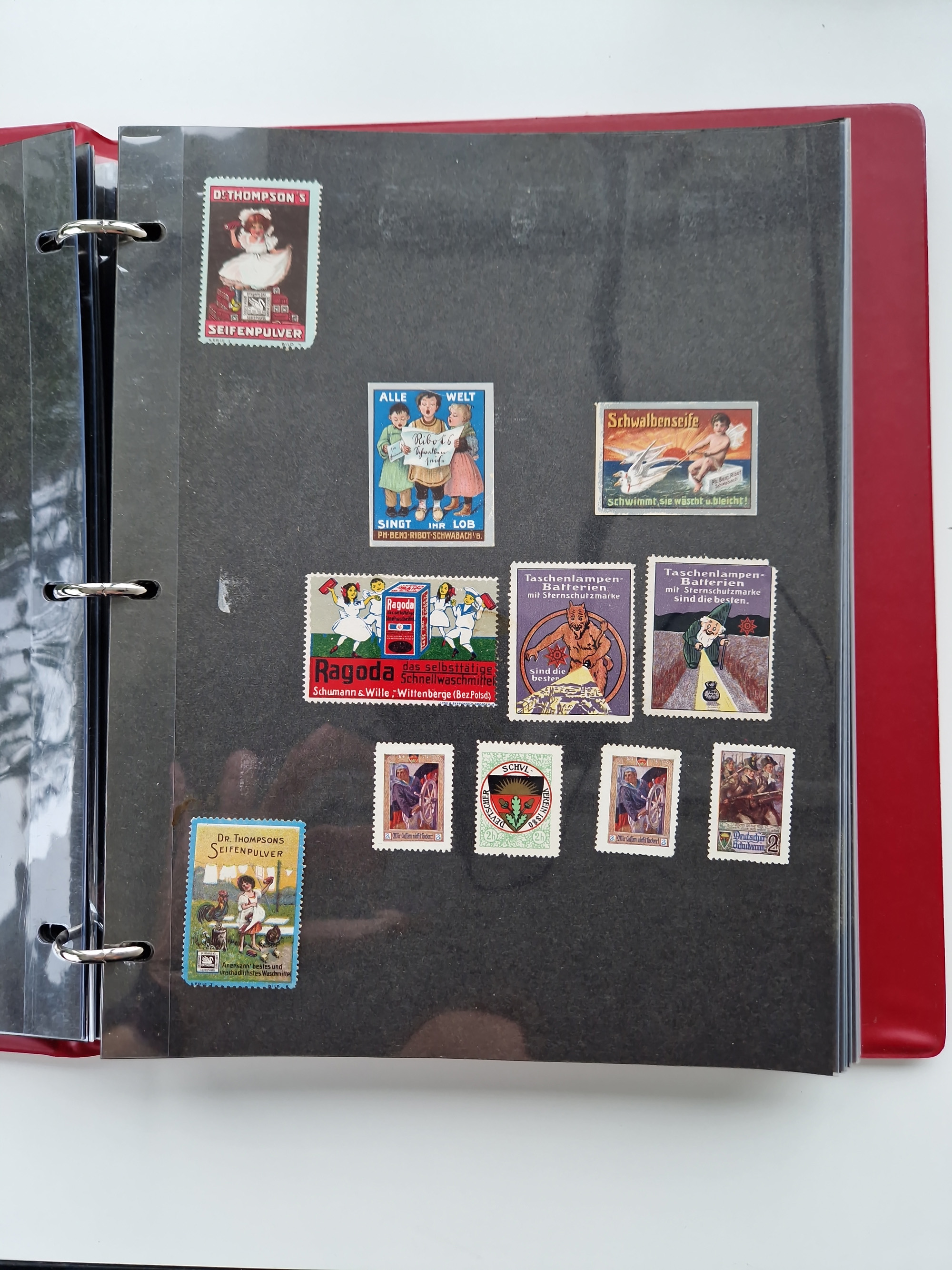 VIGNETTEN: 1896/1960 (ca.), hochinteressanter Bestand mit einigen Tausend Vignetten, Verschluss- und Siegelmarken, später Spendenvignetten und -Blocks, dabei viele zu unterschiedlichen Ausstellungen, meist aus Berlin, München, Nürnberg, Leipzig mit Export-Messe, ferner aber auch Luftpost-Ausstellung, Gewerbe- und Industrieschau, Landwirtschaft, Kunst, Firmenvignetten, etc., etwas zu Briefmarken-Ausstellungen, dabei auch drei Hessheimer Entwürfe, vieles auf amerikanischen Händlerkarten und Loskarten, in drei Kartons