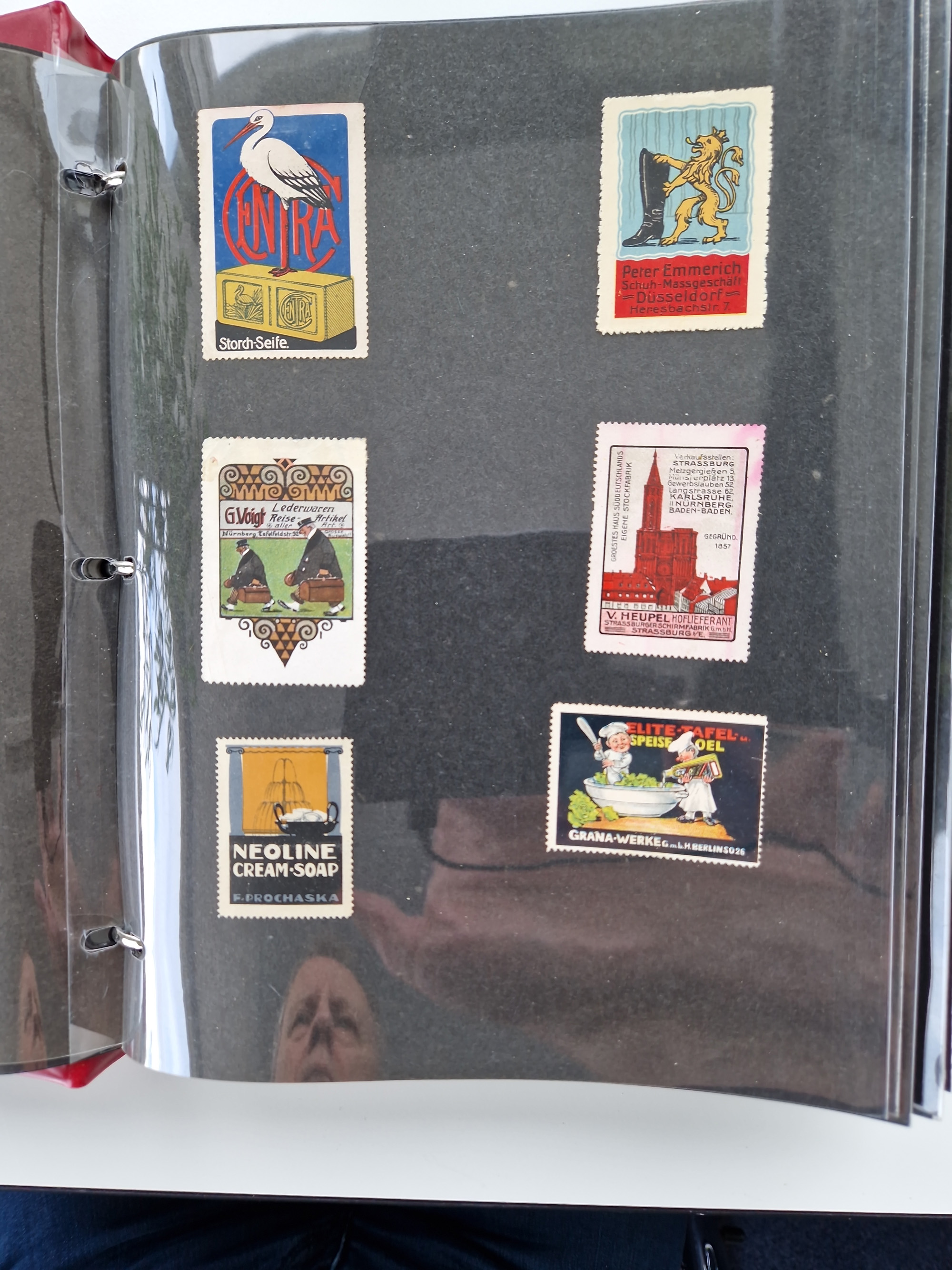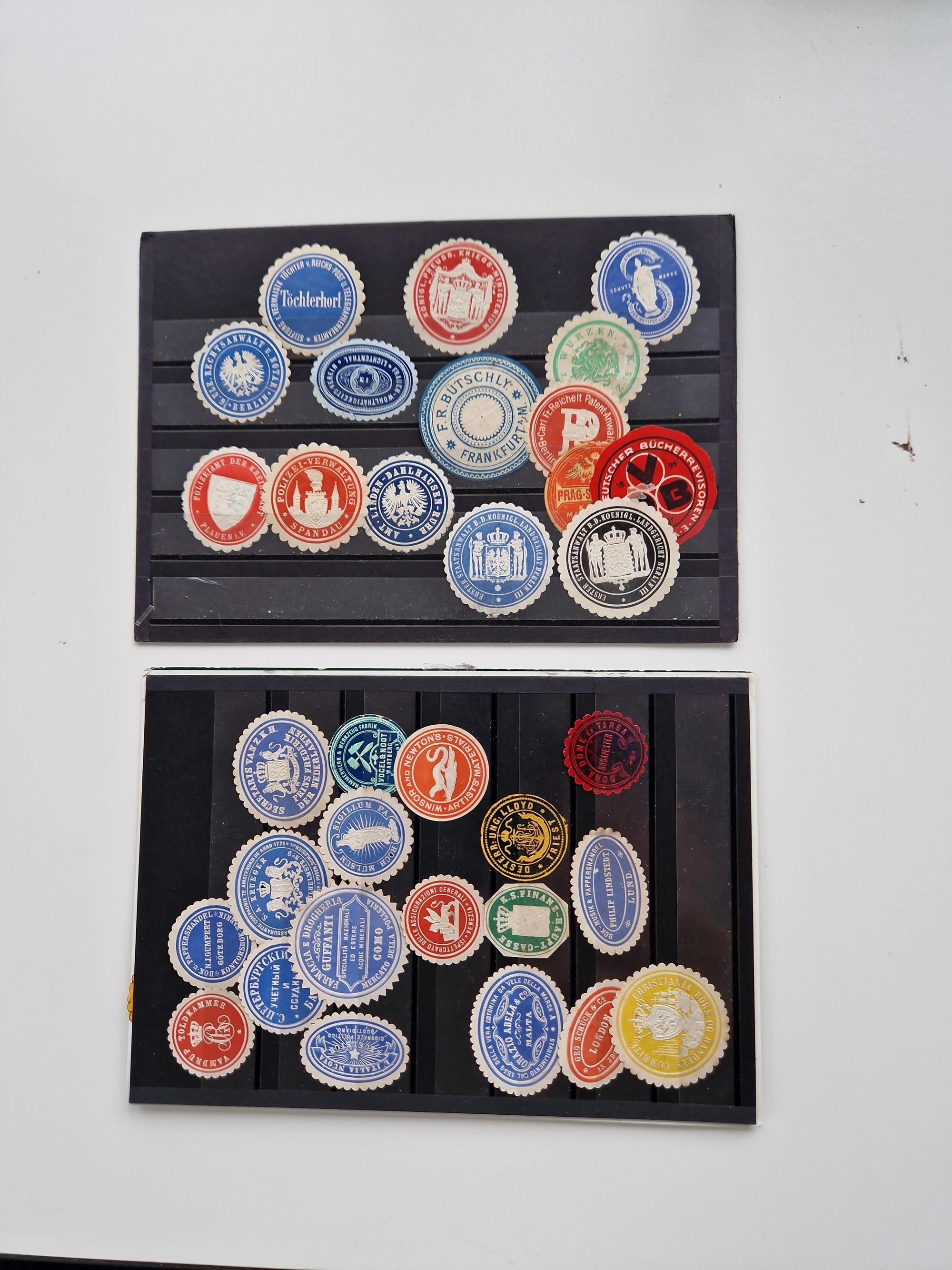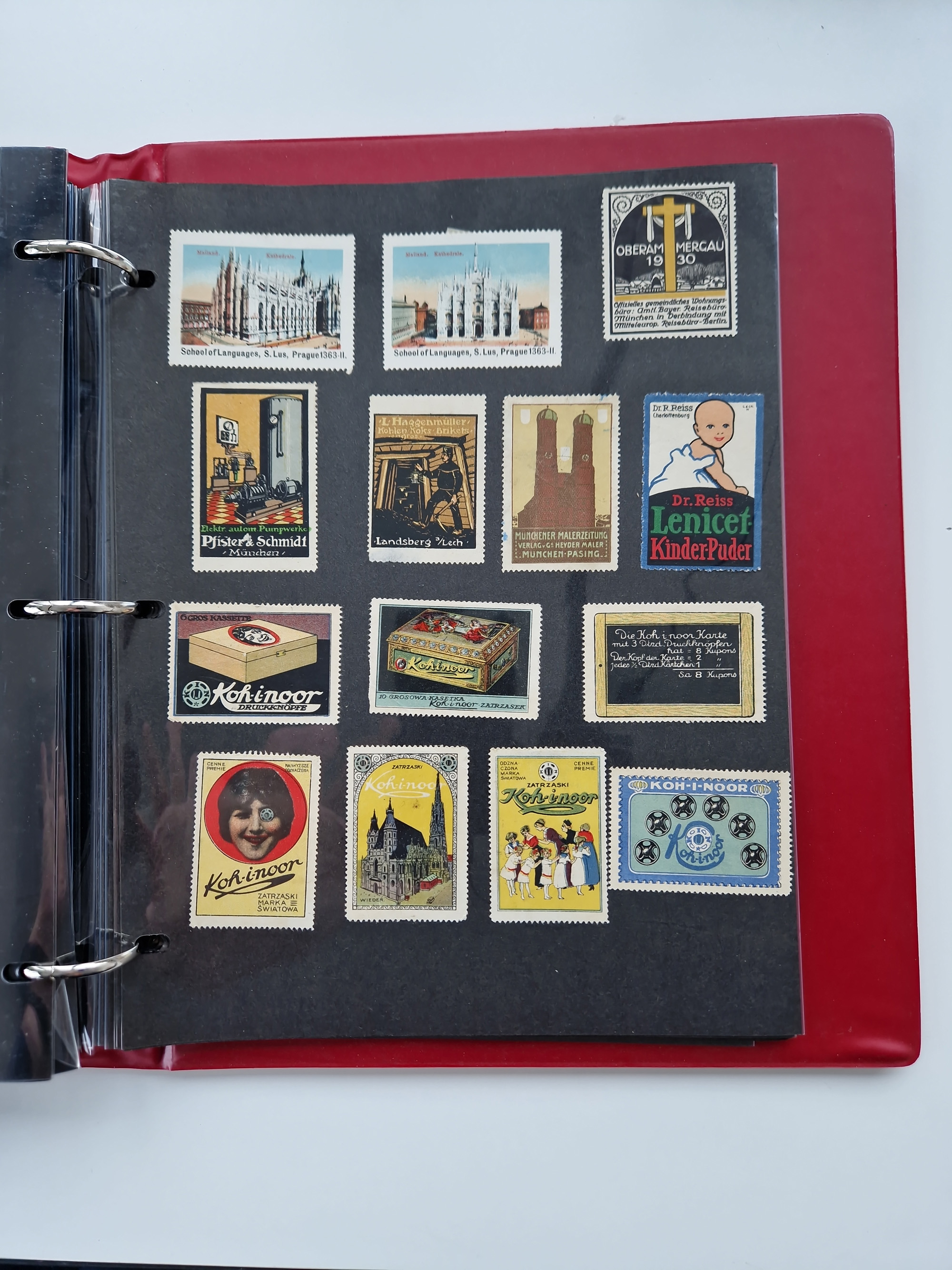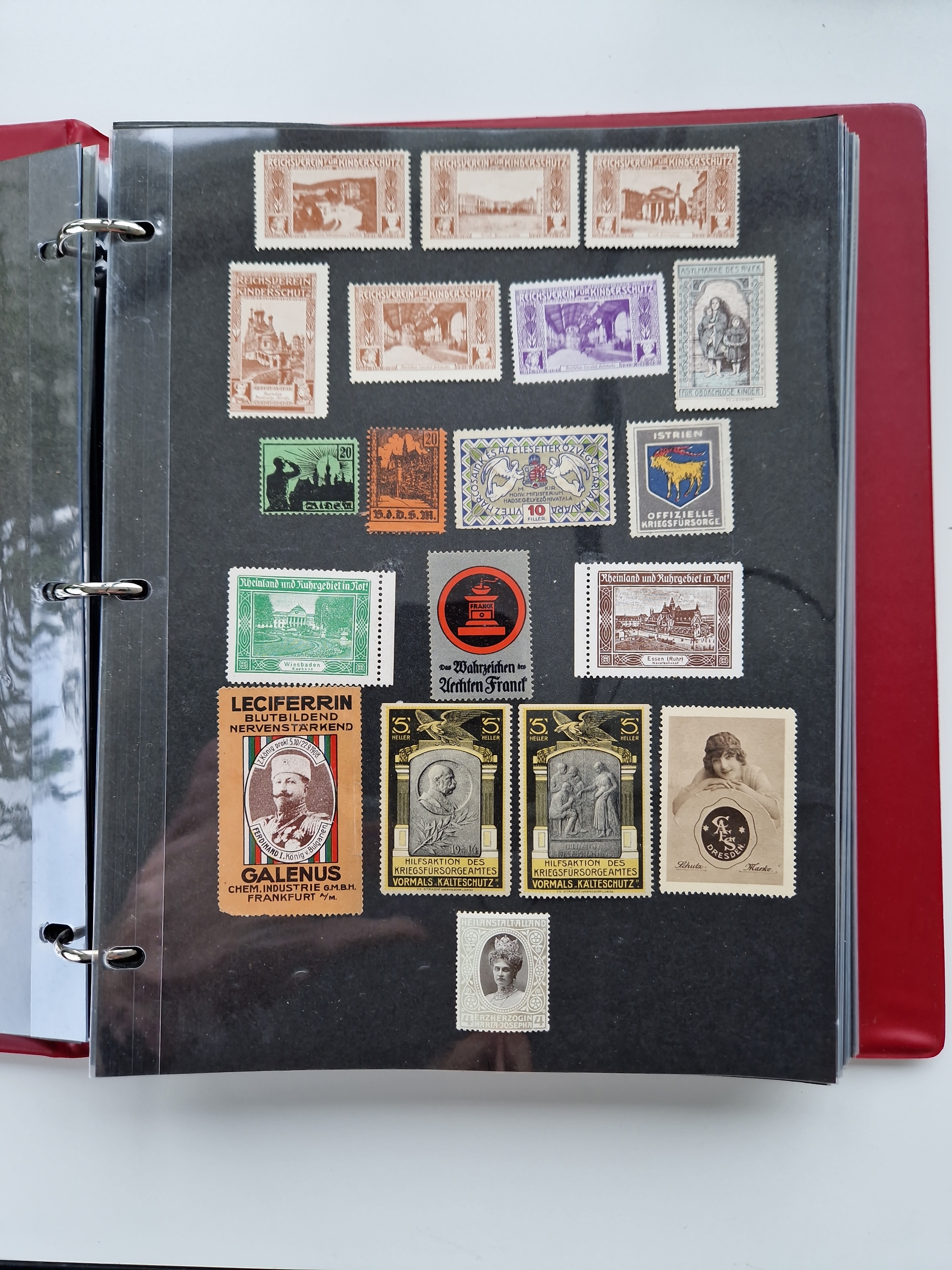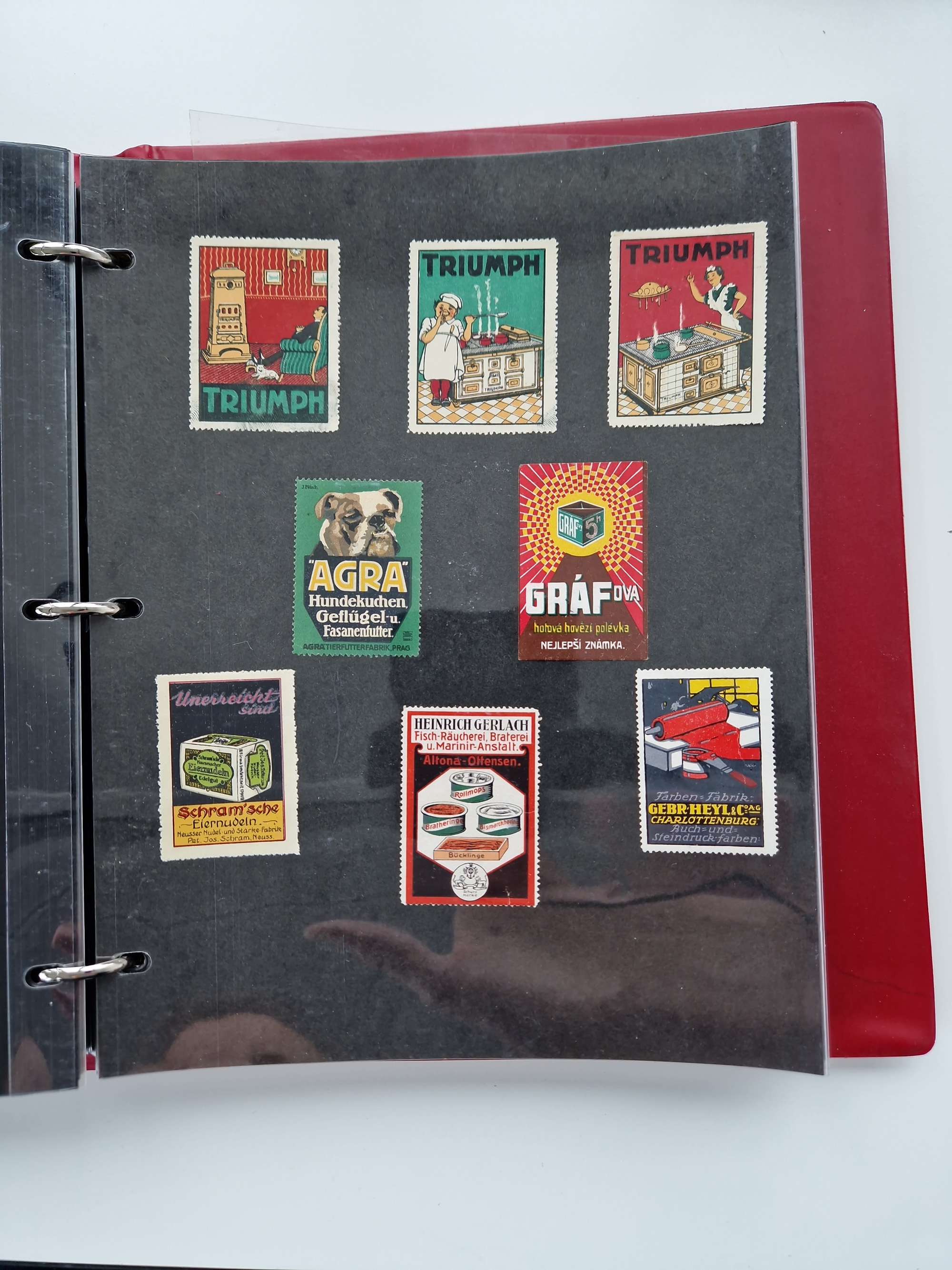 VIGNETTEN: 1896/1960 (ca.), hochinteressanter Bestand mit einigen Tausend Vignetten, Verschluss- und Siegelmarken, später Spendenvignetten und -Blocks, dabei viele zu unterschiedlichen Ausstellungen, meist aus Berlin, München, Nürnberg, Leipzig mit Export-Messe, ferner aber auch Luftpost-Ausstellung, Gewerbe- und Industrieschau, Landwirtschaft, Kunst, Firmenvignetten, etc., etwas zu Briefmarken-Ausstellungen, dabei auch drei Hessheimer Entwürfe, vieles auf amerikanischen Händlerkarten und Loskarten, in drei Kartons