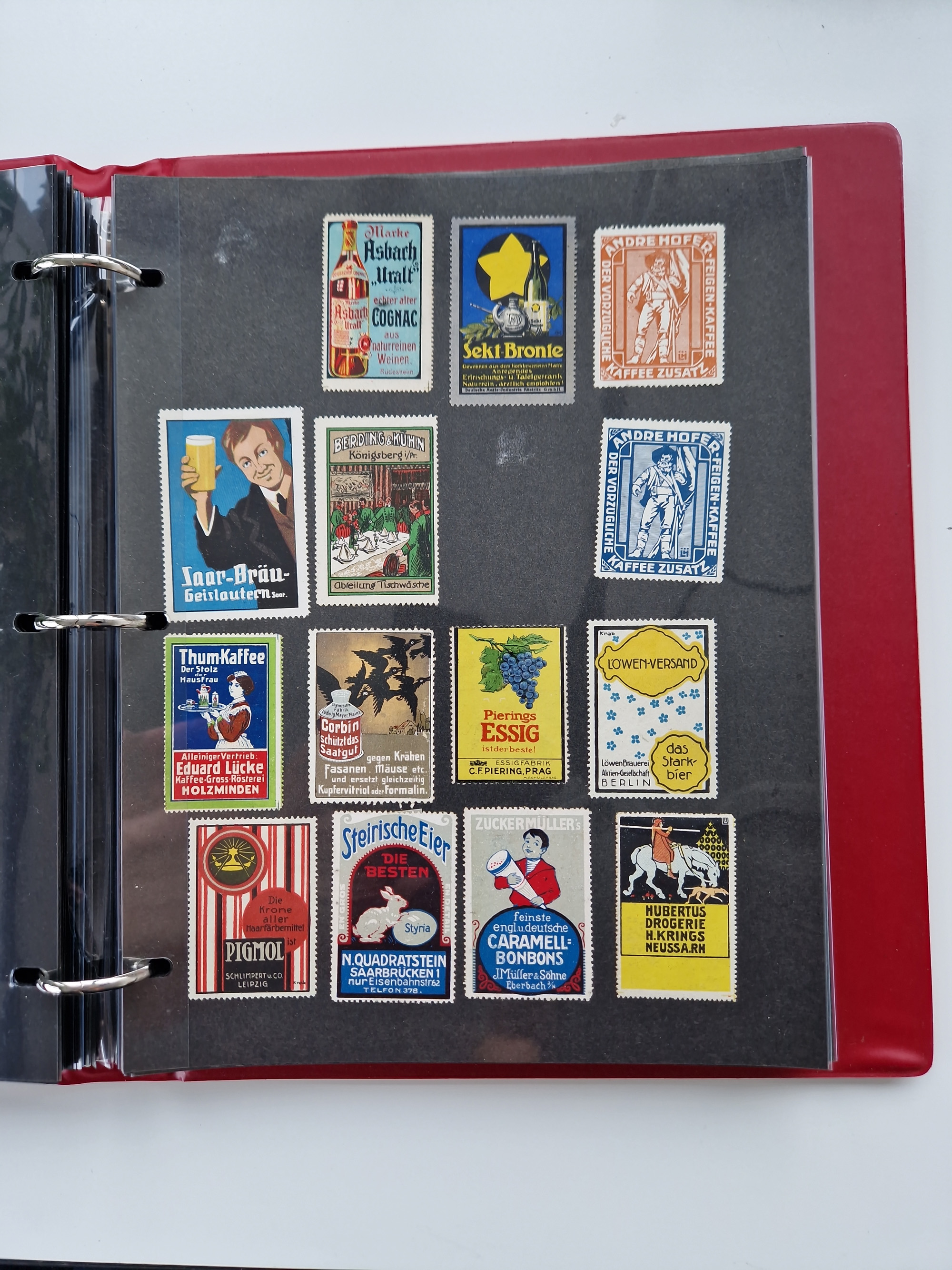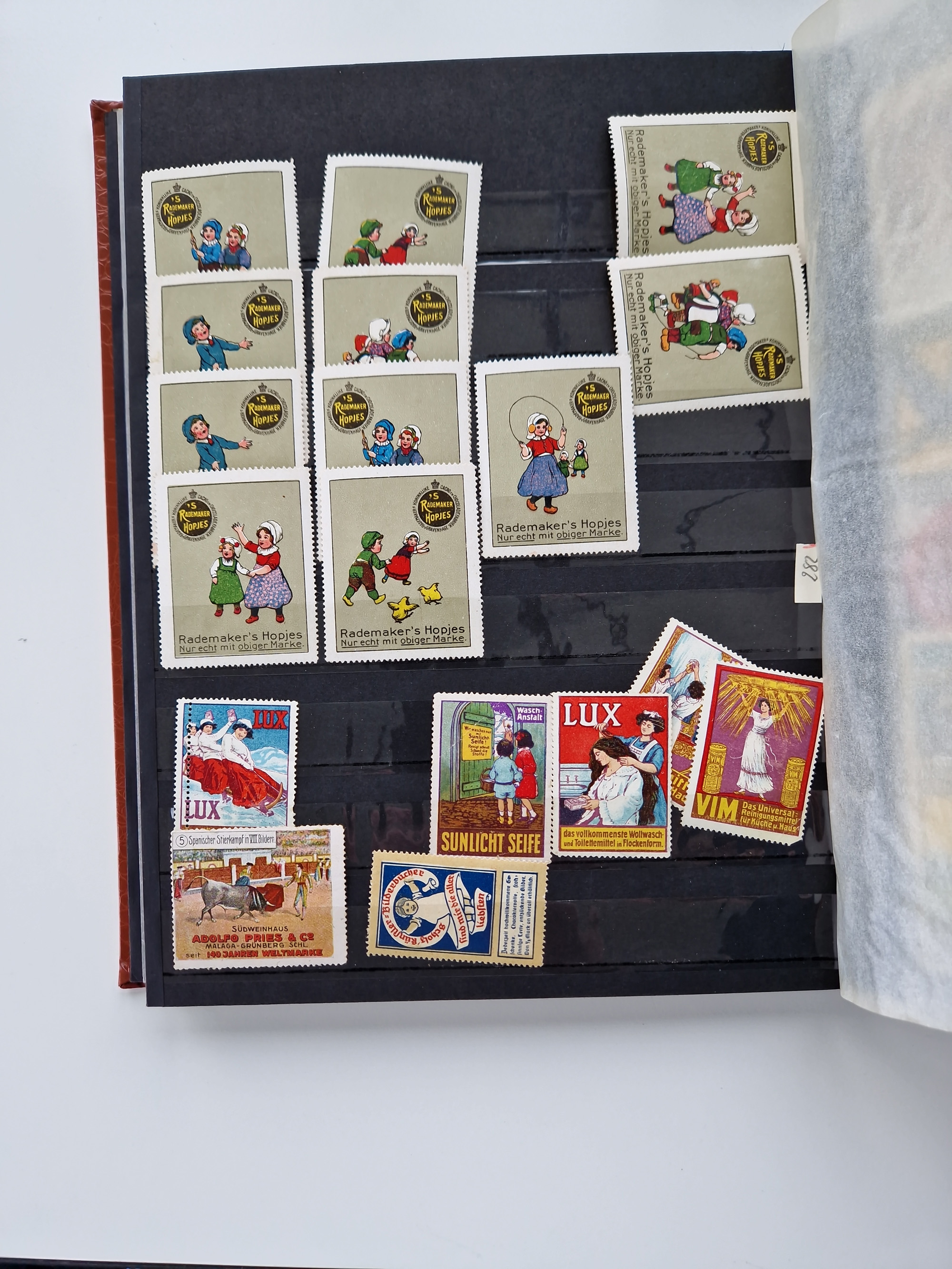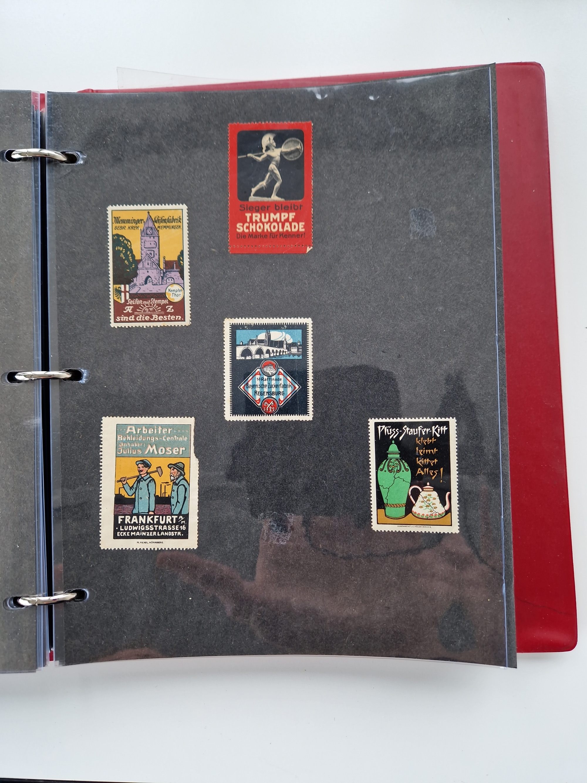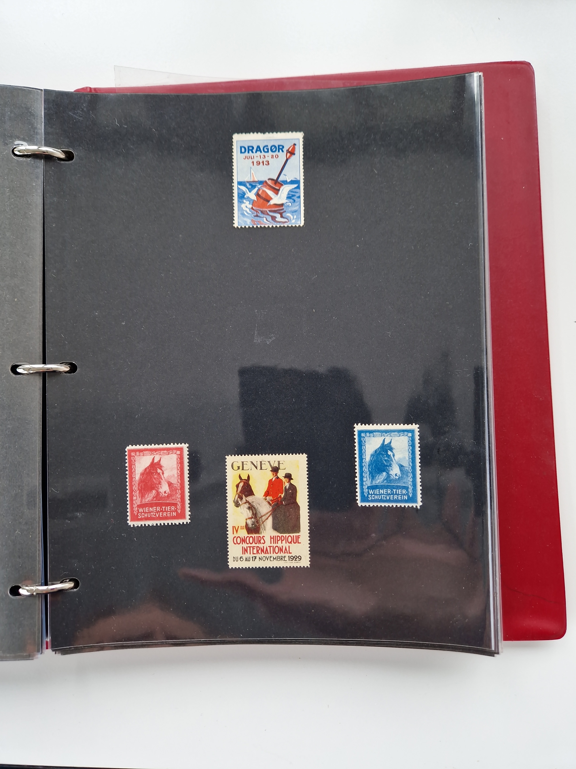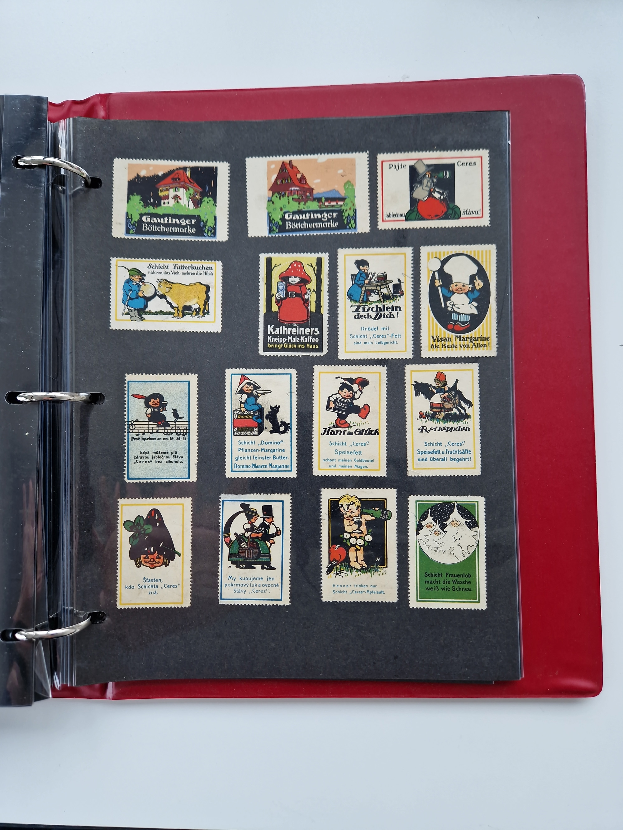 VIGNETTEN: 1896/1960 (ca.), hochinteressanter Bestand mit einigen Tausend Vignetten, Verschluss- und Siegelmarken, später Spendenvignetten und -Blocks, dabei viele zu unterschiedlichen Ausstellungen, meist aus Berlin, München, Nürnberg, Leipzig mit Export-Messe, ferner aber auch Luftpost-Ausstellung, Gewerbe- und Industrieschau, Landwirtschaft, Kunst, Firmenvignetten, etc., etwas zu Briefmarken-Ausstellungen, dabei auch drei Hessheimer Entwürfe, vieles auf amerikanischen Händlerkarten und Loskarten, in drei Kartons