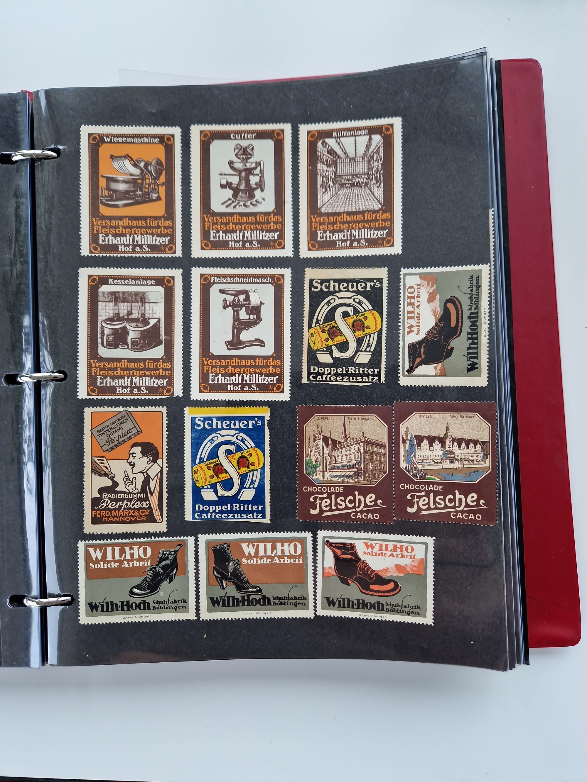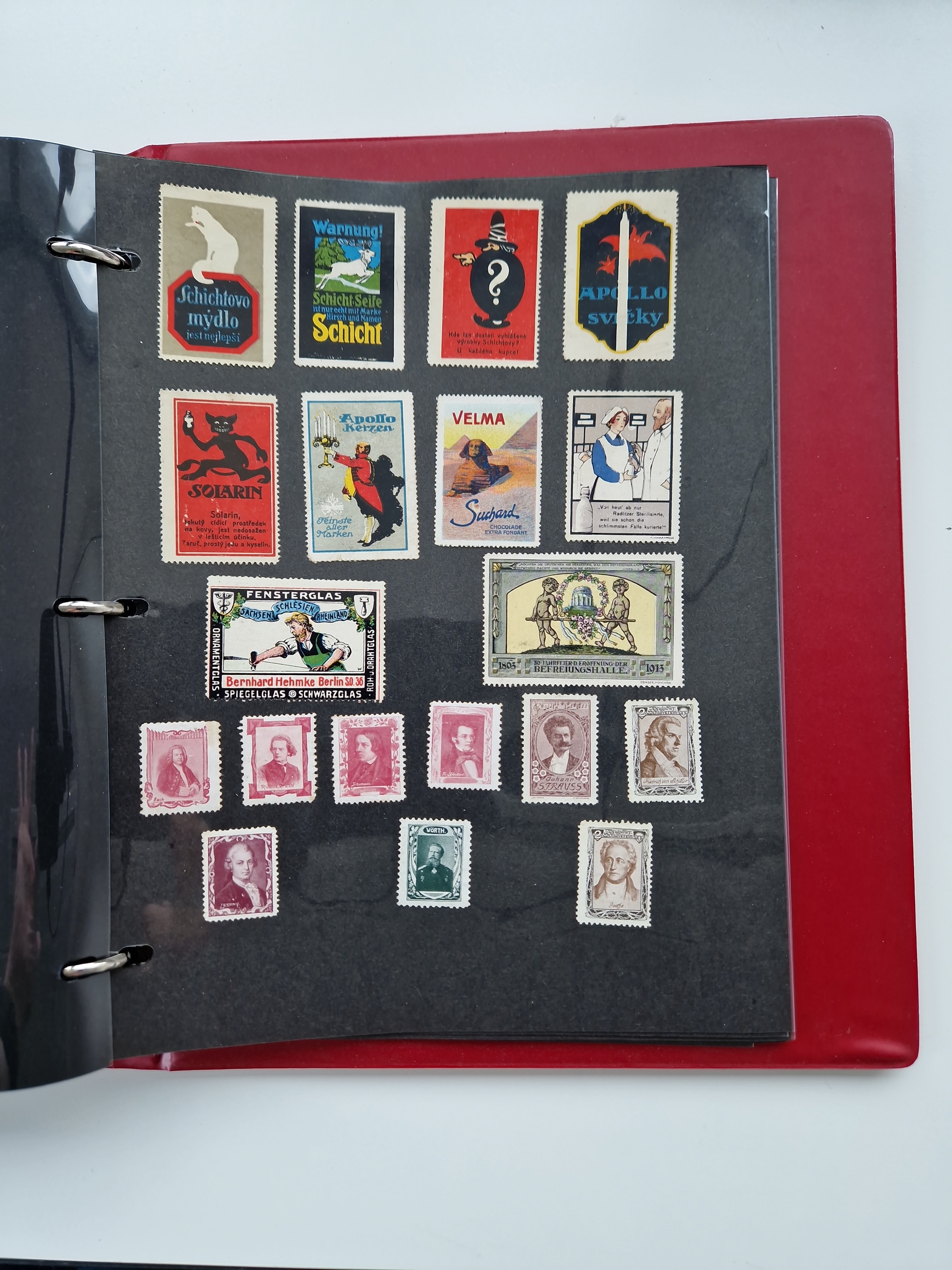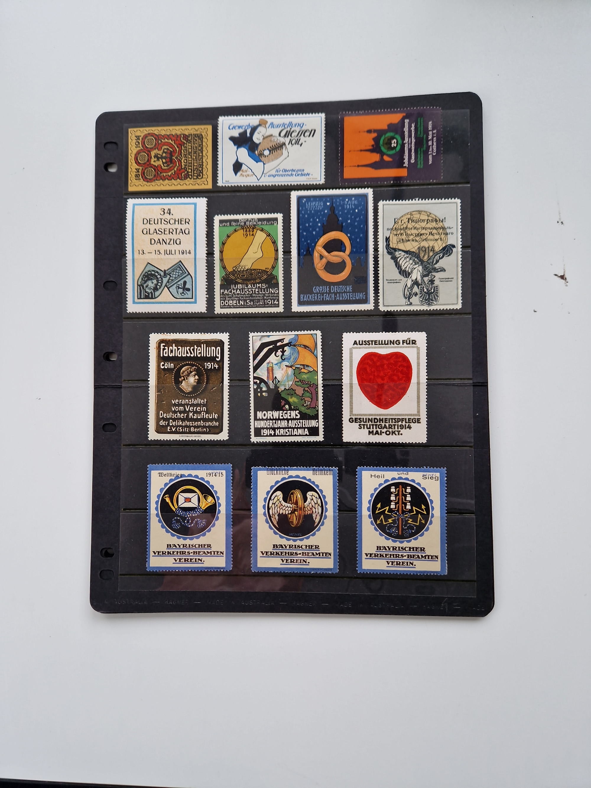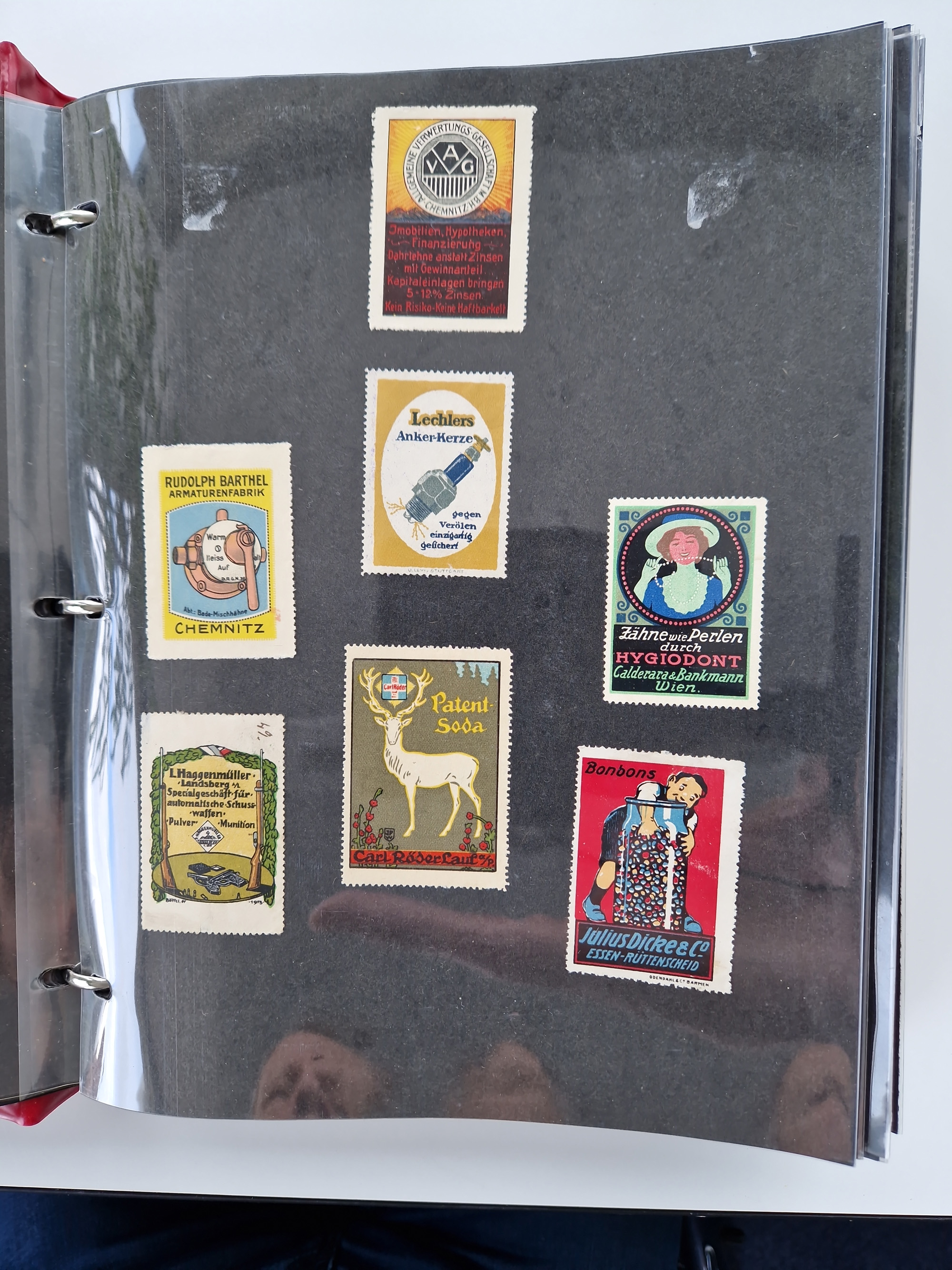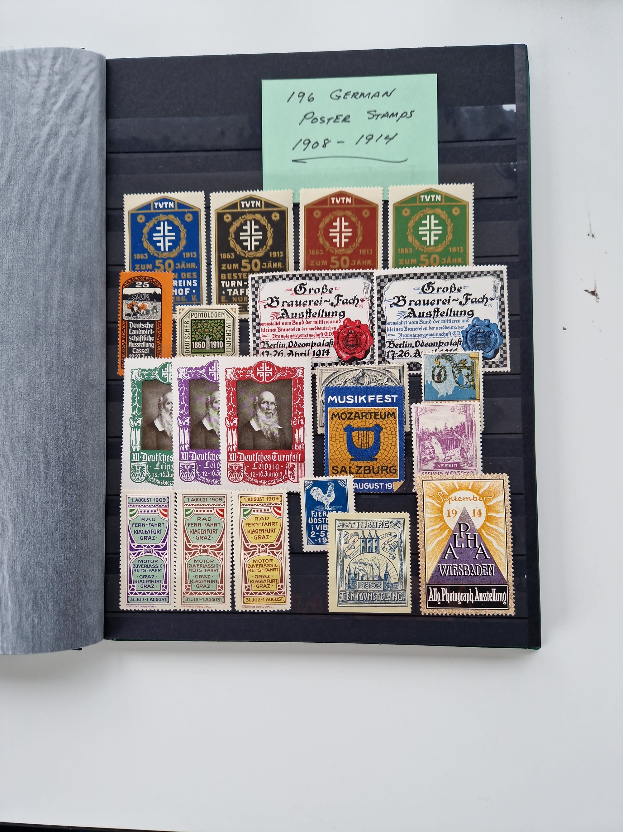 VIGNETTEN: 1896/1960 (ca.), hochinteressanter Bestand mit einigen Tausend Vignetten, Verschluss- und Siegelmarken, später Spendenvignetten und -Blocks, dabei viele zu unterschiedlichen Ausstellungen, meist aus Berlin, München, Nürnberg, Leipzig mit Export-Messe, ferner aber auch Luftpost-Ausstellung, Gewerbe- und Industrieschau, Landwirtschaft, Kunst, Firmenvignetten, etc., etwas zu Briefmarken-Ausstellungen, dabei auch drei Hessheimer Entwürfe, vieles auf amerikanischen Händlerkarten und Loskarten, in drei Kartons