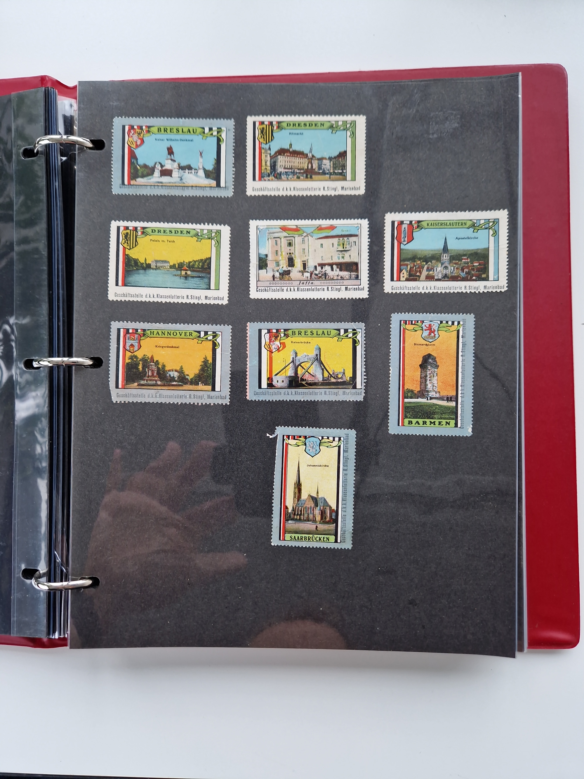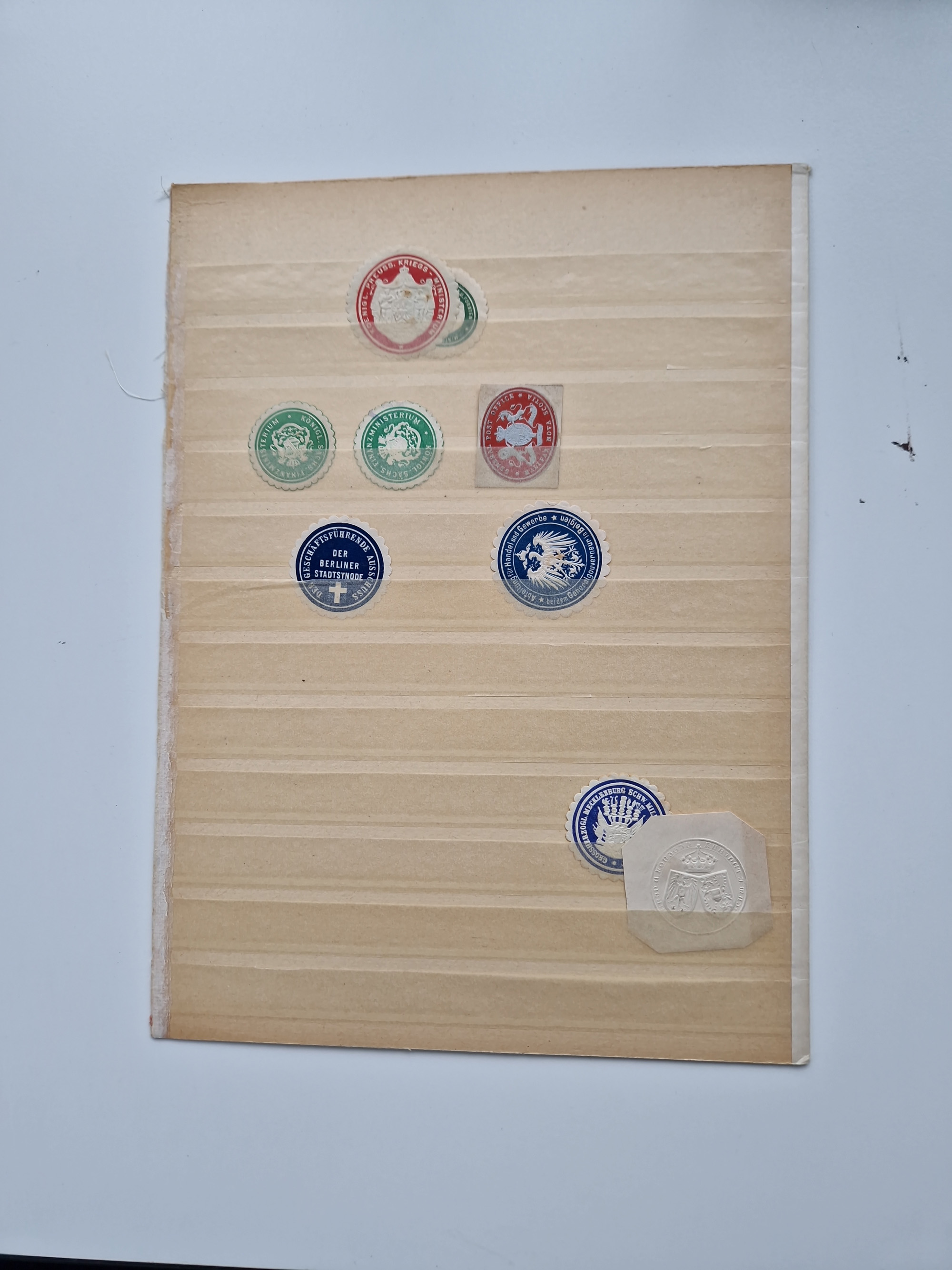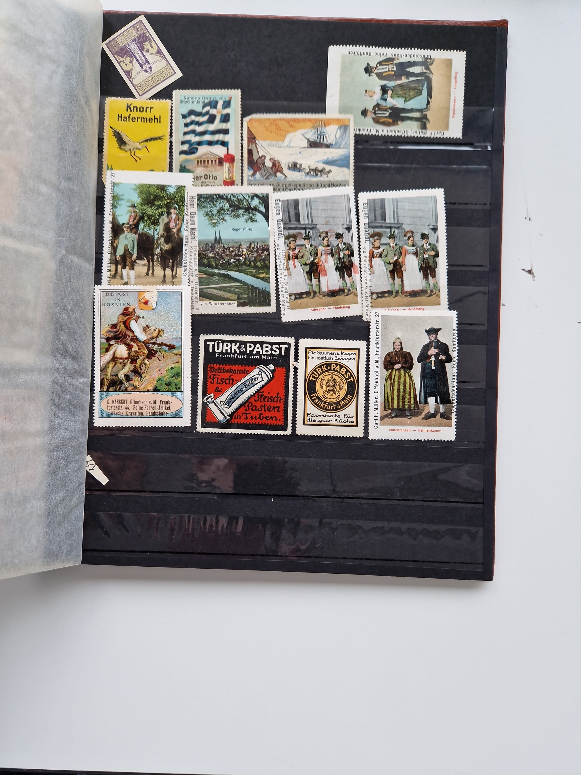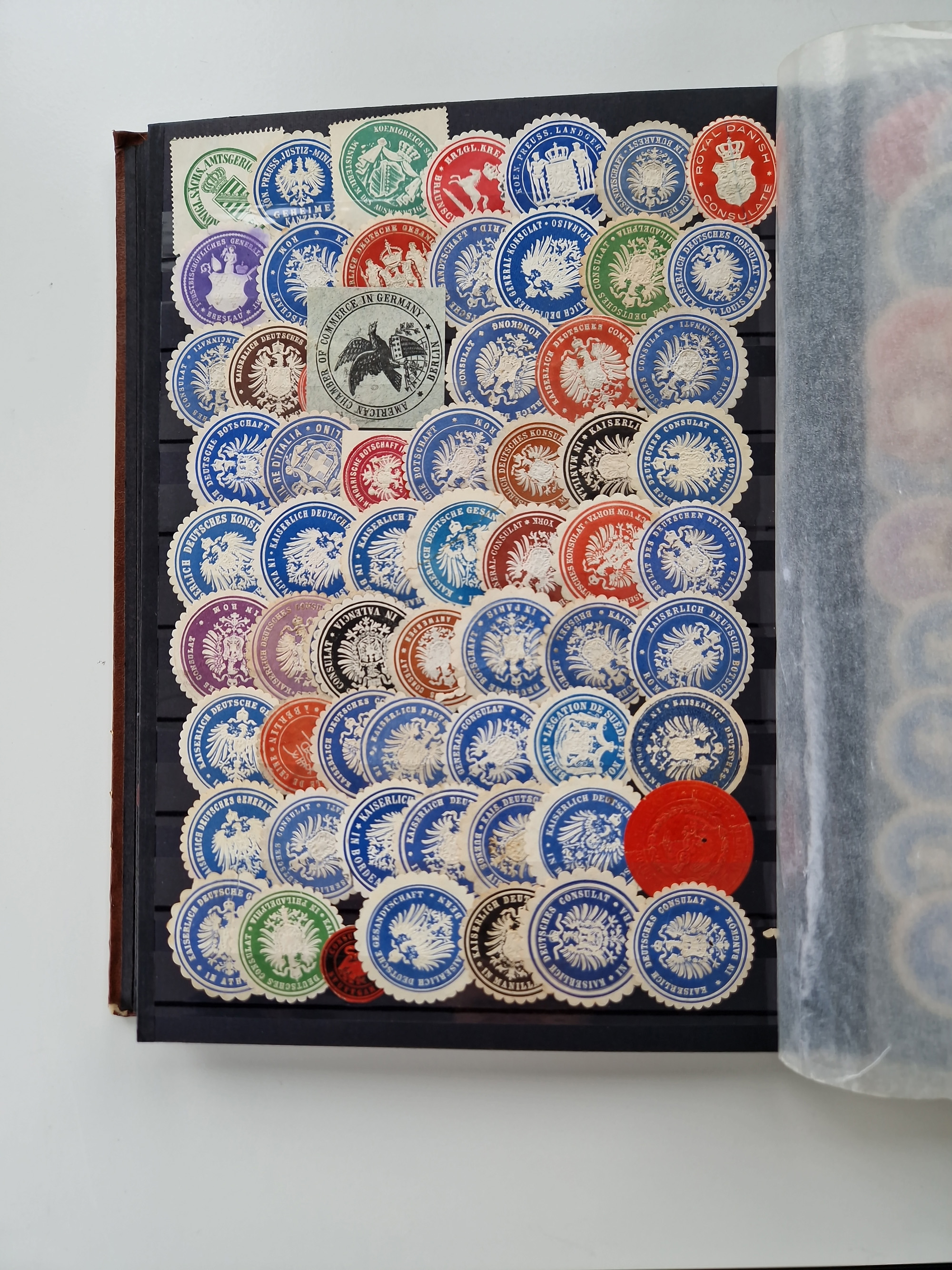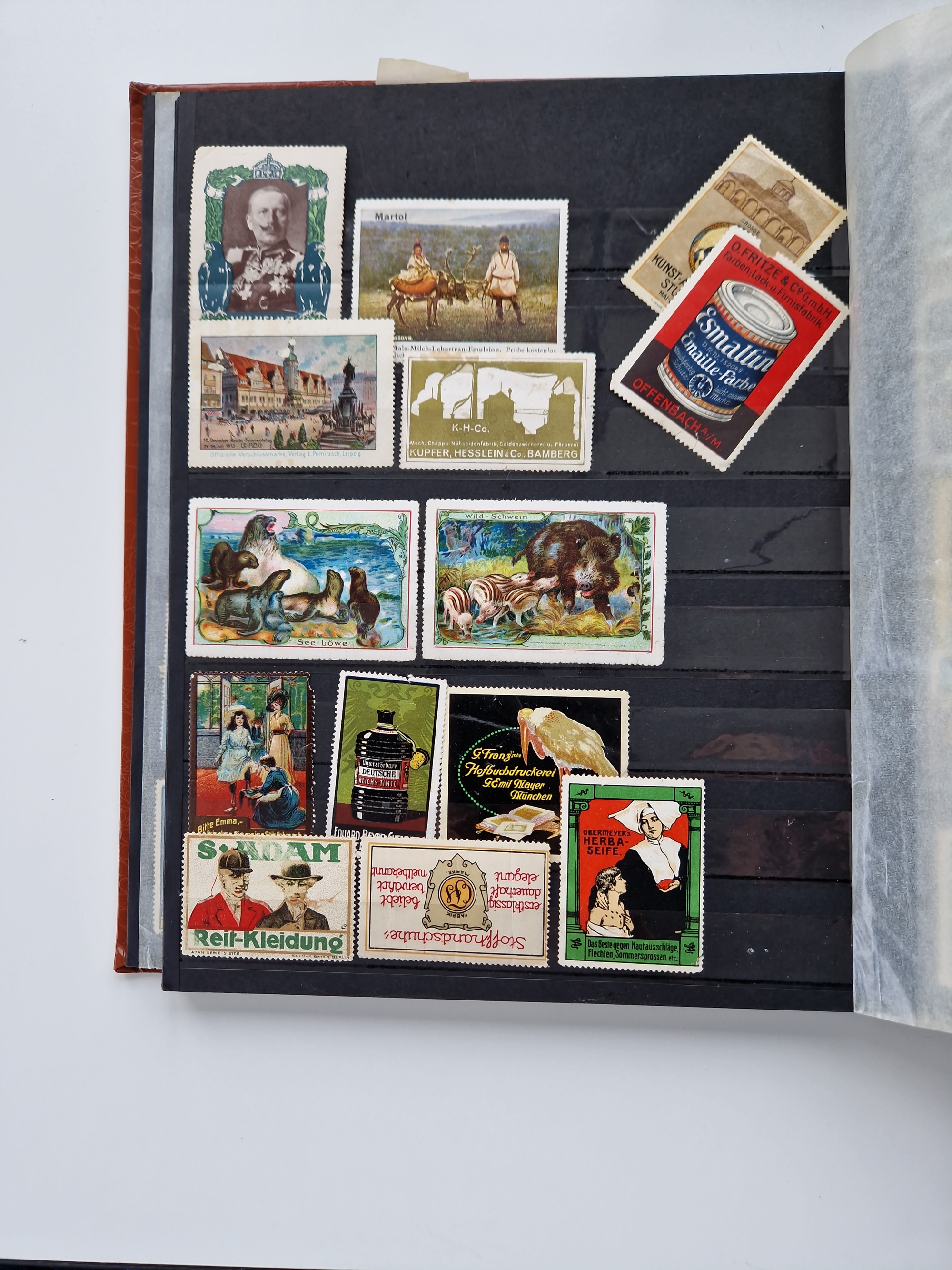 VIGNETTEN: 1896/1960 (ca.), hochinteressanter Bestand mit einigen Tausend Vignetten, Verschluss- und Siegelmarken, später Spendenvignetten und -Blocks, dabei viele zu unterschiedlichen Ausstellungen, meist aus Berlin, München, Nürnberg, Leipzig mit Export-Messe, ferner aber auch Luftpost-Ausstellung, Gewerbe- und Industrieschau, Landwirtschaft, Kunst, Firmenvignetten, etc., etwas zu Briefmarken-Ausstellungen, dabei auch drei Hessheimer Entwürfe, vieles auf amerikanischen Händlerkarten und Loskarten, in drei Kartons