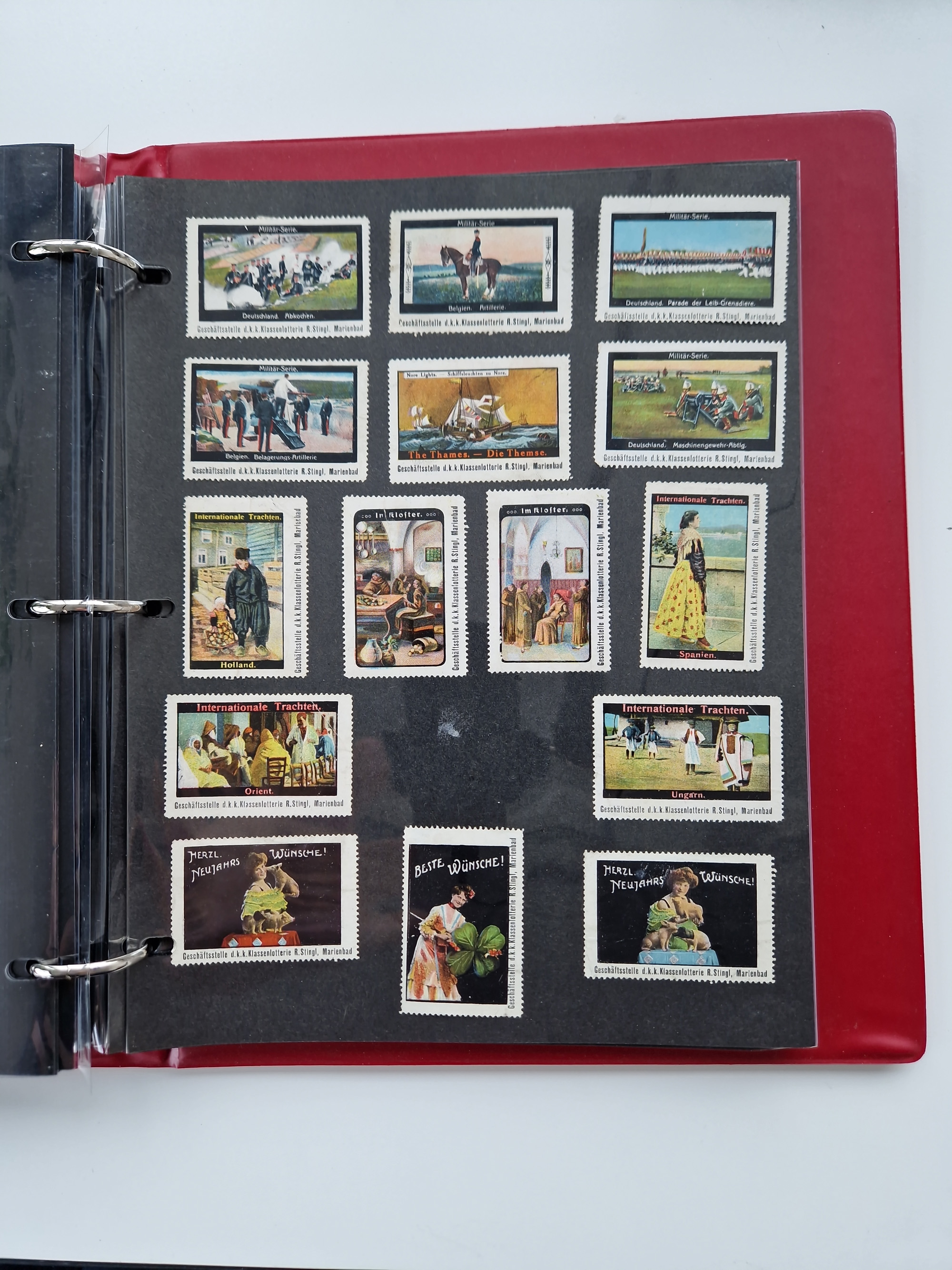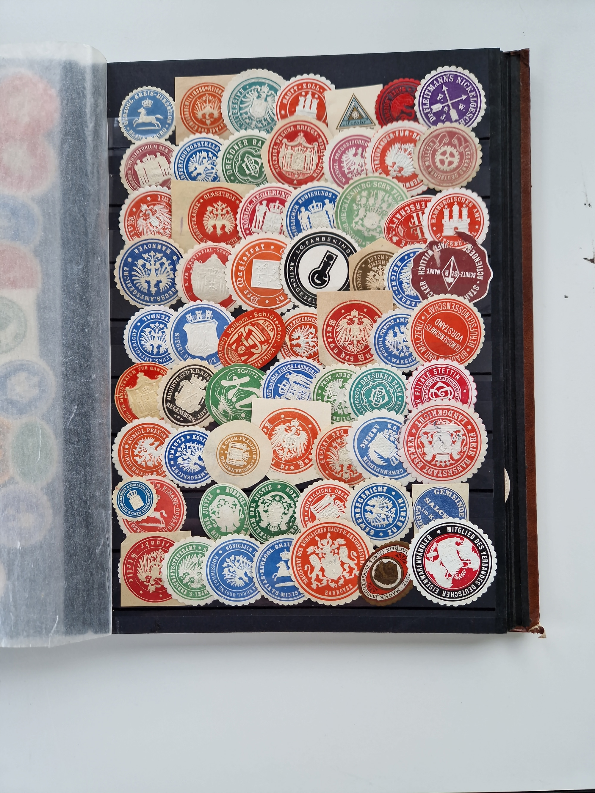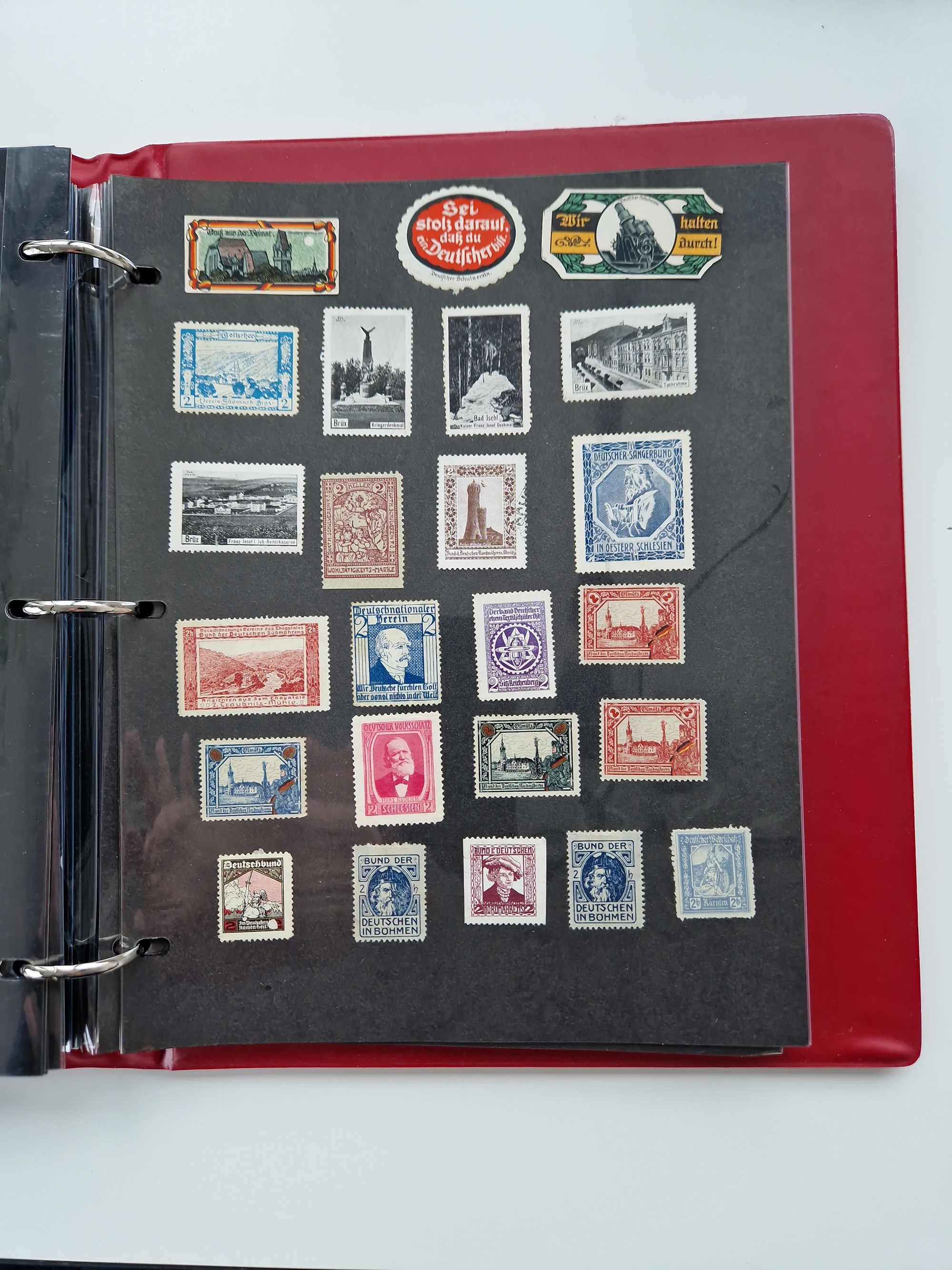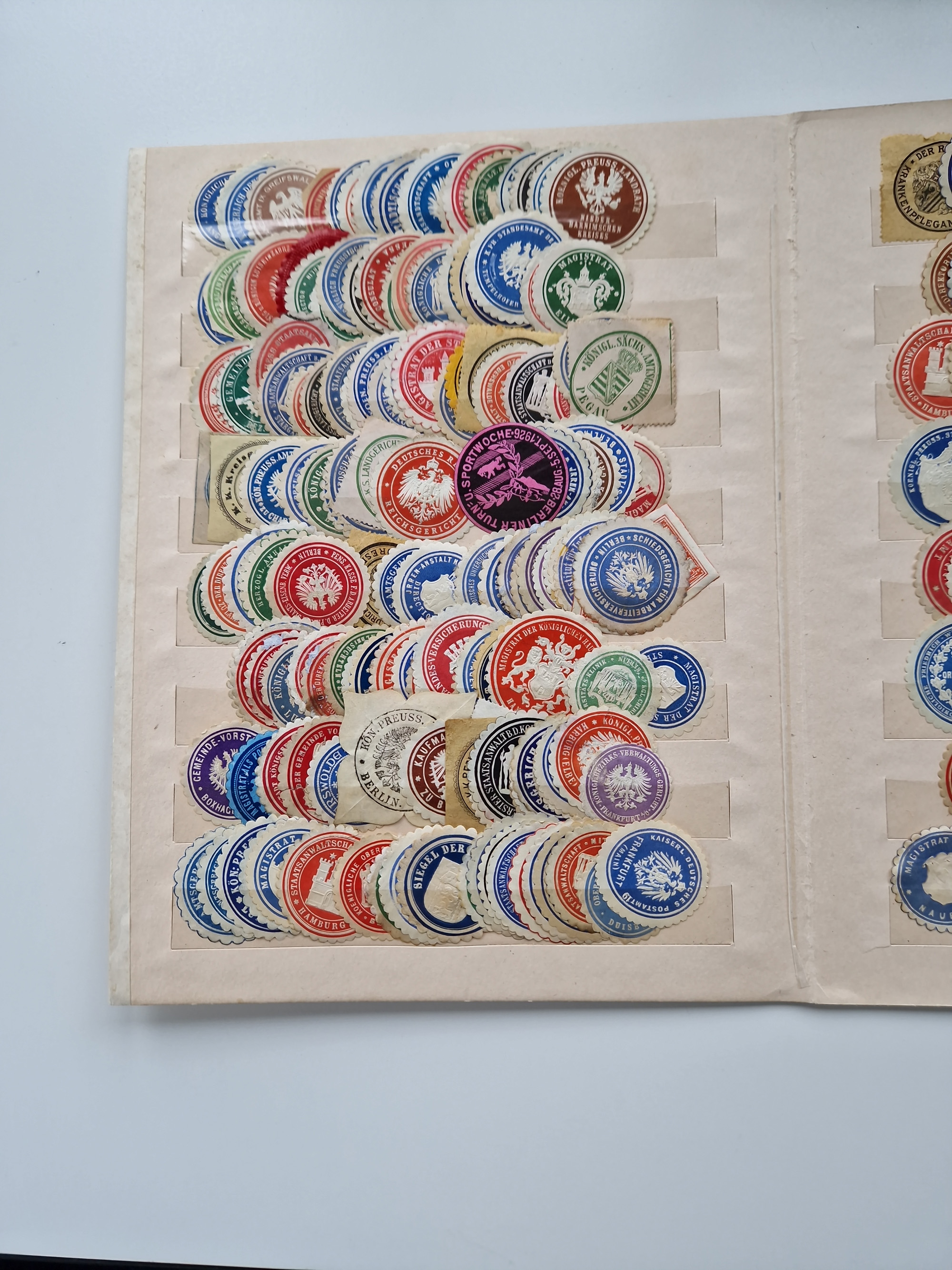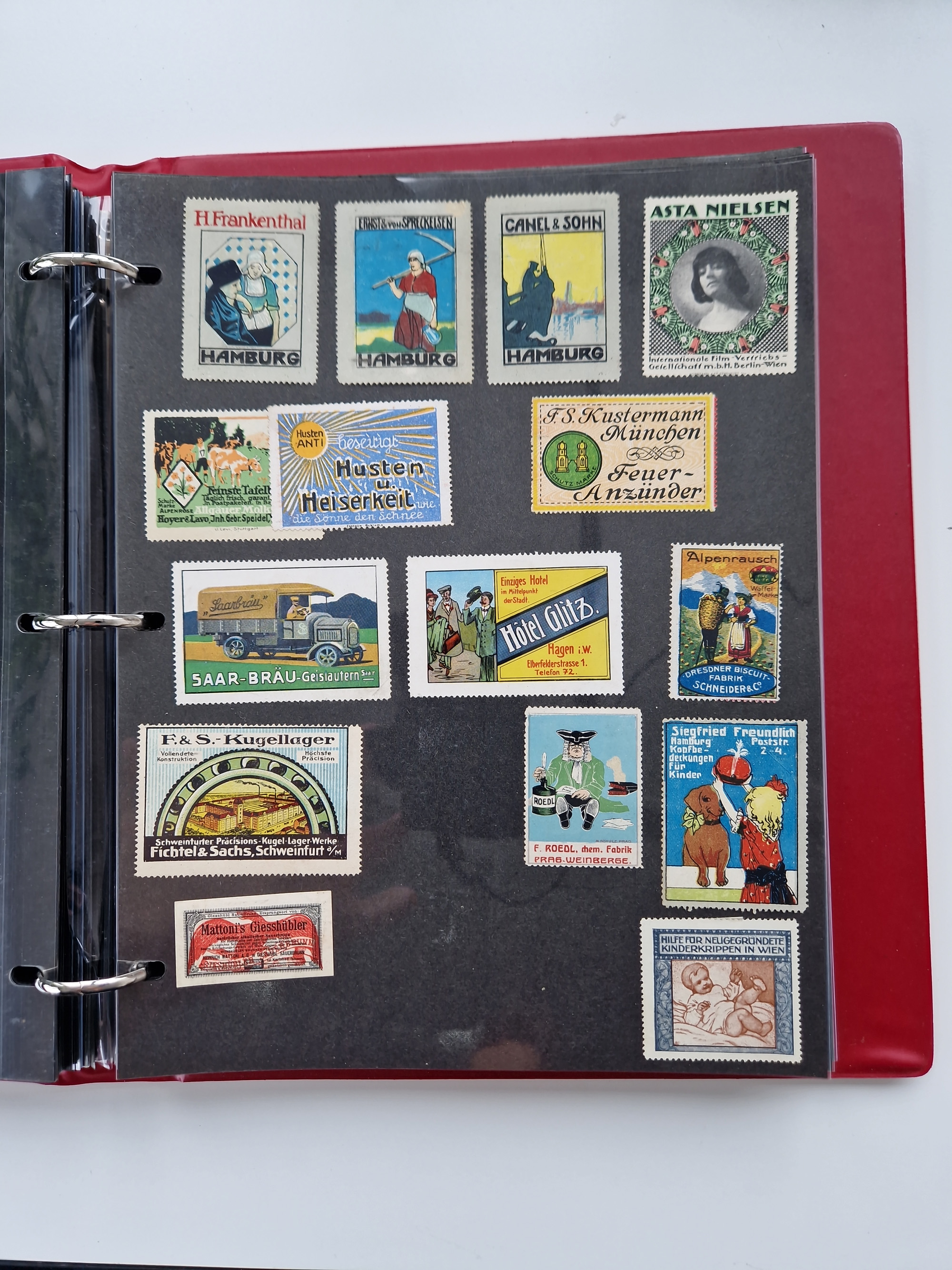 VIGNETTEN: 1896/1960 (ca.), hochinteressanter Bestand mit einigen Tausend Vignetten, Verschluss- und Siegelmarken, später Spendenvignetten und -Blocks, dabei viele zu unterschiedlichen Ausstellungen, meist aus Berlin, München, Nürnberg, Leipzig mit Export-Messe, ferner aber auch Luftpost-Ausstellung, Gewerbe- und Industrieschau, Landwirtschaft, Kunst, Firmenvignetten, etc., etwas zu Briefmarken-Ausstellungen, dabei auch drei Hessheimer Entwürfe, vieles auf amerikanischen Händlerkarten und Loskarten, in drei Kartons