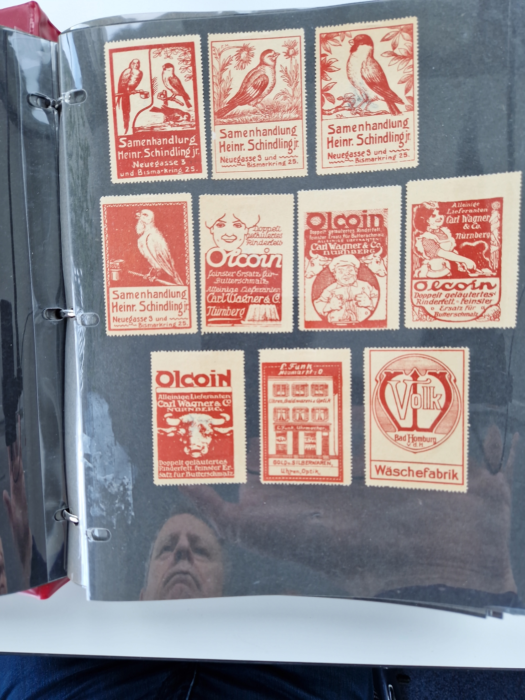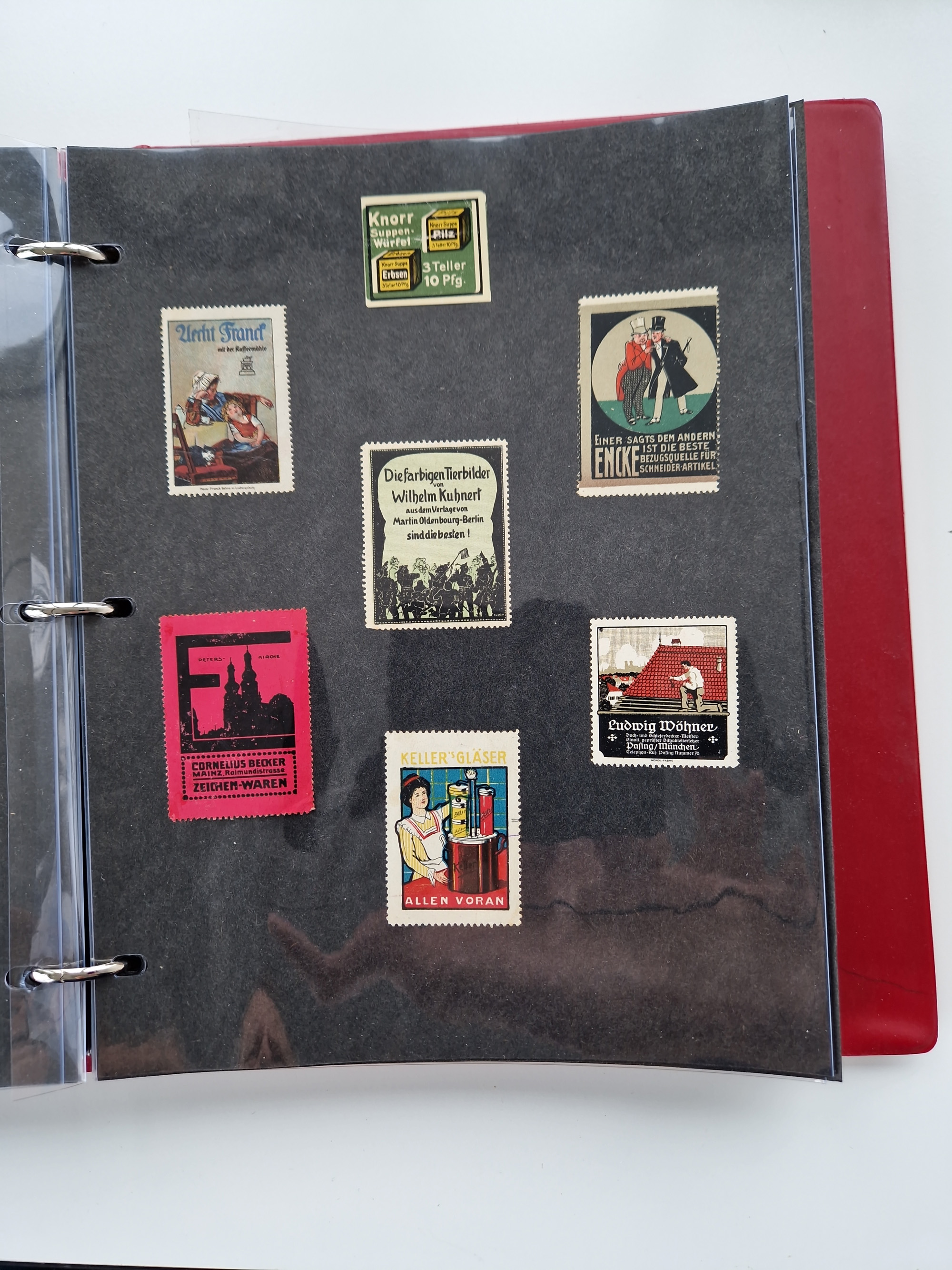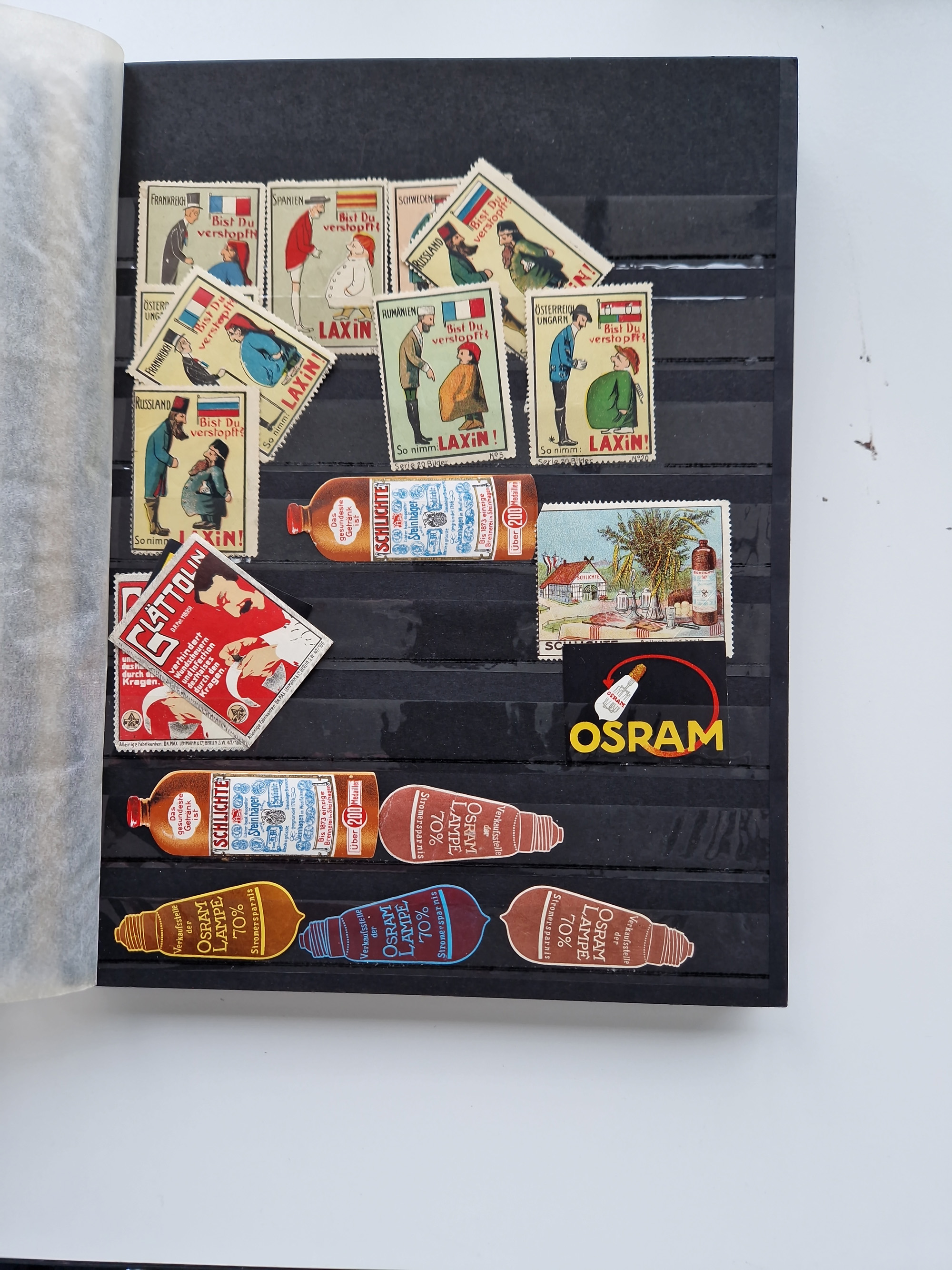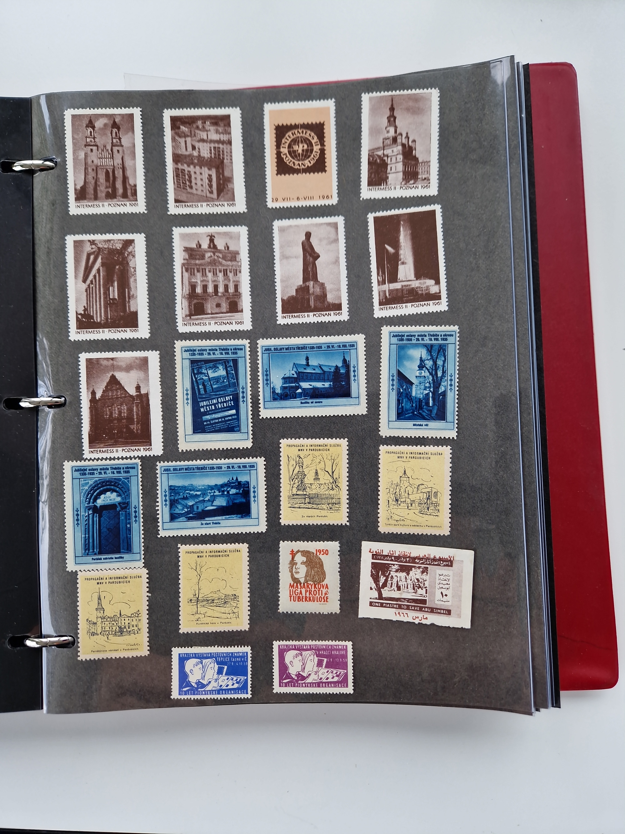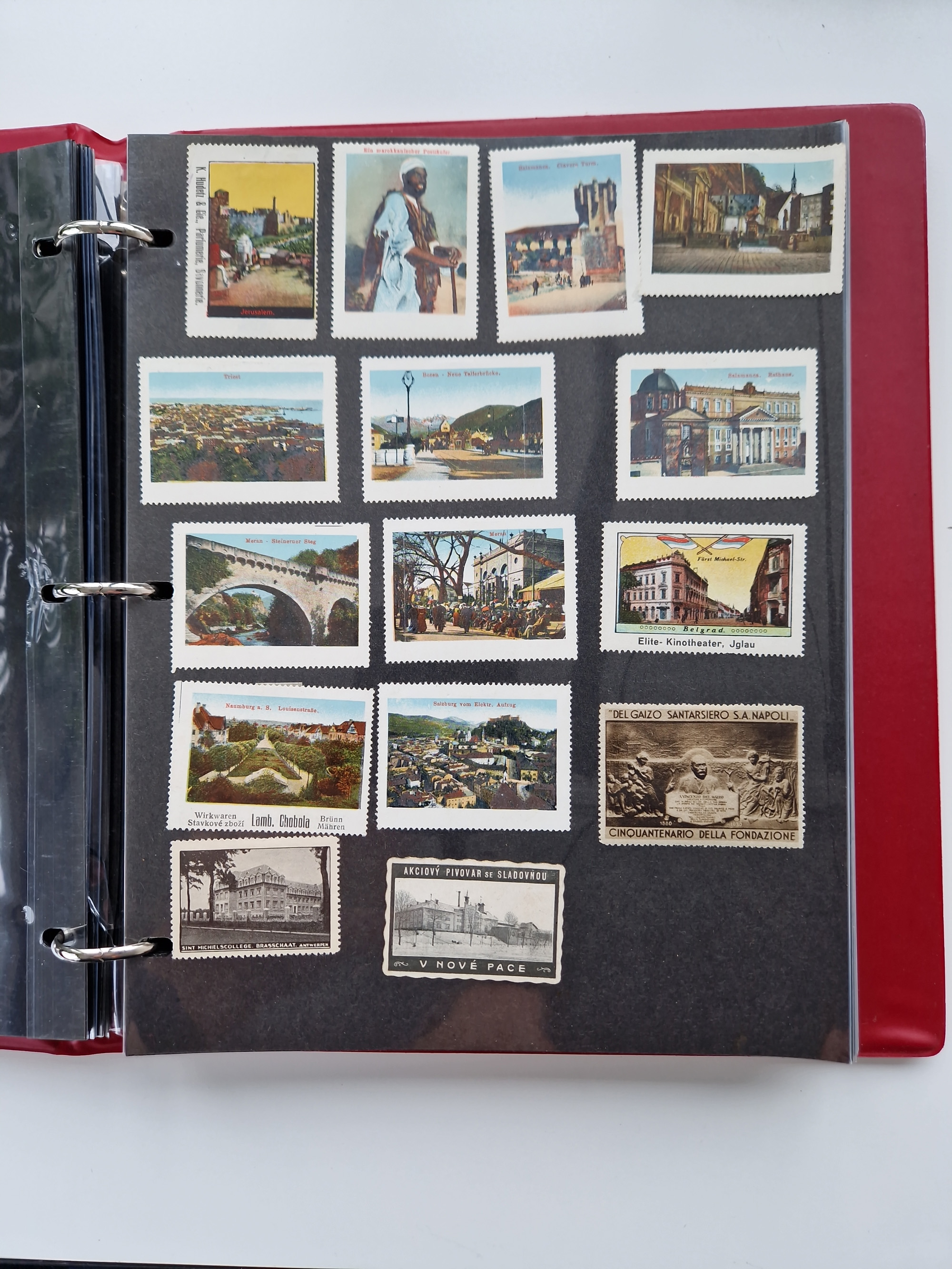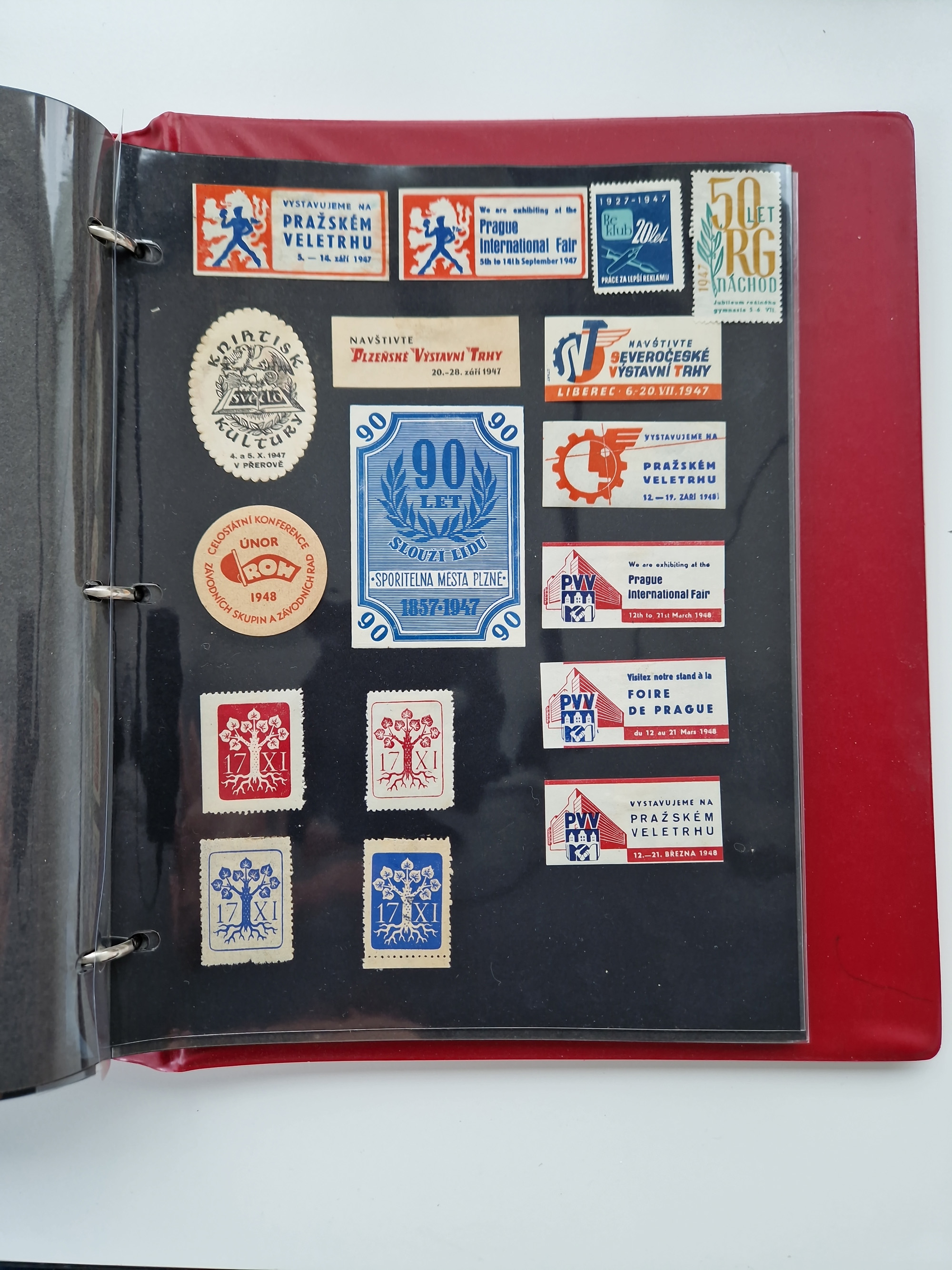 VIGNETTEN: 1896/1960 (ca.), hochinteressanter Bestand mit einigen Tausend Vignetten, Verschluss- und Siegelmarken, später Spendenvignetten und -Blocks, dabei viele zu unterschiedlichen Ausstellungen, meist aus Berlin, München, Nürnberg, Leipzig mit Export-Messe, ferner aber auch Luftpost-Ausstellung, Gewerbe- und Industrieschau, Landwirtschaft, Kunst, Firmenvignetten, etc., etwas zu Briefmarken-Ausstellungen, dabei auch drei Hessheimer Entwürfe, vieles auf amerikanischen Händlerkarten und Loskarten, in drei Kartons