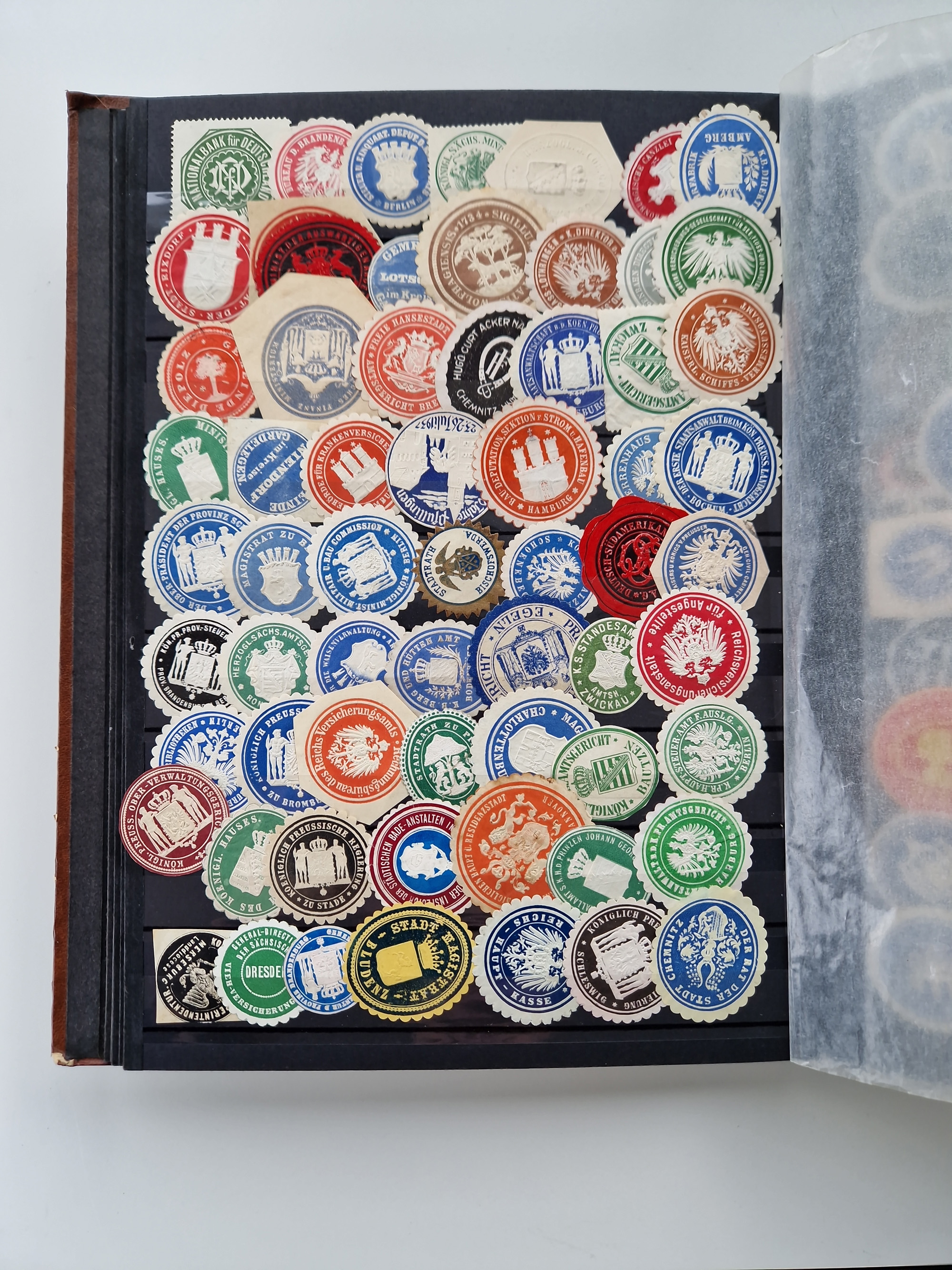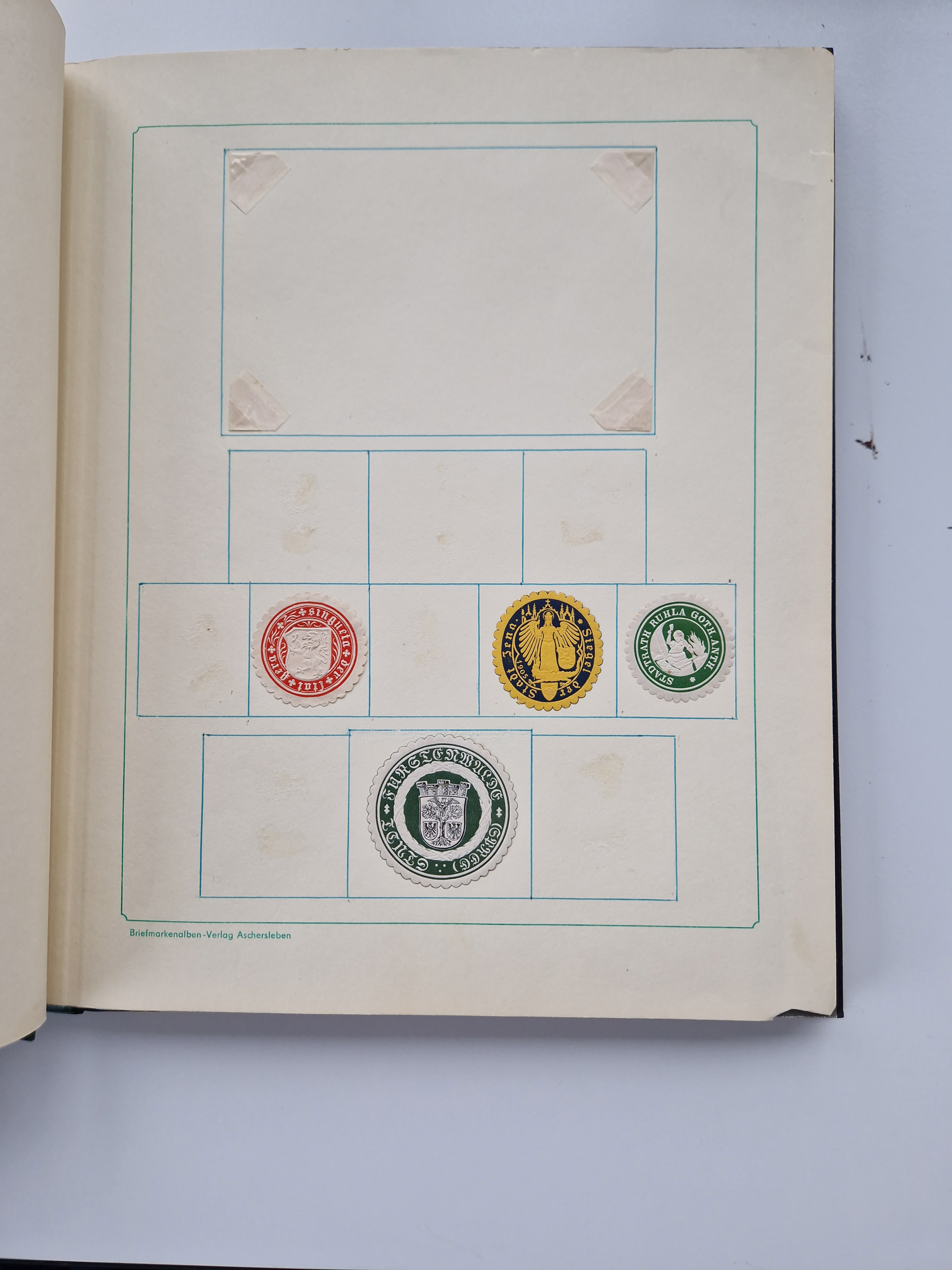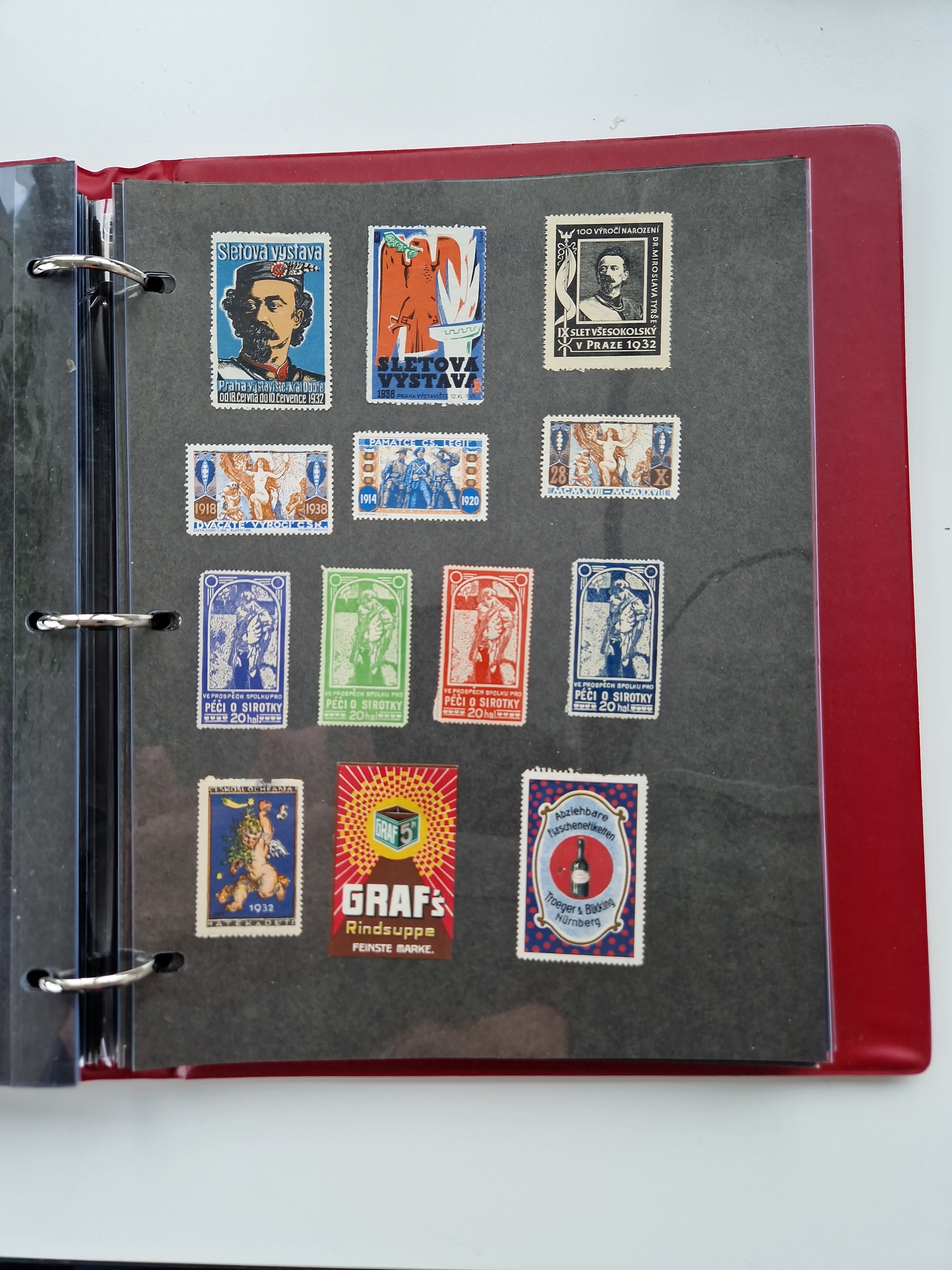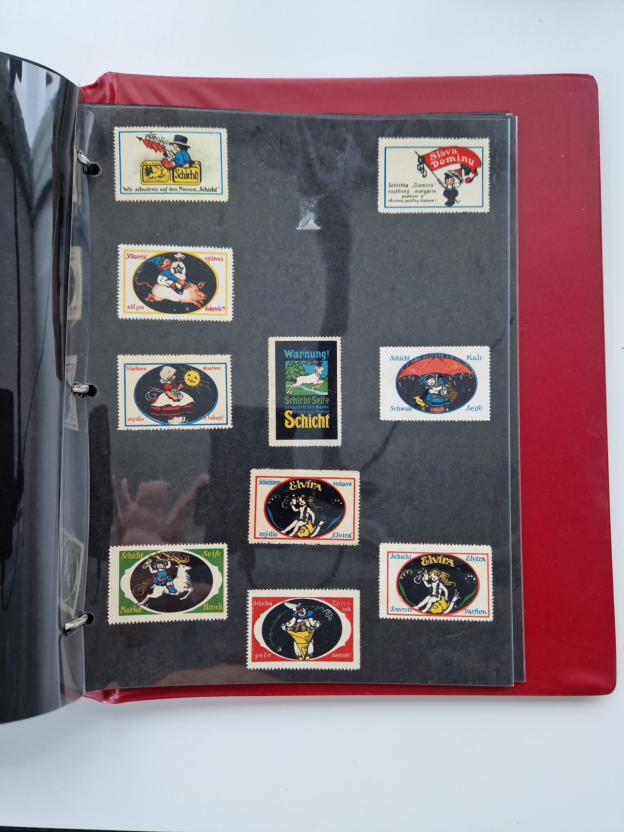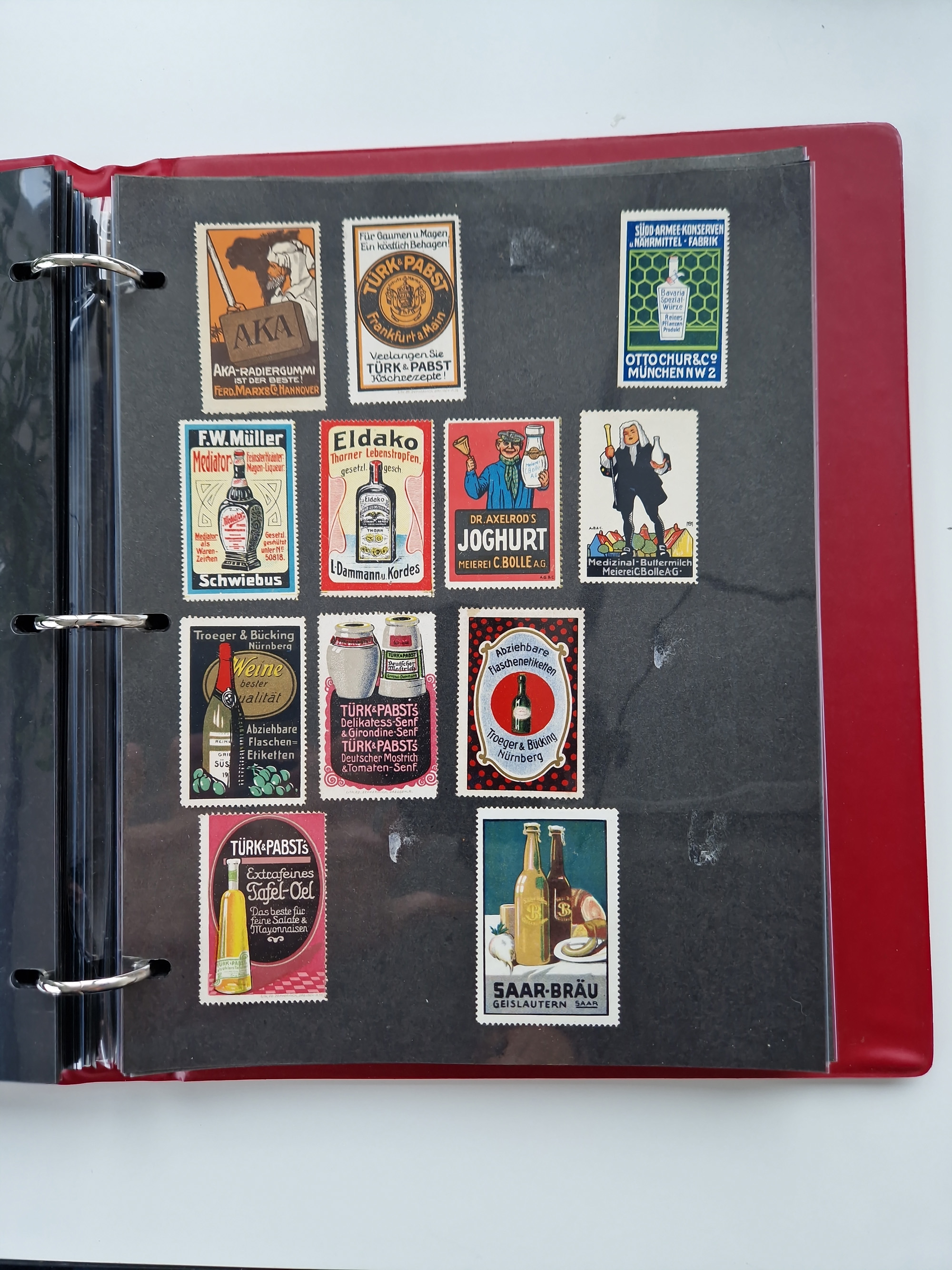 VIGNETTEN: 1896/1960 (ca.), hochinteressanter Bestand mit einigen Tausend Vignetten, Verschluss- und Siegelmarken, später Spendenvignetten und -Blocks, dabei viele zu unterschiedlichen Ausstellungen, meist aus Berlin, München, Nürnberg, Leipzig mit Export-Messe, ferner aber auch Luftpost-Ausstellung, Gewerbe- und Industrieschau, Landwirtschaft, Kunst, Firmenvignetten, etc., etwas zu Briefmarken-Ausstellungen, dabei auch drei Hessheimer Entwürfe, vieles auf amerikanischen Händlerkarten und Loskarten, in drei Kartons