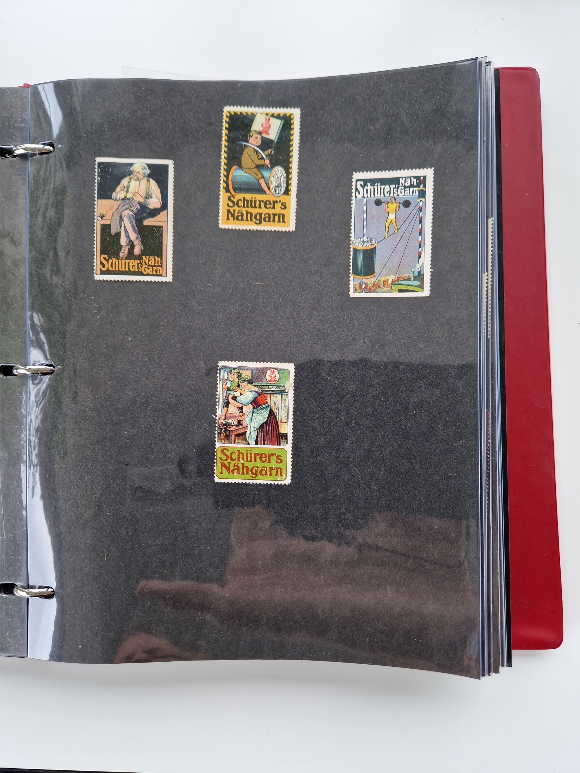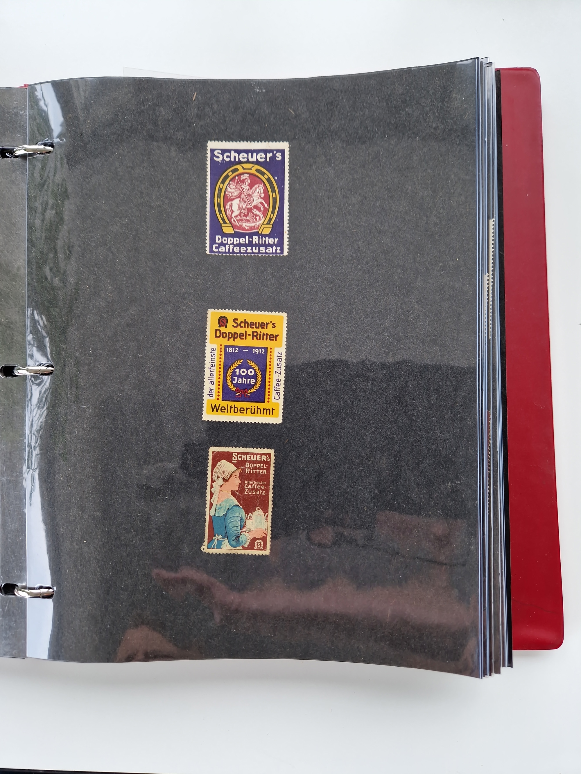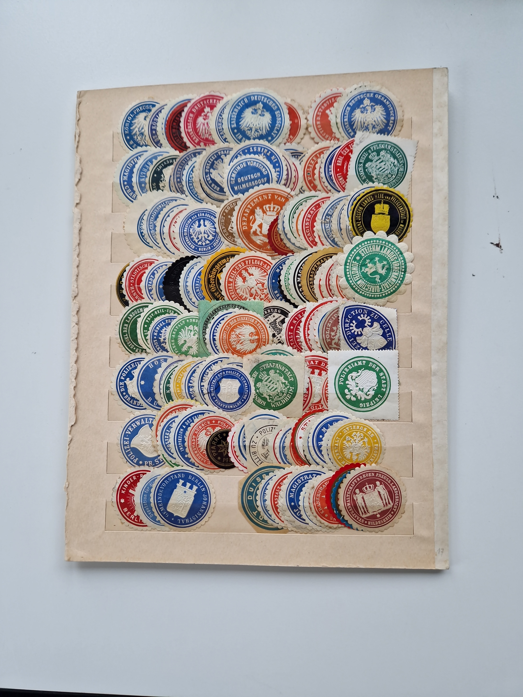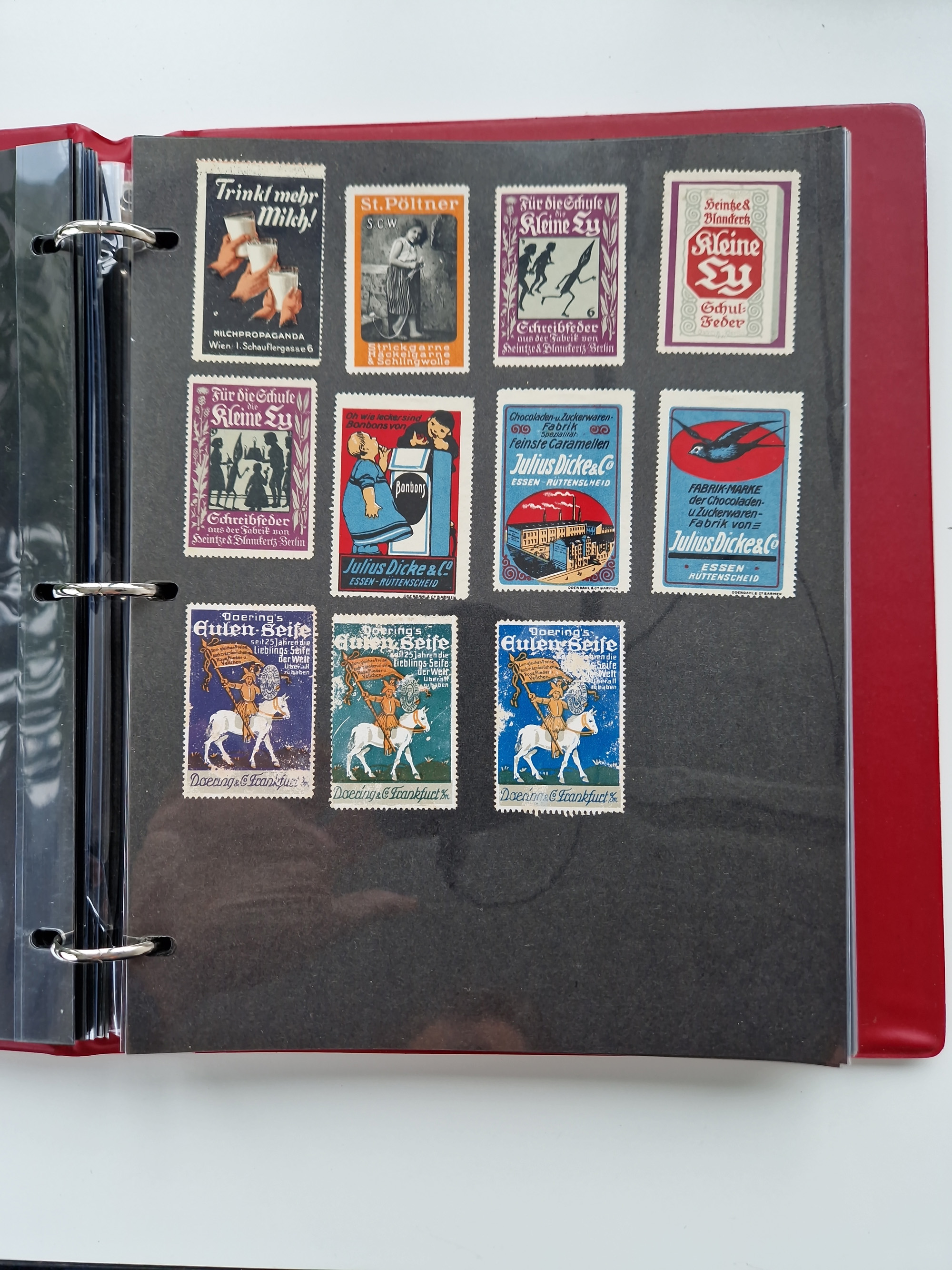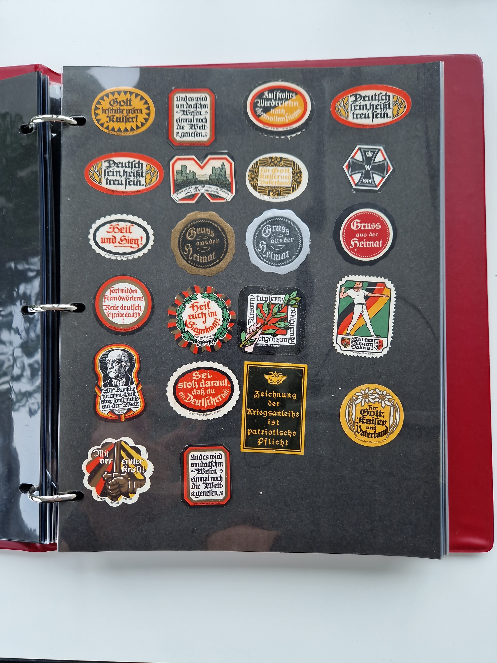 VIGNETTEN: 1896/1960 (ca.), hochinteressanter Bestand mit einigen Tausend Vignetten, Verschluss- und Siegelmarken, später Spendenvignetten und -Blocks, dabei viele zu unterschiedlichen Ausstellungen, meist aus Berlin, München, Nürnberg, Leipzig mit Export-Messe, ferner aber auch Luftpost-Ausstellung, Gewerbe- und Industrieschau, Landwirtschaft, Kunst, Firmenvignetten, etc., etwas zu Briefmarken-Ausstellungen, dabei auch drei Hessheimer Entwürfe, vieles auf amerikanischen Händlerkarten und Loskarten, in drei Kartons
