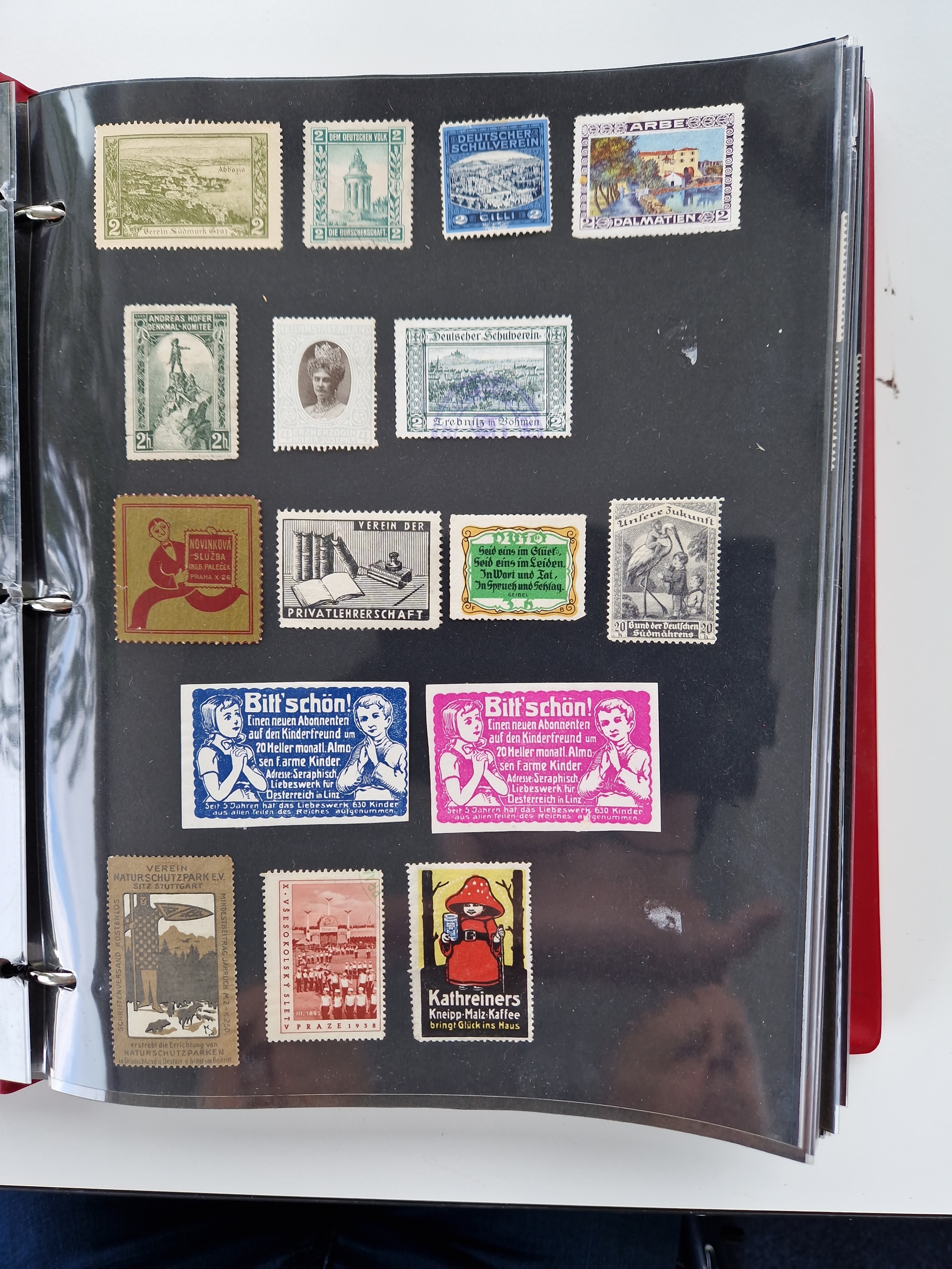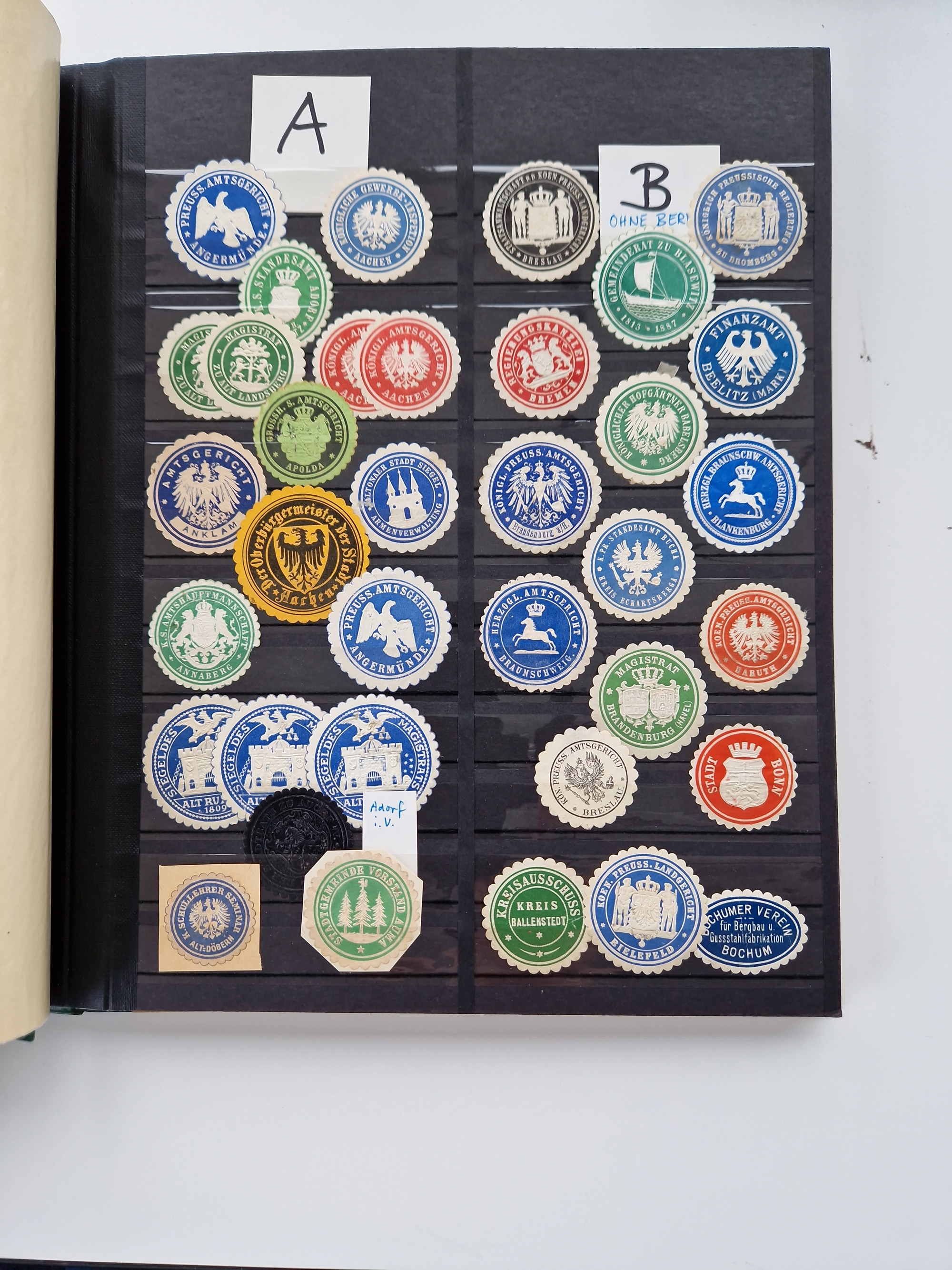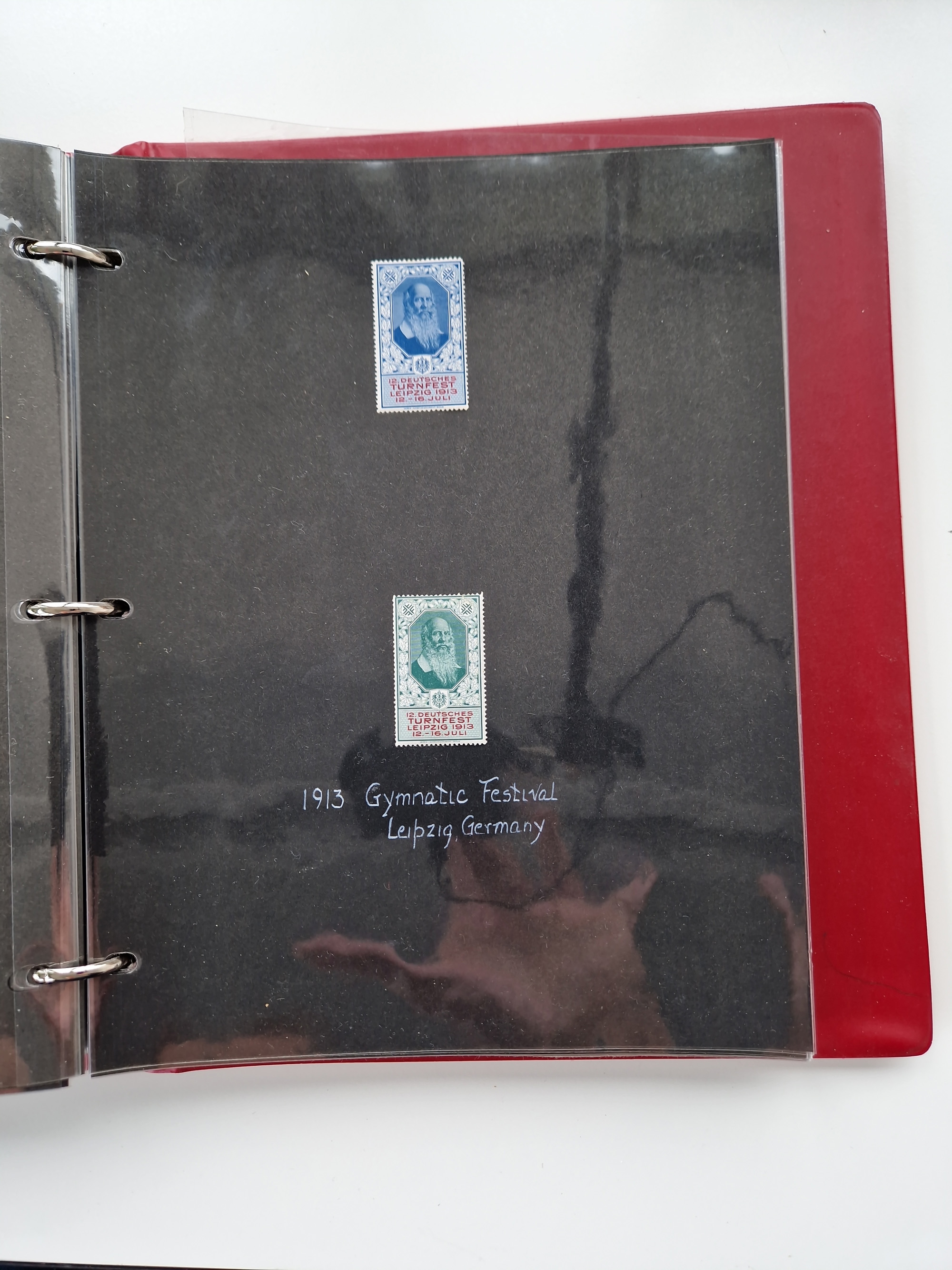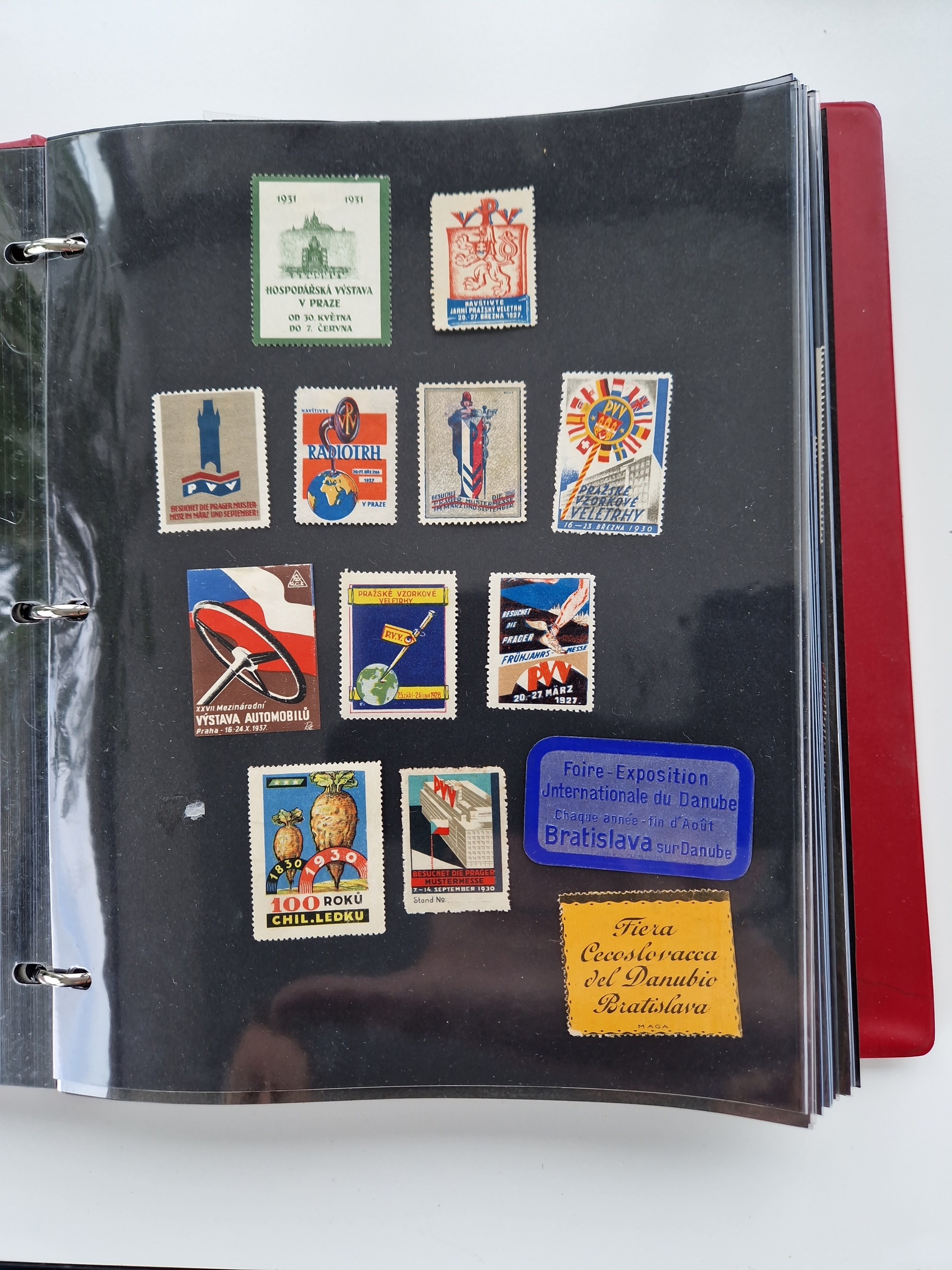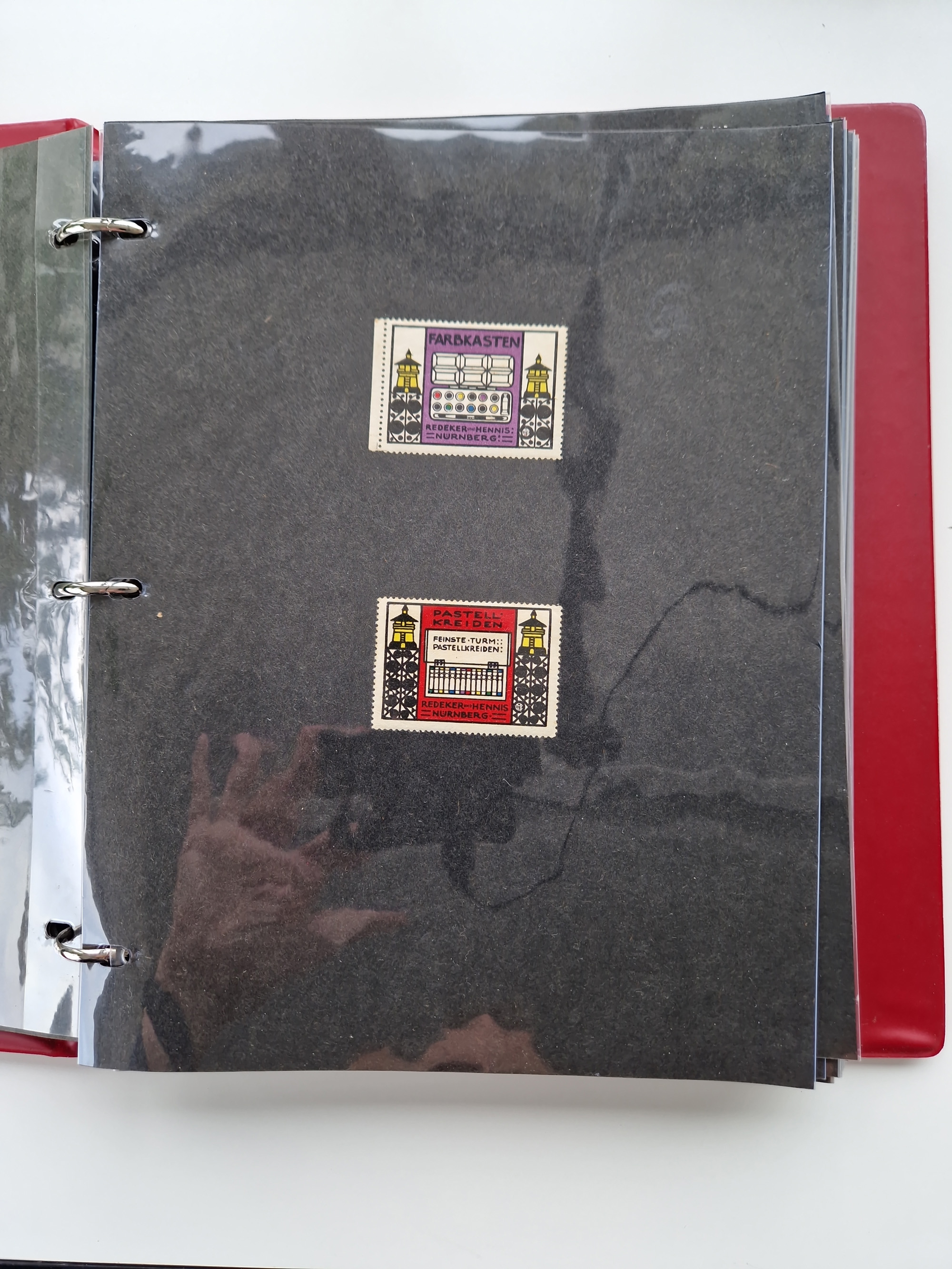 VIGNETTEN: 1896/1960 (ca.), hochinteressanter Bestand mit einigen Tausend Vignetten, Verschluss- und Siegelmarken, später Spendenvignetten und -Blocks, dabei viele zu unterschiedlichen Ausstellungen, meist aus Berlin, München, Nürnberg, Leipzig mit Export-Messe, ferner aber auch Luftpost-Ausstellung, Gewerbe- und Industrieschau, Landwirtschaft, Kunst, Firmenvignetten, etc., etwas zu Briefmarken-Ausstellungen, dabei auch drei Hessheimer Entwürfe, vieles auf amerikanischen Händlerkarten und Loskarten, in drei Kartons