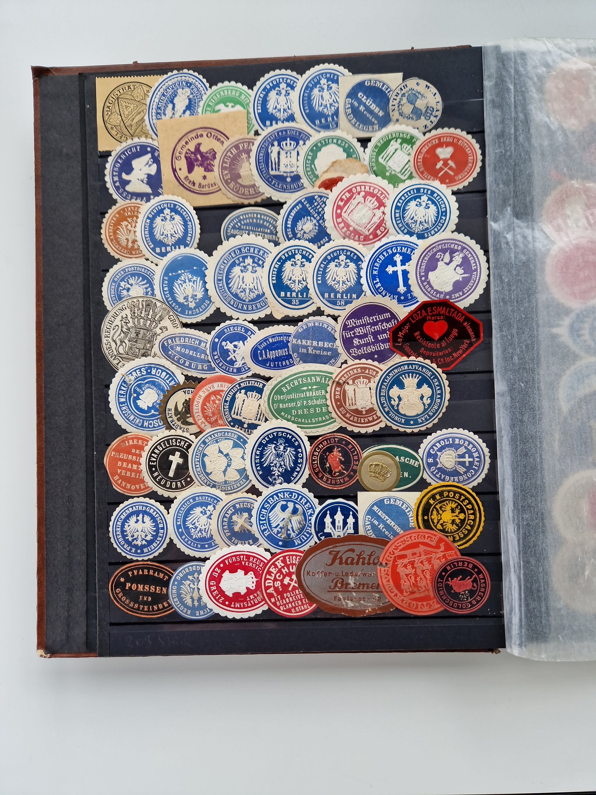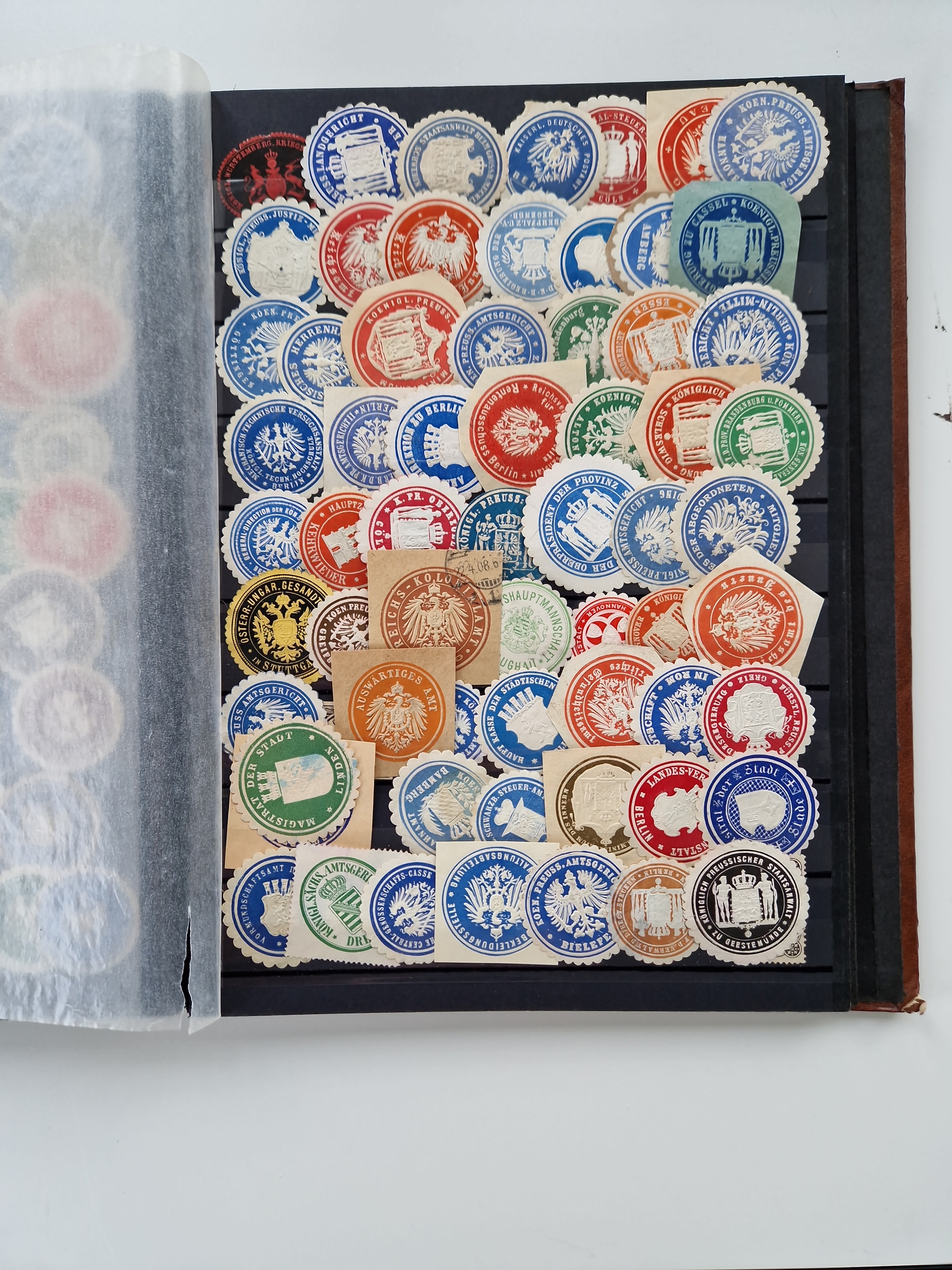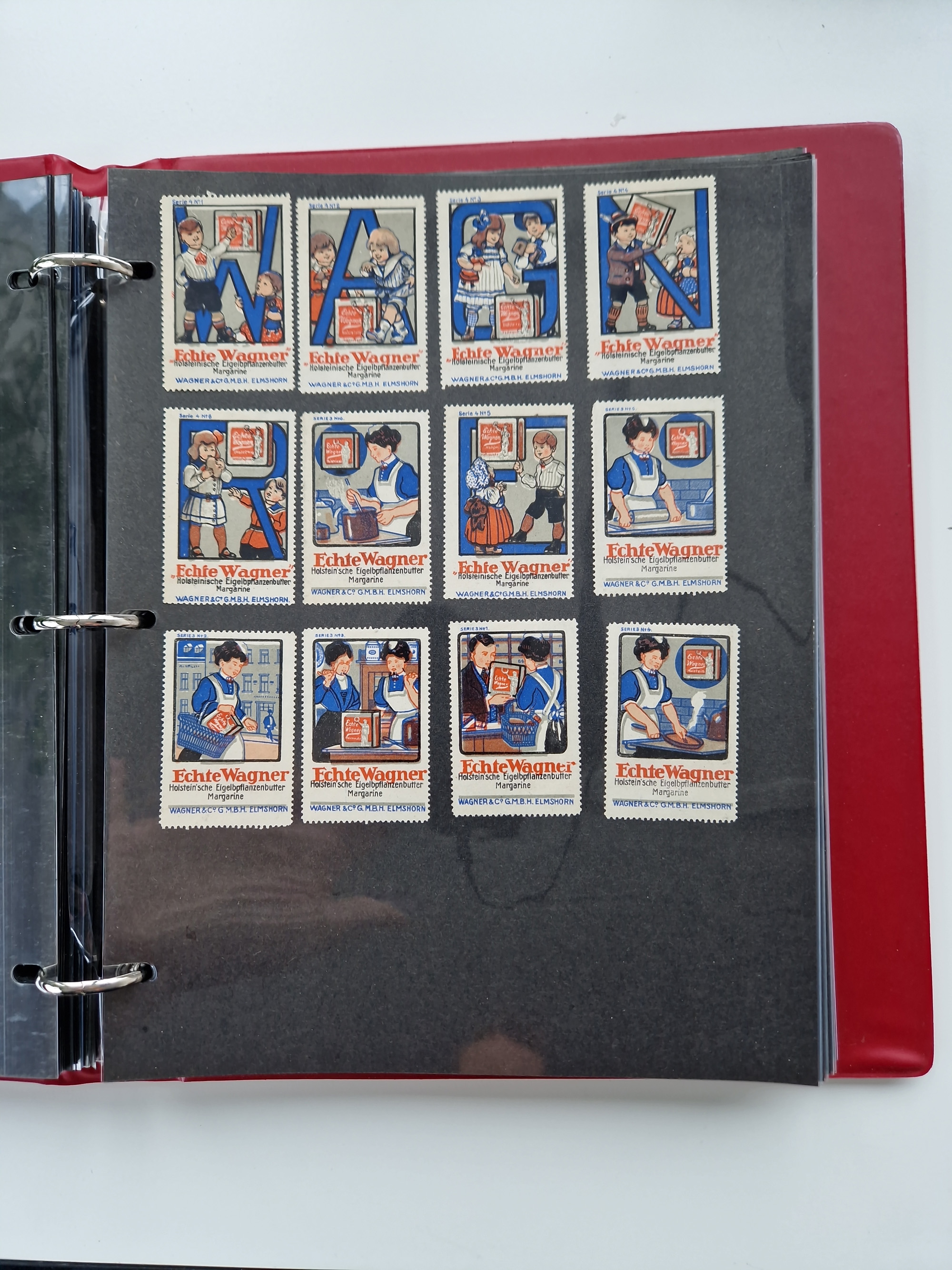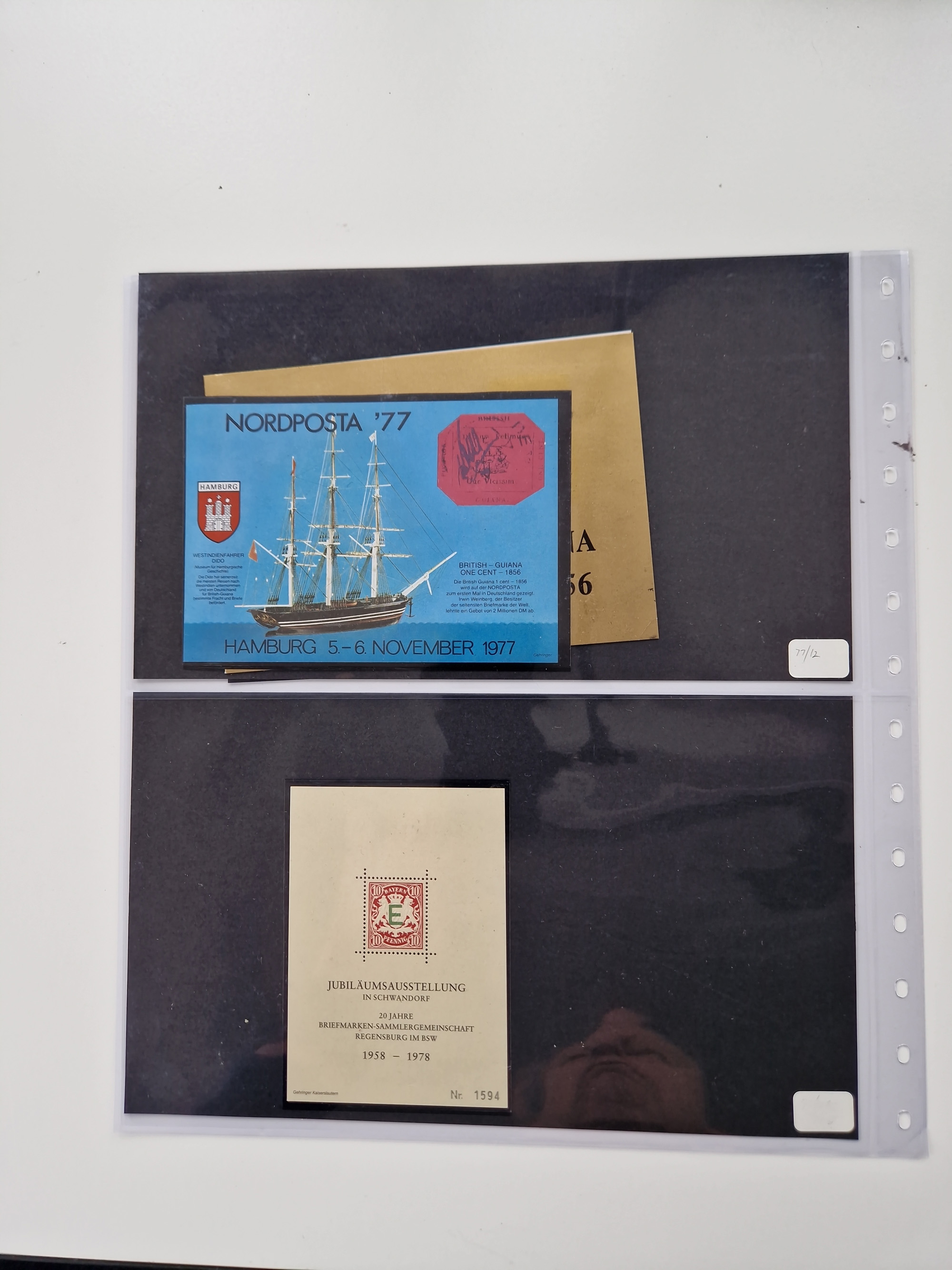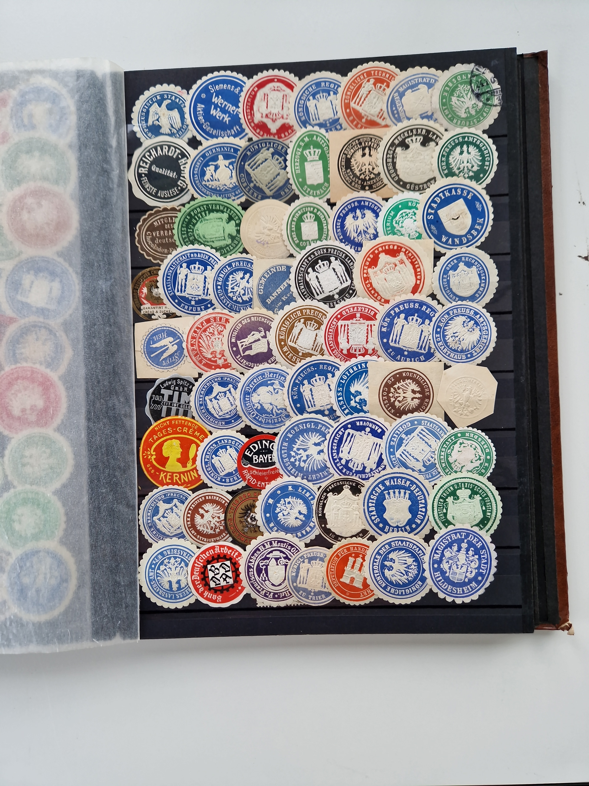 VIGNETTEN: 1896/1960 (ca.), hochinteressanter Bestand mit einigen Tausend Vignetten, Verschluss- und Siegelmarken, später Spendenvignetten und -Blocks, dabei viele zu unterschiedlichen Ausstellungen, meist aus Berlin, München, Nürnberg, Leipzig mit Export-Messe, ferner aber auch Luftpost-Ausstellung, Gewerbe- und Industrieschau, Landwirtschaft, Kunst, Firmenvignetten, etc., etwas zu Briefmarken-Ausstellungen, dabei auch drei Hessheimer Entwürfe, vieles auf amerikanischen Händlerkarten und Loskarten, in drei Kartons
