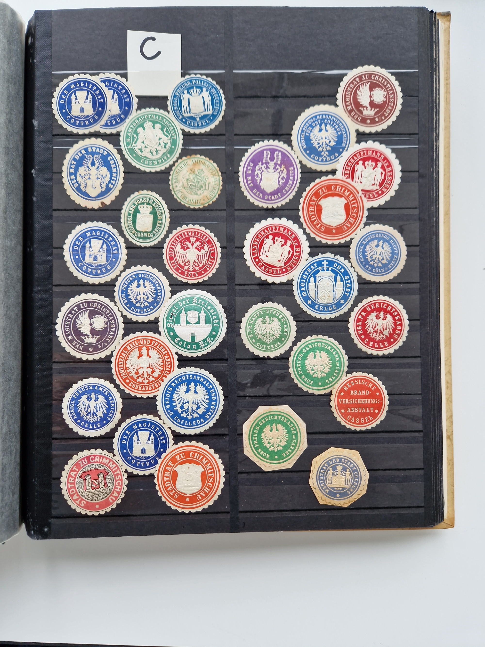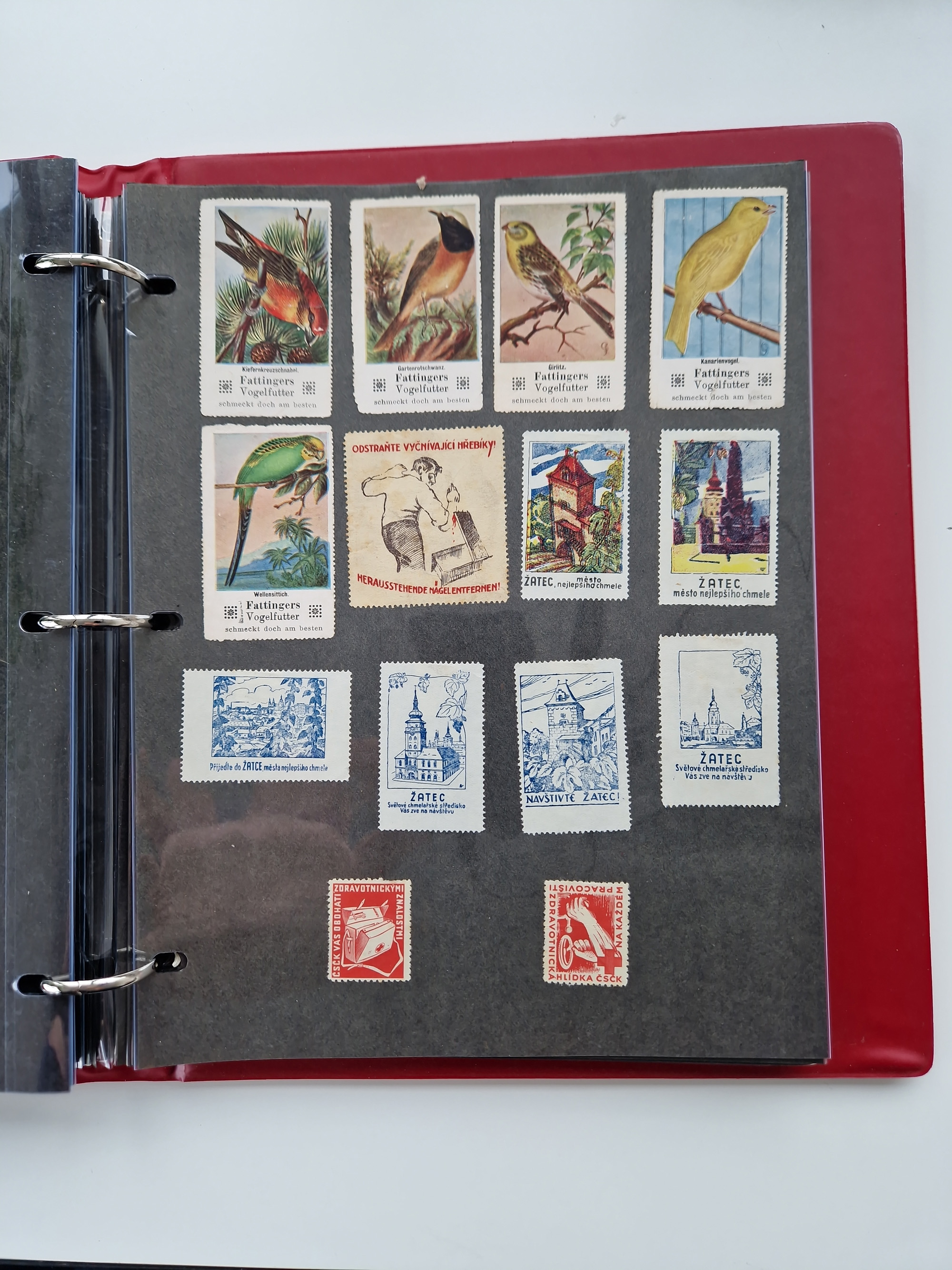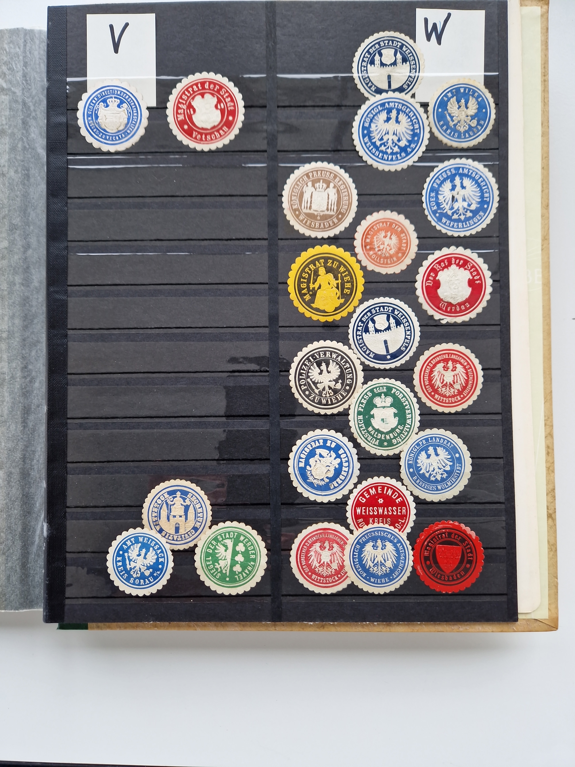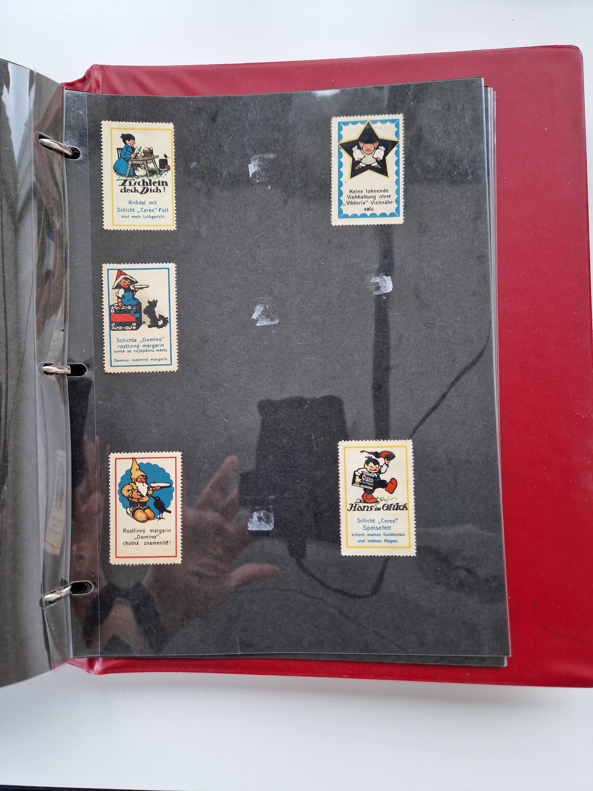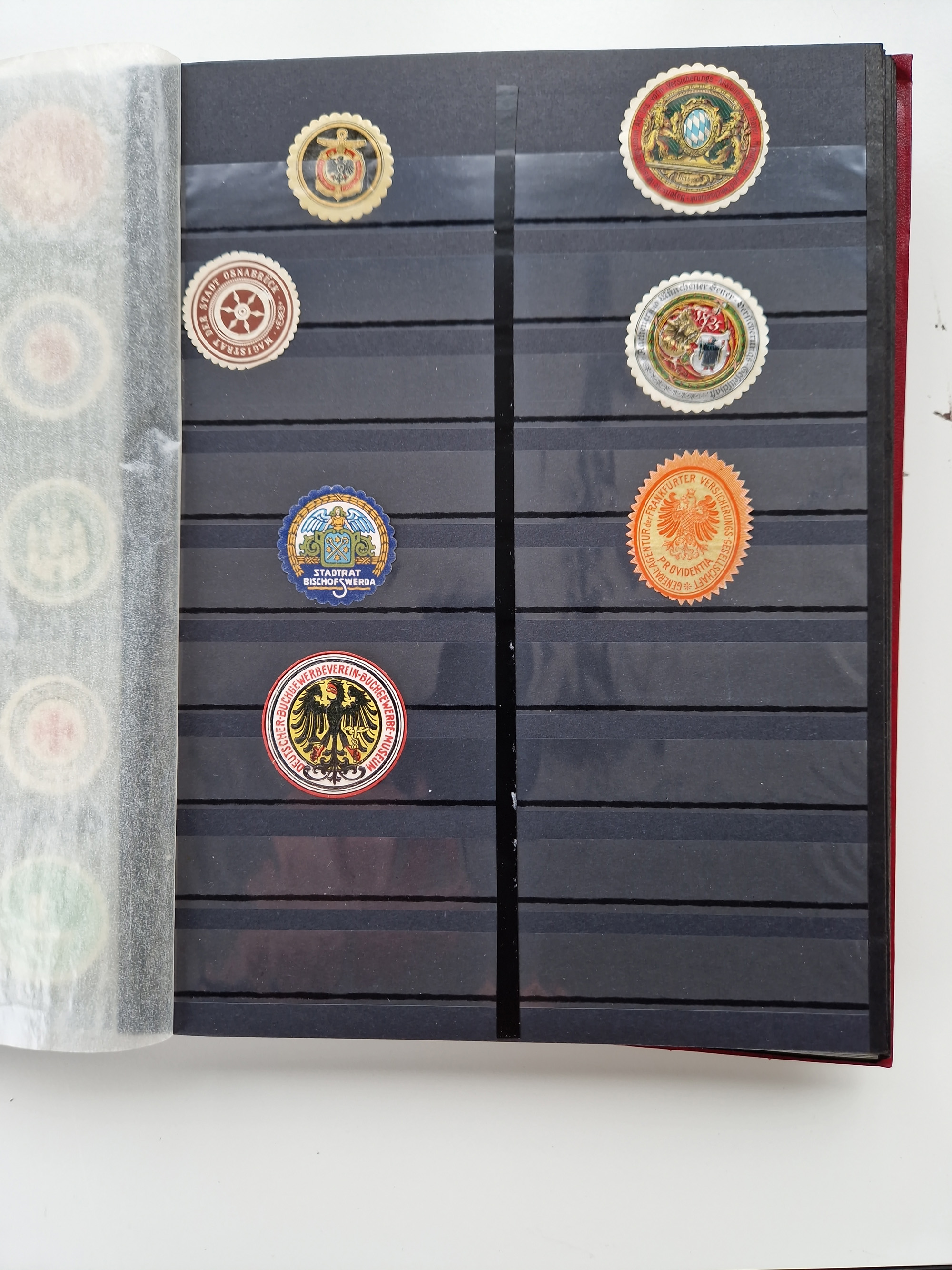 VIGNETTEN: 1896/1960 (ca.), hochinteressanter Bestand mit einigen Tausend Vignetten, Verschluss- und Siegelmarken, später Spendenvignetten und -Blocks, dabei viele zu unterschiedlichen Ausstellungen, meist aus Berlin, München, Nürnberg, Leipzig mit Export-Messe, ferner aber auch Luftpost-Ausstellung, Gewerbe- und Industrieschau, Landwirtschaft, Kunst, Firmenvignetten, etc., etwas zu Briefmarken-Ausstellungen, dabei auch drei Hessheimer Entwürfe, vieles auf amerikanischen Händlerkarten und Loskarten, in drei Kartons