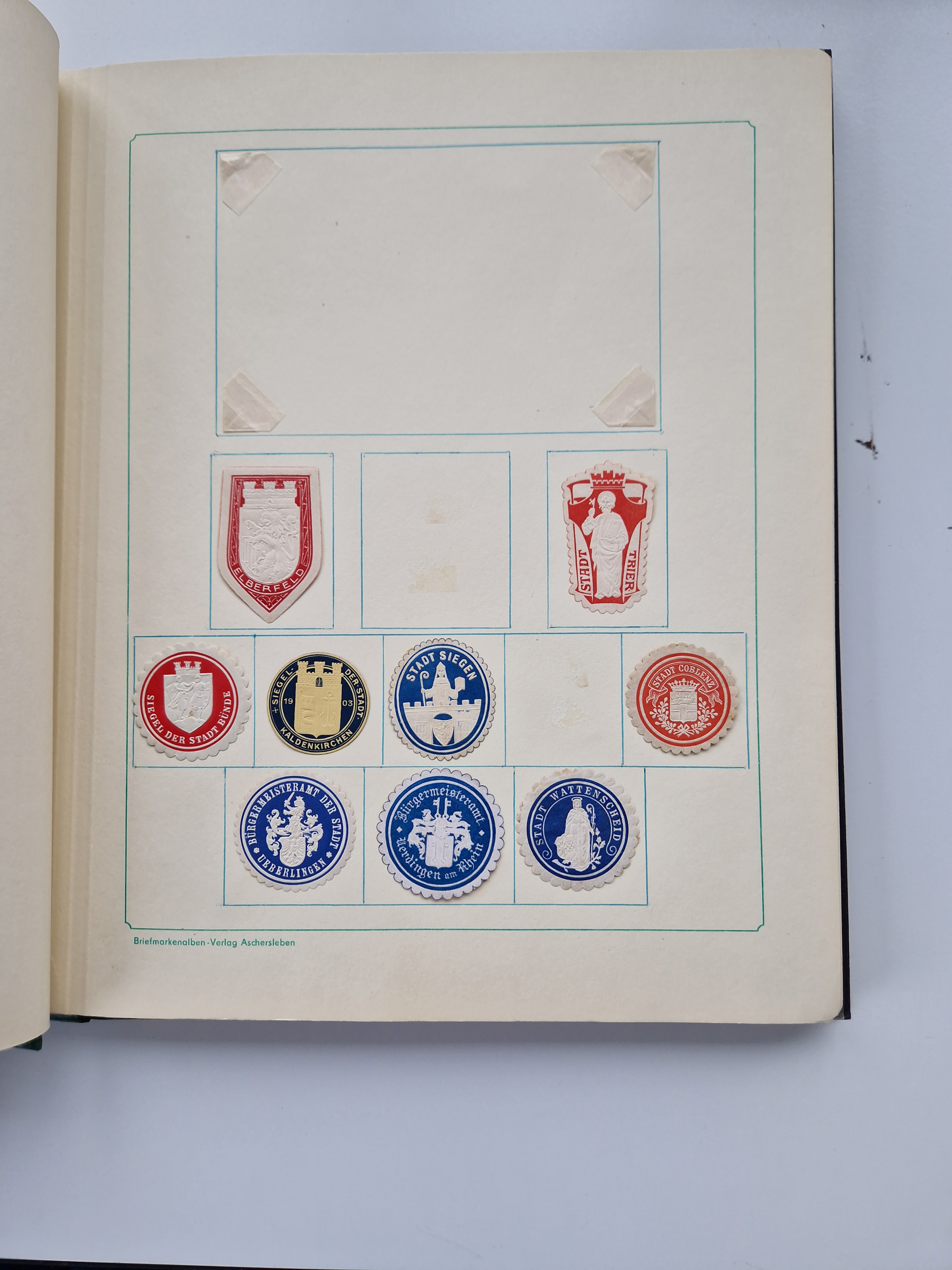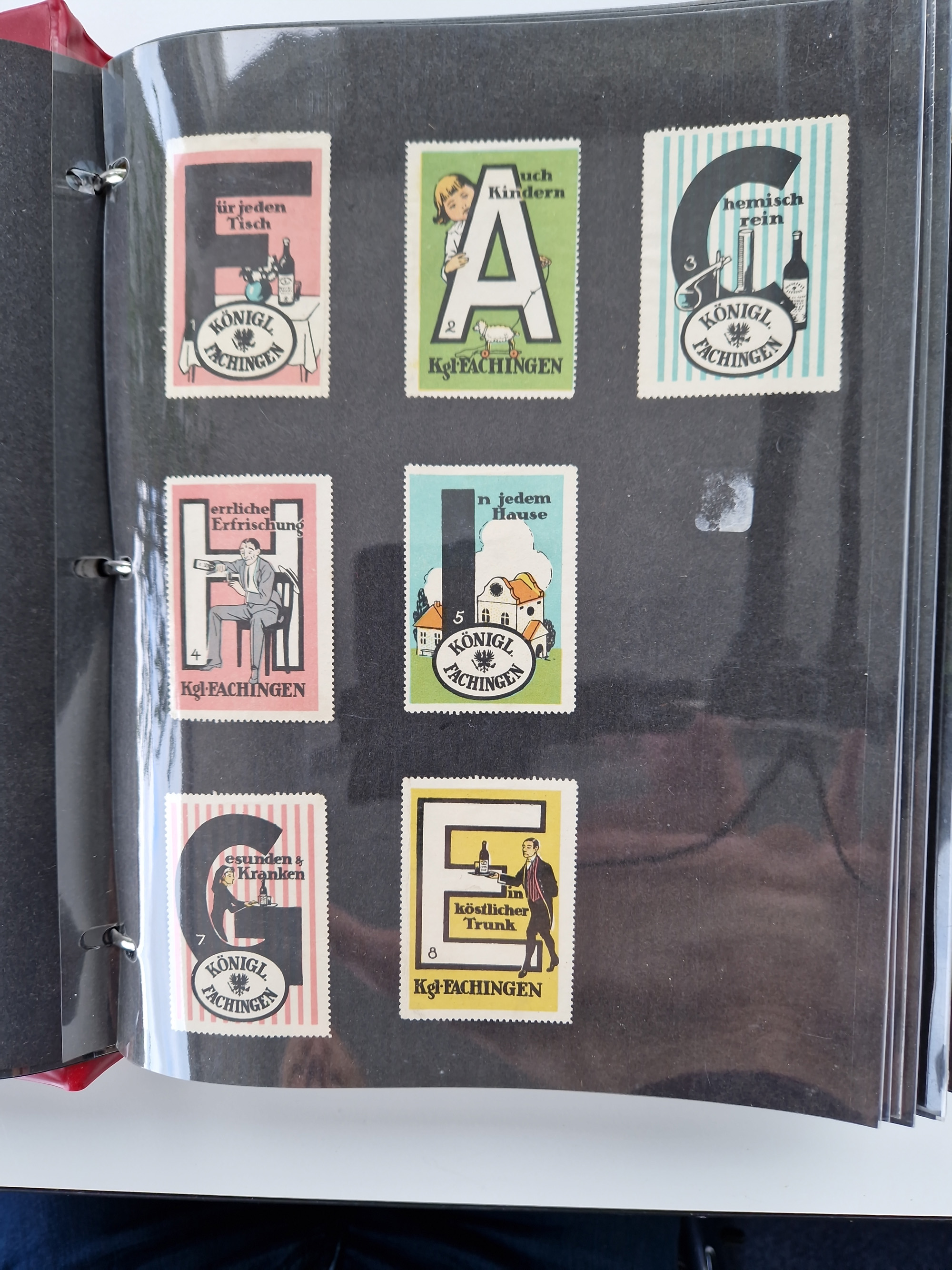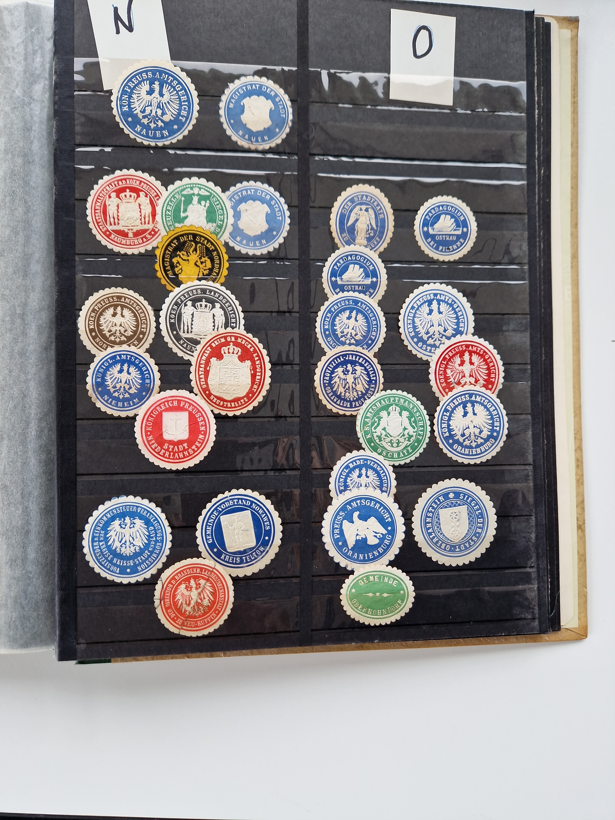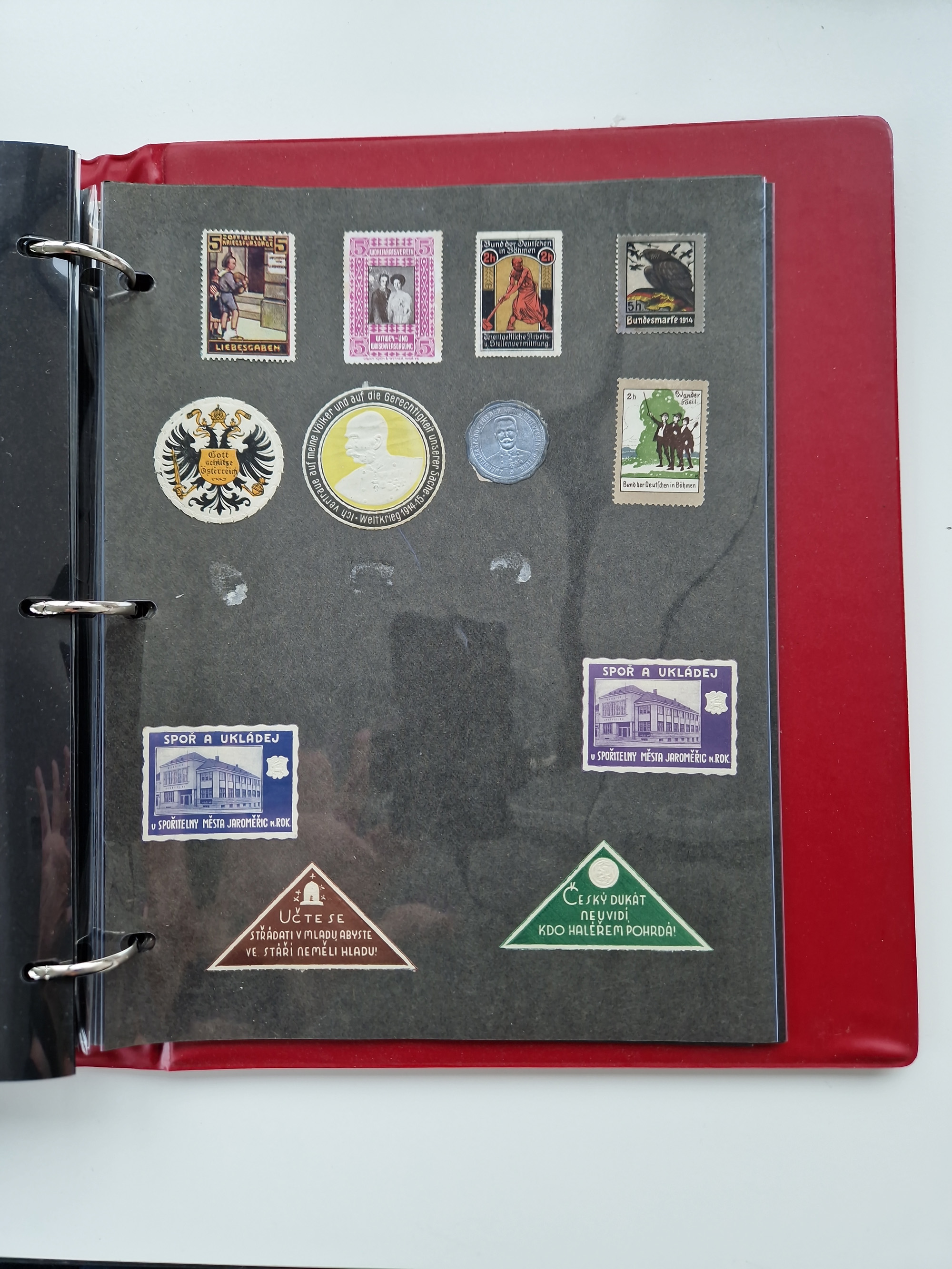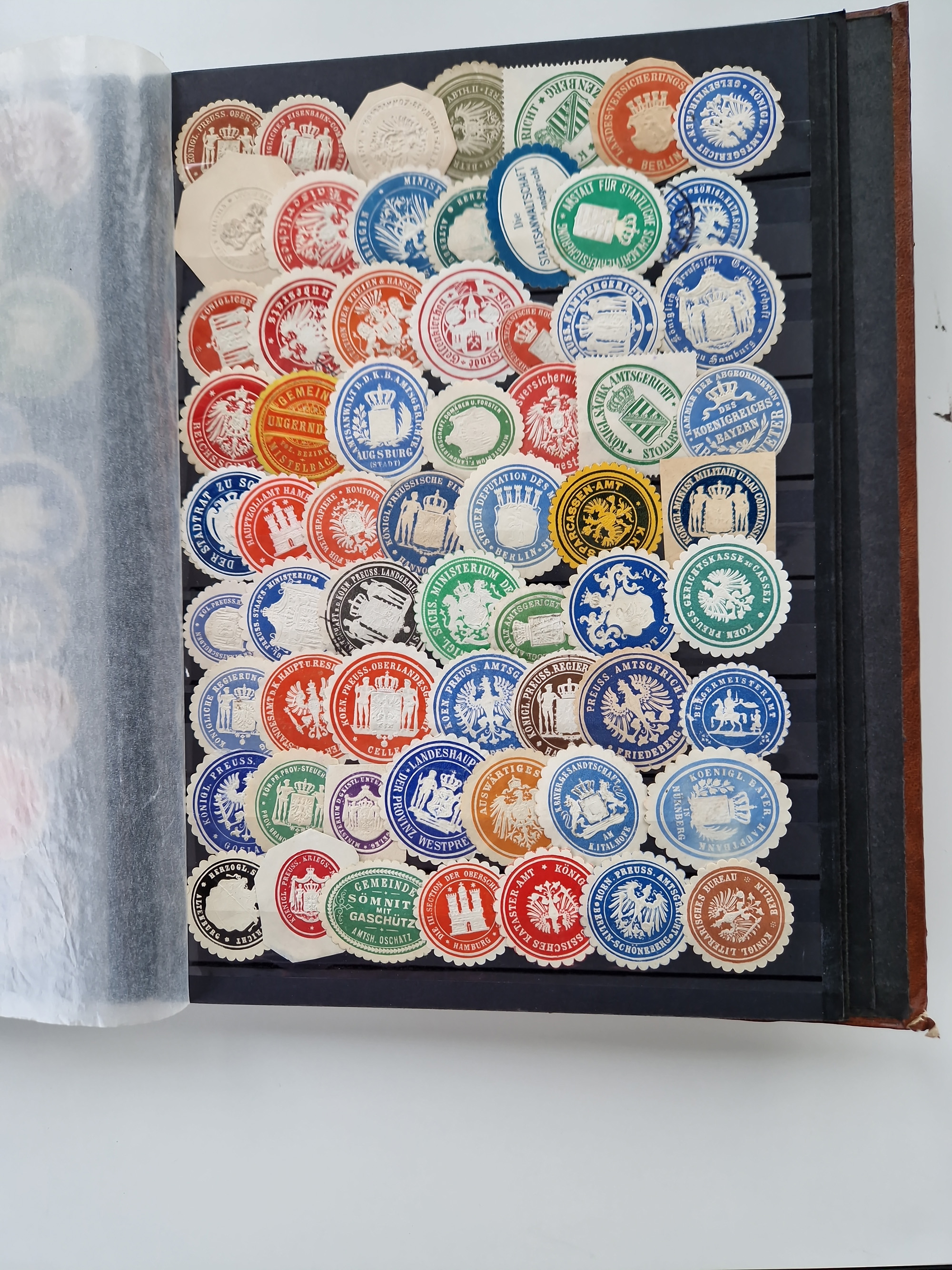 VIGNETTEN: 1896/1960 (ca.), hochinteressanter Bestand mit einigen Tausend Vignetten, Verschluss- und Siegelmarken, später Spendenvignetten und -Blocks, dabei viele zu unterschiedlichen Ausstellungen, meist aus Berlin, München, Nürnberg, Leipzig mit Export-Messe, ferner aber auch Luftpost-Ausstellung, Gewerbe- und Industrieschau, Landwirtschaft, Kunst, Firmenvignetten, etc., etwas zu Briefmarken-Ausstellungen, dabei auch drei Hessheimer Entwürfe, vieles auf amerikanischen Händlerkarten und Loskarten, in drei Kartons