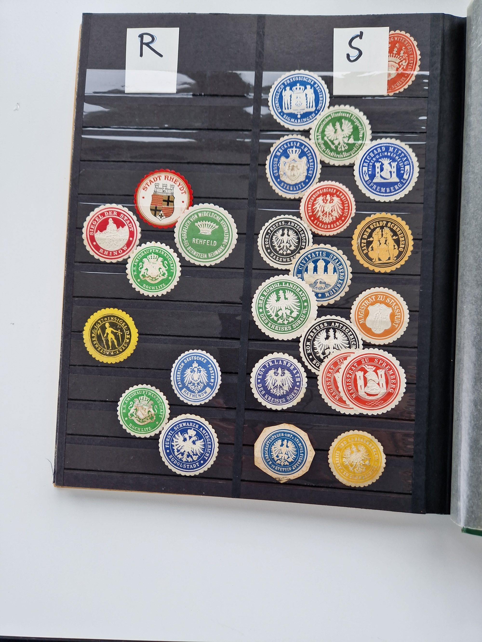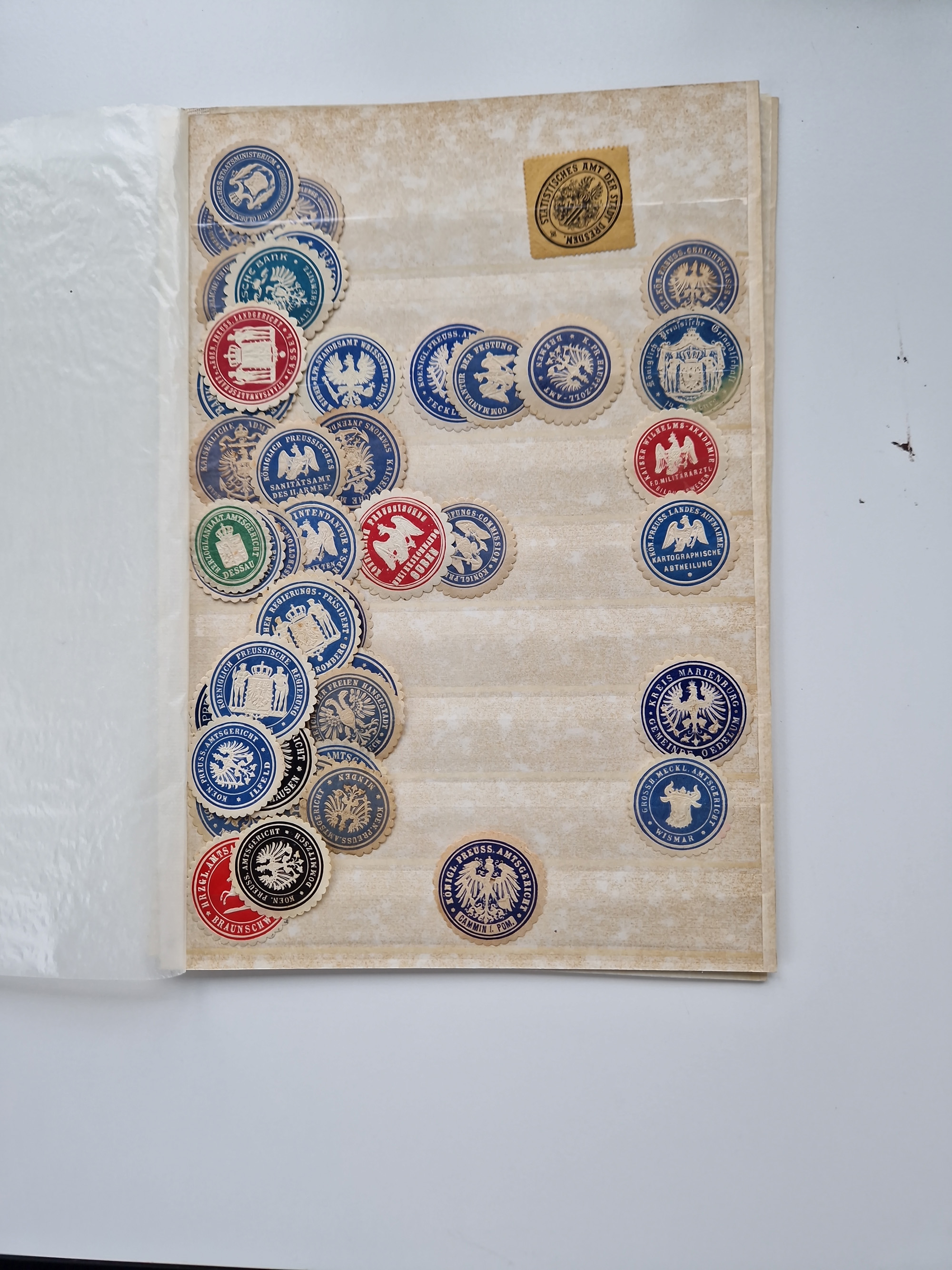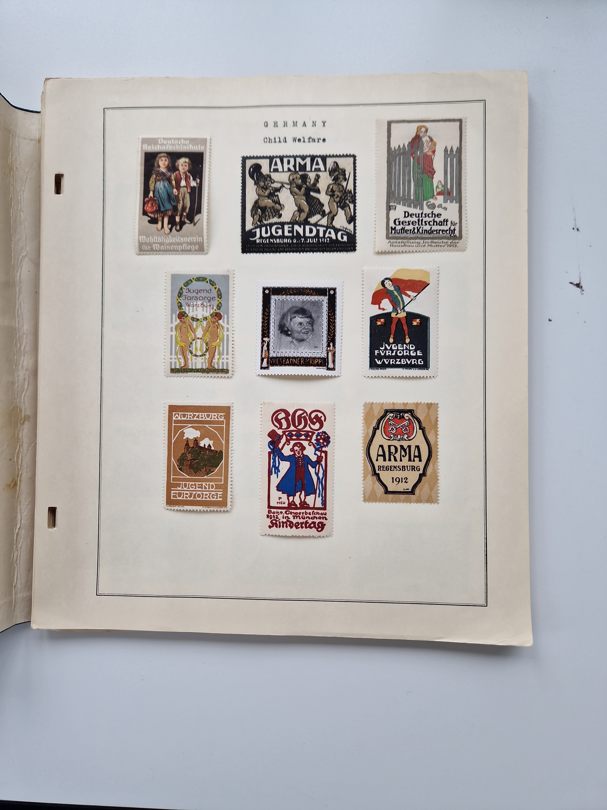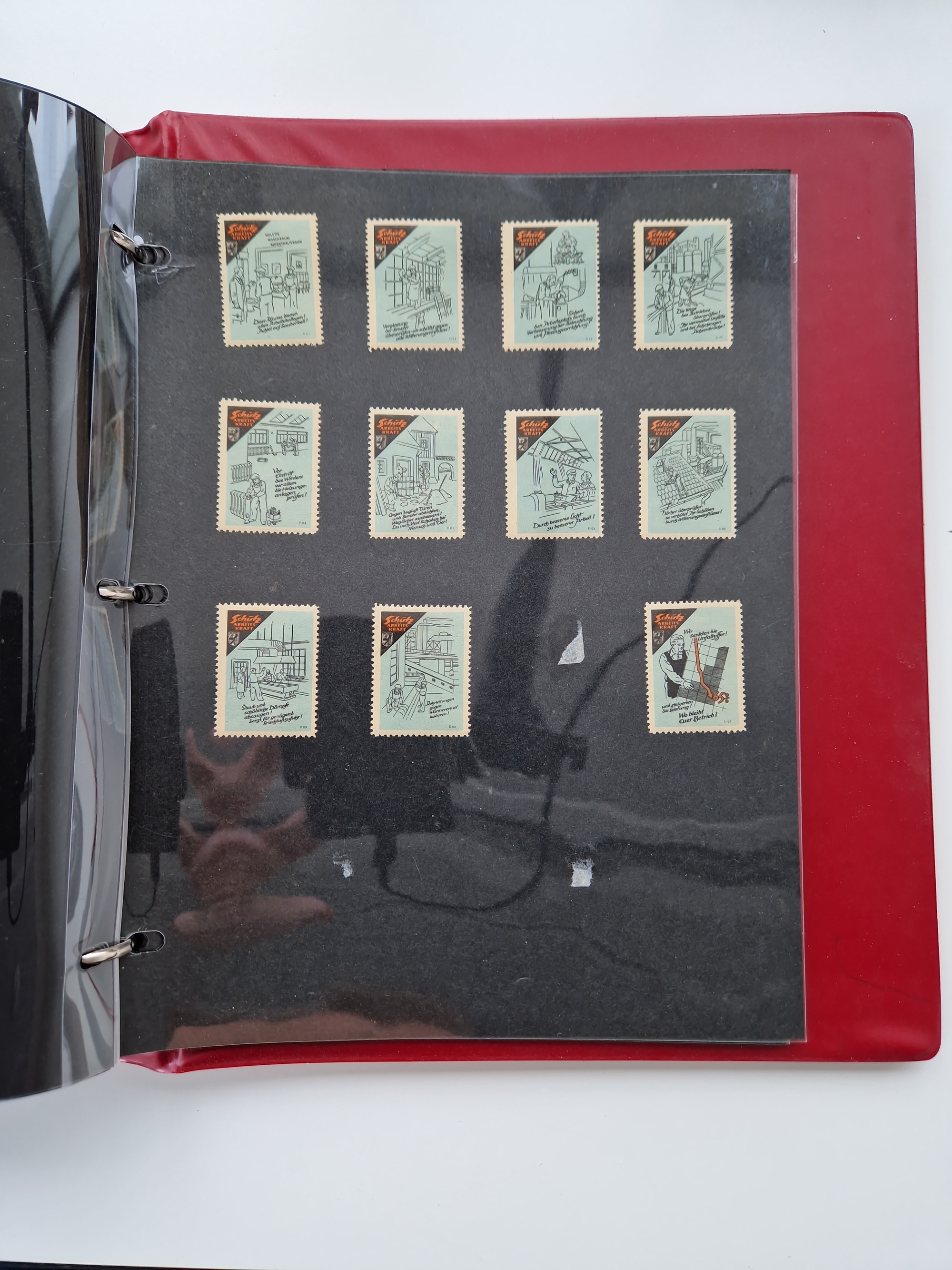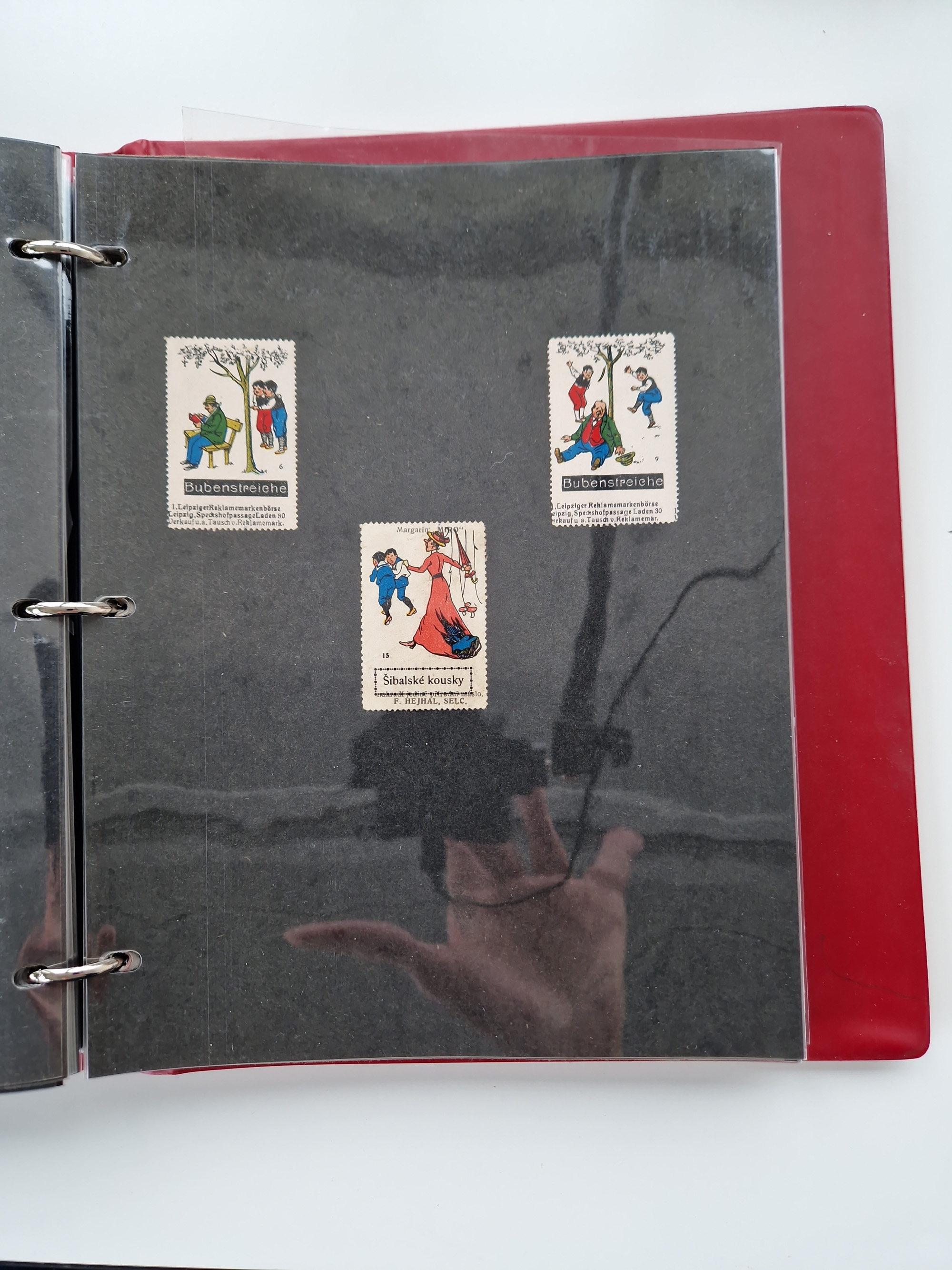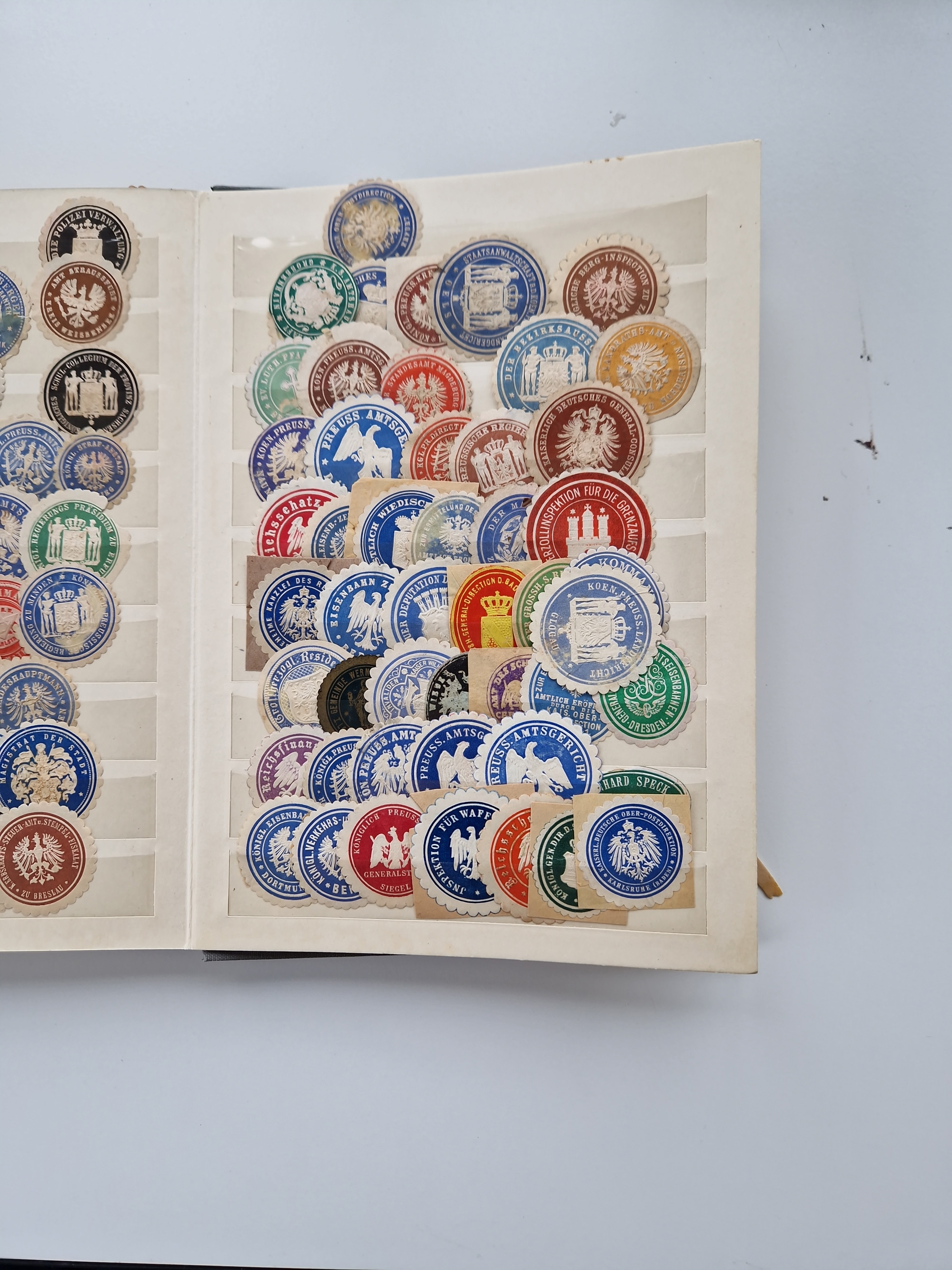 VIGNETTEN: 1896/1960 (ca.), hochinteressanter Bestand mit einigen Tausend Vignetten, Verschluss- und Siegelmarken, später Spendenvignetten und -Blocks, dabei viele zu unterschiedlichen Ausstellungen, meist aus Berlin, München, Nürnberg, Leipzig mit Export-Messe, ferner aber auch Luftpost-Ausstellung, Gewerbe- und Industrieschau, Landwirtschaft, Kunst, Firmenvignetten, etc., etwas zu Briefmarken-Ausstellungen, dabei auch drei Hessheimer Entwürfe, vieles auf amerikanischen Händlerkarten und Loskarten, in drei Kartons
