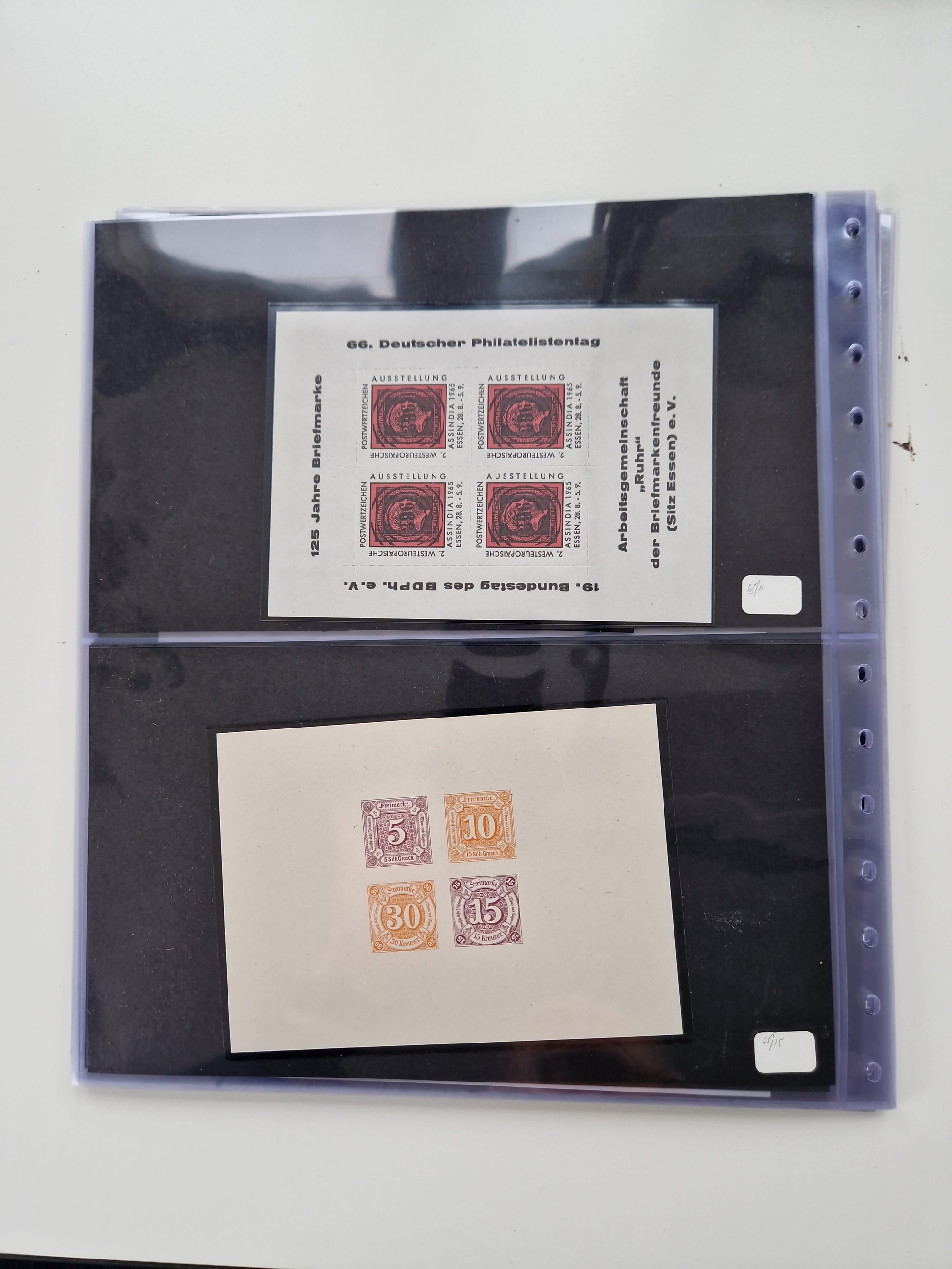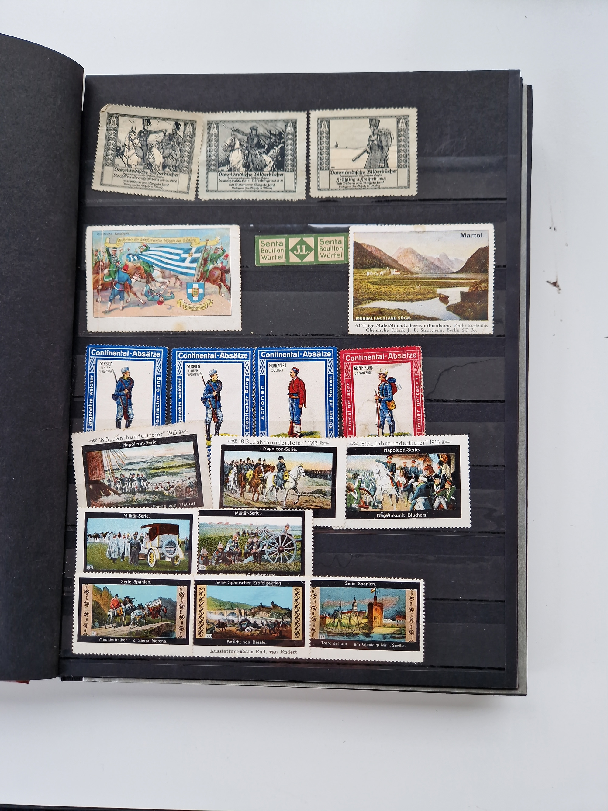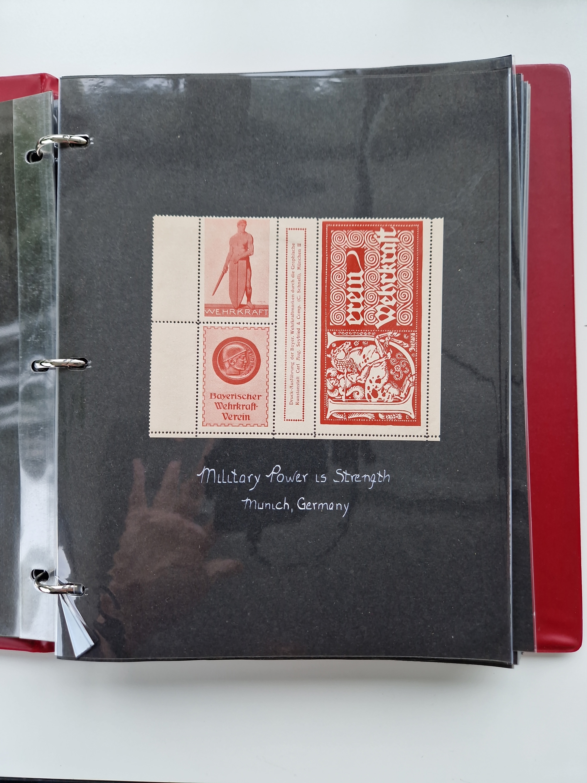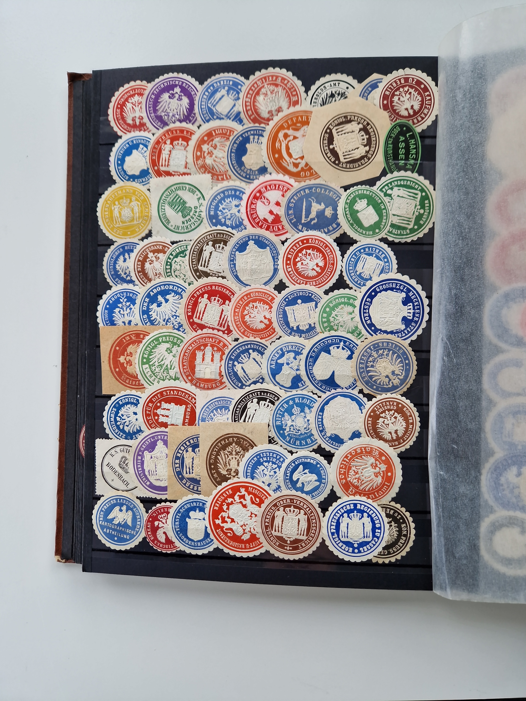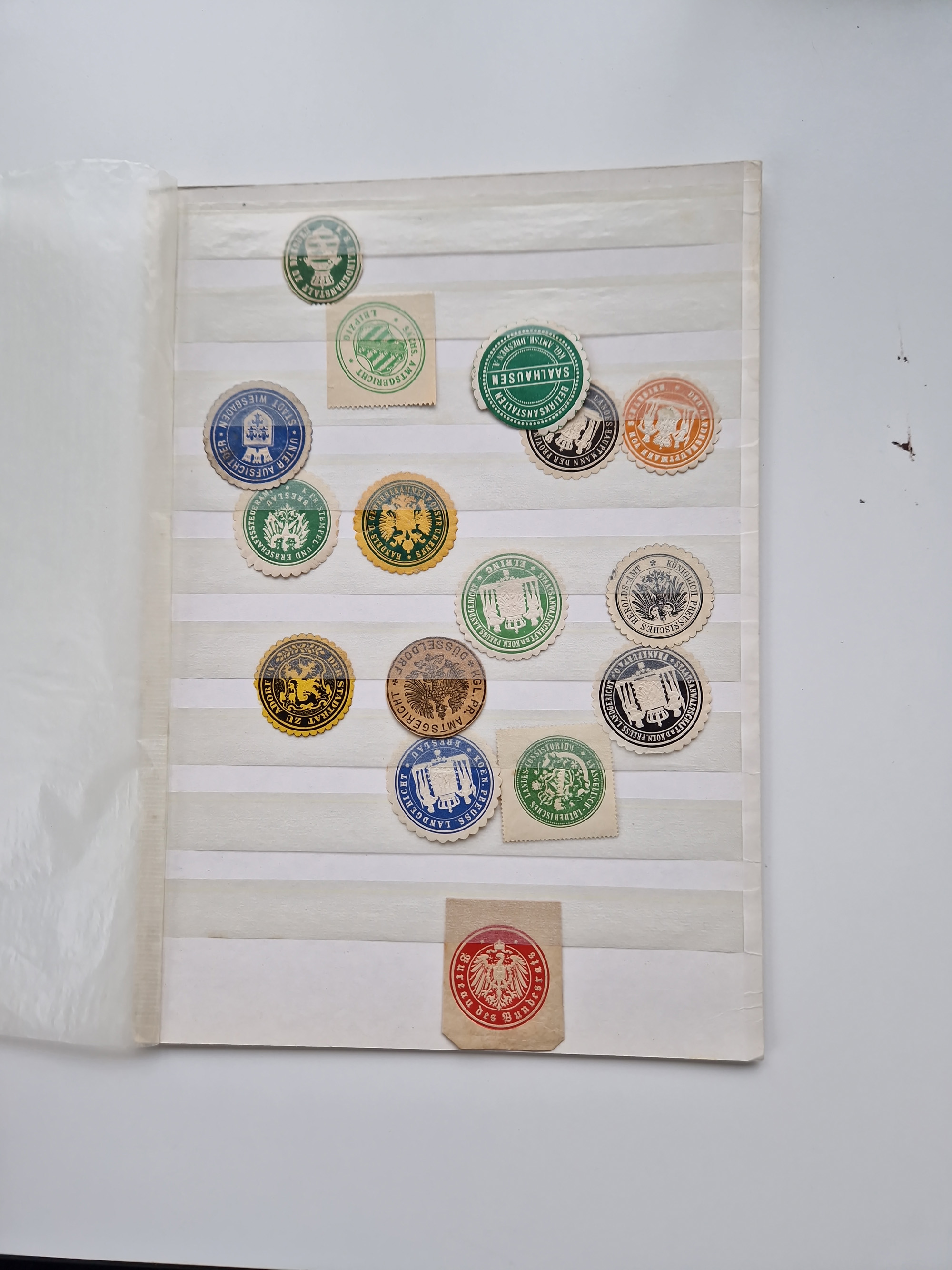 VIGNETTEN: 1896/1960 (ca.), hochinteressanter Bestand mit einigen Tausend Vignetten, Verschluss- und Siegelmarken, später Spendenvignetten und -Blocks, dabei viele zu unterschiedlichen Ausstellungen, meist aus Berlin, München, Nürnberg, Leipzig mit Export-Messe, ferner aber auch Luftpost-Ausstellung, Gewerbe- und Industrieschau, Landwirtschaft, Kunst, Firmenvignetten, etc., etwas zu Briefmarken-Ausstellungen, dabei auch drei Hessheimer Entwürfe, vieles auf amerikanischen Händlerkarten und Loskarten, in drei Kartons