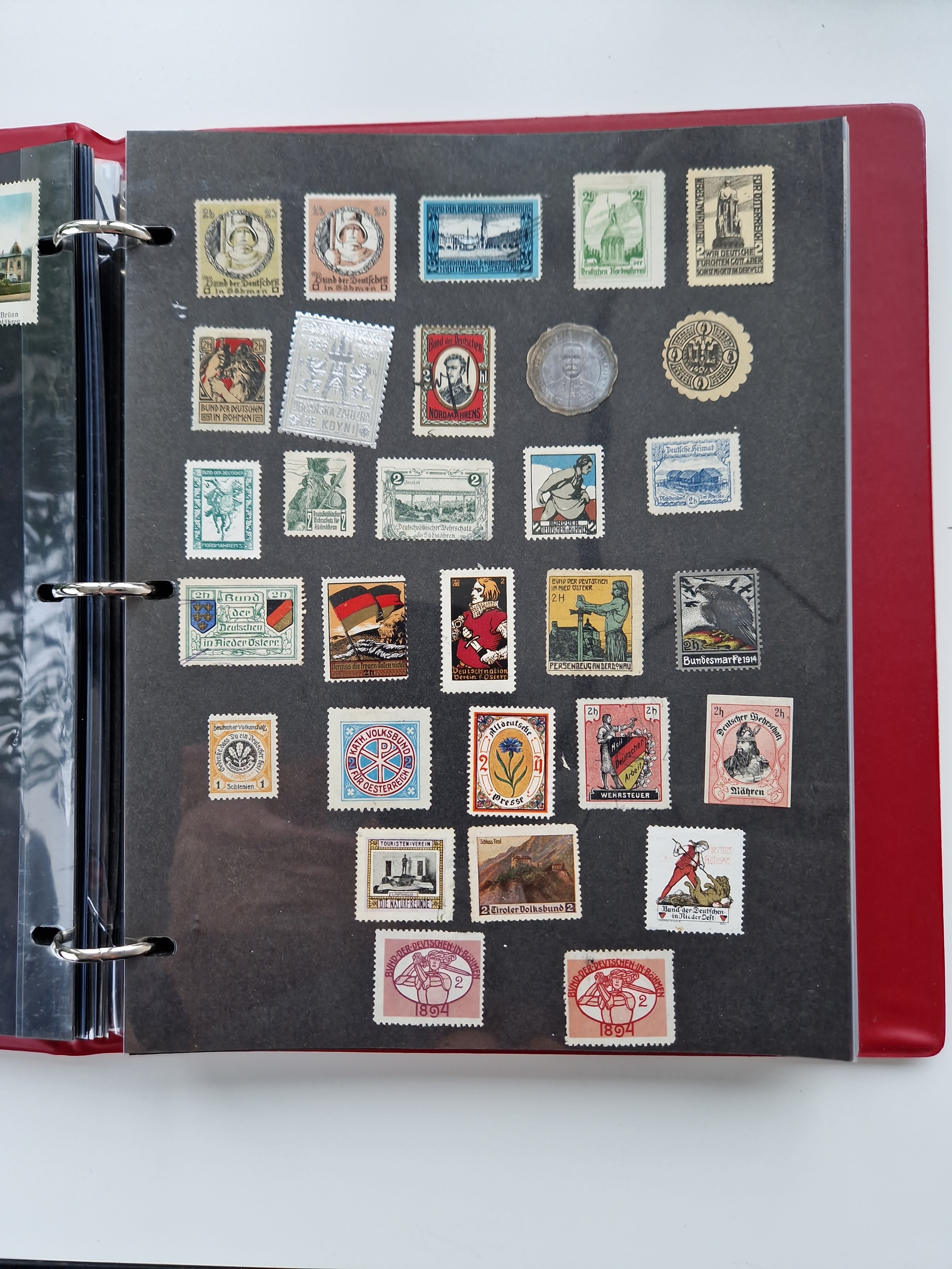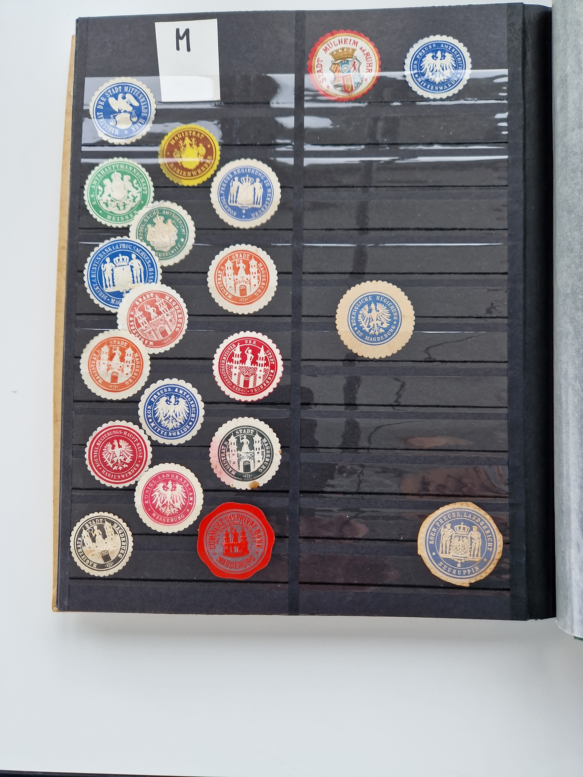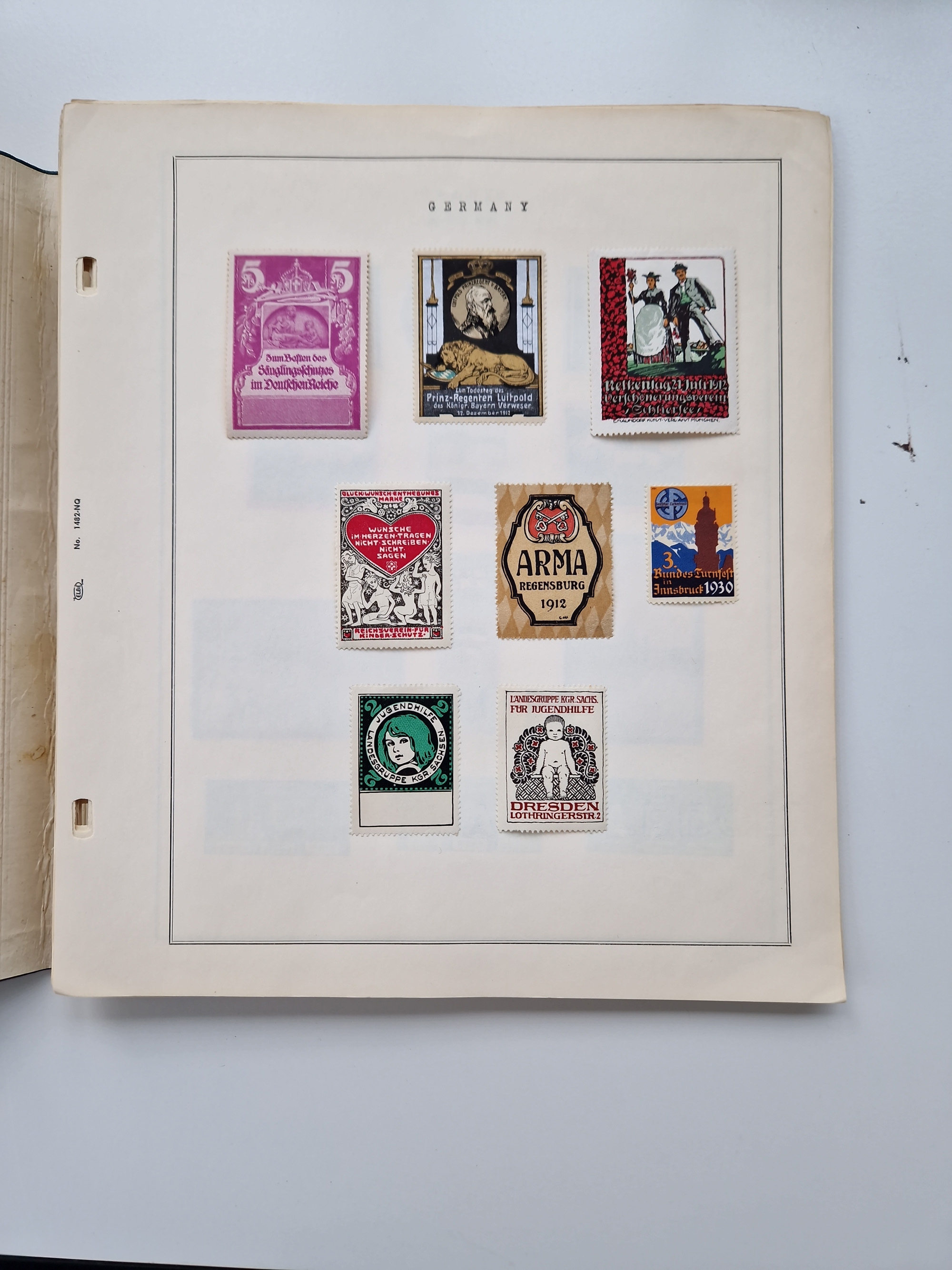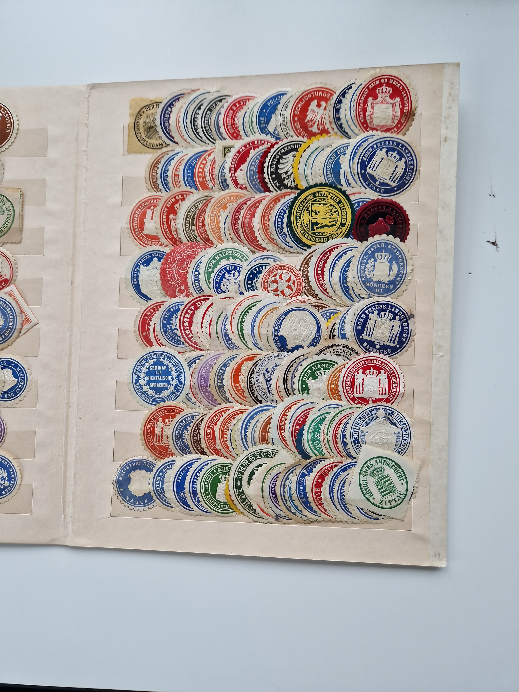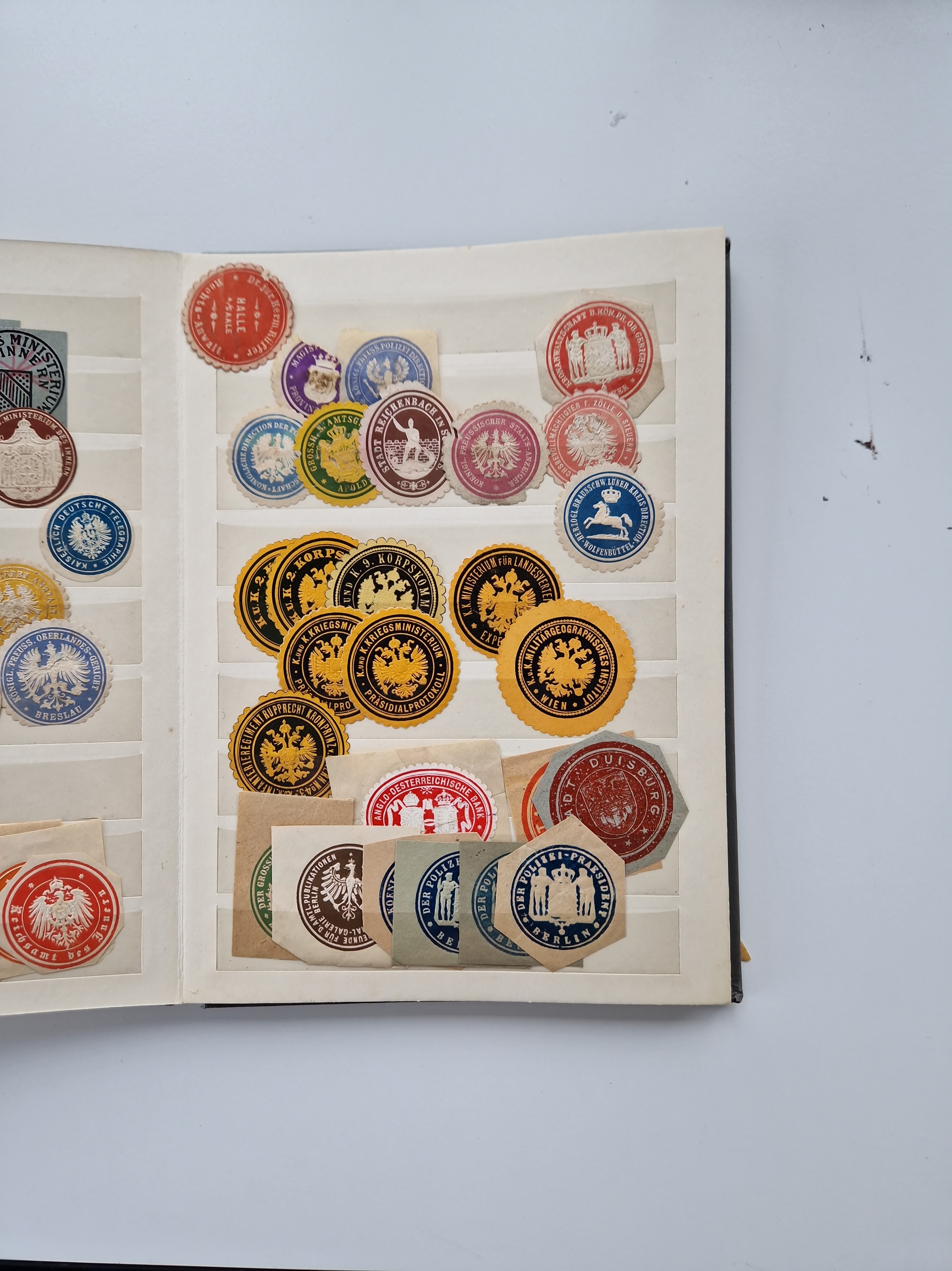 VIGNETTEN: 1896/1960 (ca.), hochinteressanter Bestand mit einigen Tausend Vignetten, Verschluss- und Siegelmarken, später Spendenvignetten und -Blocks, dabei viele zu unterschiedlichen Ausstellungen, meist aus Berlin, München, Nürnberg, Leipzig mit Export-Messe, ferner aber auch Luftpost-Ausstellung, Gewerbe- und Industrieschau, Landwirtschaft, Kunst, Firmenvignetten, etc., etwas zu Briefmarken-Ausstellungen, dabei auch drei Hessheimer Entwürfe, vieles auf amerikanischen Händlerkarten und Loskarten, in drei Kartons