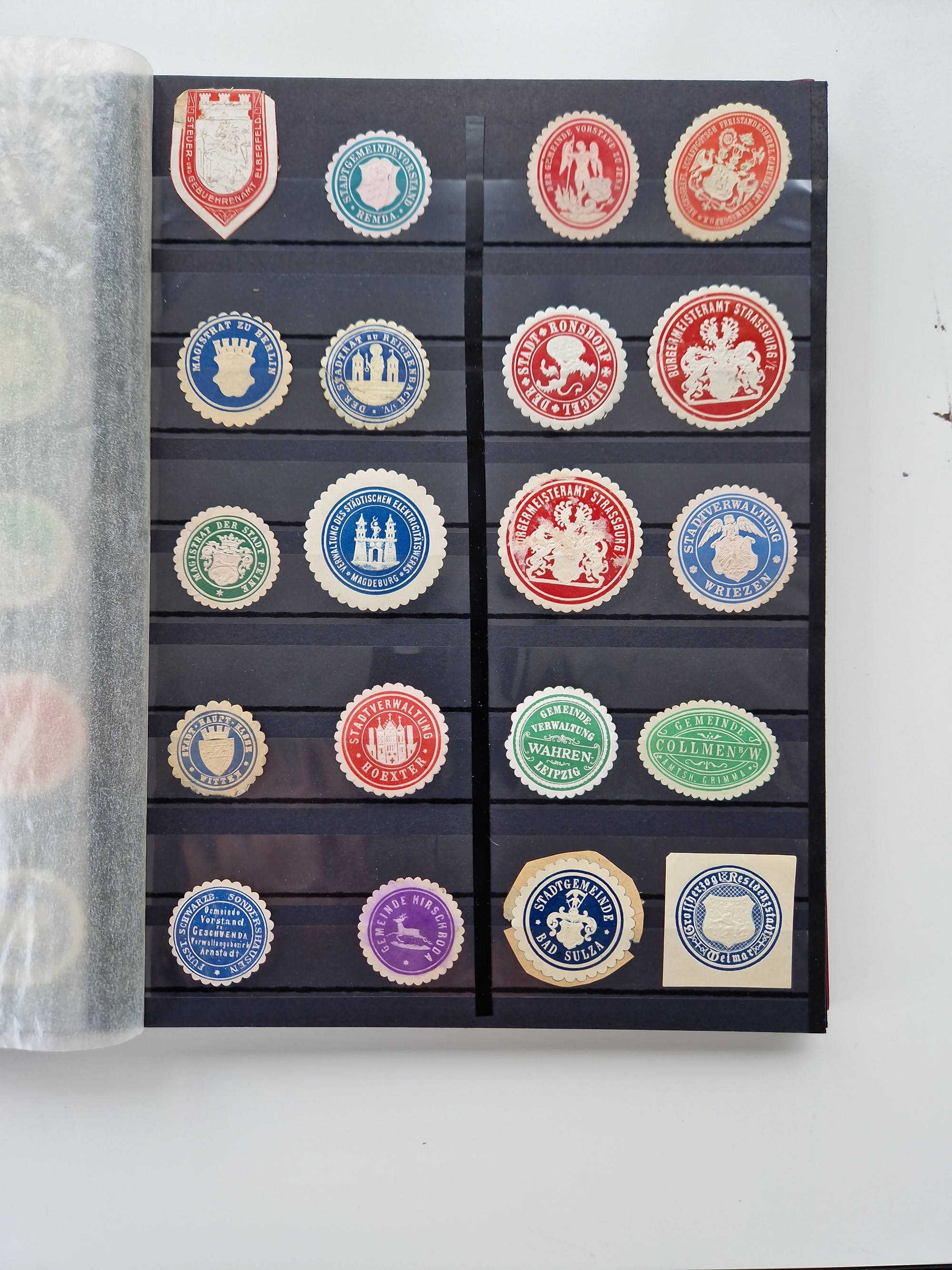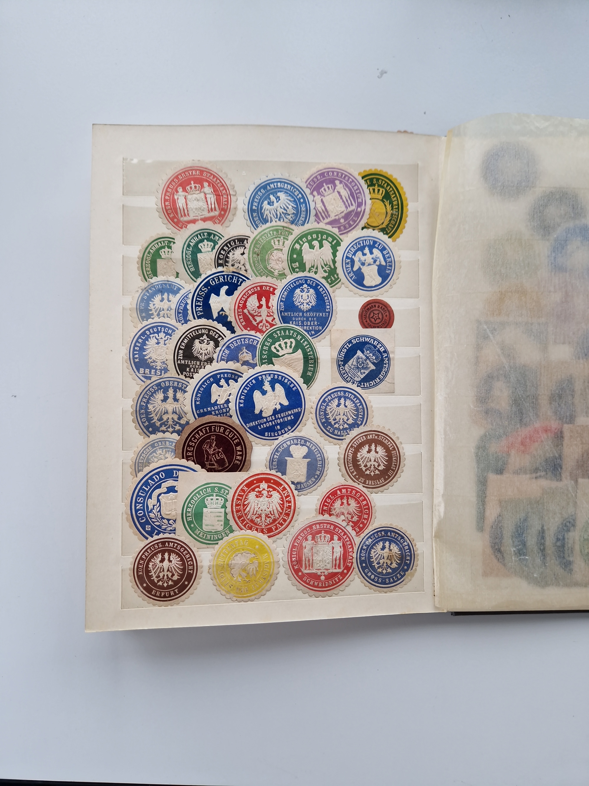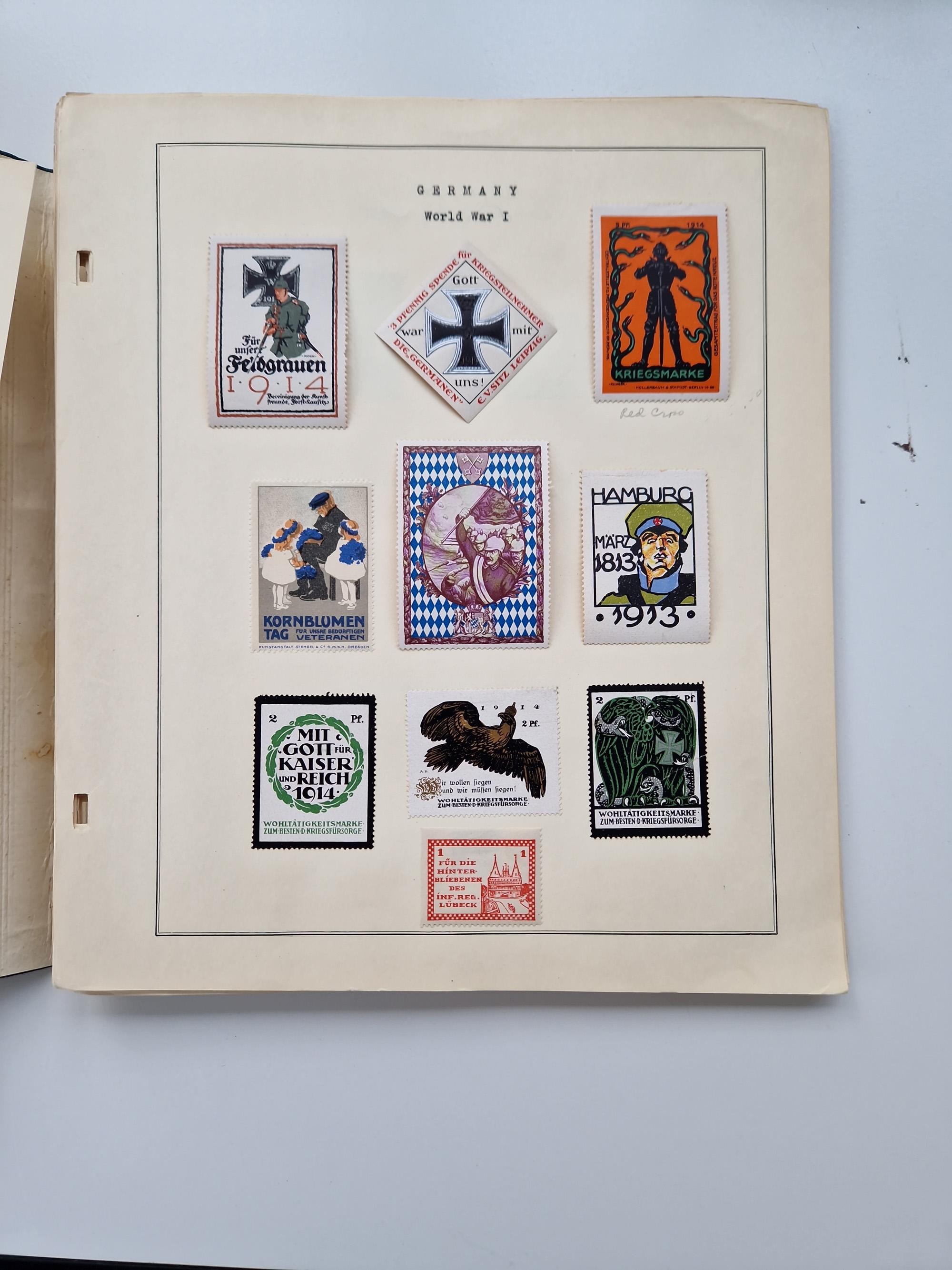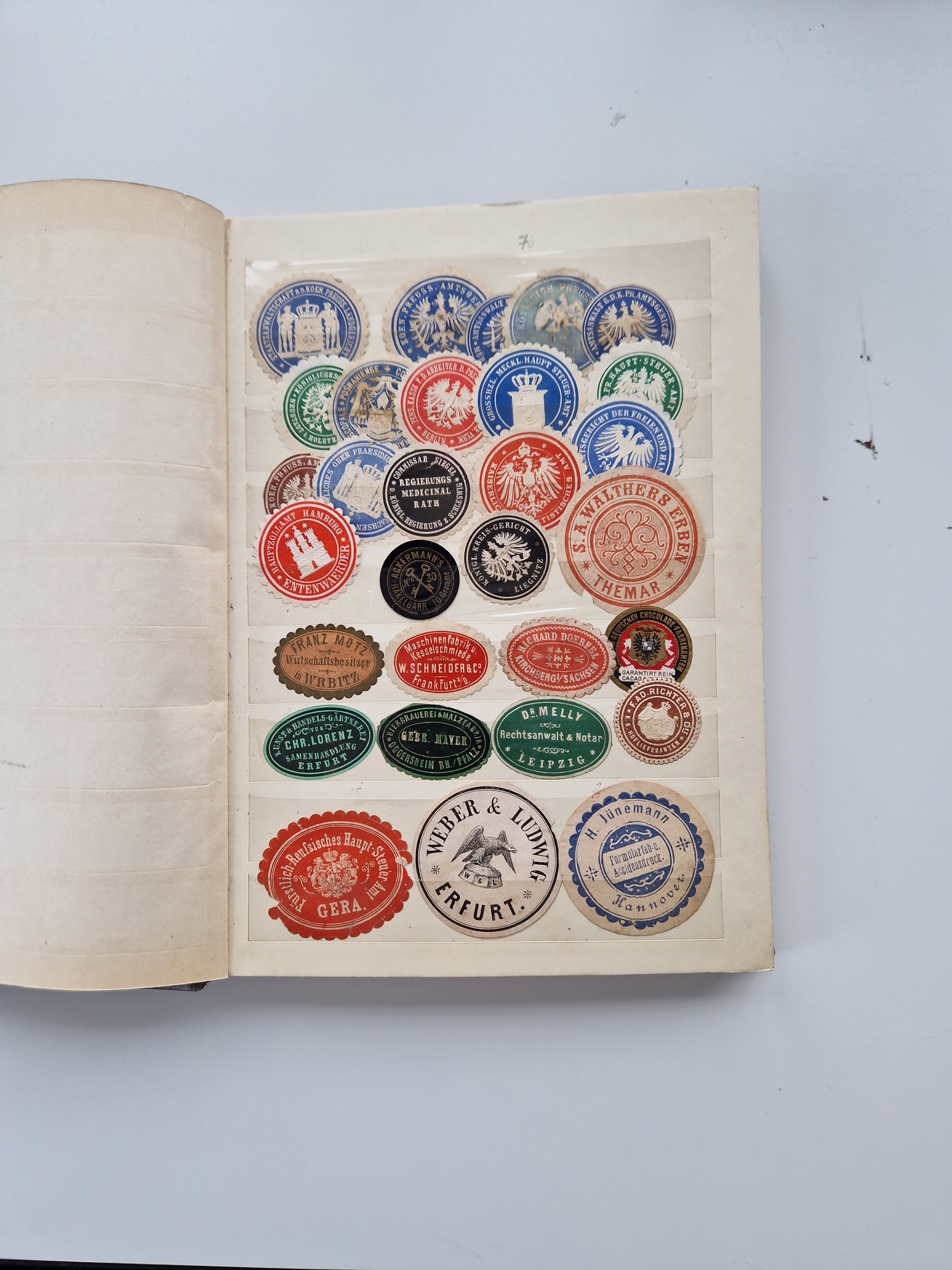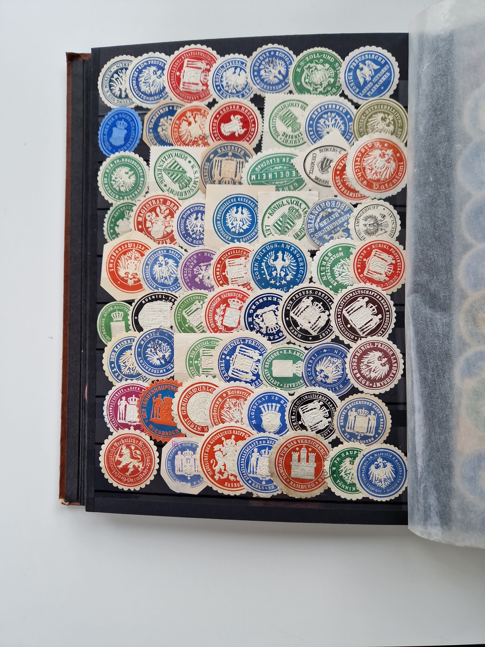 VIGNETTEN: 1896/1960 (ca.), hochinteressanter Bestand mit einigen Tausend Vignetten, Verschluss- und Siegelmarken, später Spendenvignetten und -Blocks, dabei viele zu unterschiedlichen Ausstellungen, meist aus Berlin, München, Nürnberg, Leipzig mit Export-Messe, ferner aber auch Luftpost-Ausstellung, Gewerbe- und Industrieschau, Landwirtschaft, Kunst, Firmenvignetten, etc., etwas zu Briefmarken-Ausstellungen, dabei auch drei Hessheimer Entwürfe, vieles auf amerikanischen Händlerkarten und Loskarten, in drei Kartons