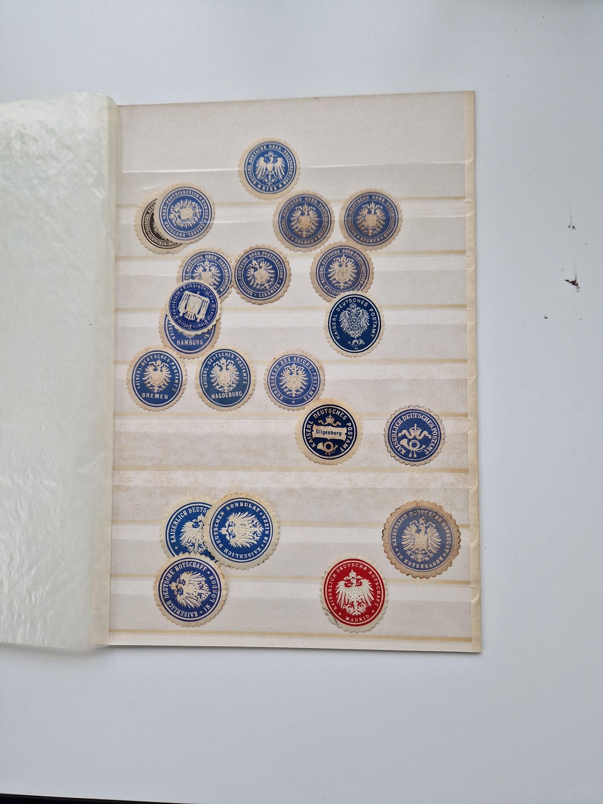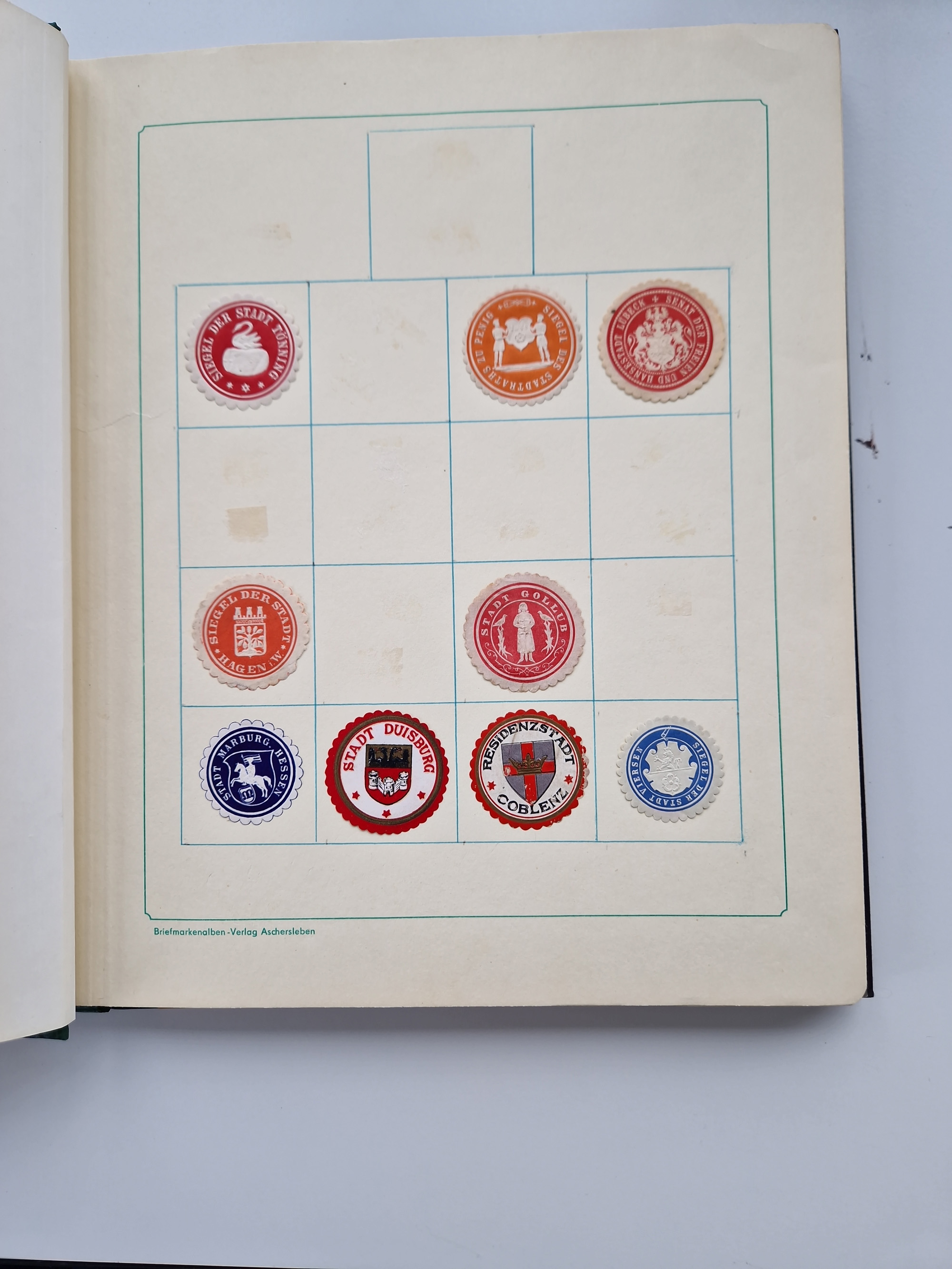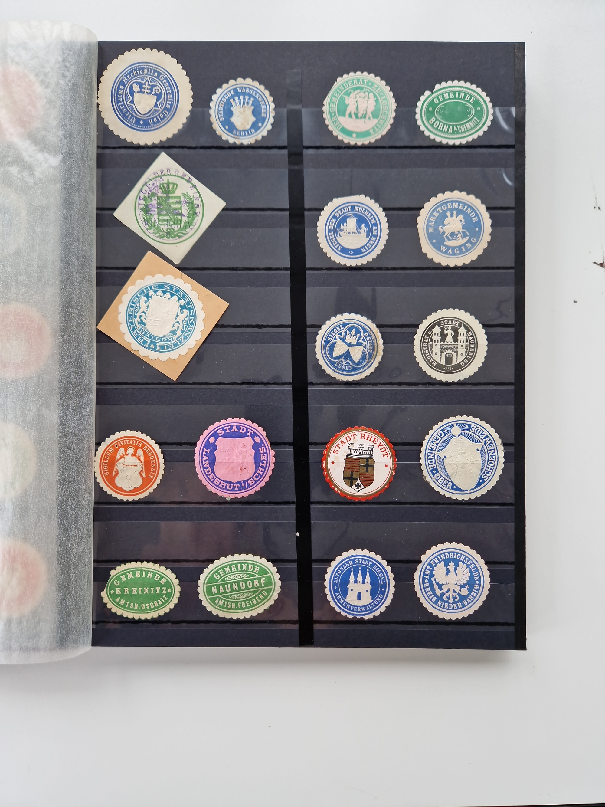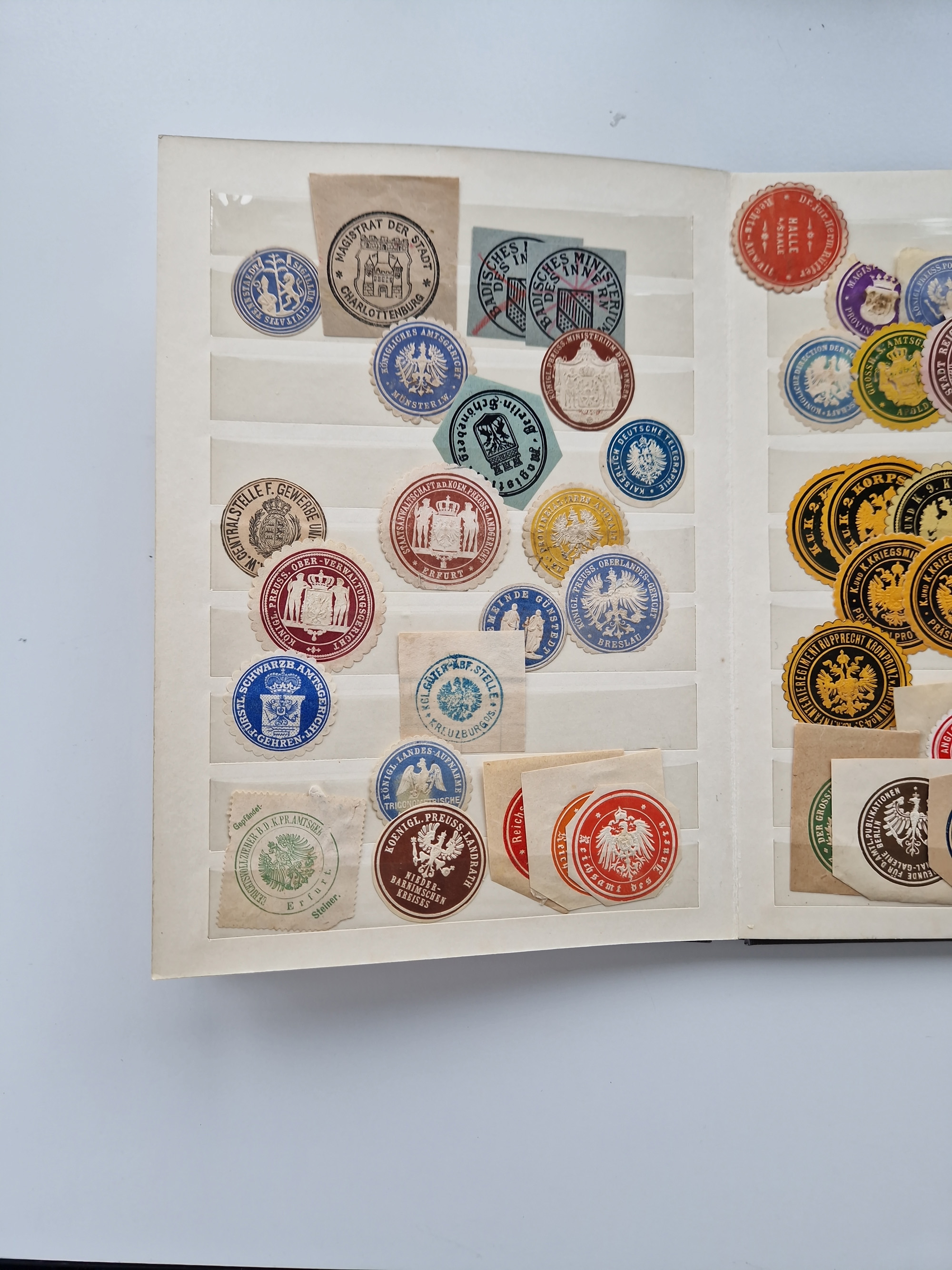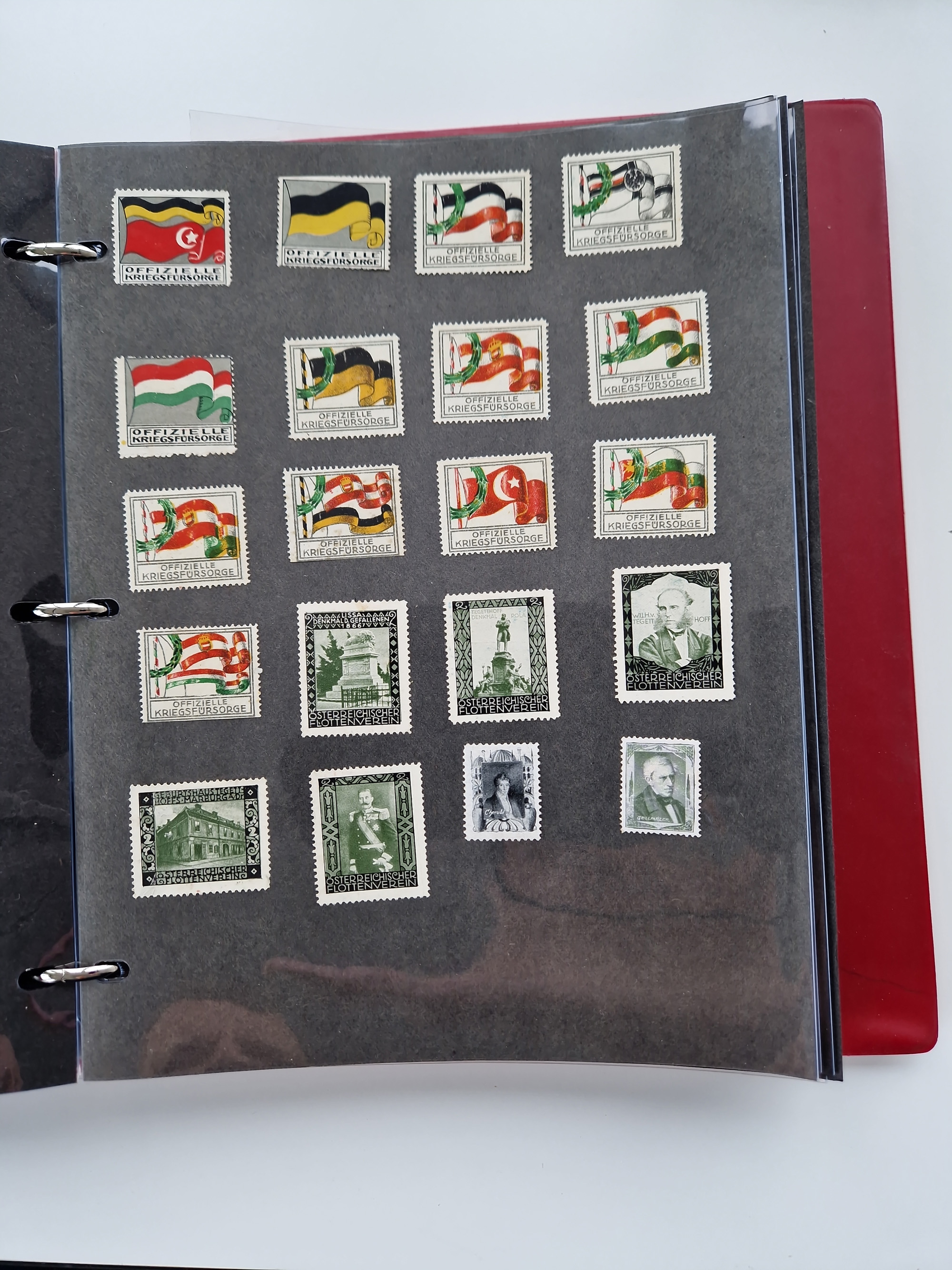 VIGNETTEN: 1896/1960 (ca.), hochinteressanter Bestand mit einigen Tausend Vignetten, Verschluss- und Siegelmarken, später Spendenvignetten und -Blocks, dabei viele zu unterschiedlichen Ausstellungen, meist aus Berlin, München, Nürnberg, Leipzig mit Export-Messe, ferner aber auch Luftpost-Ausstellung, Gewerbe- und Industrieschau, Landwirtschaft, Kunst, Firmenvignetten, etc., etwas zu Briefmarken-Ausstellungen, dabei auch drei Hessheimer Entwürfe, vieles auf amerikanischen Händlerkarten und Loskarten, in drei Kartons