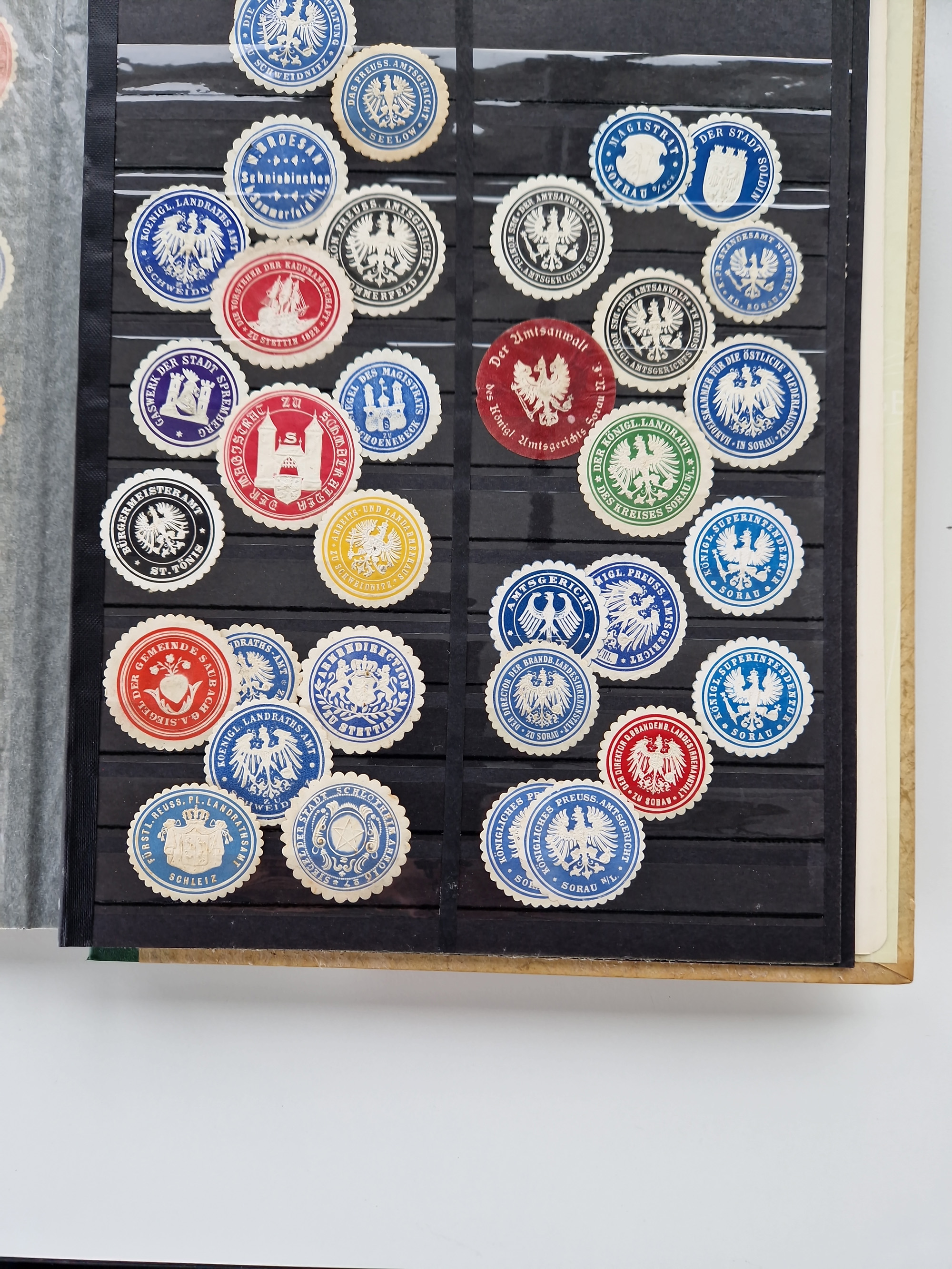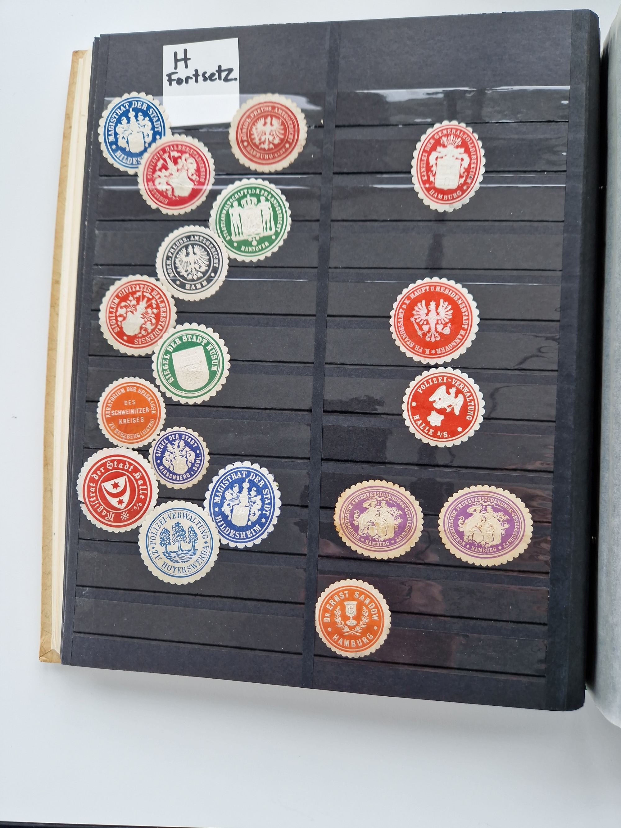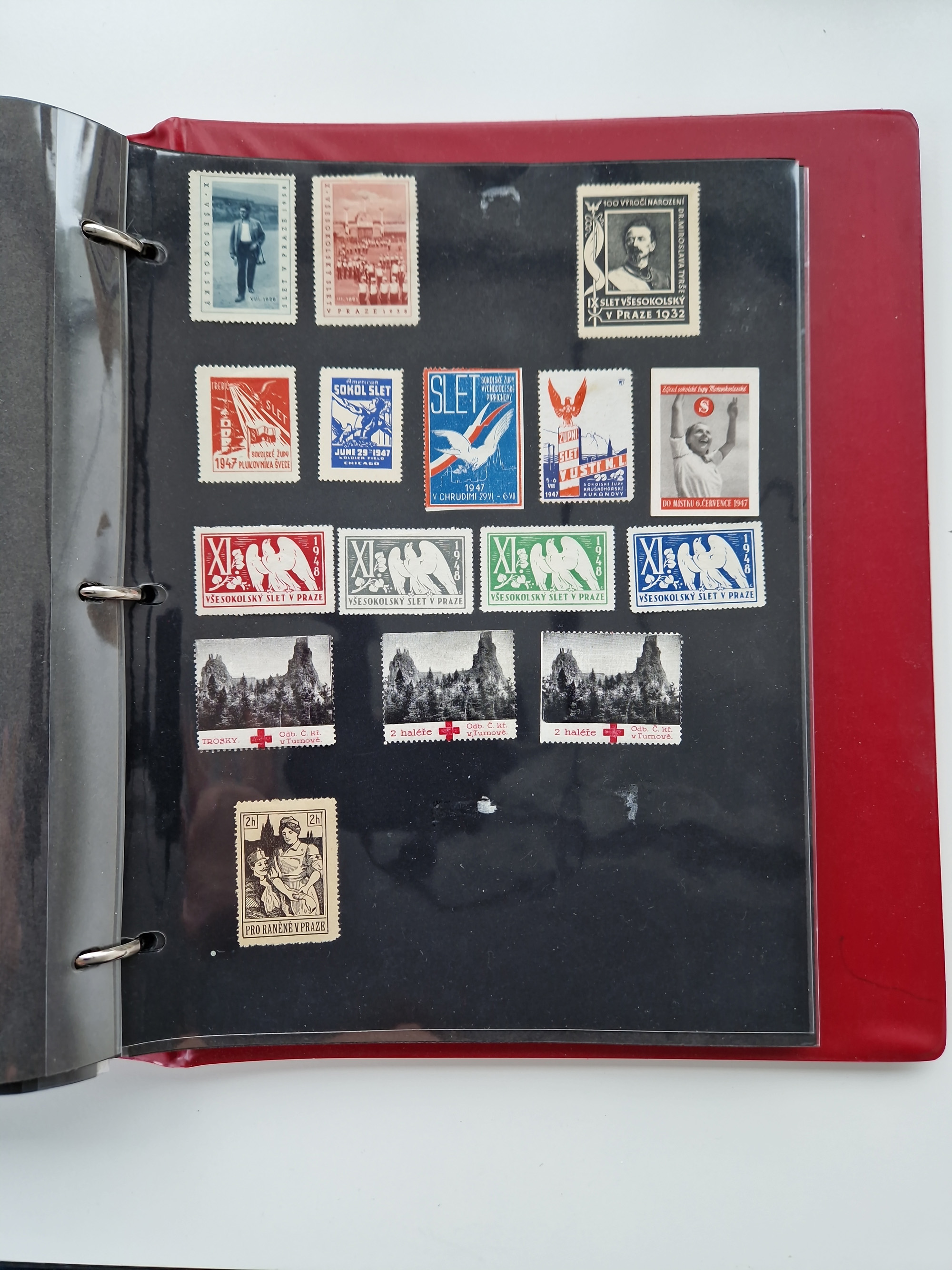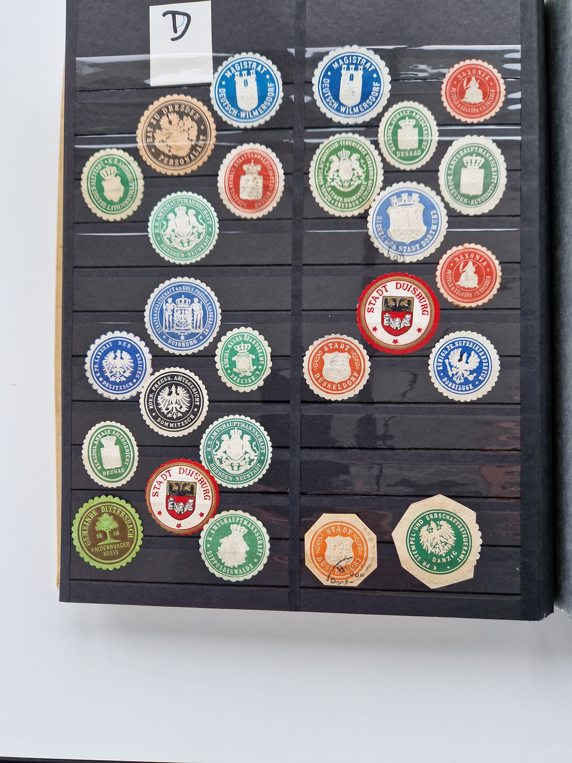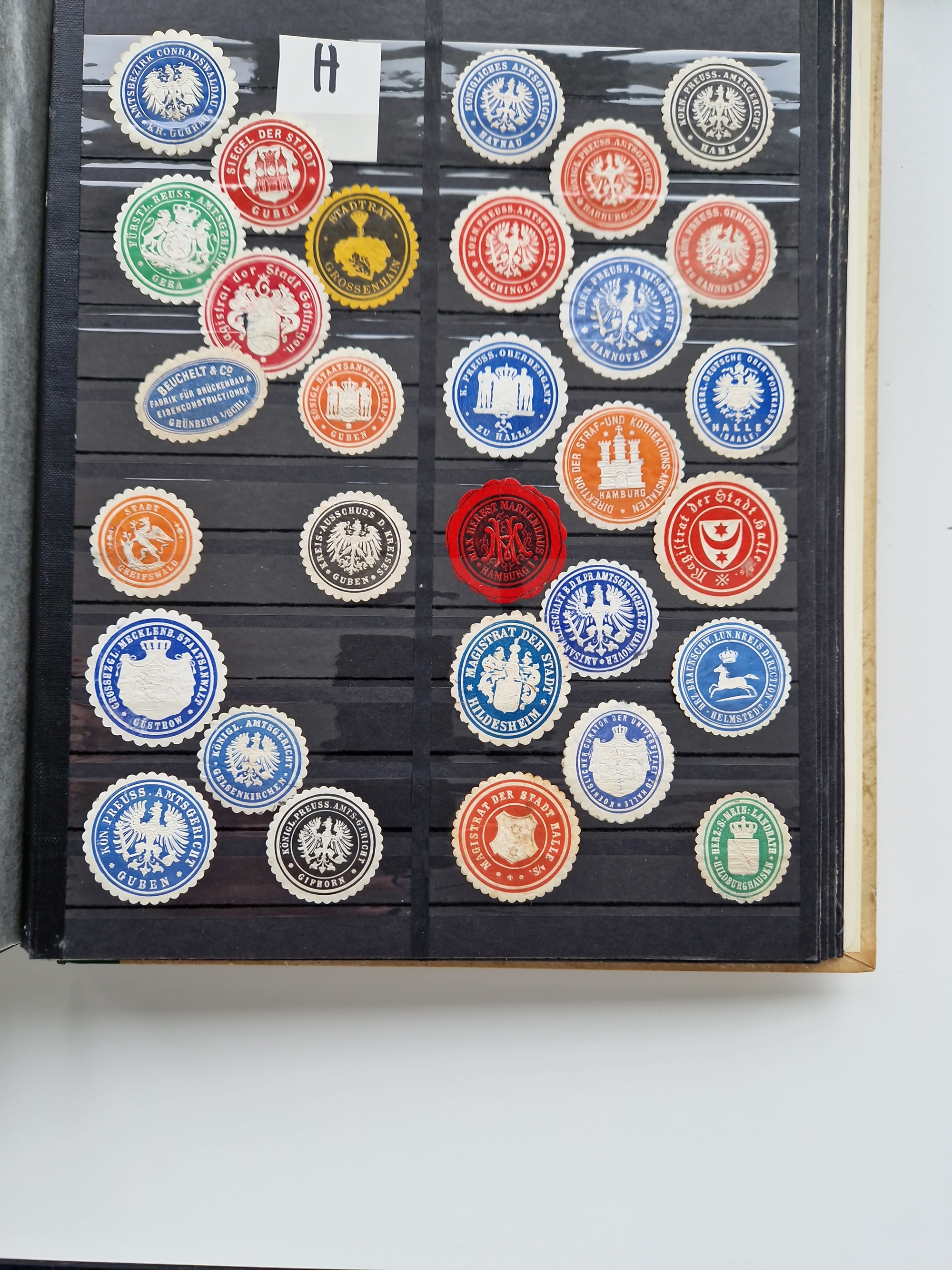 VIGNETTEN: 1896/1960 (ca.), hochinteressanter Bestand mit einigen Tausend Vignetten, Verschluss- und Siegelmarken, später Spendenvignetten und -Blocks, dabei viele zu unterschiedlichen Ausstellungen, meist aus Berlin, München, Nürnberg, Leipzig mit Export-Messe, ferner aber auch Luftpost-Ausstellung, Gewerbe- und Industrieschau, Landwirtschaft, Kunst, Firmenvignetten, etc., etwas zu Briefmarken-Ausstellungen, dabei auch drei Hessheimer Entwürfe, vieles auf amerikanischen Händlerkarten und Loskarten, in drei Kartons