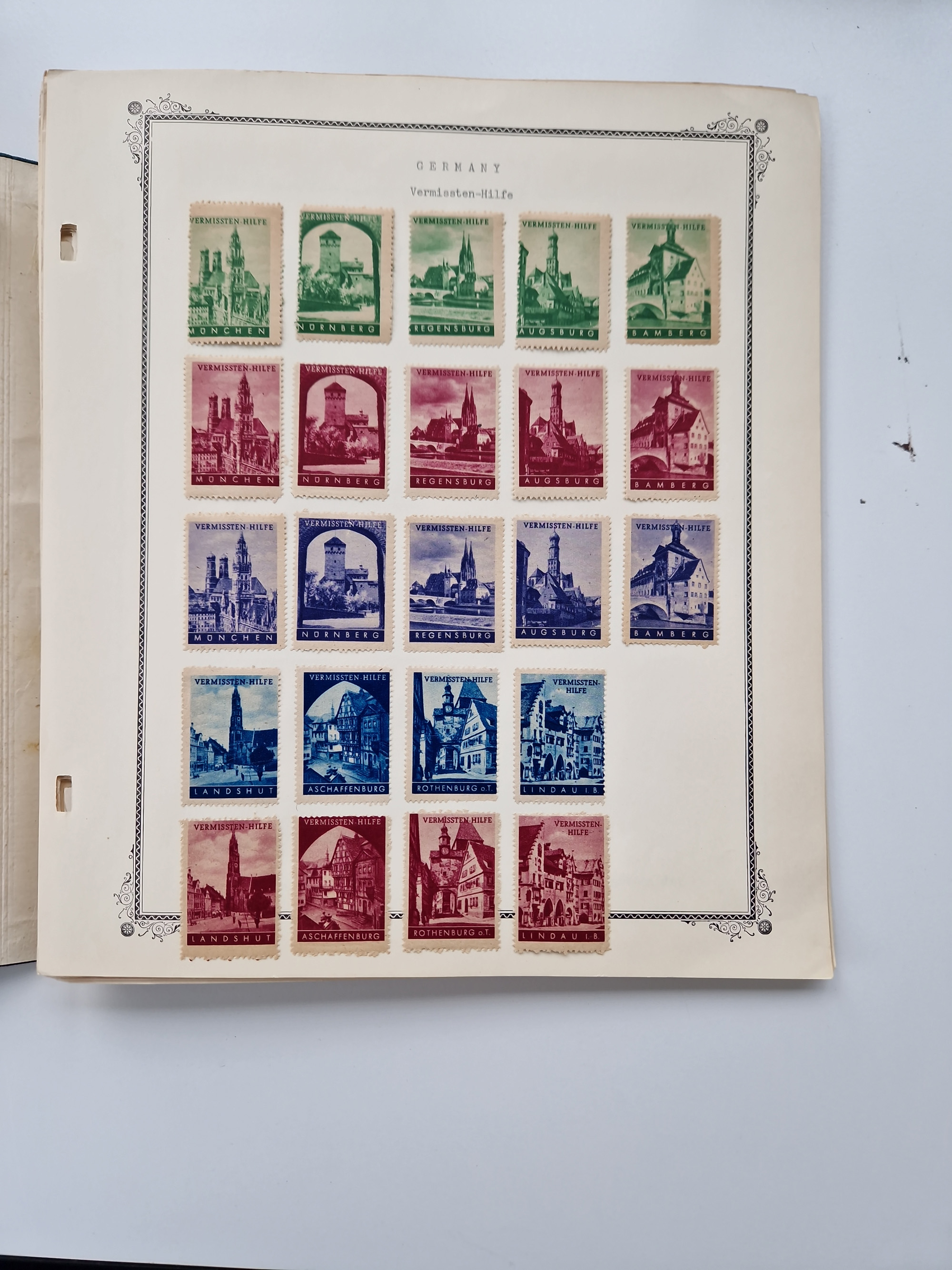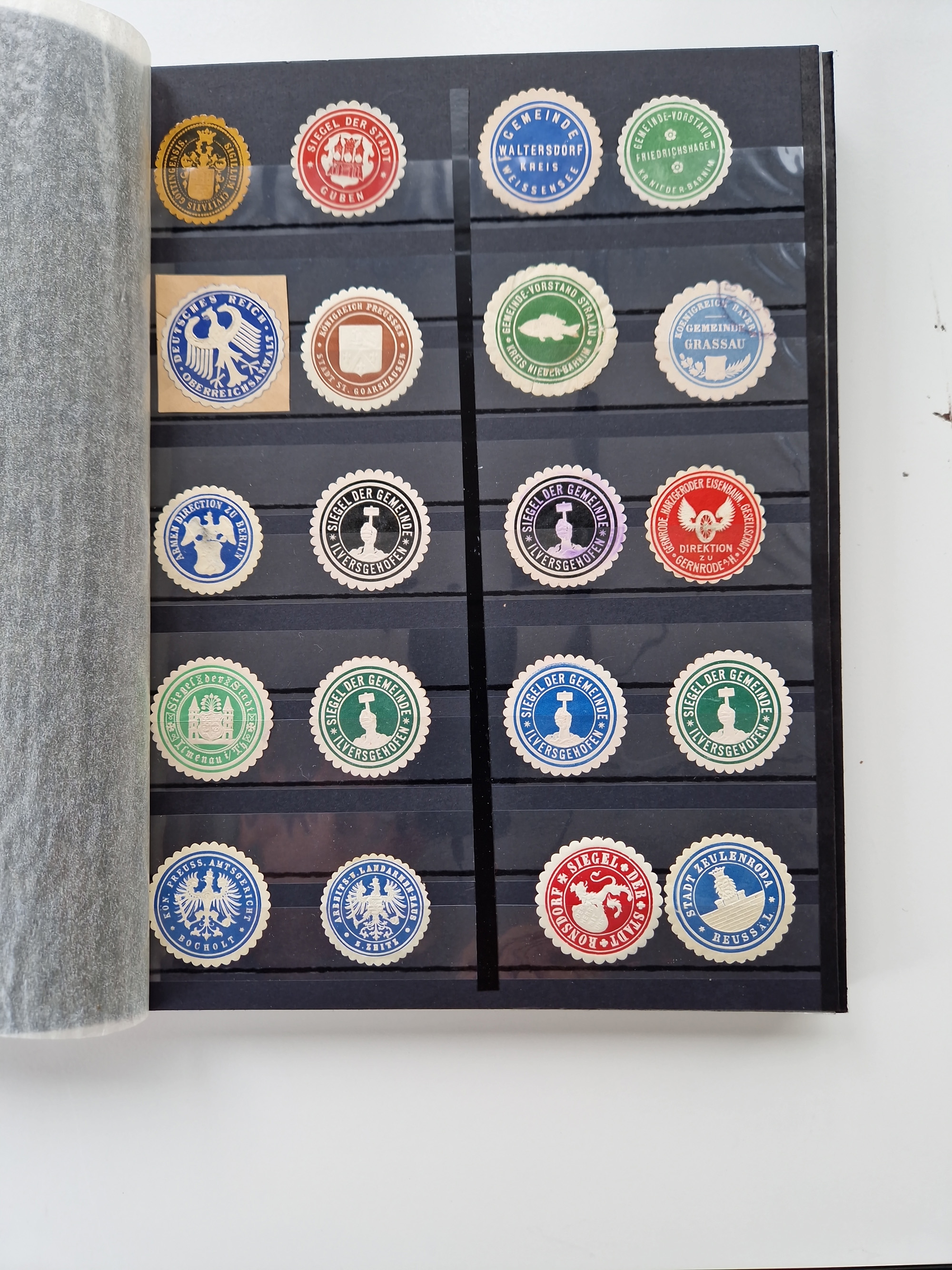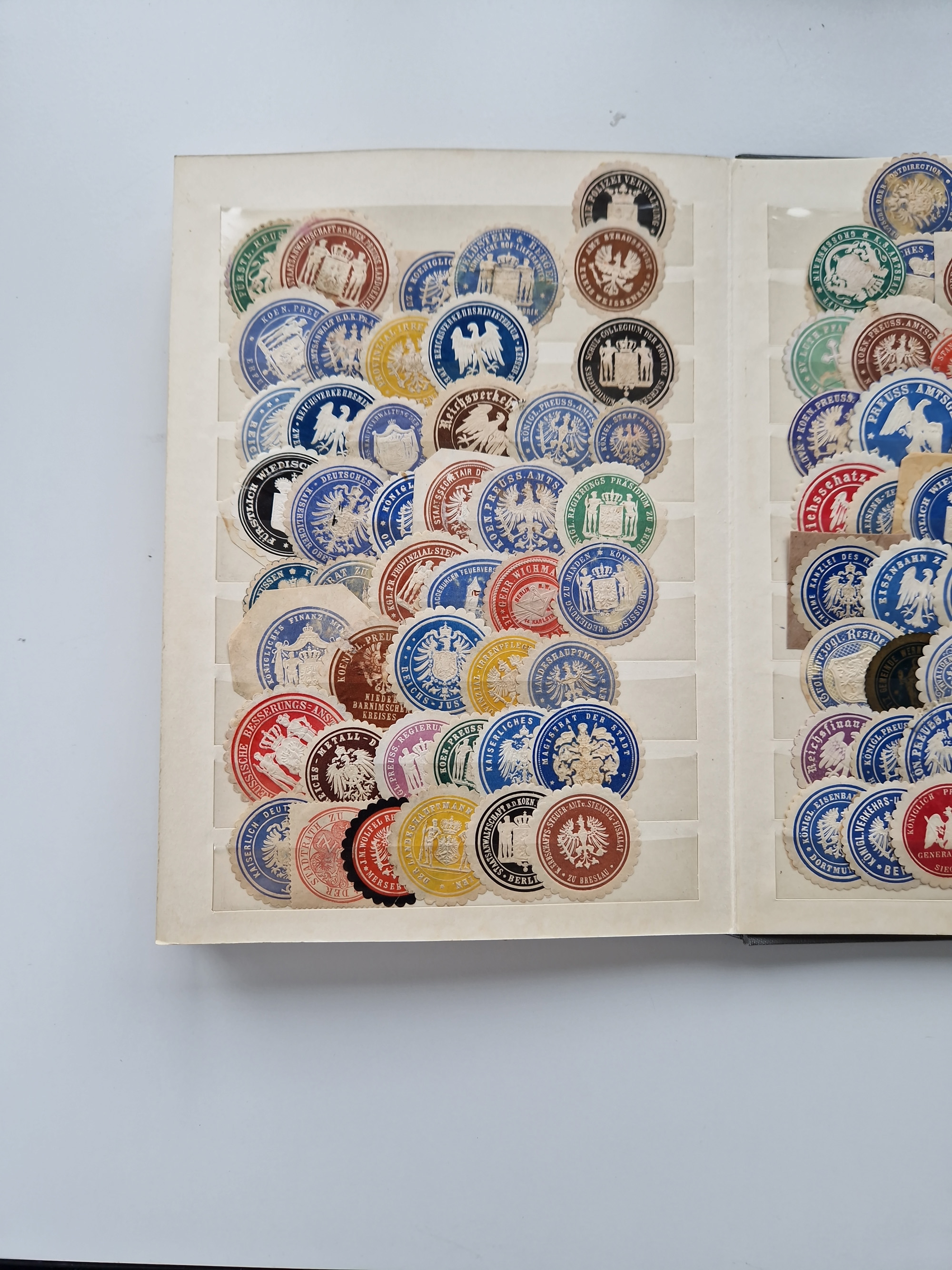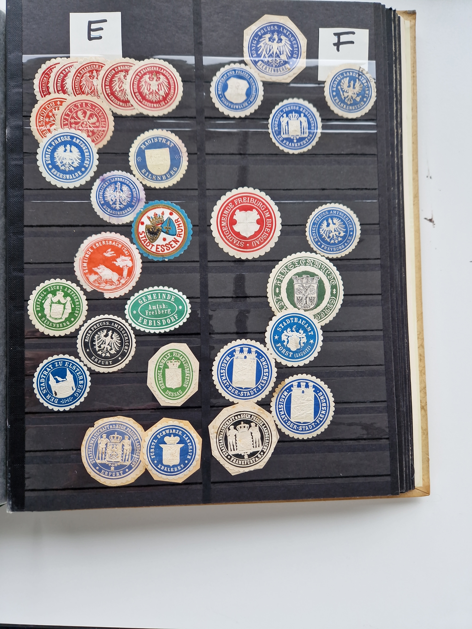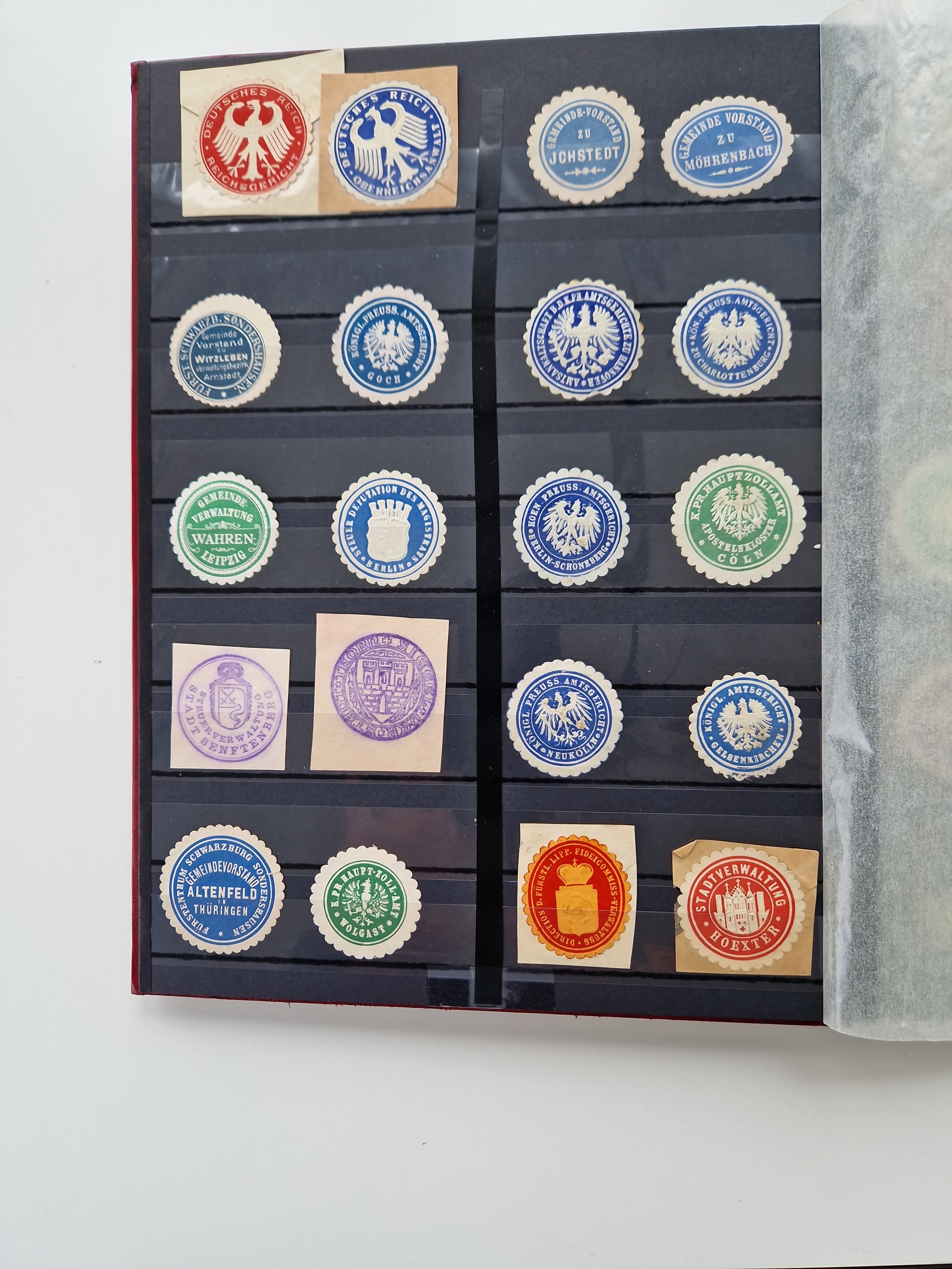 VIGNETTEN: 1896/1960 (ca.), hochinteressanter Bestand mit einigen Tausend Vignetten, Verschluss- und Siegelmarken, später Spendenvignetten und -Blocks, dabei viele zu unterschiedlichen Ausstellungen, meist aus Berlin, München, Nürnberg, Leipzig mit Export-Messe, ferner aber auch Luftpost-Ausstellung, Gewerbe- und Industrieschau, Landwirtschaft, Kunst, Firmenvignetten, etc., etwas zu Briefmarken-Ausstellungen, dabei auch drei Hessheimer Entwürfe, vieles auf amerikanischen Händlerkarten und Loskarten, in drei Kartons