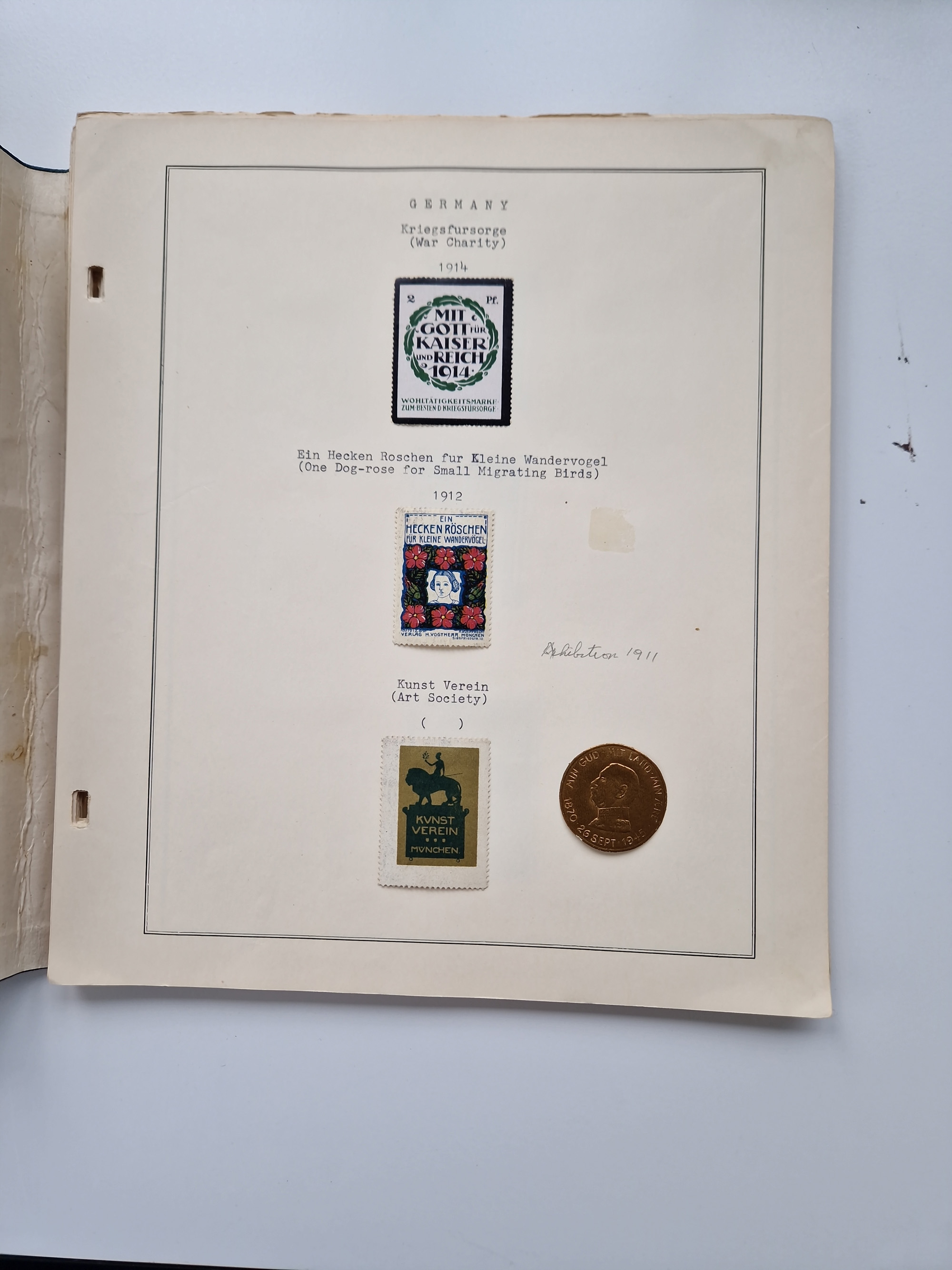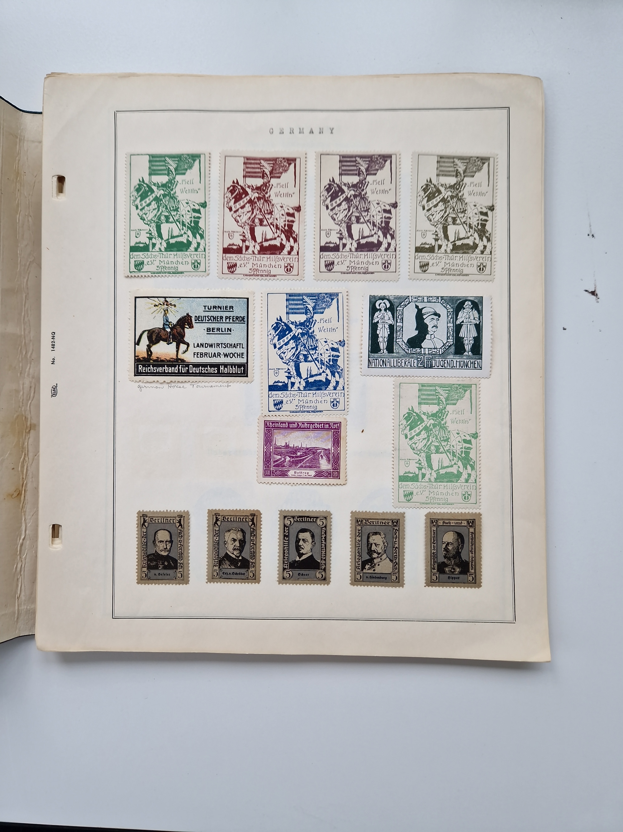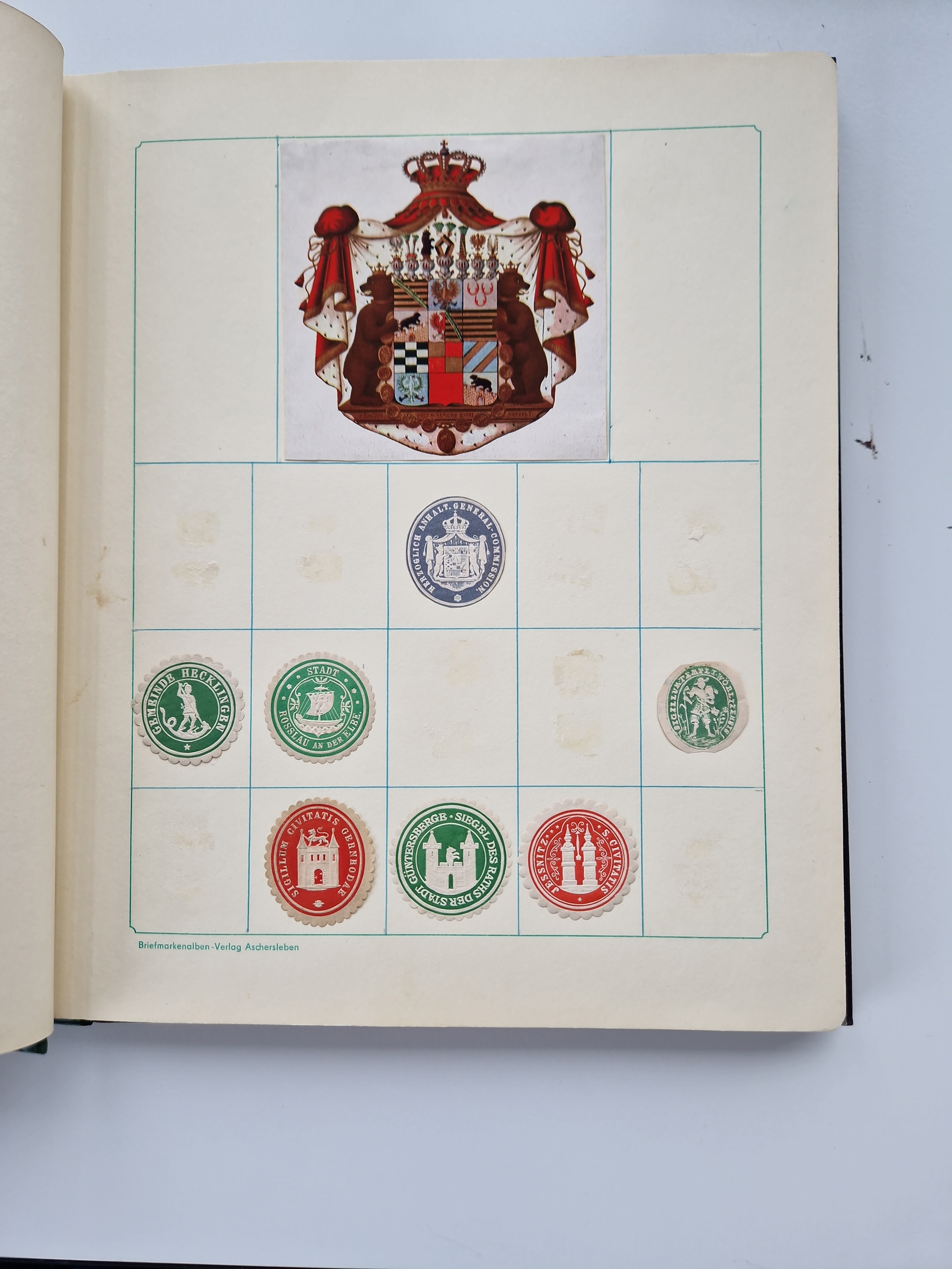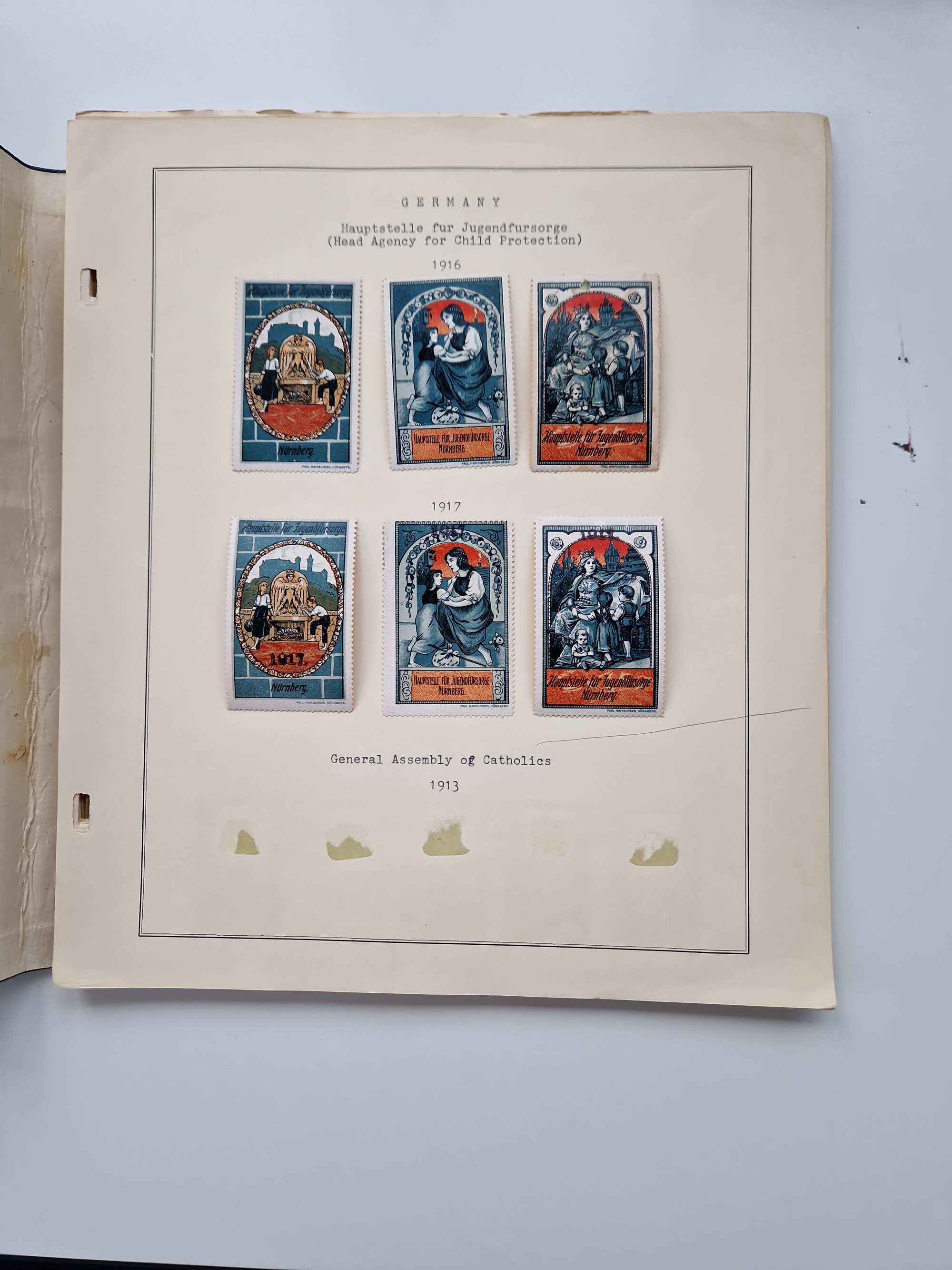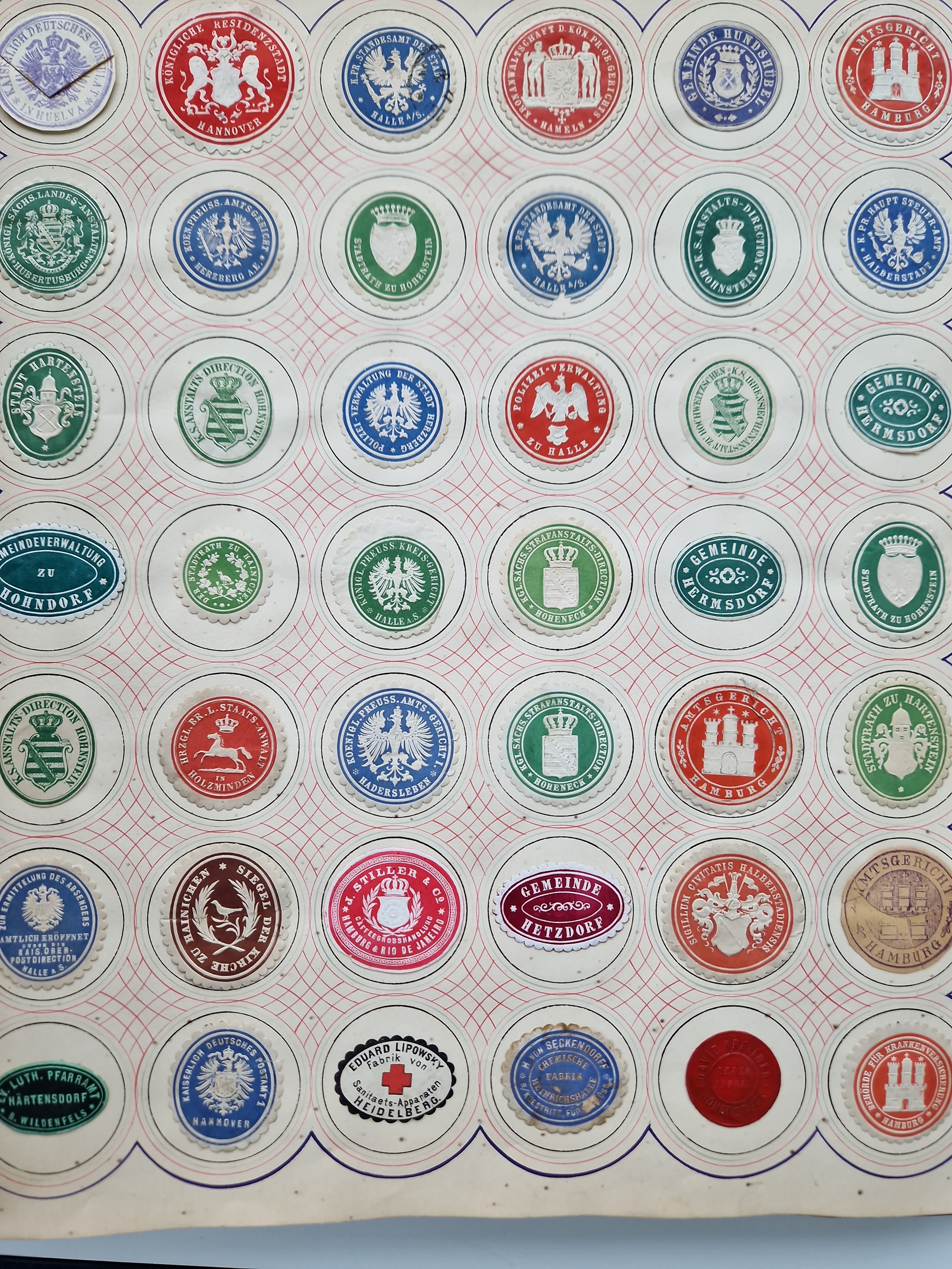 VIGNETTEN: 1896/1960 (ca.), hochinteressanter Bestand mit einigen Tausend Vignetten, Verschluss- und Siegelmarken, später Spendenvignetten und -Blocks, dabei viele zu unterschiedlichen Ausstellungen, meist aus Berlin, München, Nürnberg, Leipzig mit Export-Messe, ferner aber auch Luftpost-Ausstellung, Gewerbe- und Industrieschau, Landwirtschaft, Kunst, Firmenvignetten, etc., etwas zu Briefmarken-Ausstellungen, dabei auch drei Hessheimer Entwürfe, vieles auf amerikanischen Händlerkarten und Loskarten, in drei Kartons