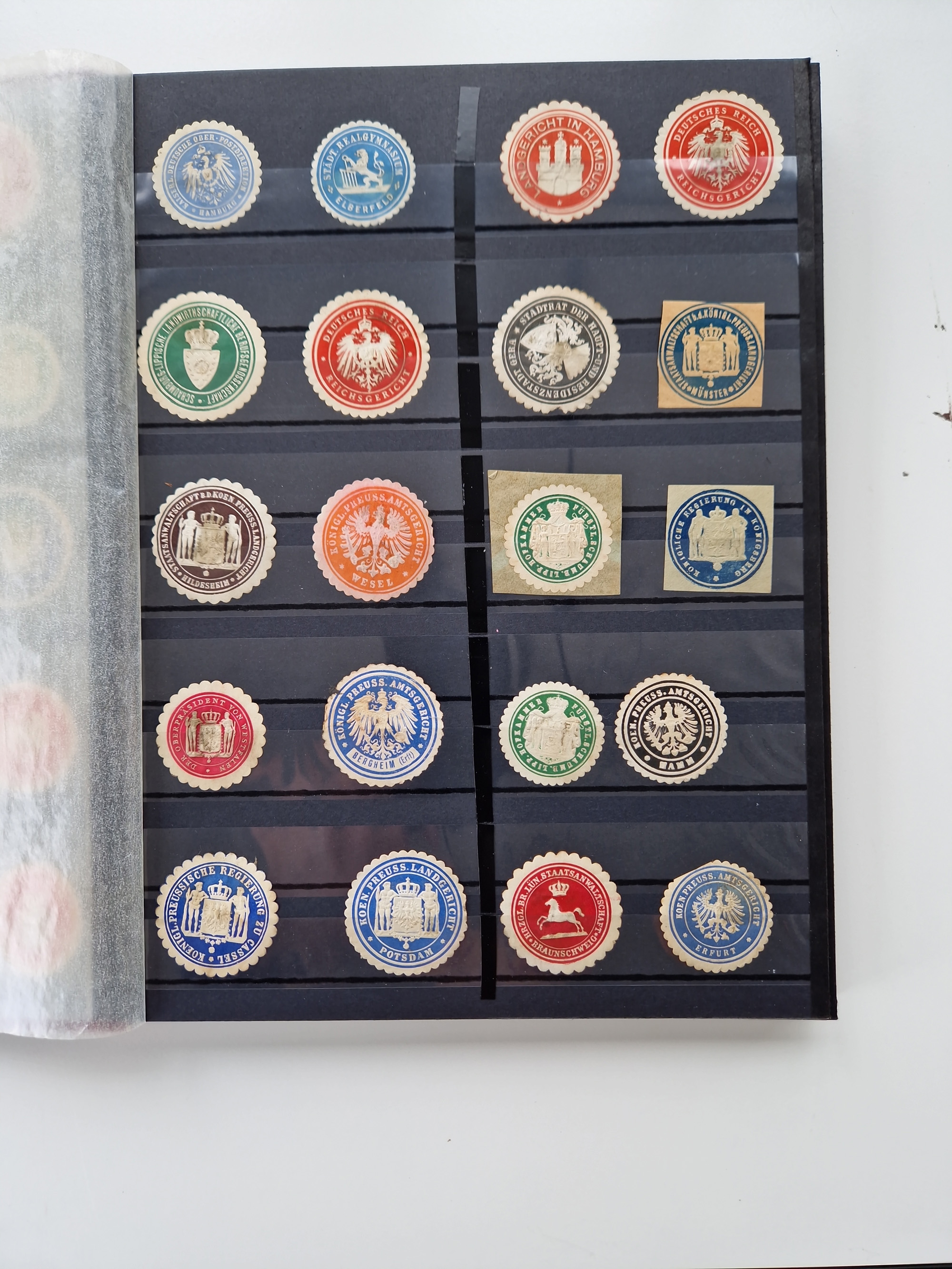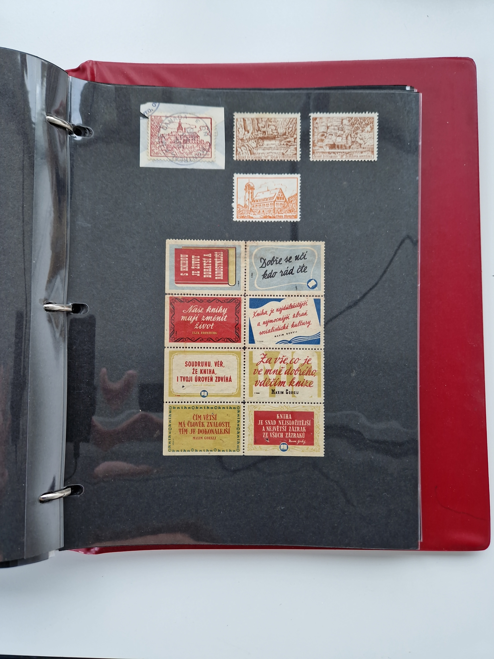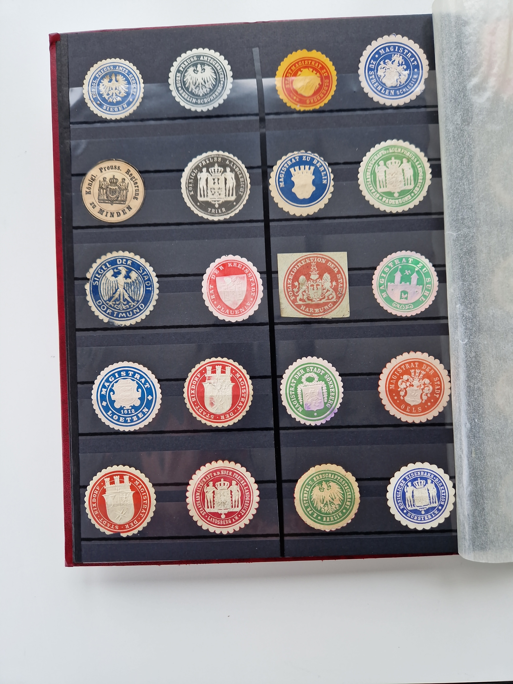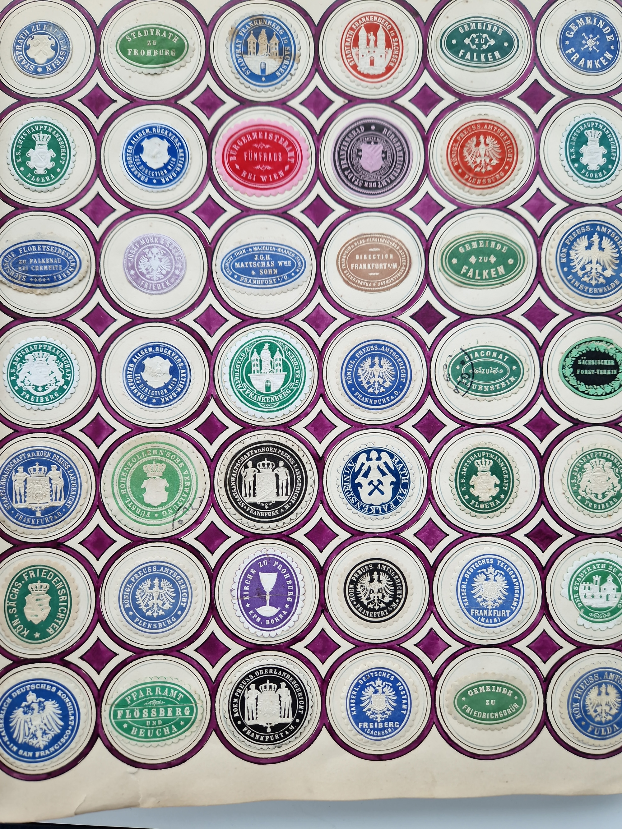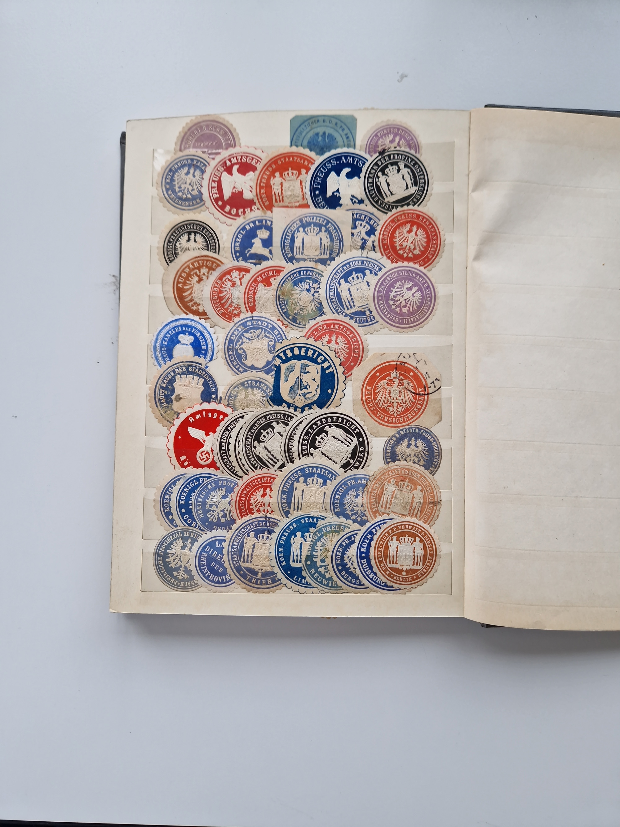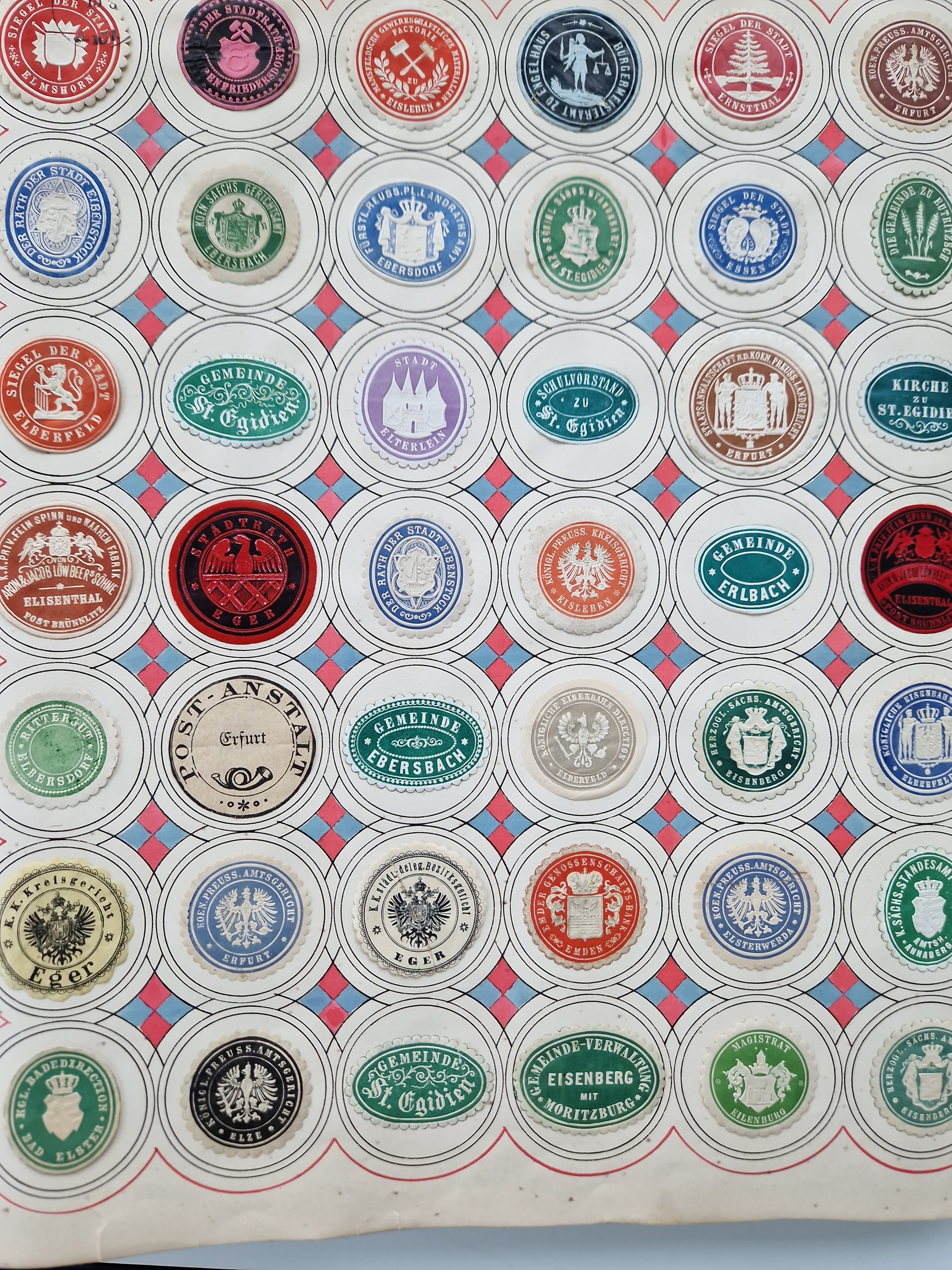 VIGNETTEN: 1896/1960 (ca.), hochinteressanter Bestand mit einigen Tausend Vignetten, Verschluss- und Siegelmarken, später Spendenvignetten und -Blocks, dabei viele zu unterschiedlichen Ausstellungen, meist aus Berlin, München, Nürnberg, Leipzig mit Export-Messe, ferner aber auch Luftpost-Ausstellung, Gewerbe- und Industrieschau, Landwirtschaft, Kunst, Firmenvignetten, etc., etwas zu Briefmarken-Ausstellungen, dabei auch drei Hessheimer Entwürfe, vieles auf amerikanischen Händlerkarten und Loskarten, in drei Kartons