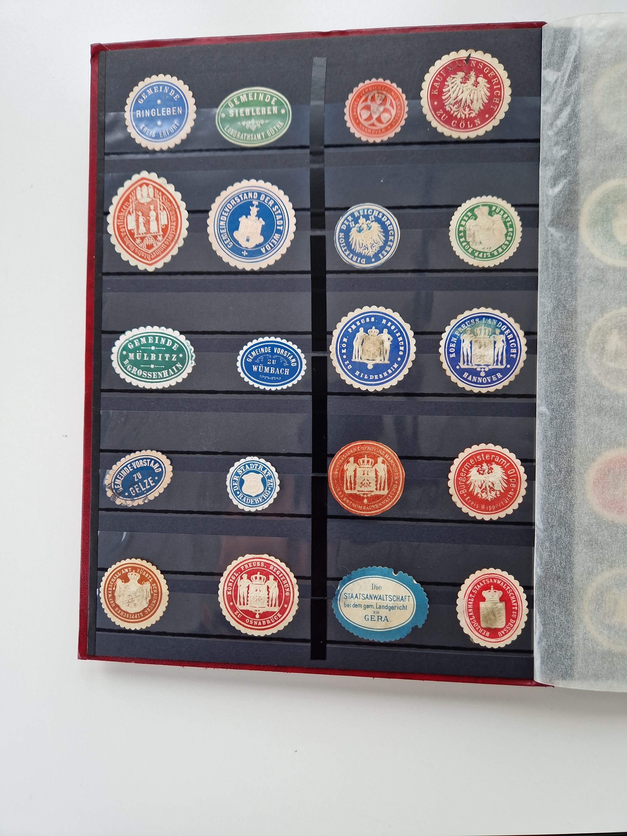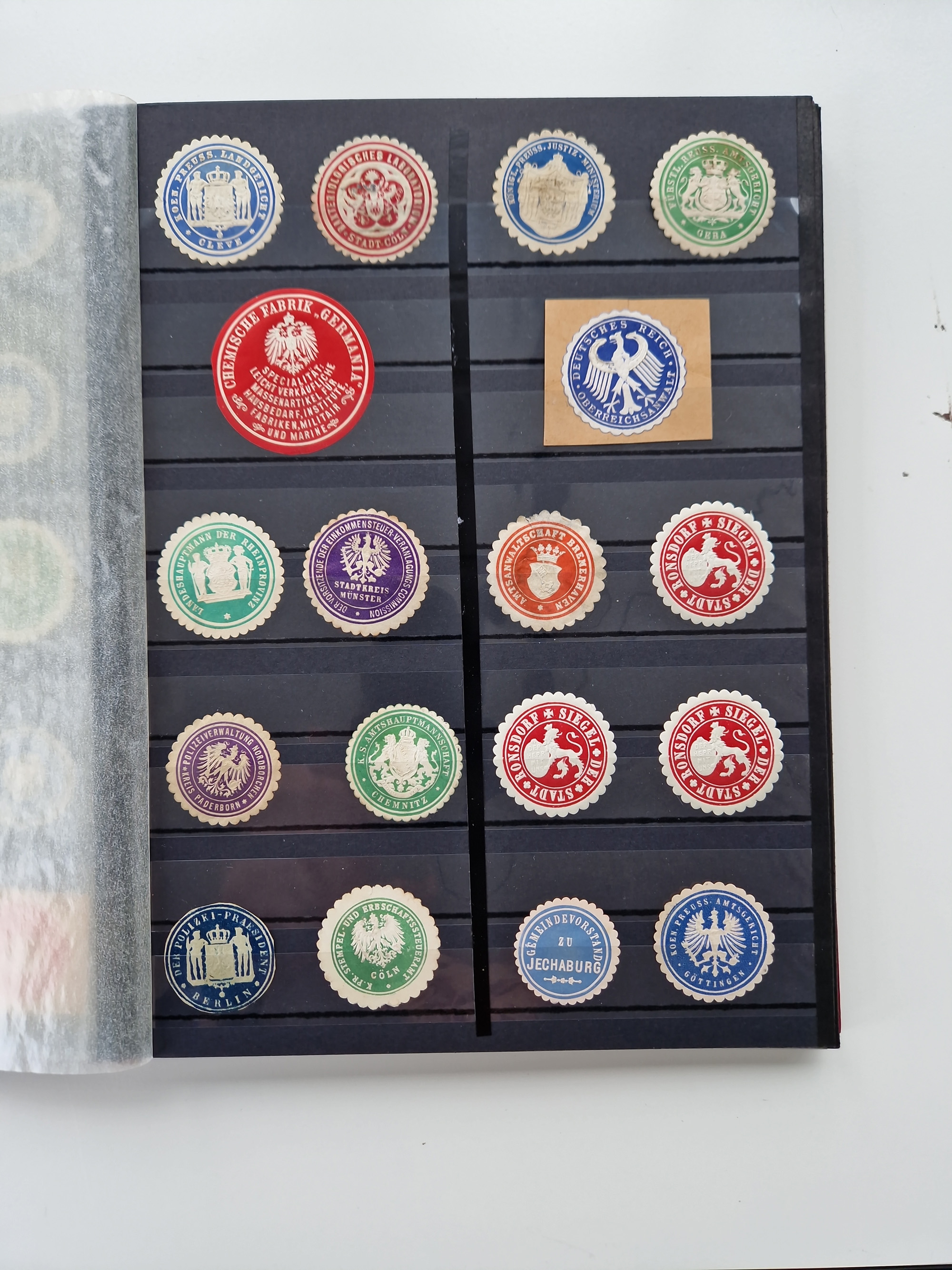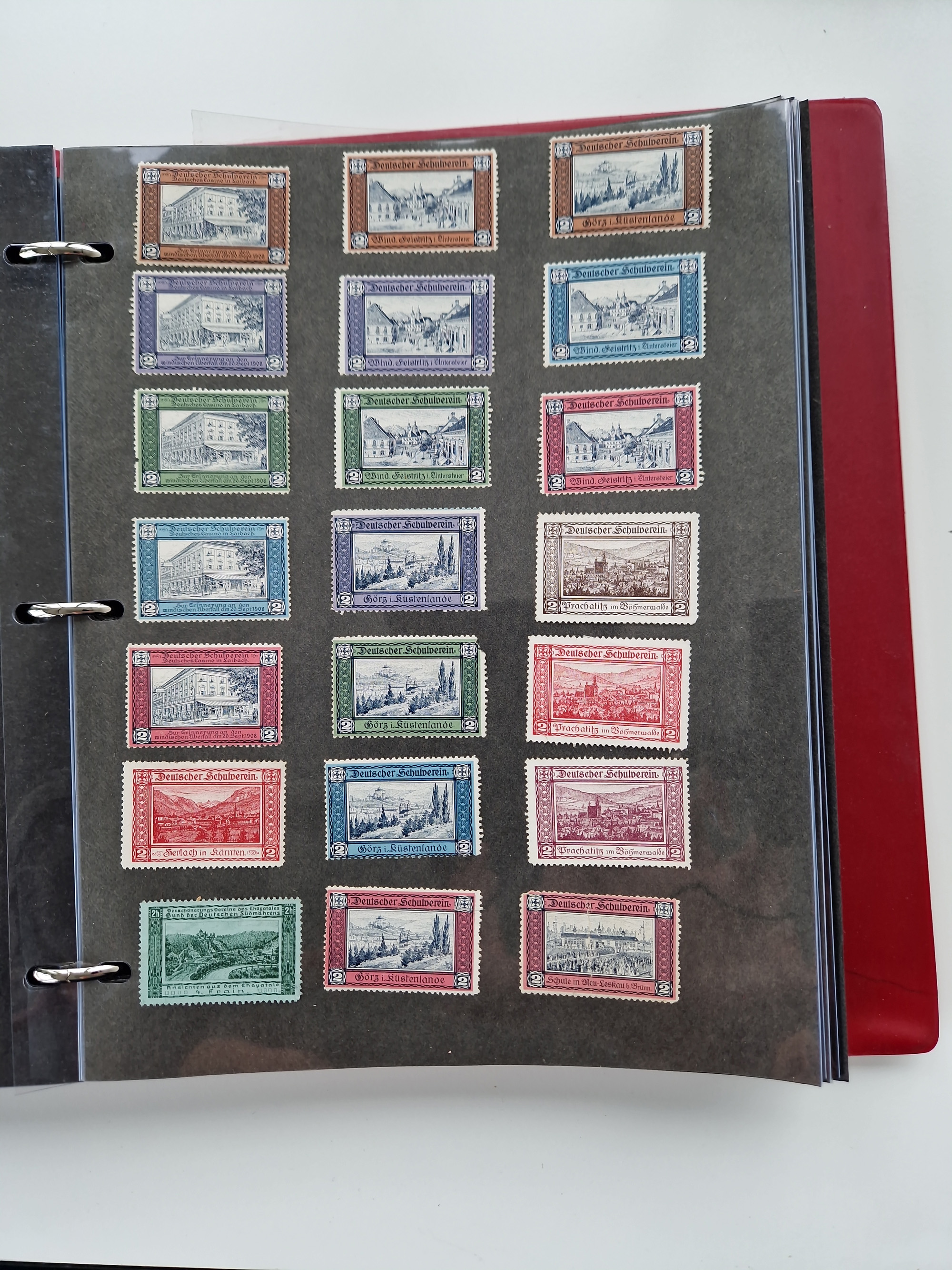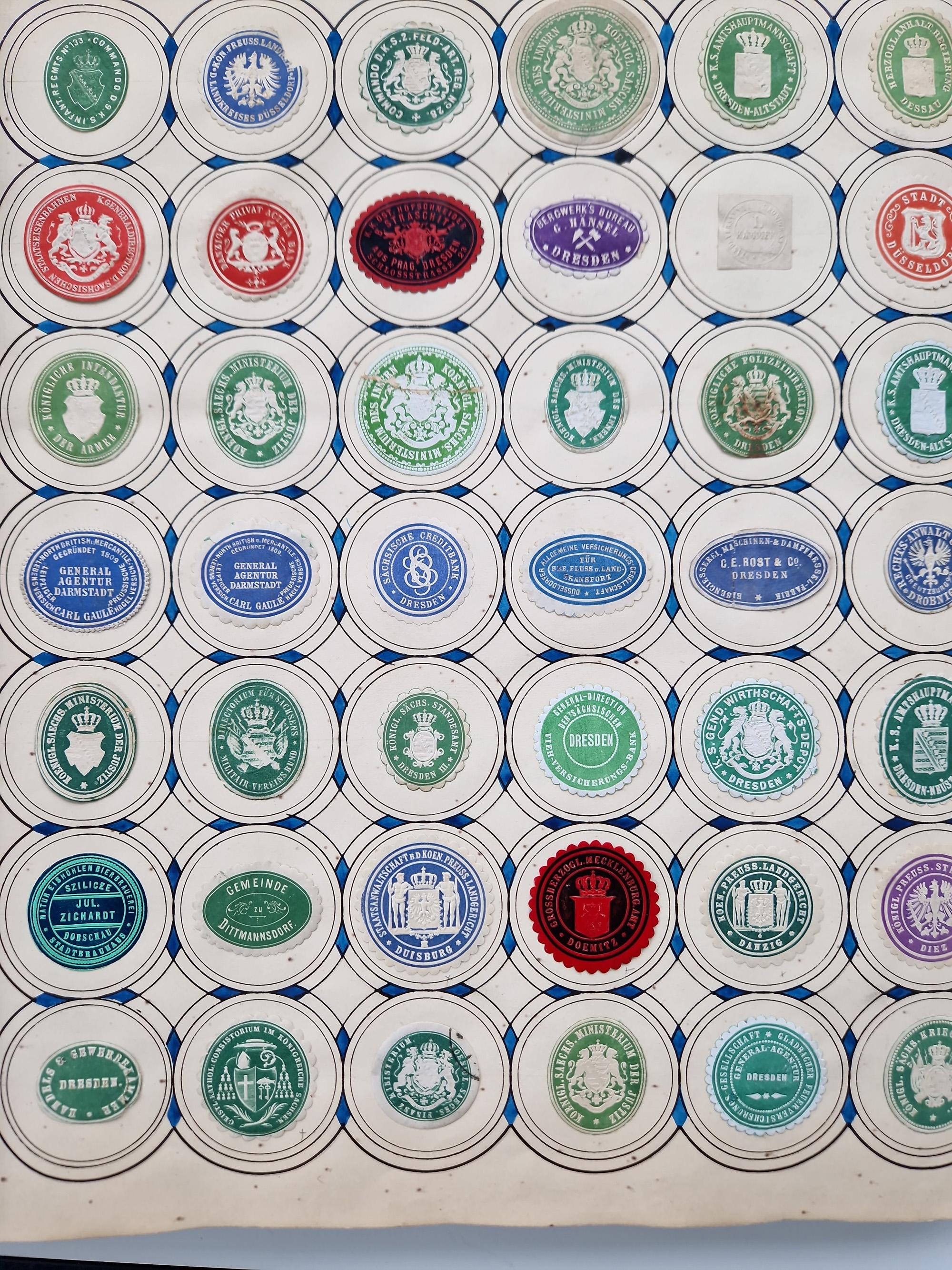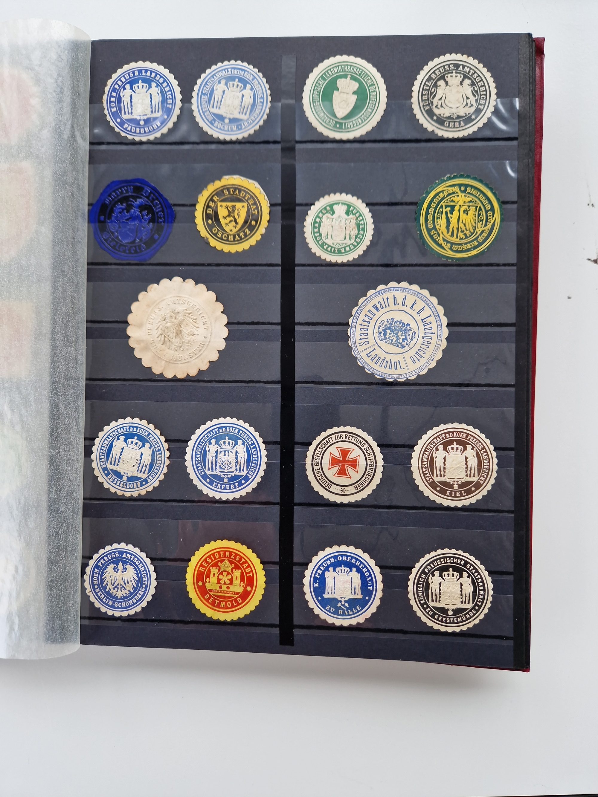 VIGNETTEN: 1896/1960 (ca.), hochinteressanter Bestand mit einigen Tausend Vignetten, Verschluss- und Siegelmarken, später Spendenvignetten und -Blocks, dabei viele zu unterschiedlichen Ausstellungen, meist aus Berlin, München, Nürnberg, Leipzig mit Export-Messe, ferner aber auch Luftpost-Ausstellung, Gewerbe- und Industrieschau, Landwirtschaft, Kunst, Firmenvignetten, etc., etwas zu Briefmarken-Ausstellungen, dabei auch drei Hessheimer Entwürfe, vieles auf amerikanischen Händlerkarten und Loskarten, in drei Kartons