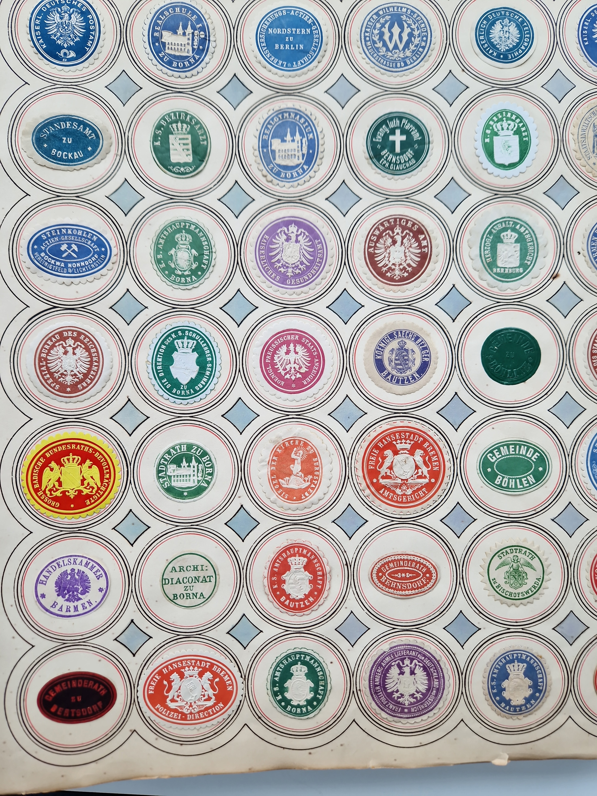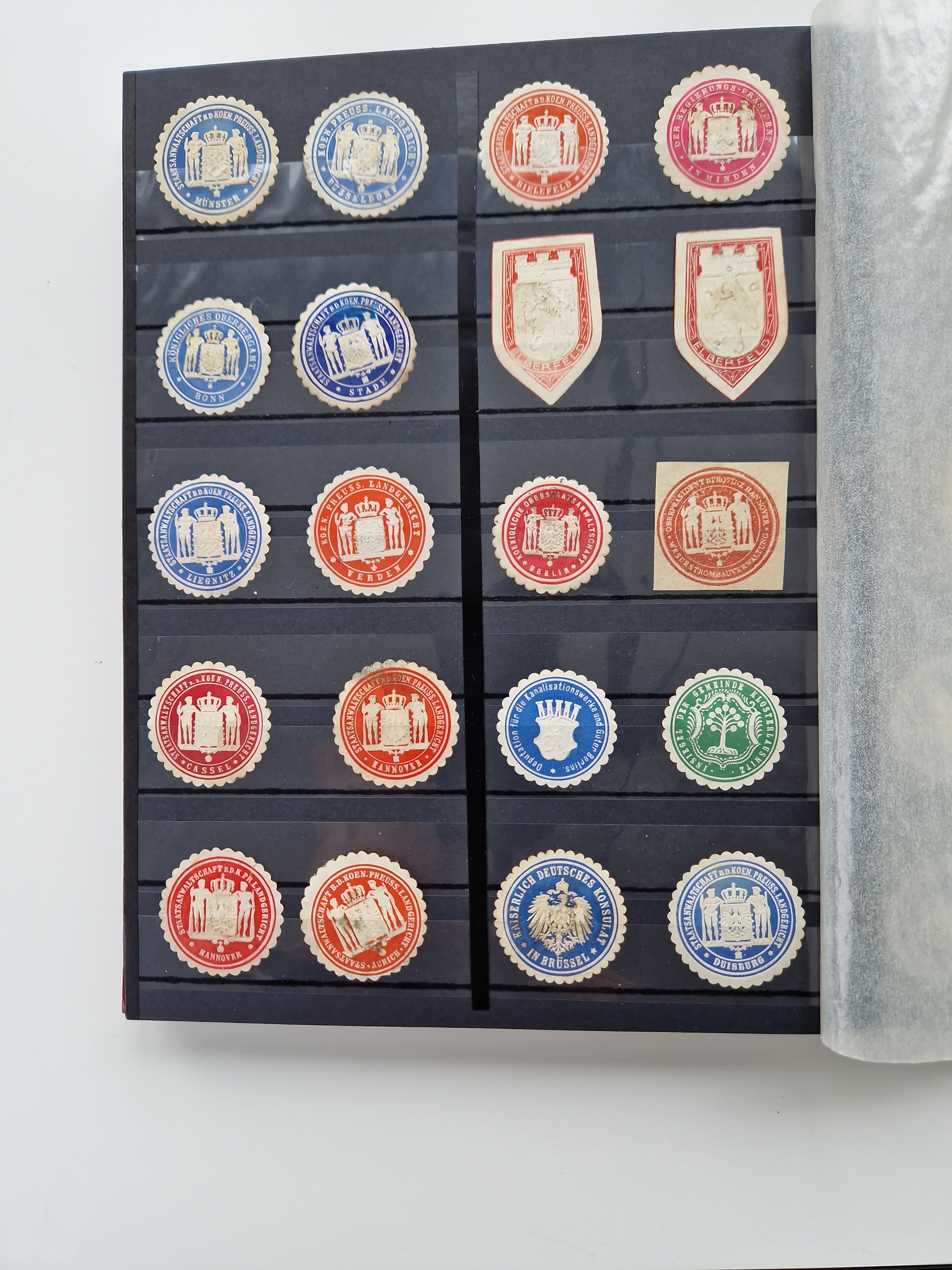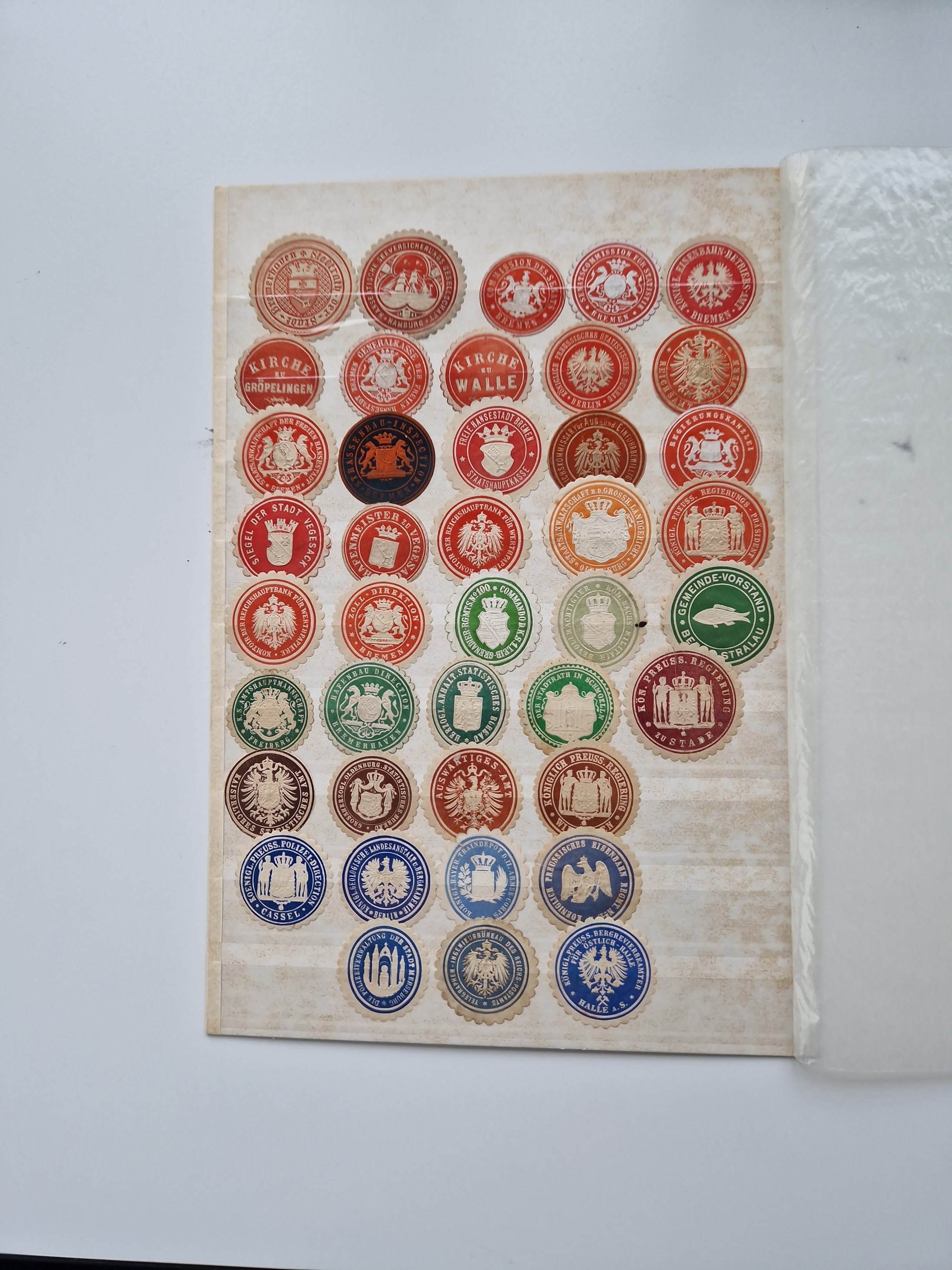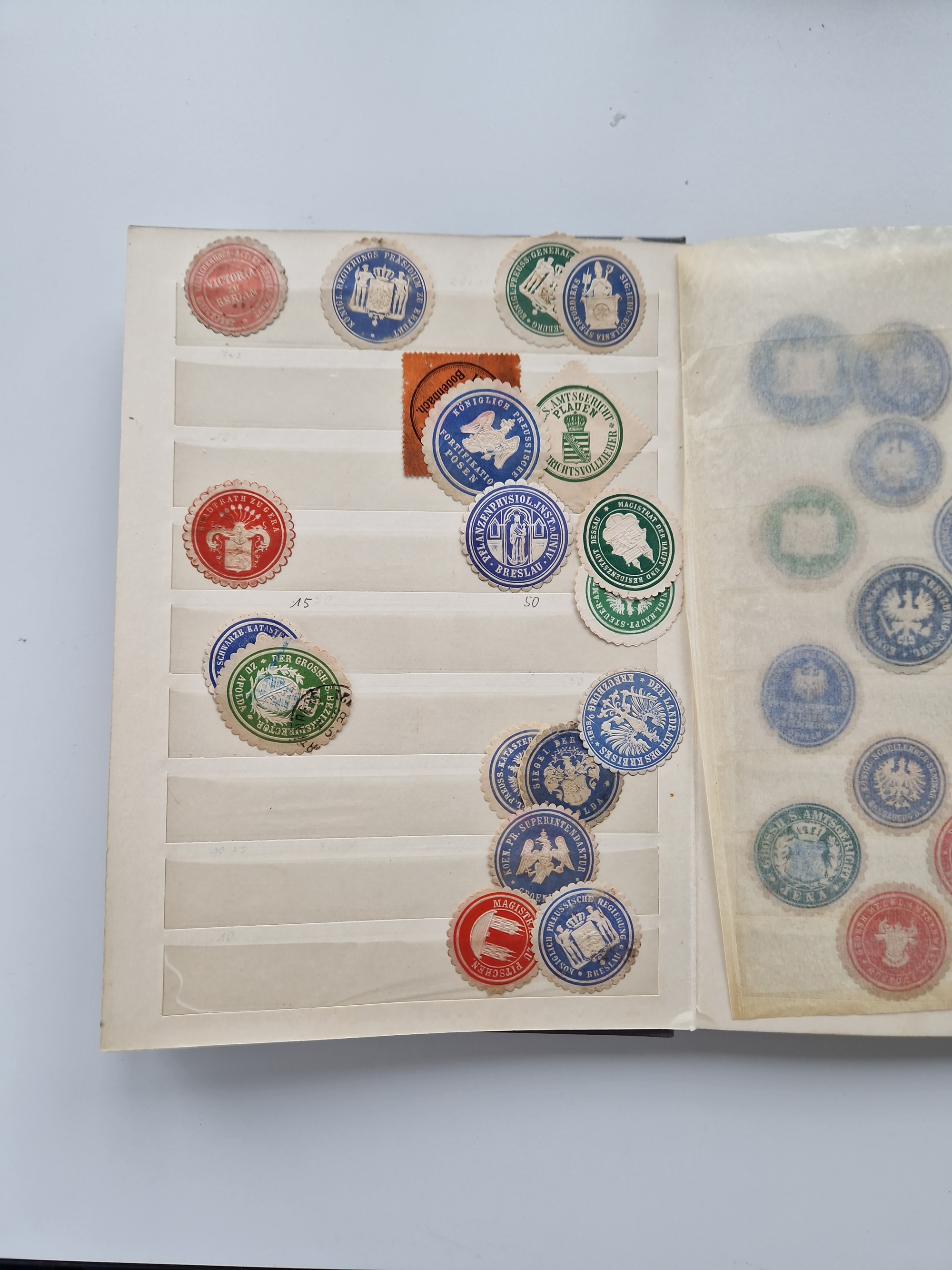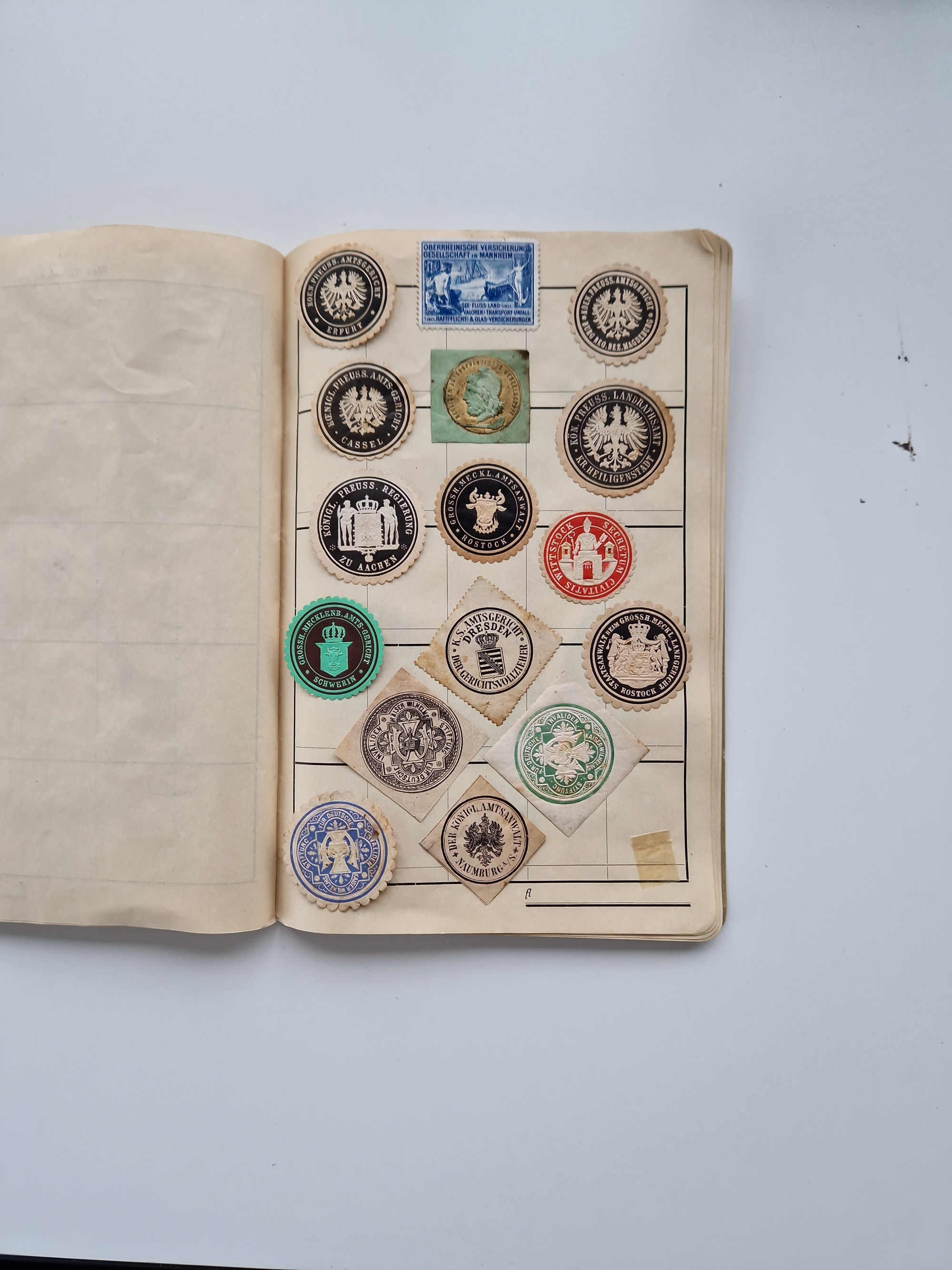 VIGNETTEN: 1896/1960 (ca.), hochinteressanter Bestand mit einigen Tausend Vignetten, Verschluss- und Siegelmarken, später Spendenvignetten und -Blocks, dabei viele zu unterschiedlichen Ausstellungen, meist aus Berlin, München, Nürnberg, Leipzig mit Export-Messe, ferner aber auch Luftpost-Ausstellung, Gewerbe- und Industrieschau, Landwirtschaft, Kunst, Firmenvignetten, etc., etwas zu Briefmarken-Ausstellungen, dabei auch drei Hessheimer Entwürfe, vieles auf amerikanischen Händlerkarten und Loskarten, in drei Kartons