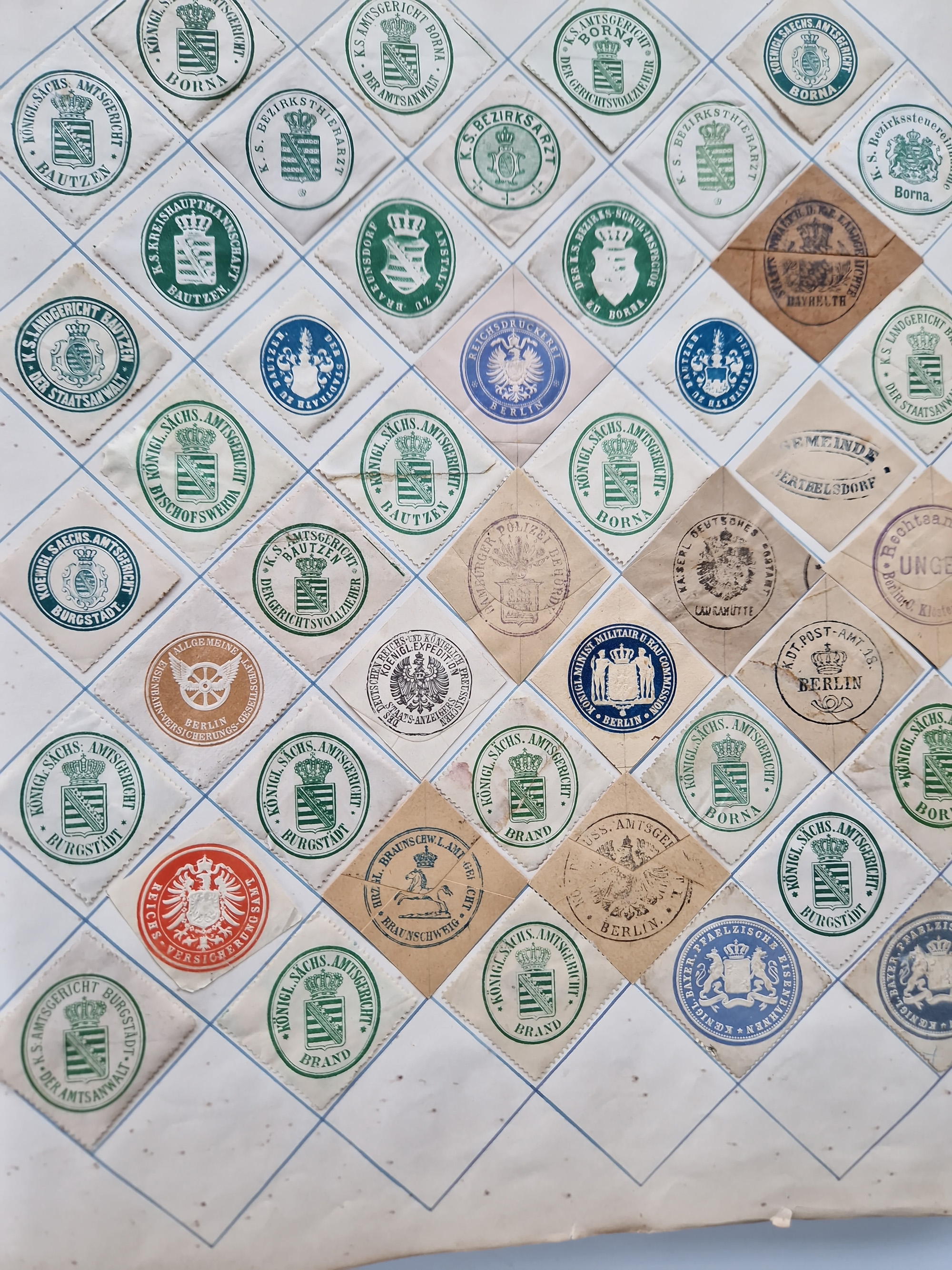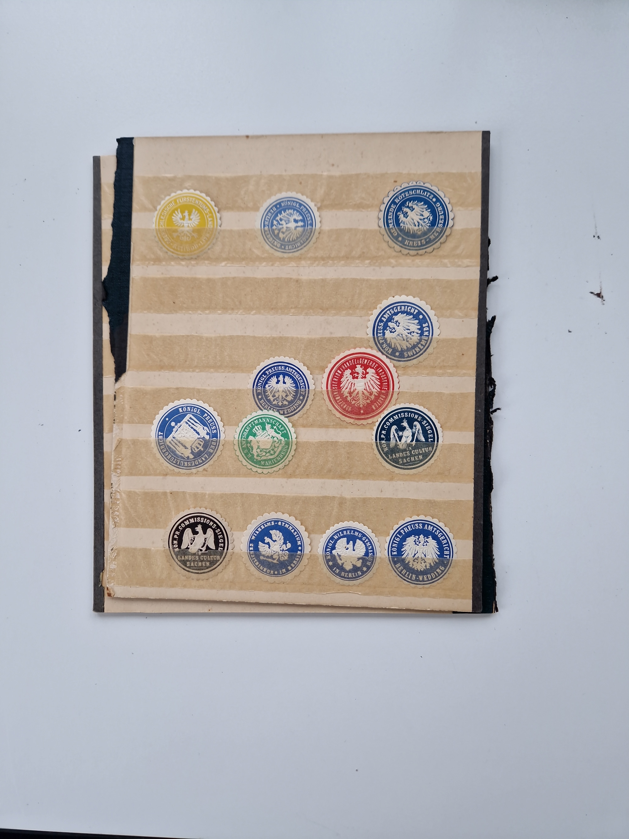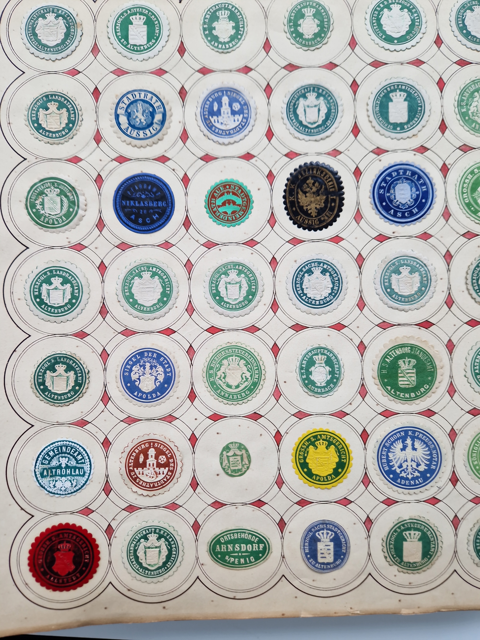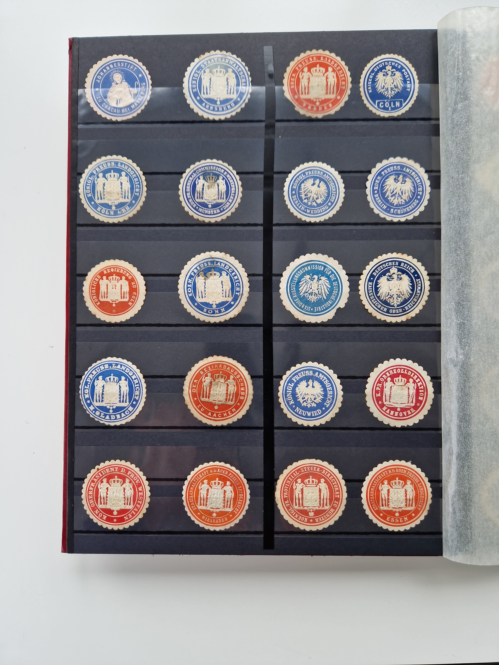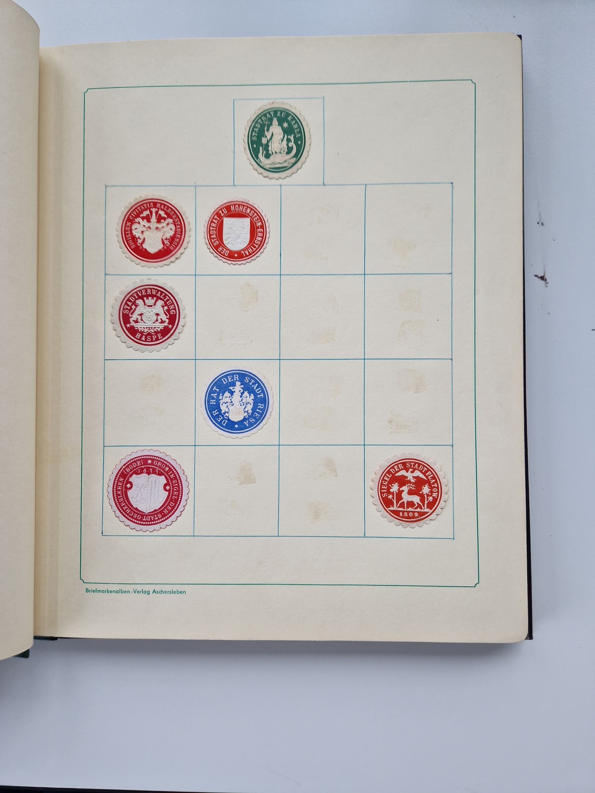 VIGNETTEN: 1896/1960 (ca.), hochinteressanter Bestand mit einigen Tausend Vignetten, Verschluss- und Siegelmarken, später Spendenvignetten und -Blocks, dabei viele zu unterschiedlichen Ausstellungen, meist aus Berlin, München, Nürnberg, Leipzig mit Export-Messe, ferner aber auch Luftpost-Ausstellung, Gewerbe- und Industrieschau, Landwirtschaft, Kunst, Firmenvignetten, etc., etwas zu Briefmarken-Ausstellungen, dabei auch drei Hessheimer Entwürfe, vieles auf amerikanischen Händlerkarten und Loskarten, in drei Kartons
